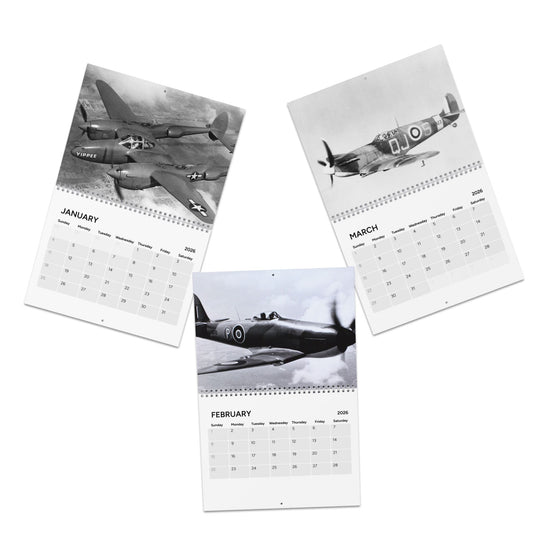 Vintage World War 2 Black and White Aircraft 2026 Desktop Calendar