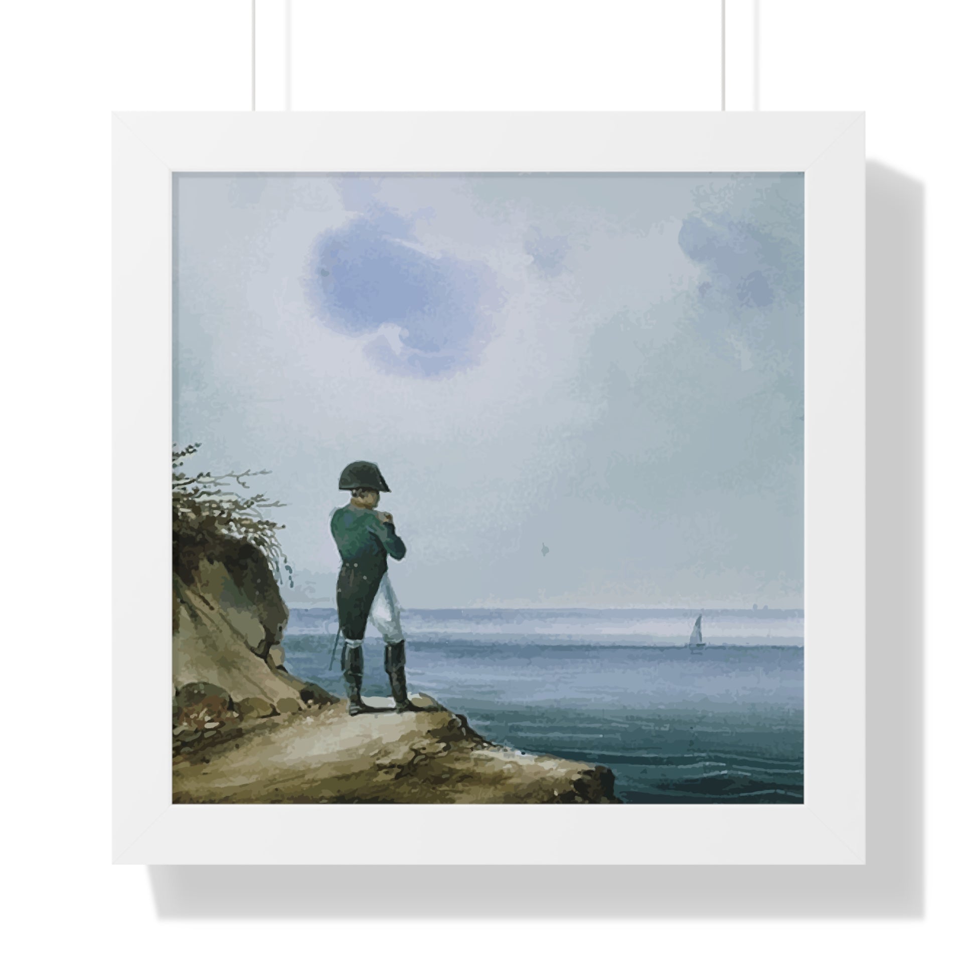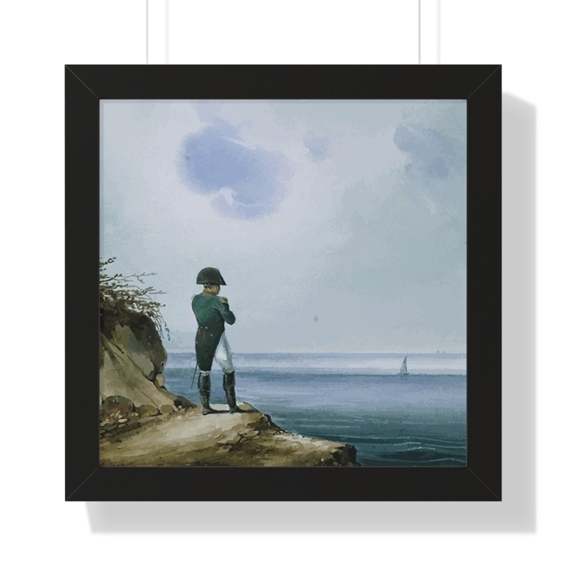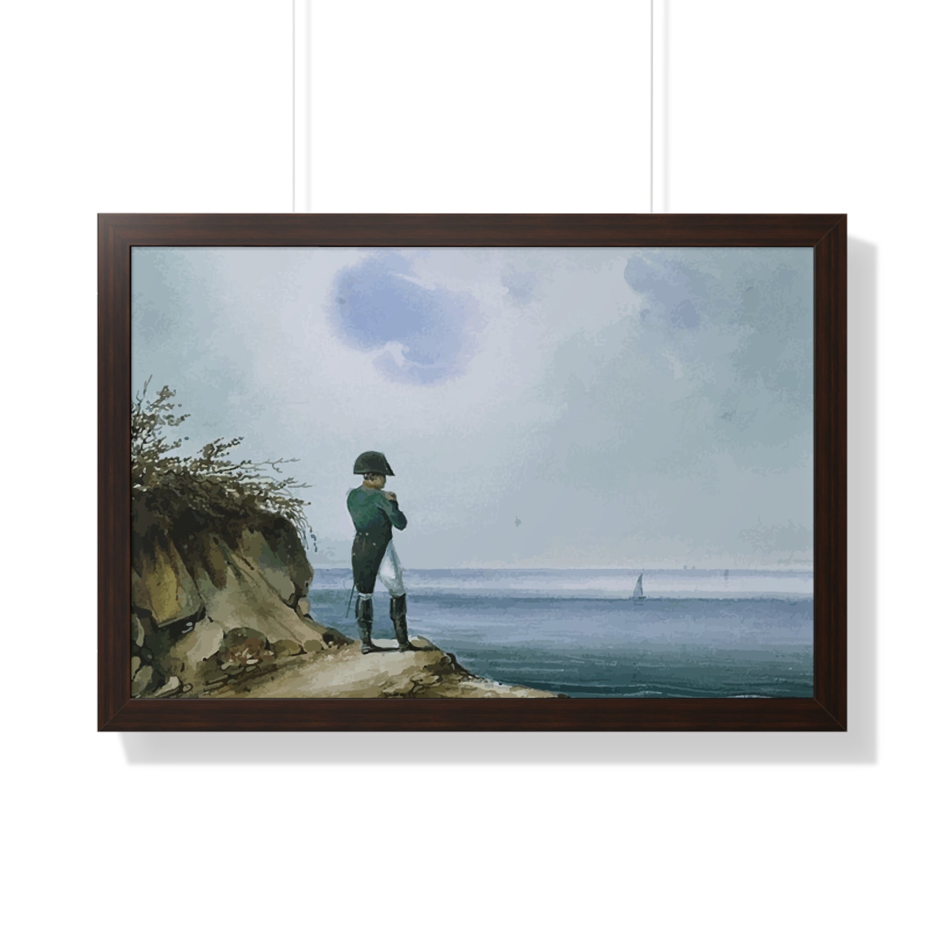 Werten Sie Ihre Wanddekoration mit unserem hochwertigen gerahmten historischen Gemälde „Napoleon im Exil auf St. Helena“ auf, erhältlich in drei eleganten Farben: Schwarz, Weiß und Walnuss.