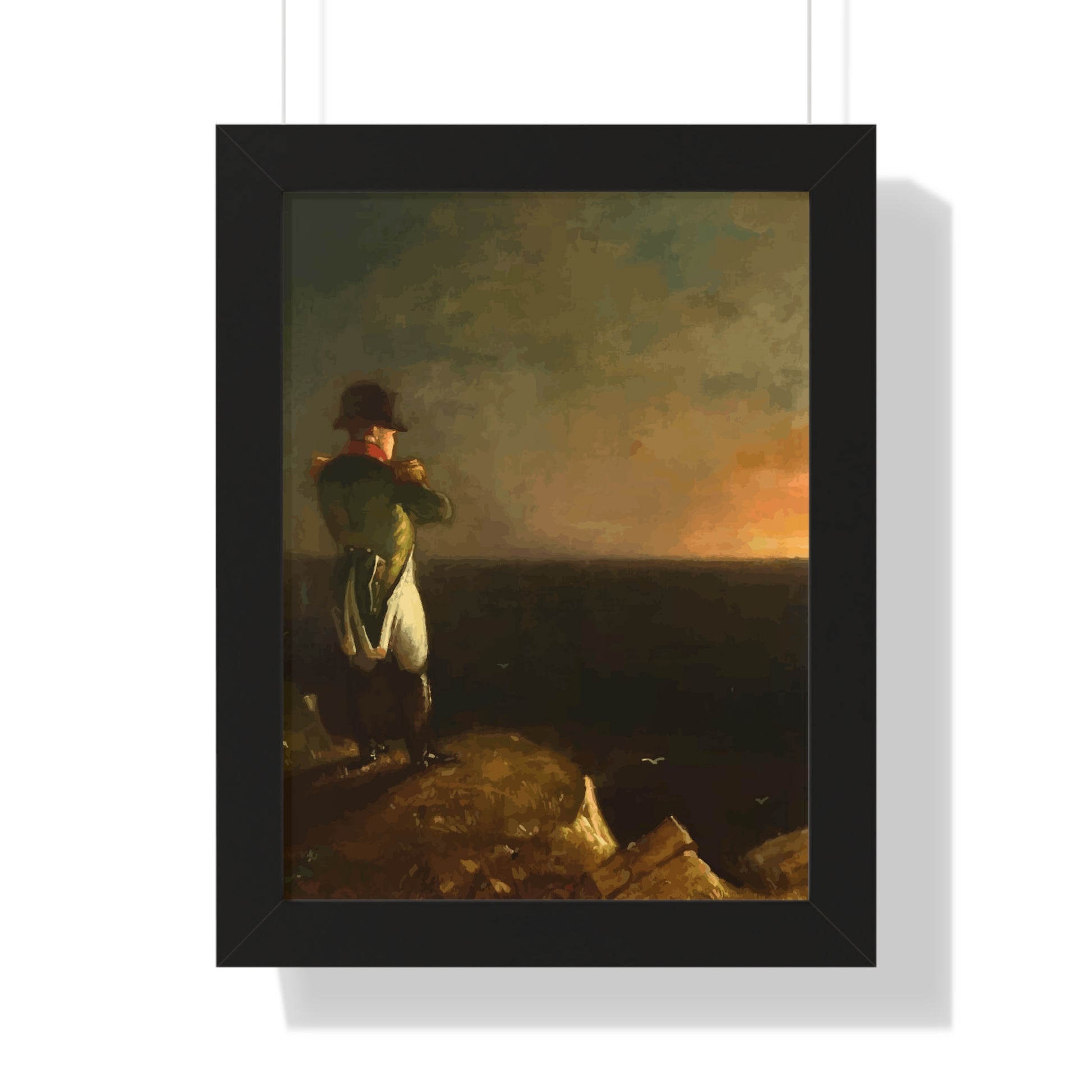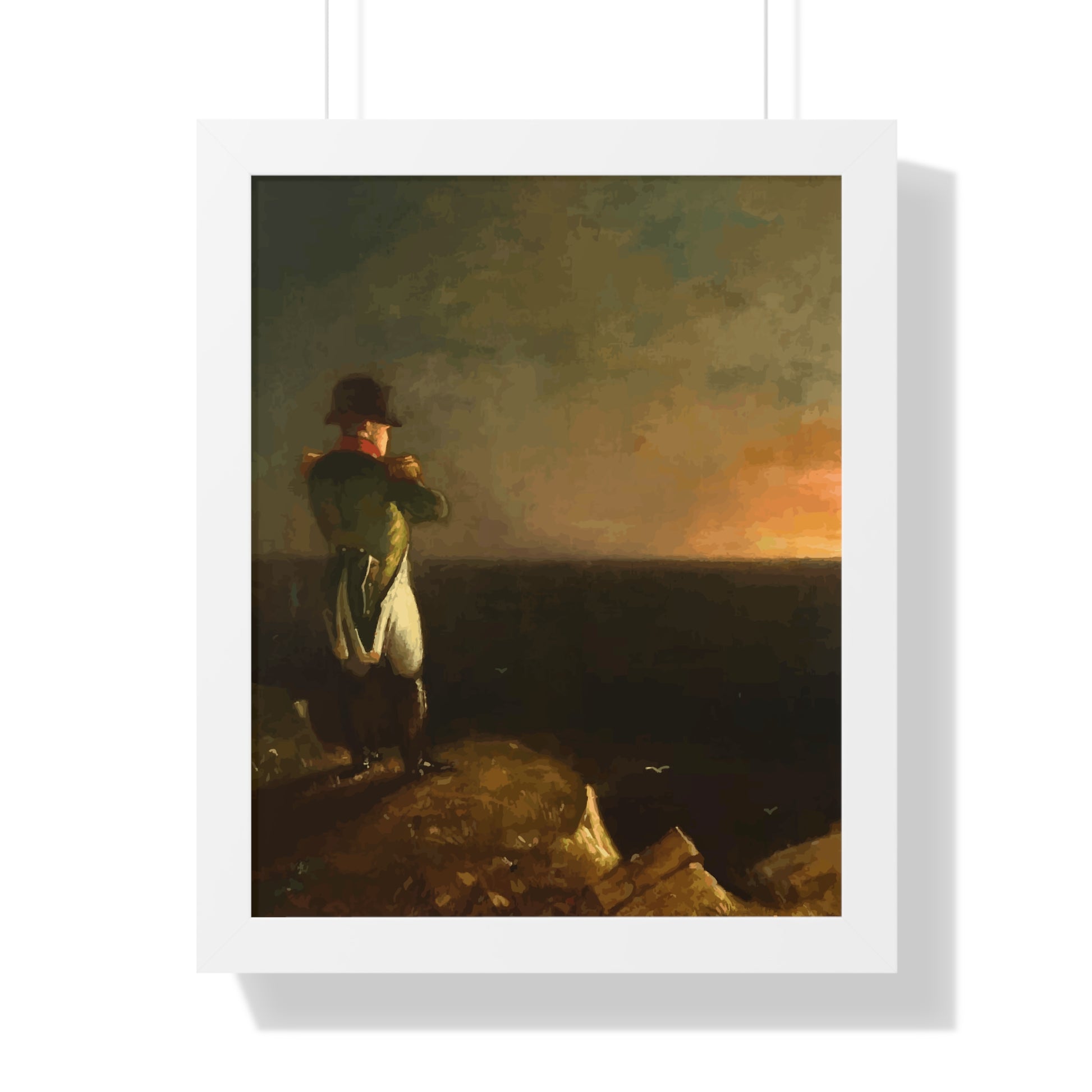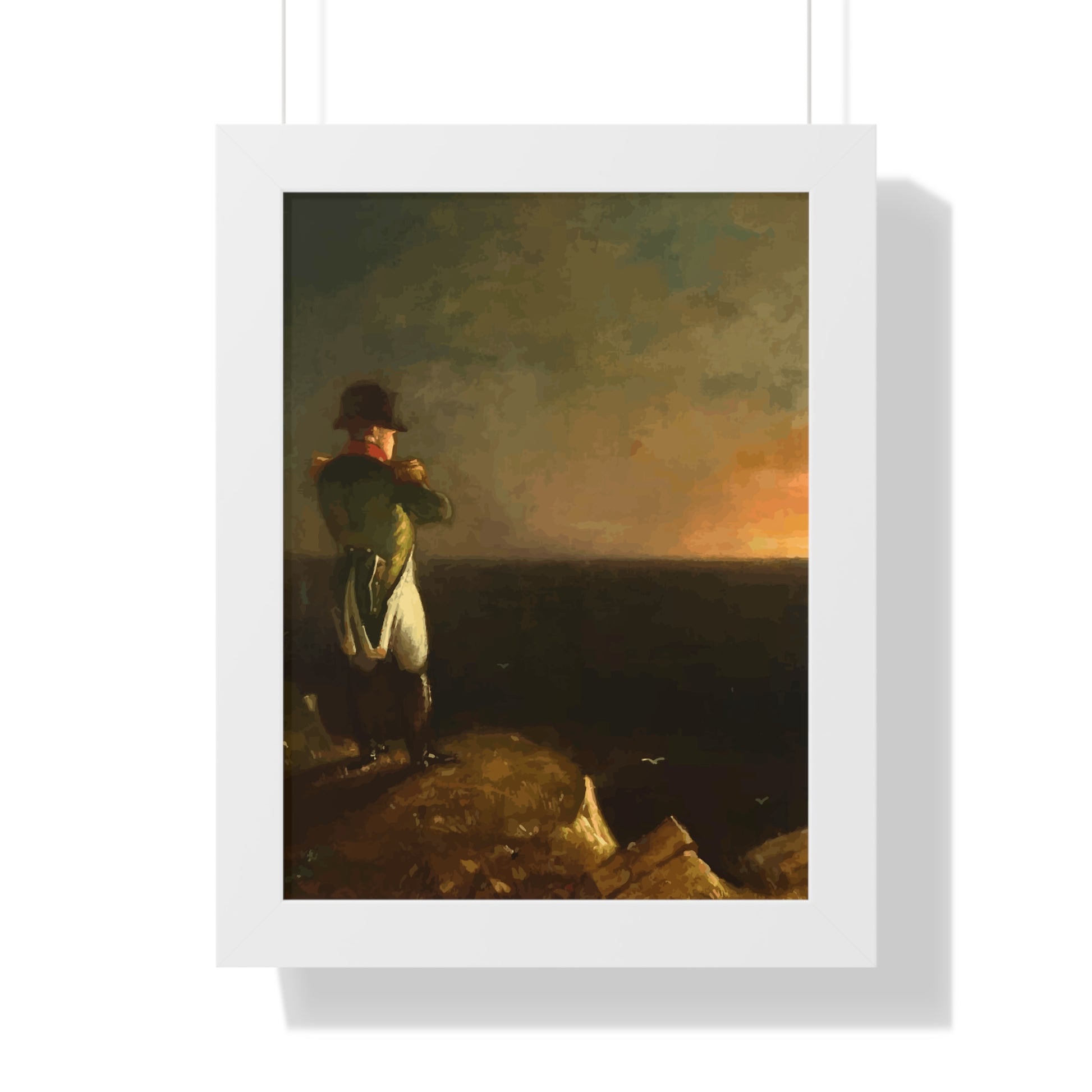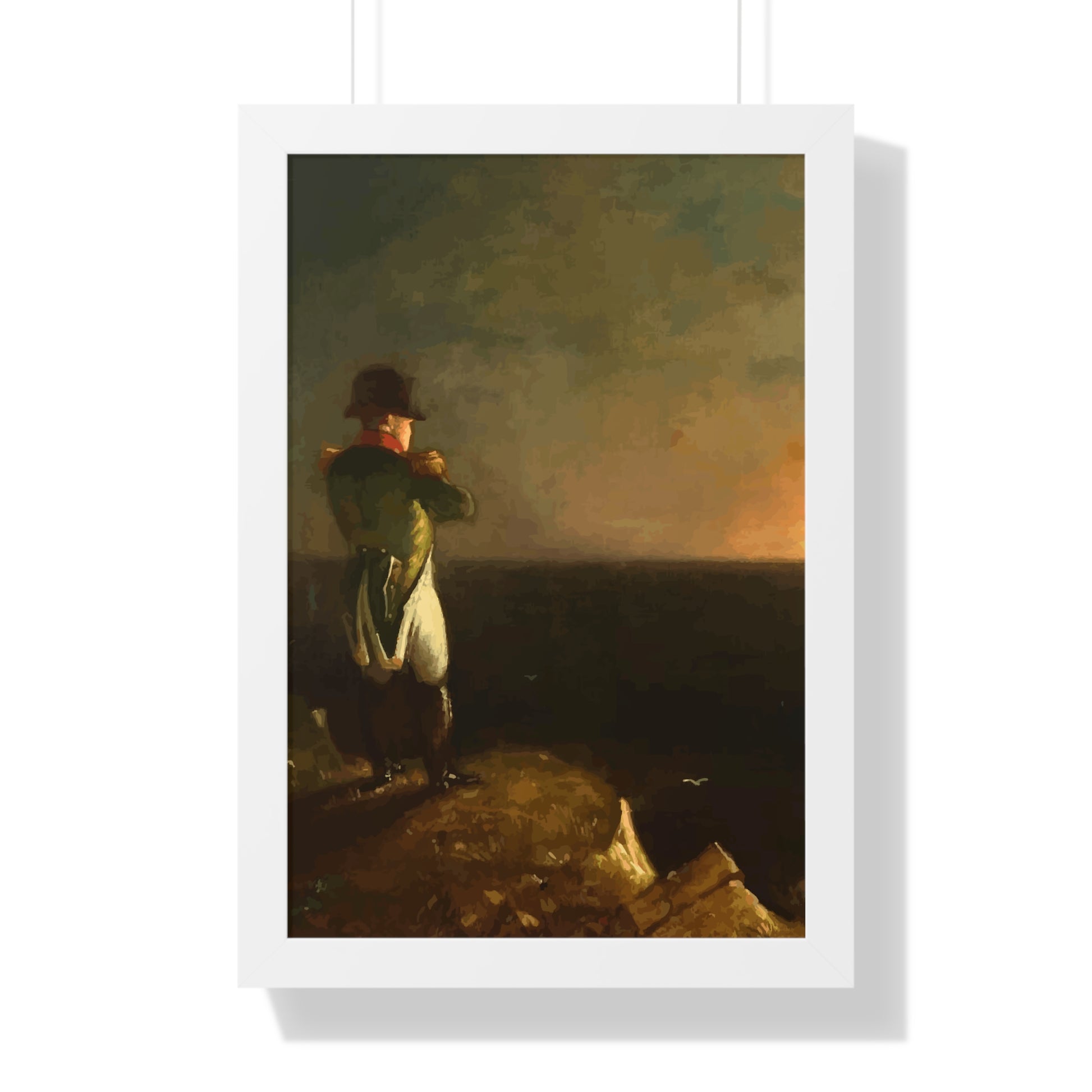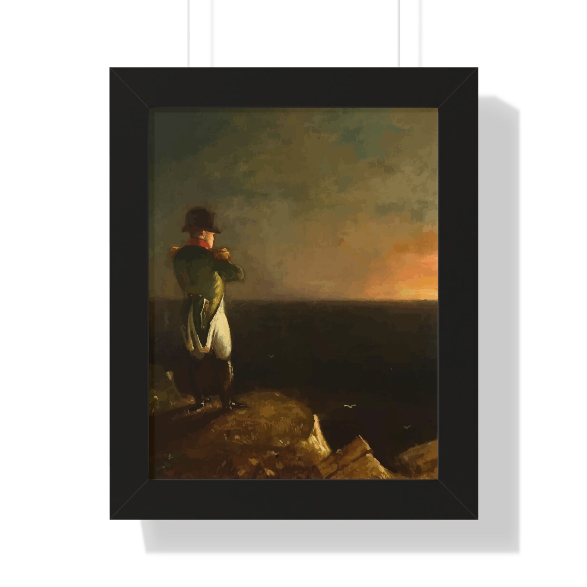 Werten Sie Ihre Wanddekoration mit unserem hochwertigen gerahmten historischen Gemälde „Napoleon im Exil auf St. Helena“, gemalt von Benjamin Robert Haydron, auf. Erhältlich in drei eleganten Farben: Schwarz, Weiß und Walnuss.