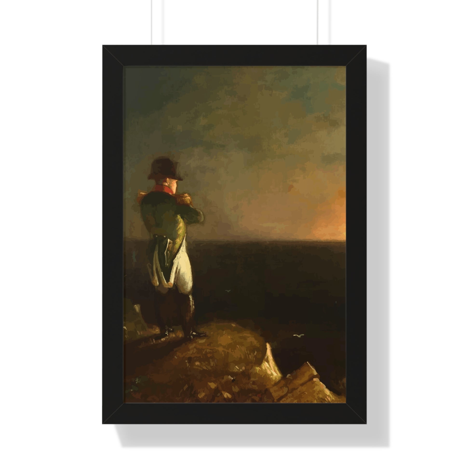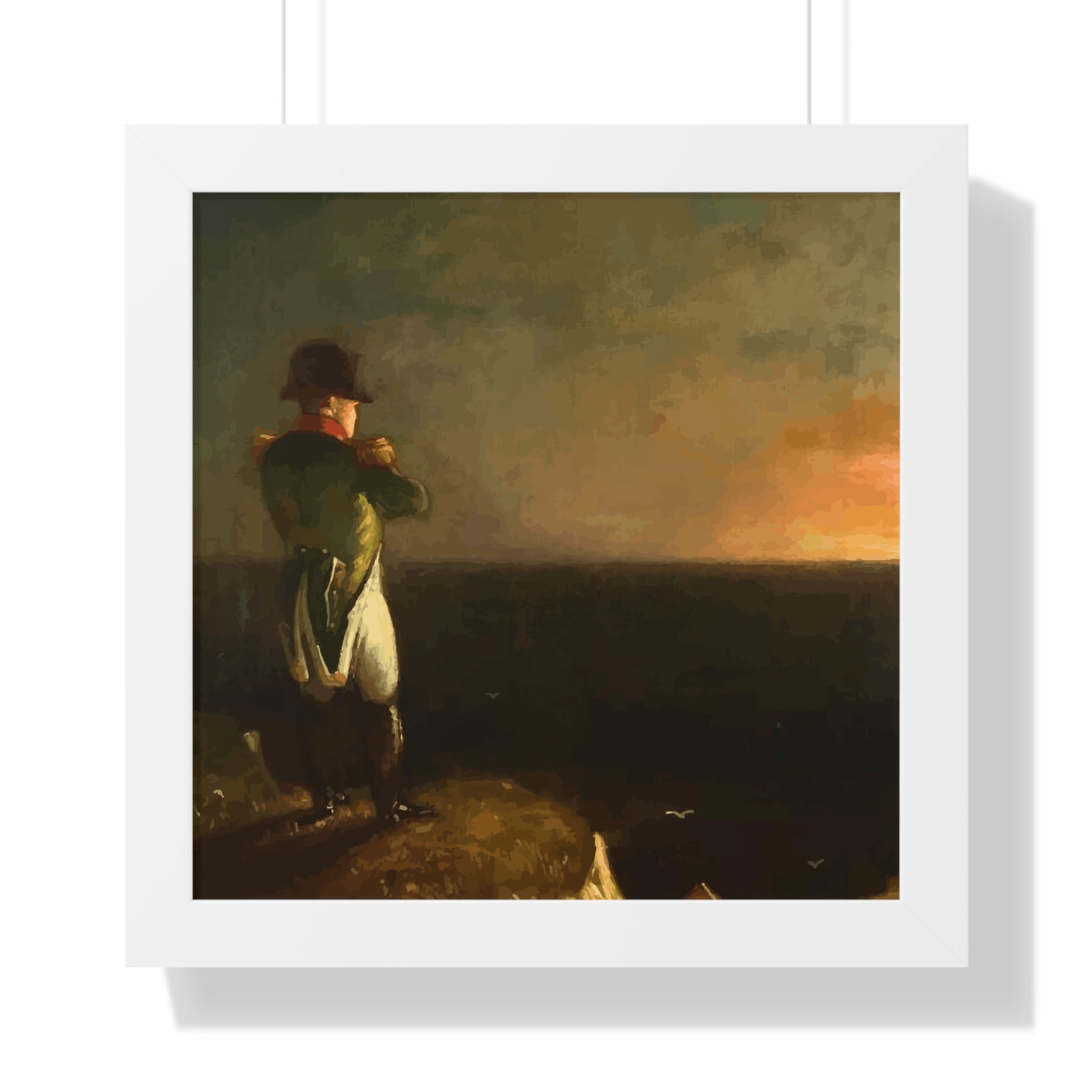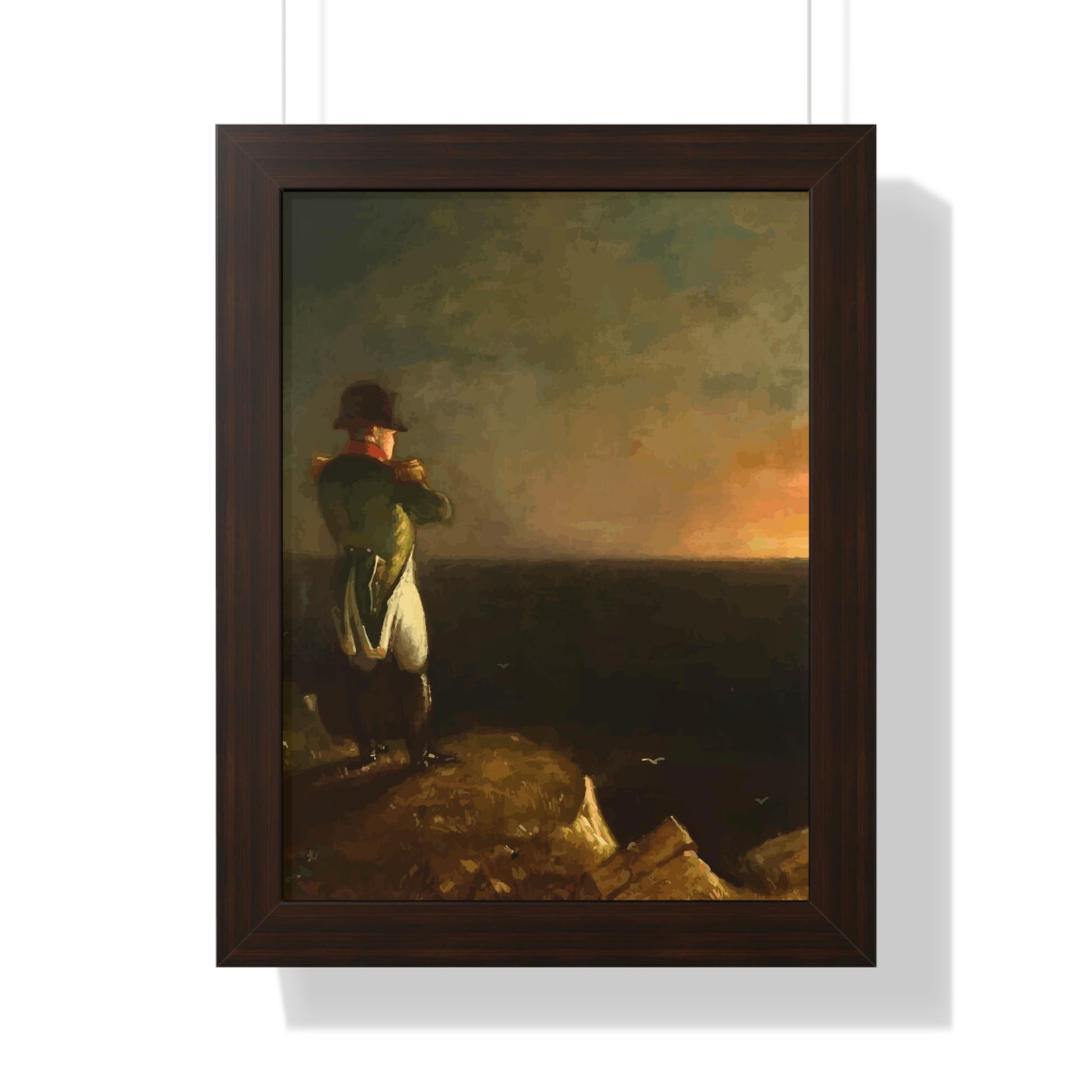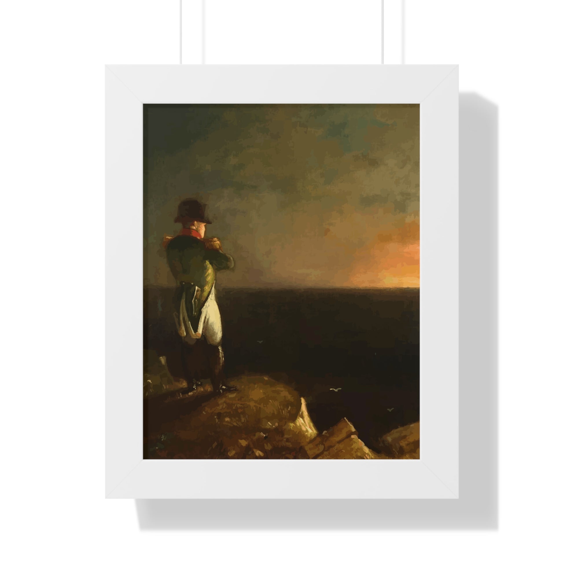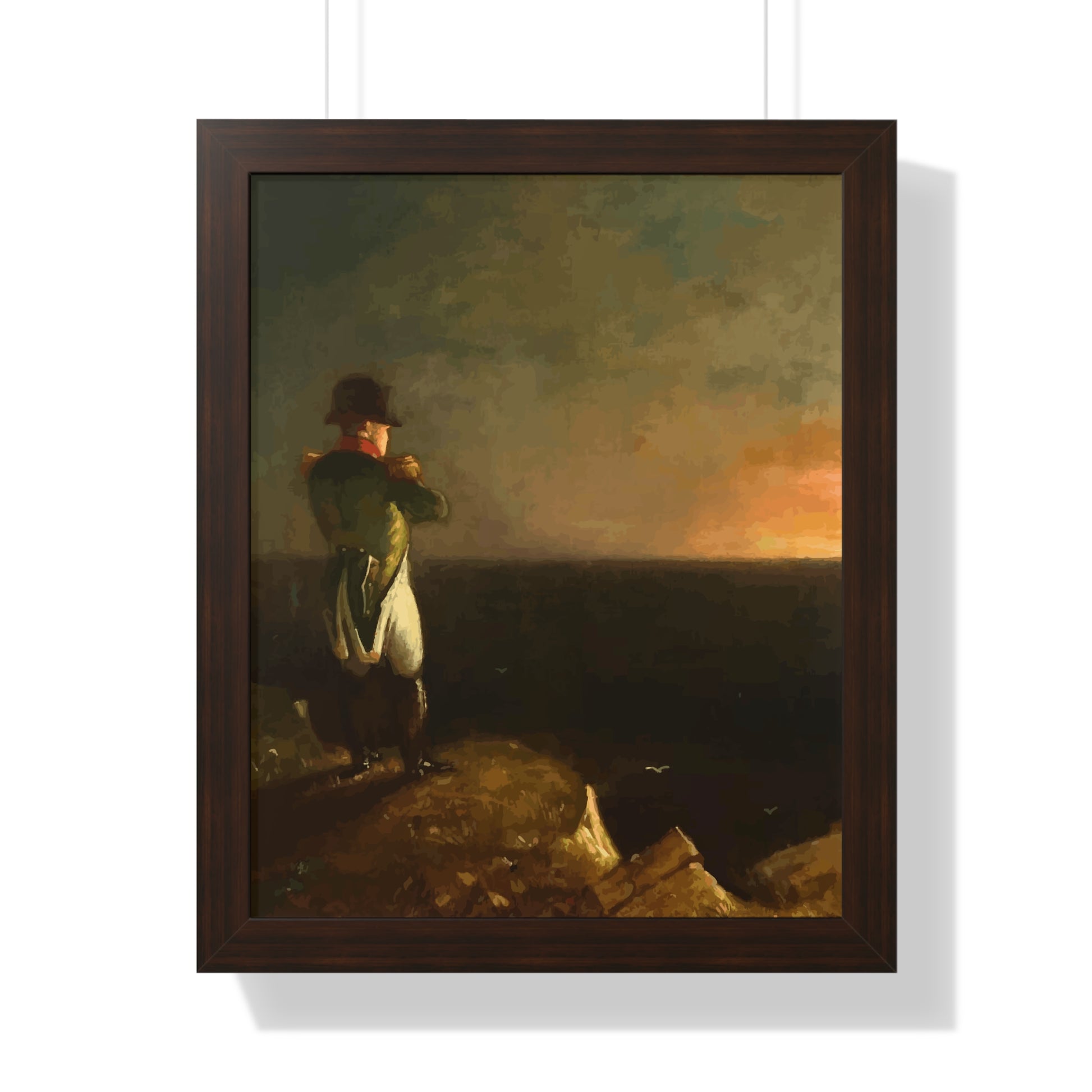 Werten Sie Ihre Wanddekoration mit unserem hochwertigen gerahmten historischen Gemälde „Napoleon im Exil auf St. Helena“, gemalt von Benjamin Robert Haydron, auf. Erhältlich in drei eleganten Farben: Schwarz, Weiß und Walnuss.