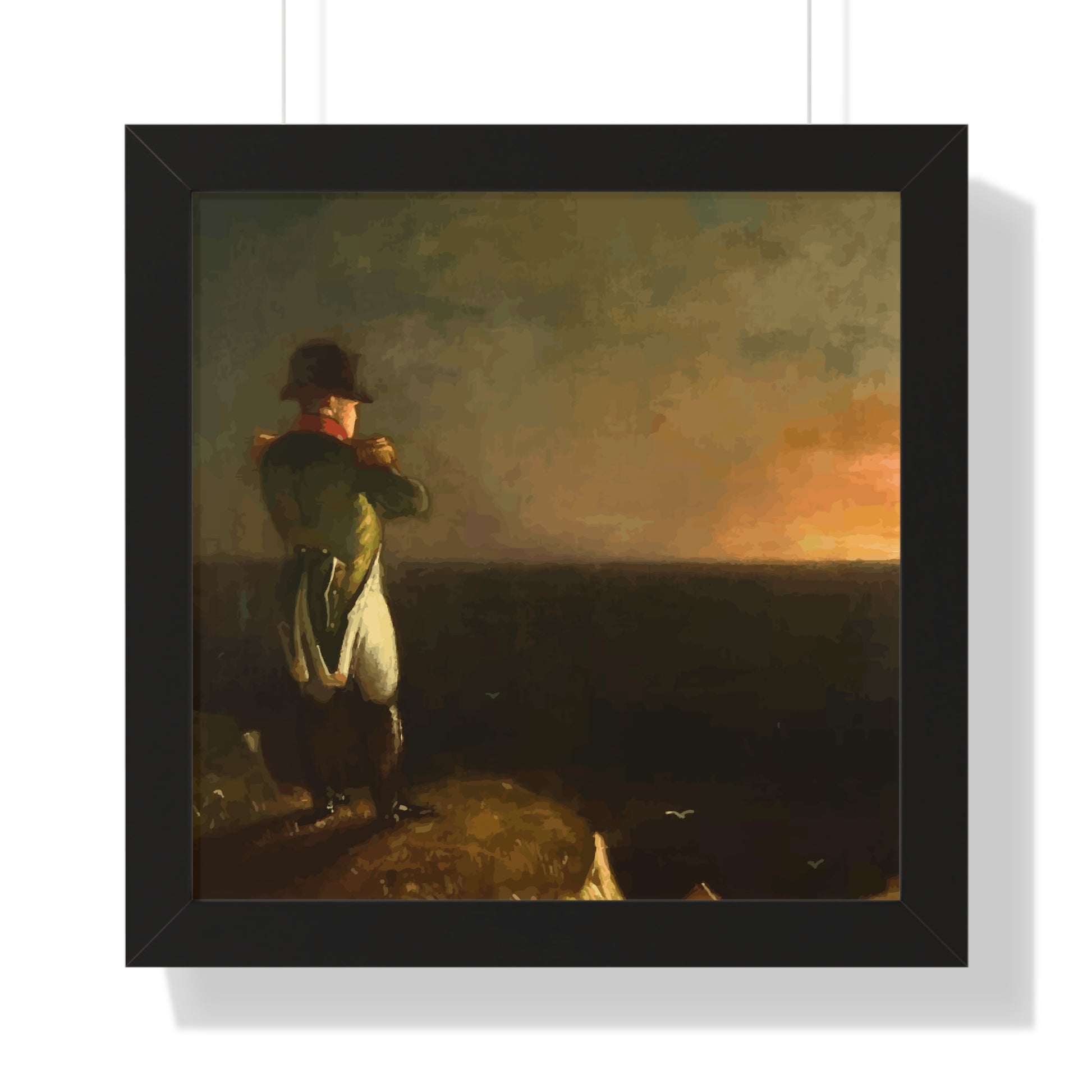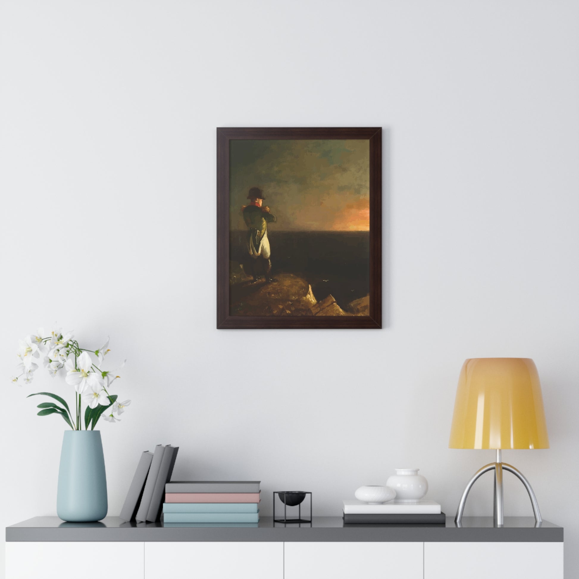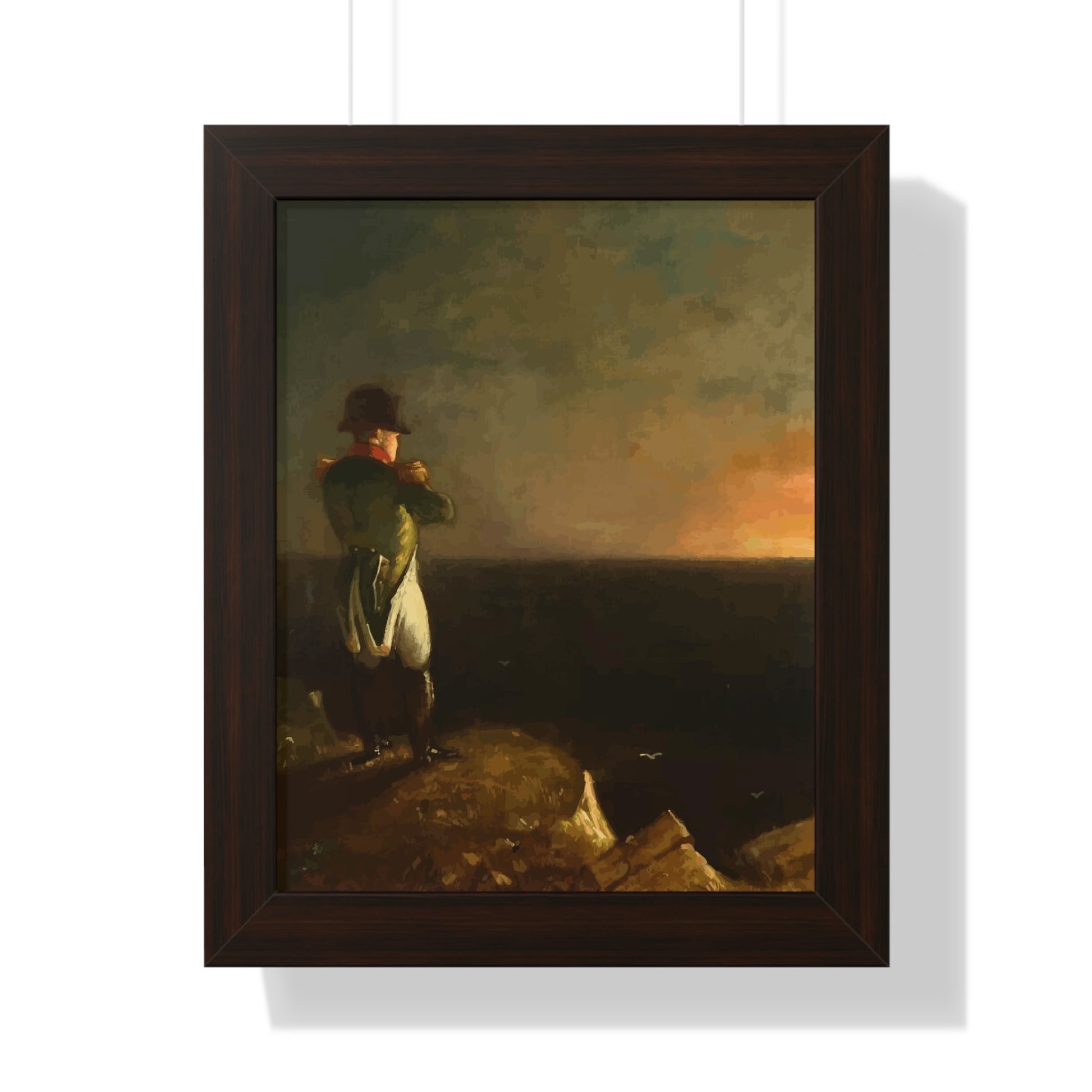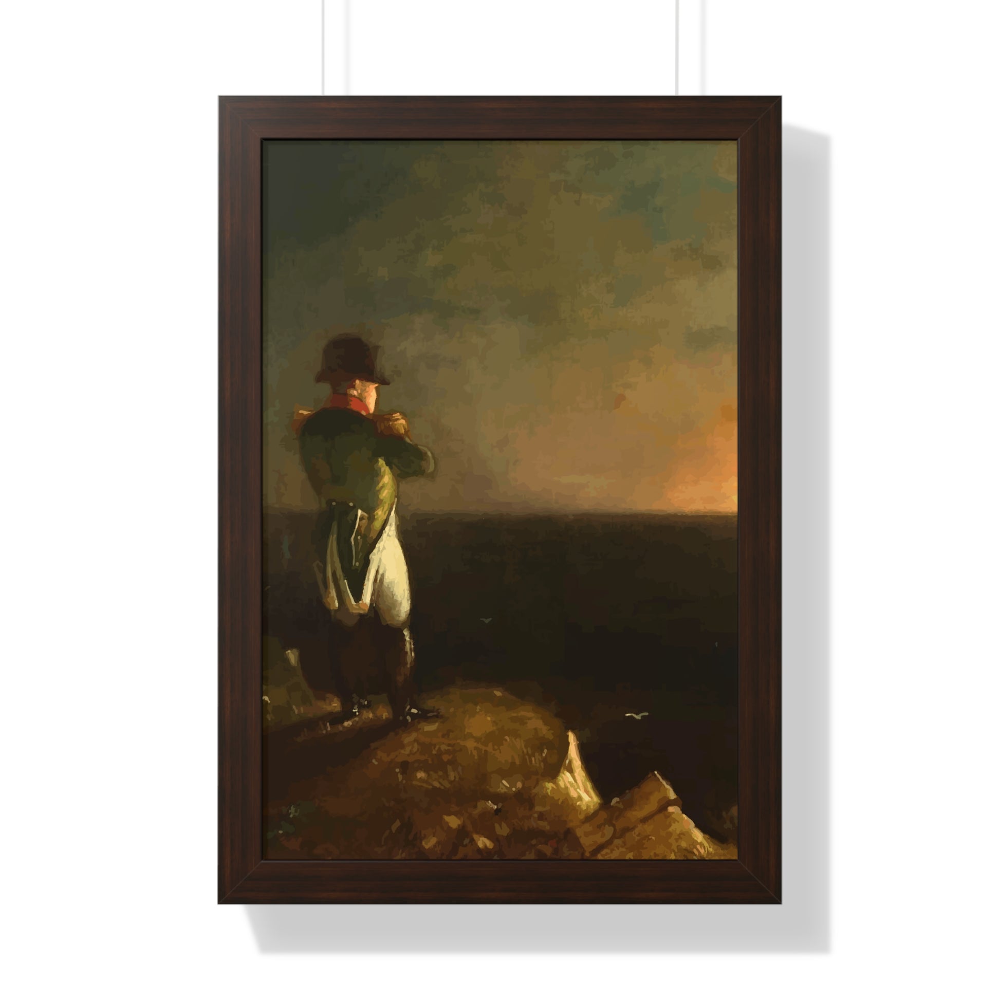 Werten Sie Ihre Wanddekoration mit unserem hochwertigen gerahmten historischen Gemälde „Napoleon im Exil auf St. Helena“, gemalt von Benjamin Robert Haydron, auf. Erhältlich in drei eleganten Farben: Schwarz, Weiß und Walnuss.