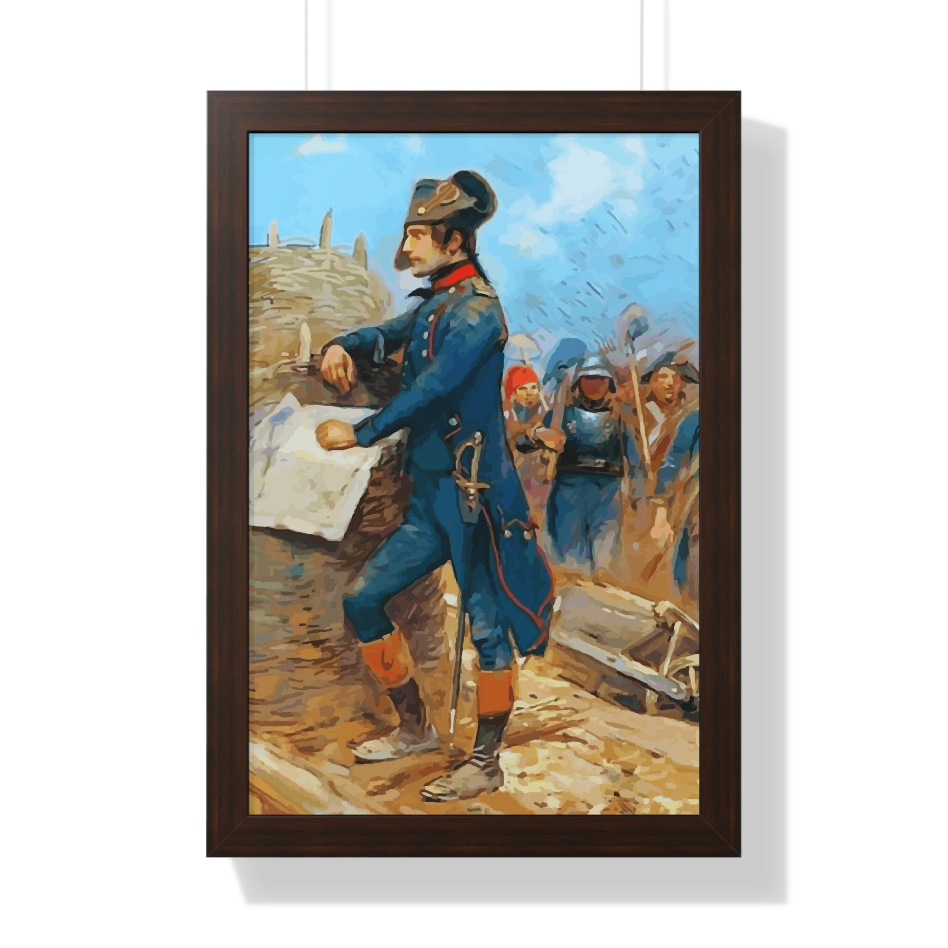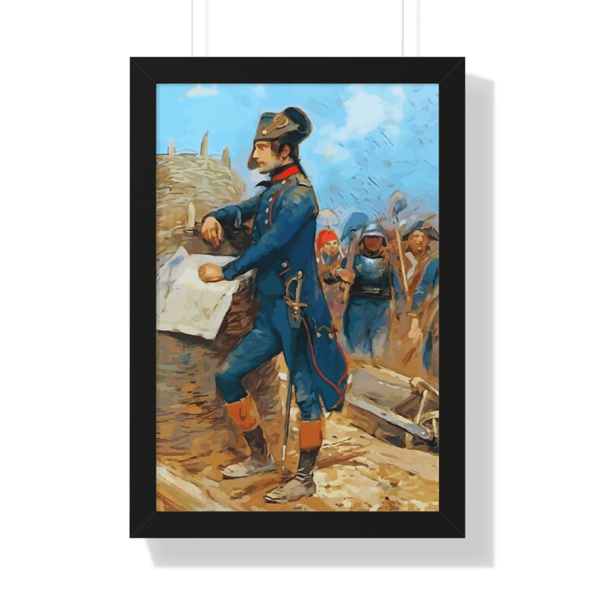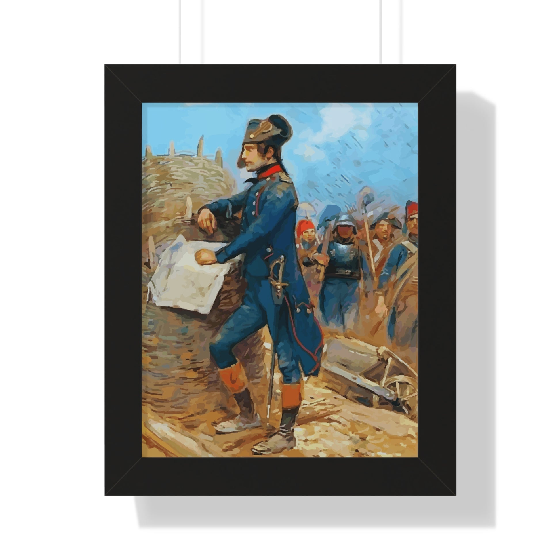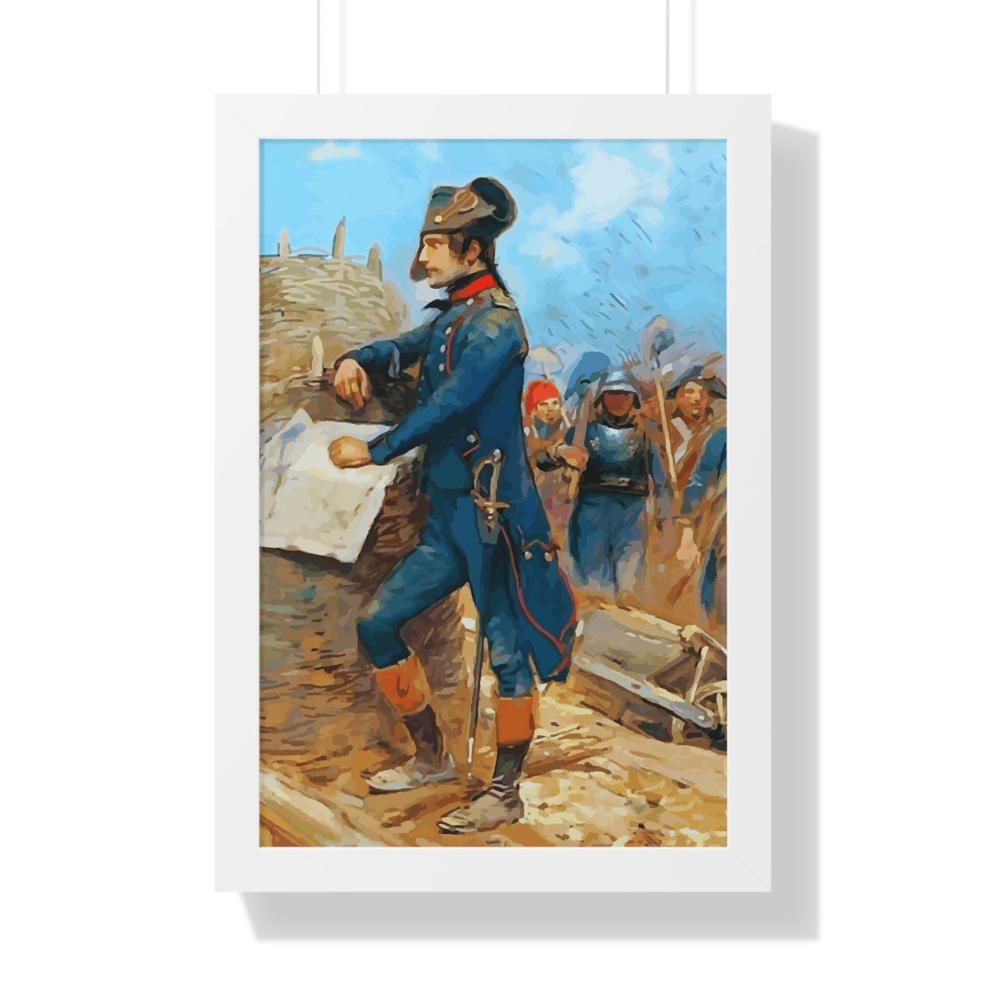Elevate your home décor with this stunning Framed Vertical Poster of Napoleon Bonaparte at the Siege of Toulon painted by Édouard Detaille that brings history to life! Perfect for art enthusiasts and history buffs alike, this exquisite piece creates a captivating atmosphere in any space. Whether you're decorating a living room, office, or study, this framed poster effortlessly enhances your surroundings with its vibrant colors and rich detail.
