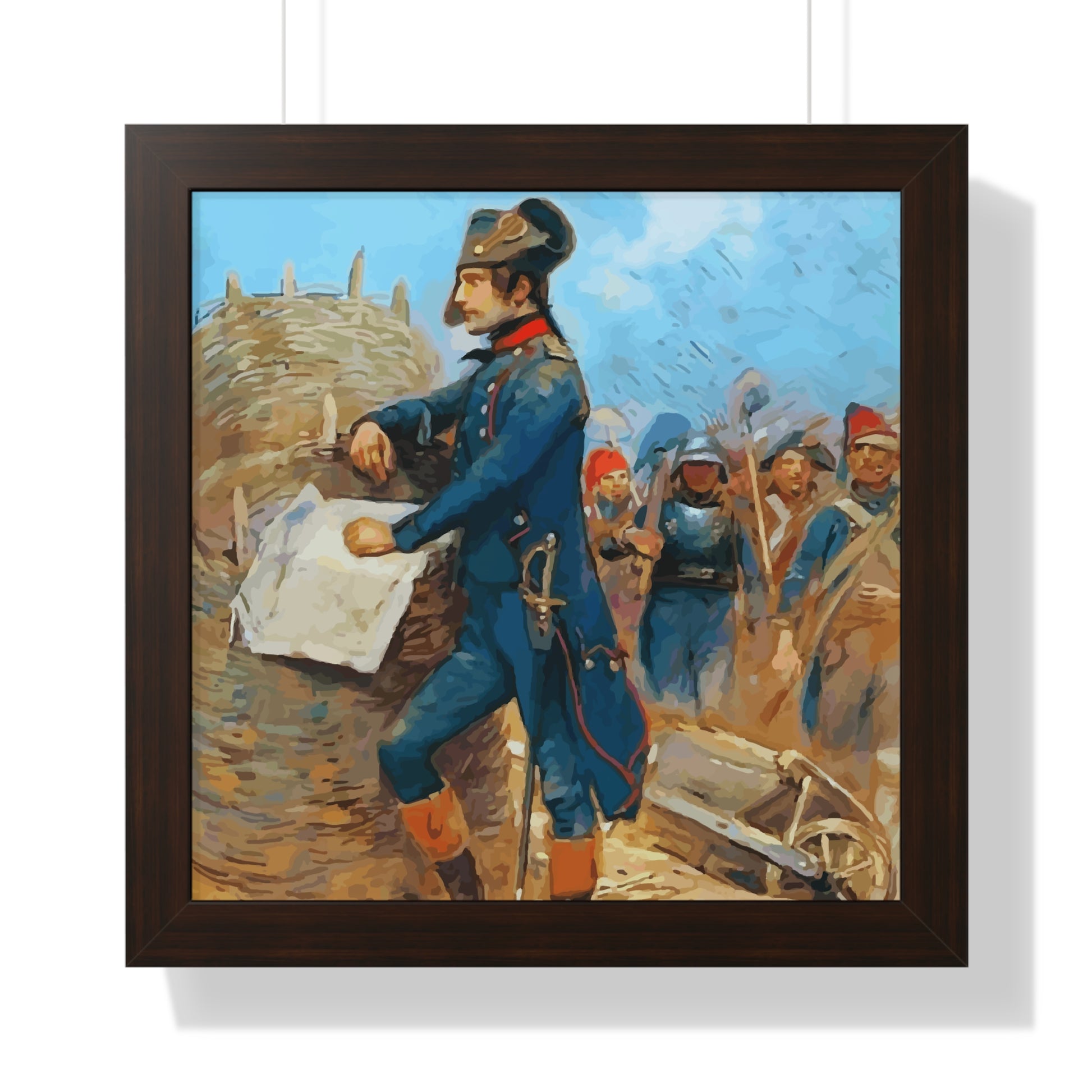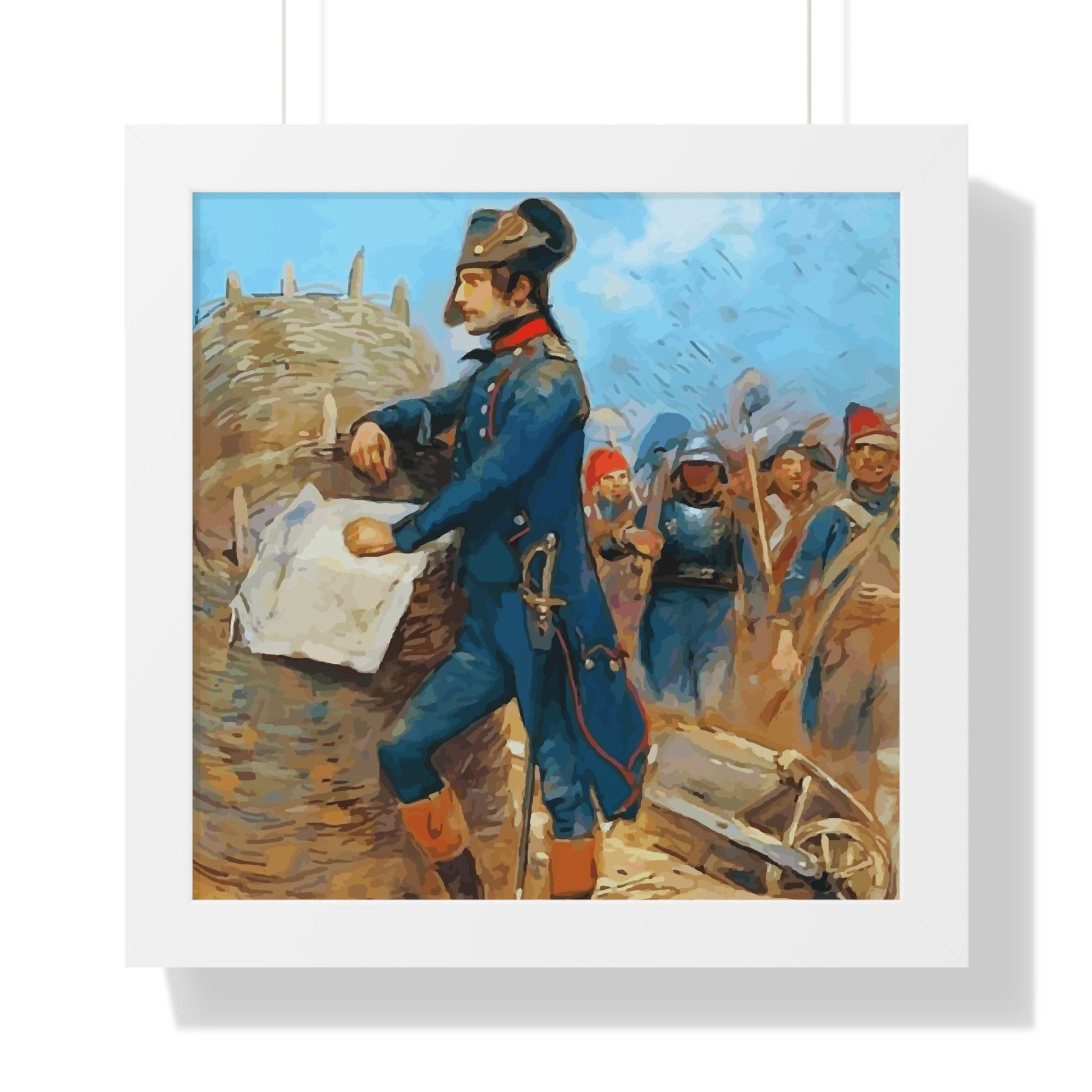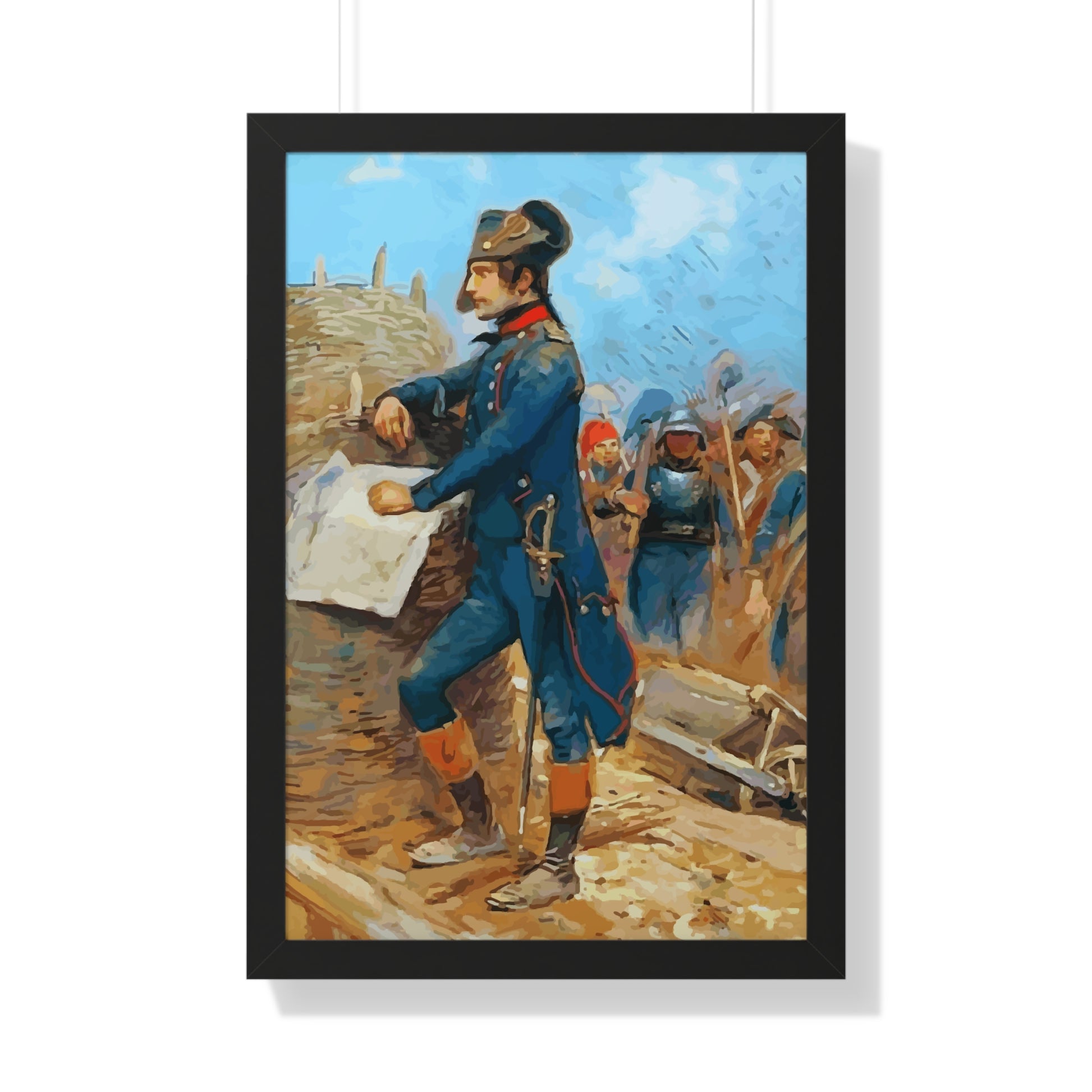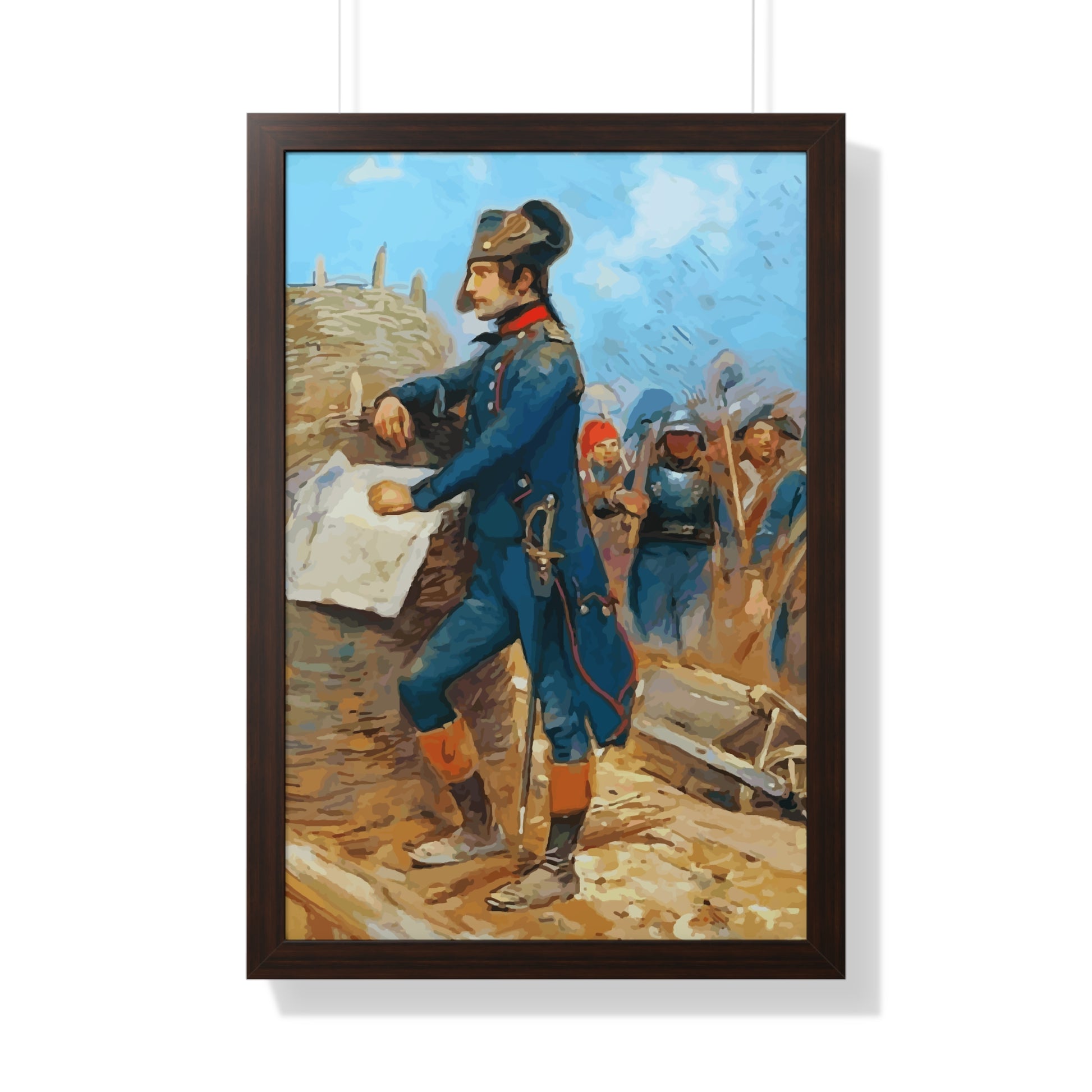 Elevate your home décor with this stunning Framed Vertical Poster of Napoleon Bonaparte at the Siege of Toulon painted by Édouard Detaille that brings history to life! Perfect for art enthusiasts and history buffs alike, this exquisite piece creates a captivating atmosphere in any space. Whether you're decorating a living room, office, or study, this framed poster effortlessly enhances your surroundings with its vibrant colors and rich detail.