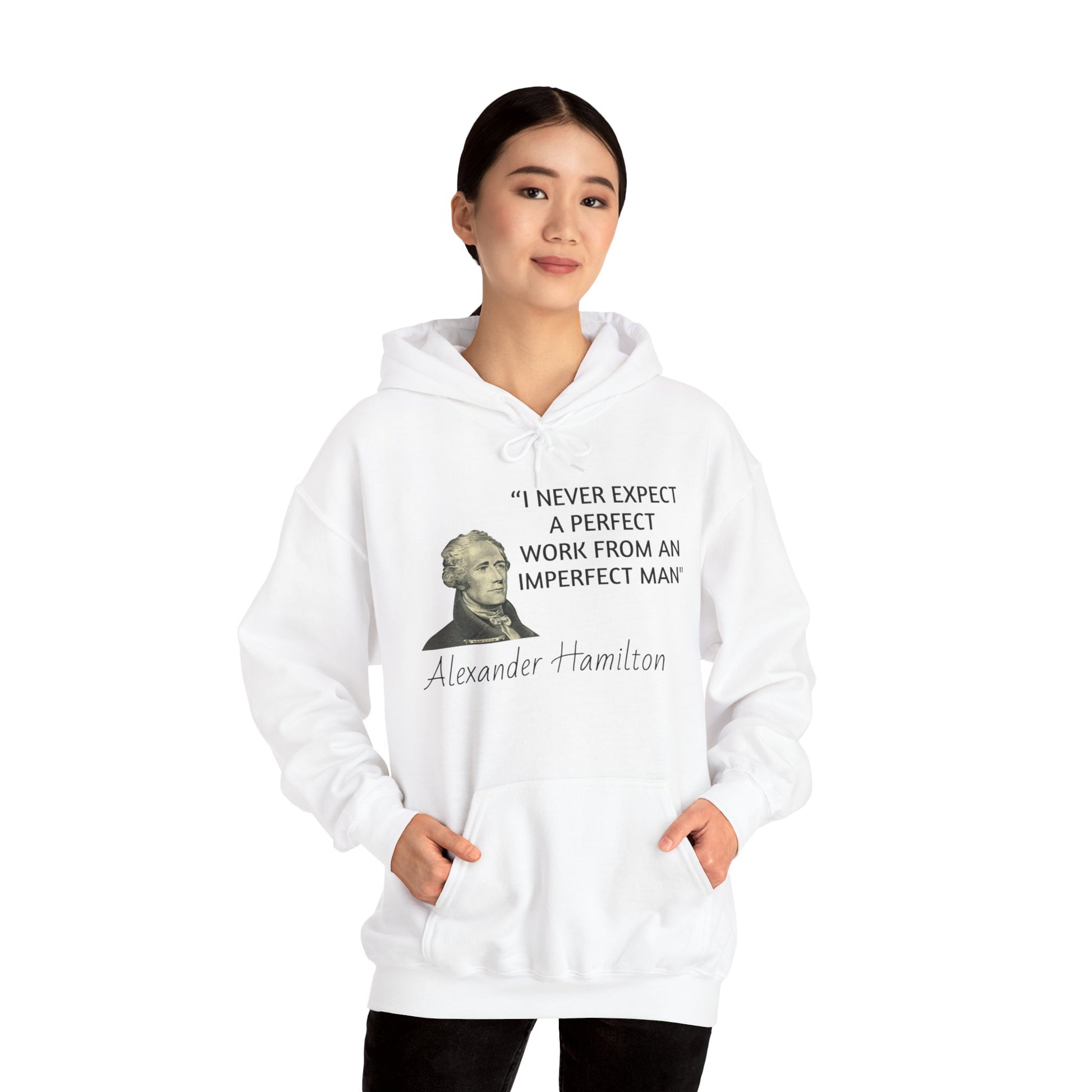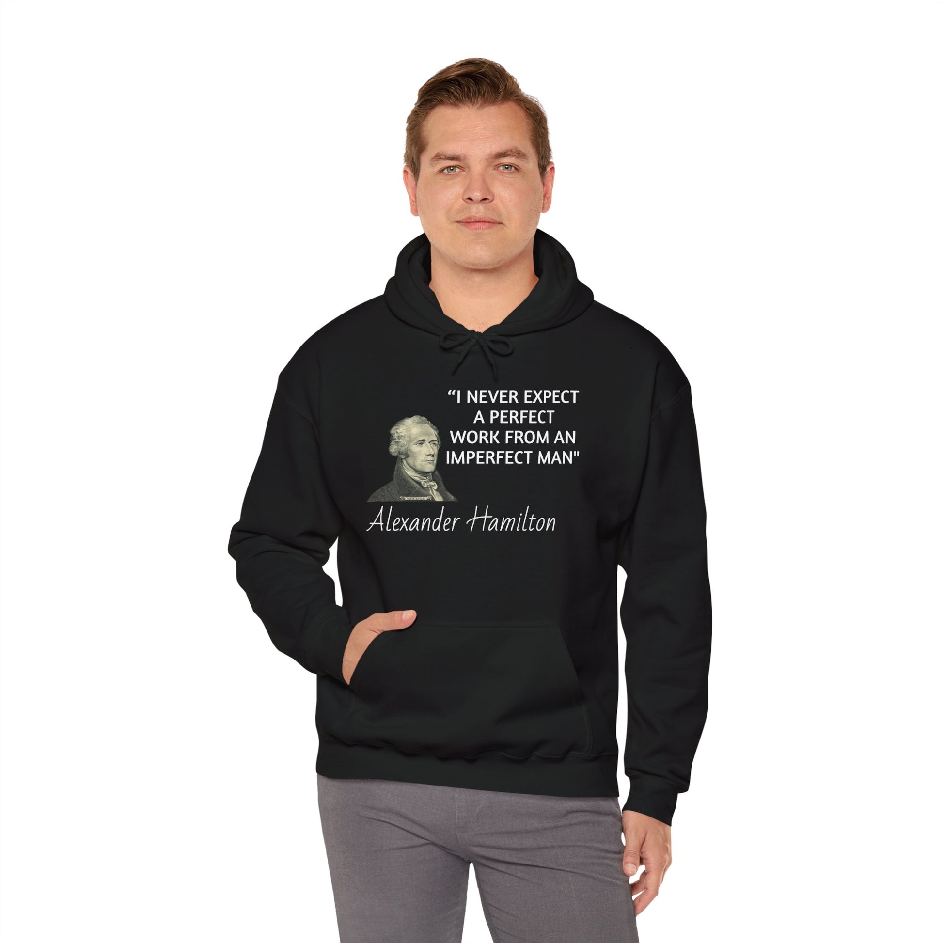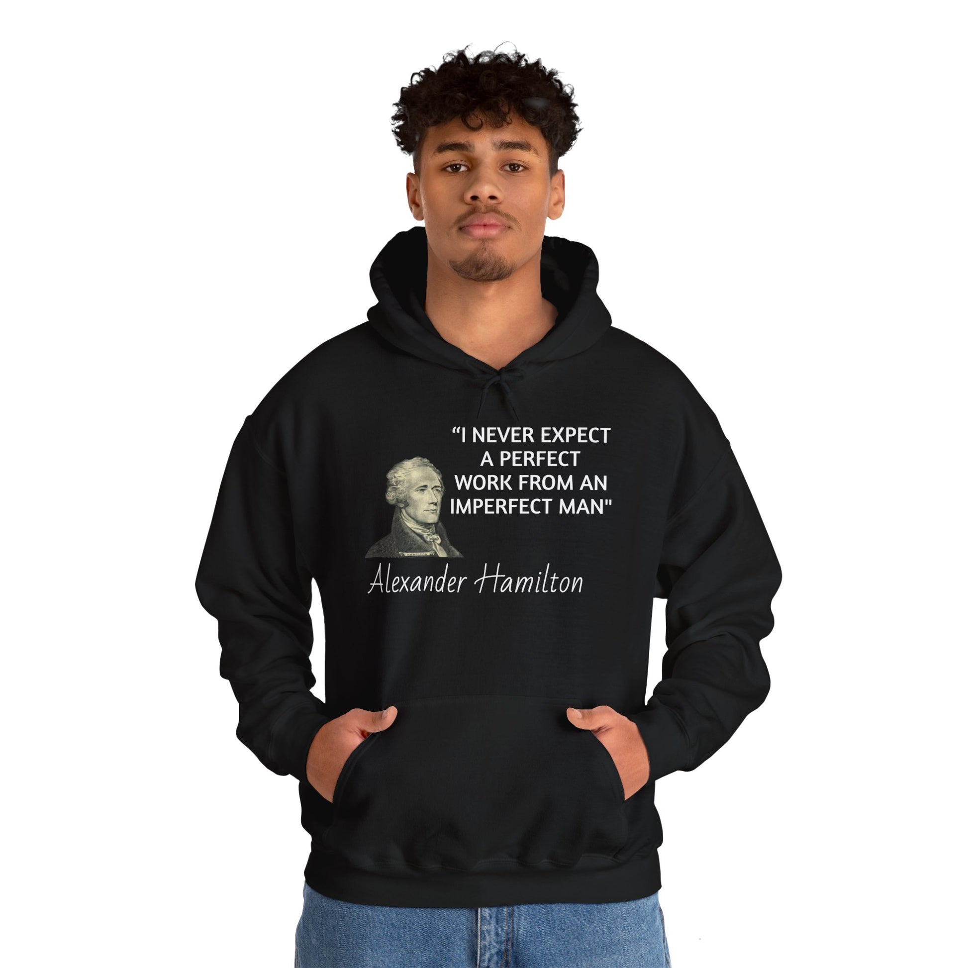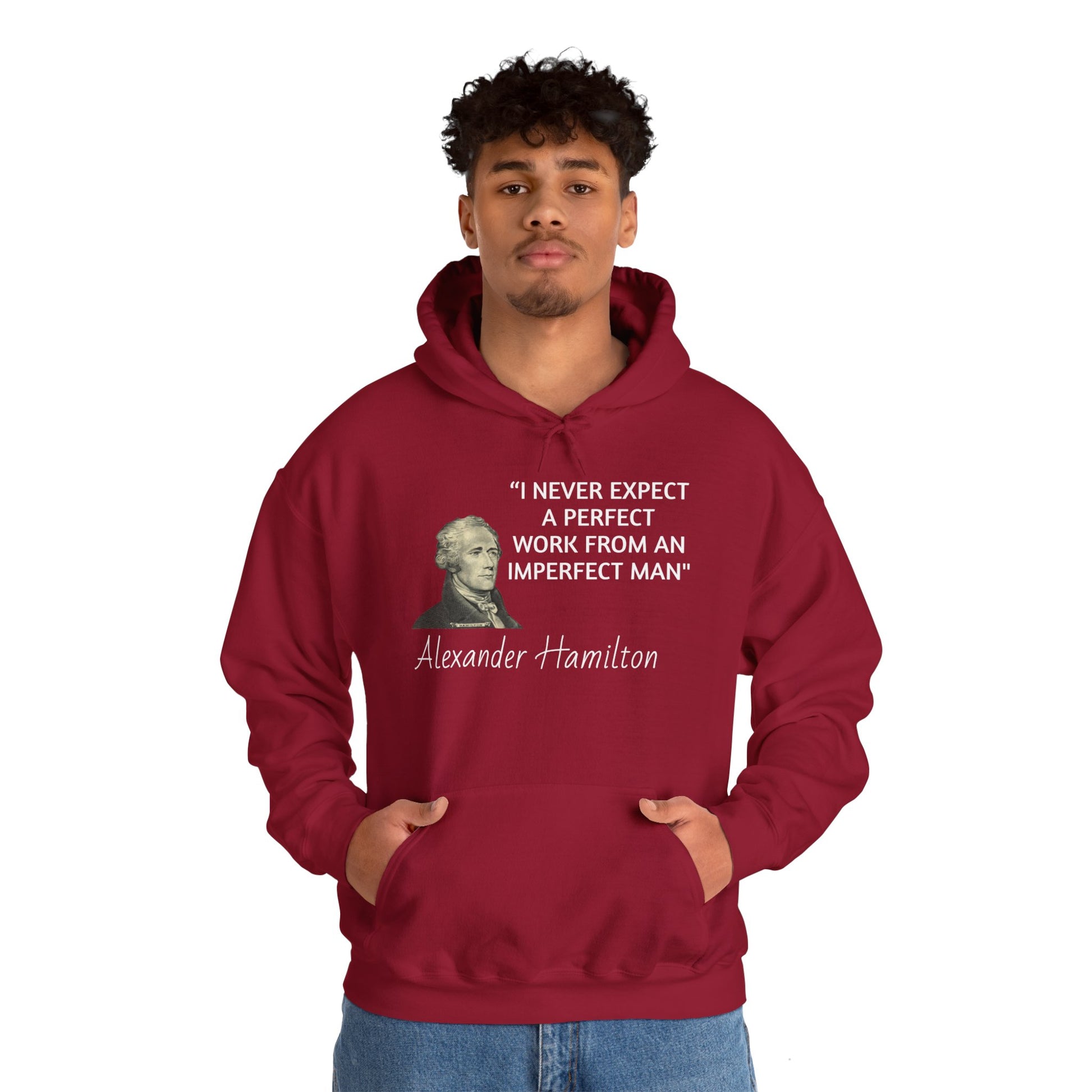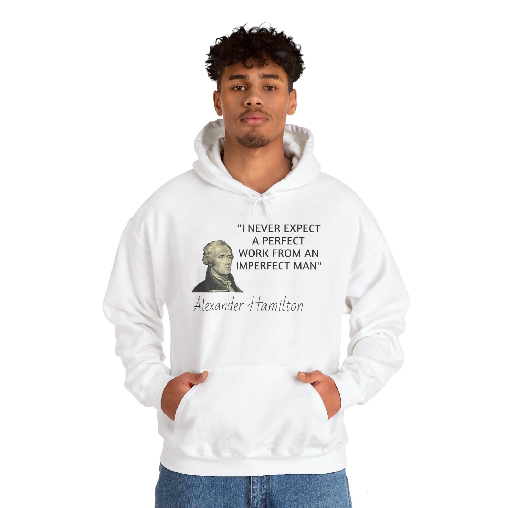 This Alexander Hamilton unisex heavy blend hooded sweatshirt embodies ultimate comfort and style, perfect for showing off your American History in cozy, chilly days. Crafted from a thick blend of 50% cotton and 50% polyester, the hoodie delivers a plush, soft, and warm feel that makes it a go-to choice for relaxation. Its classic fit, medium-heavy fabric (8.0 oz/yd² or 271 g/m²), and spacious kangaroo pocket provide both practicality and comfort for everyday wear.