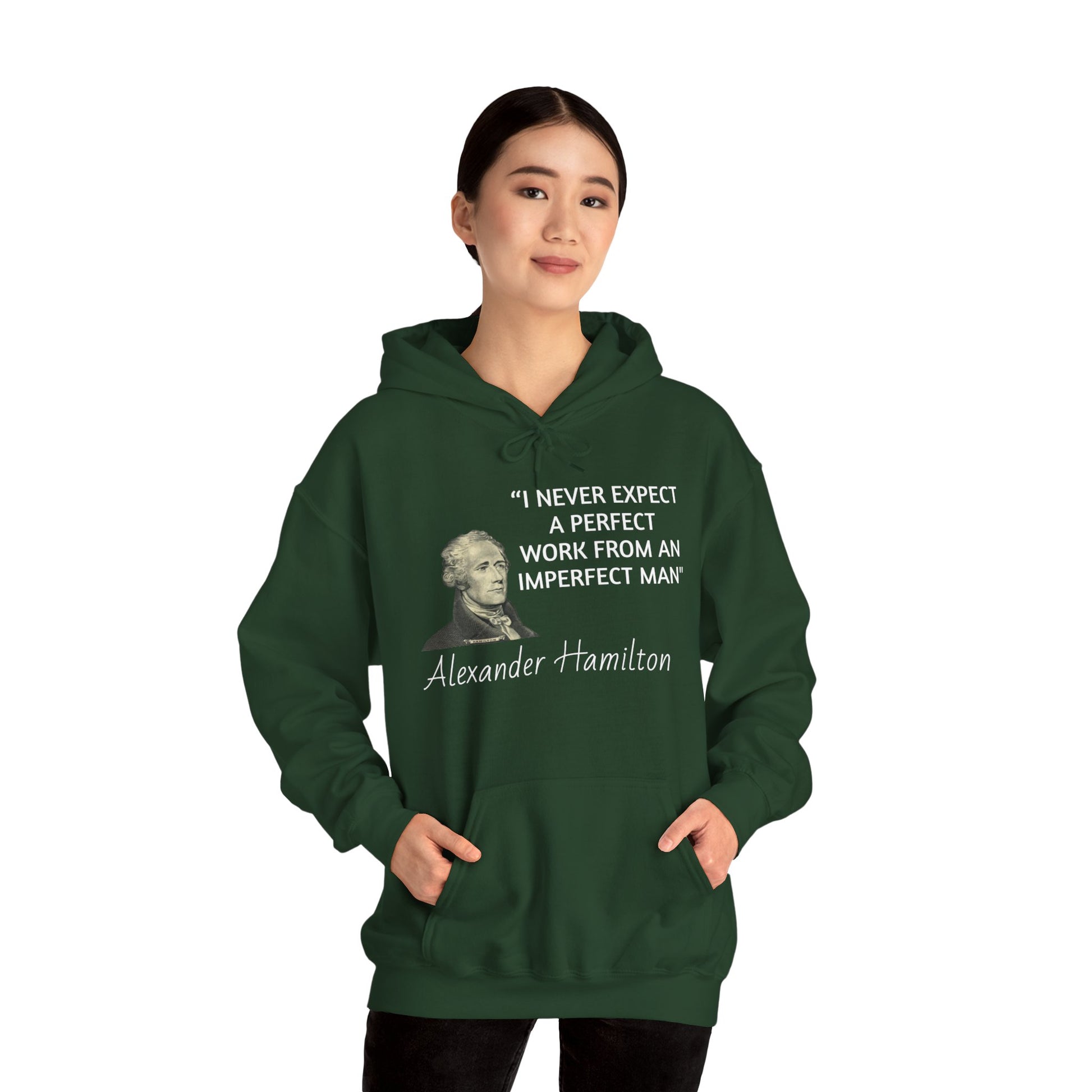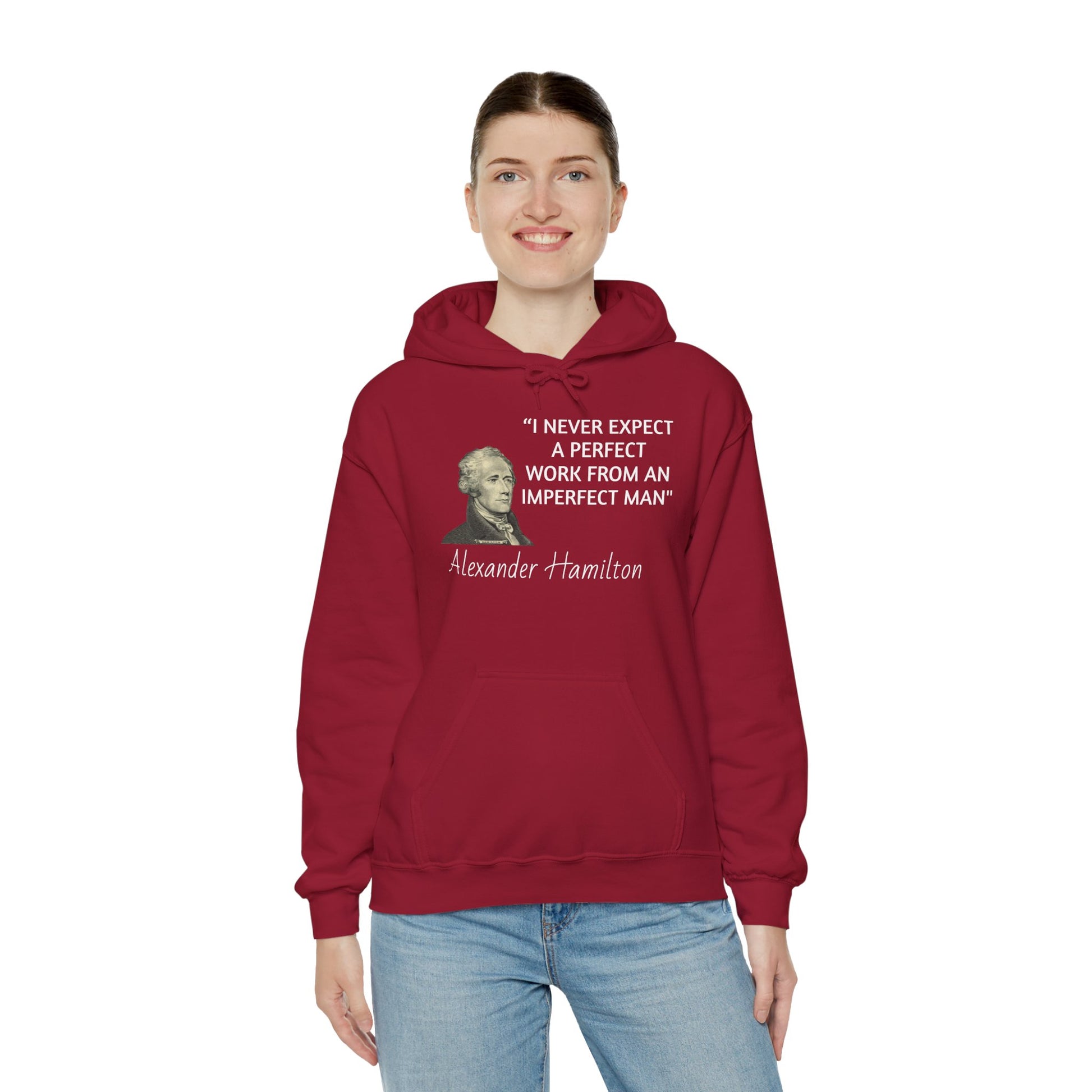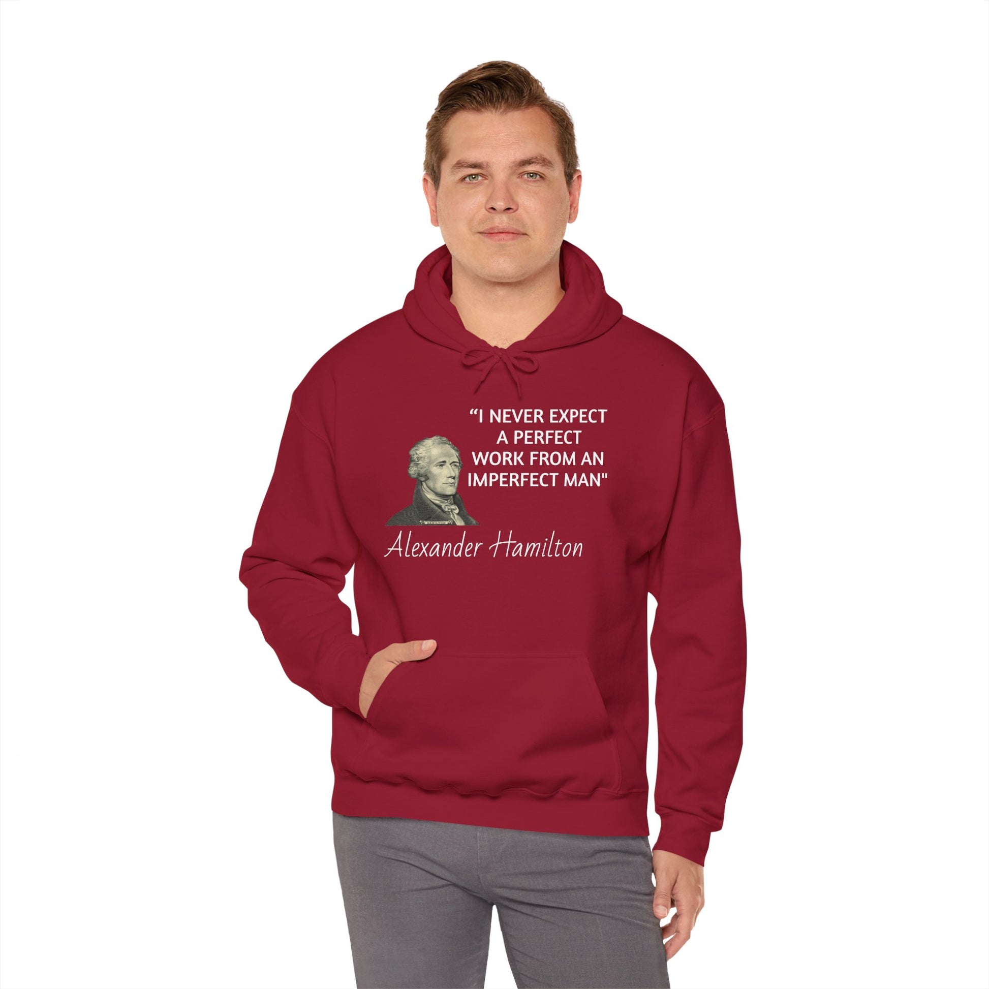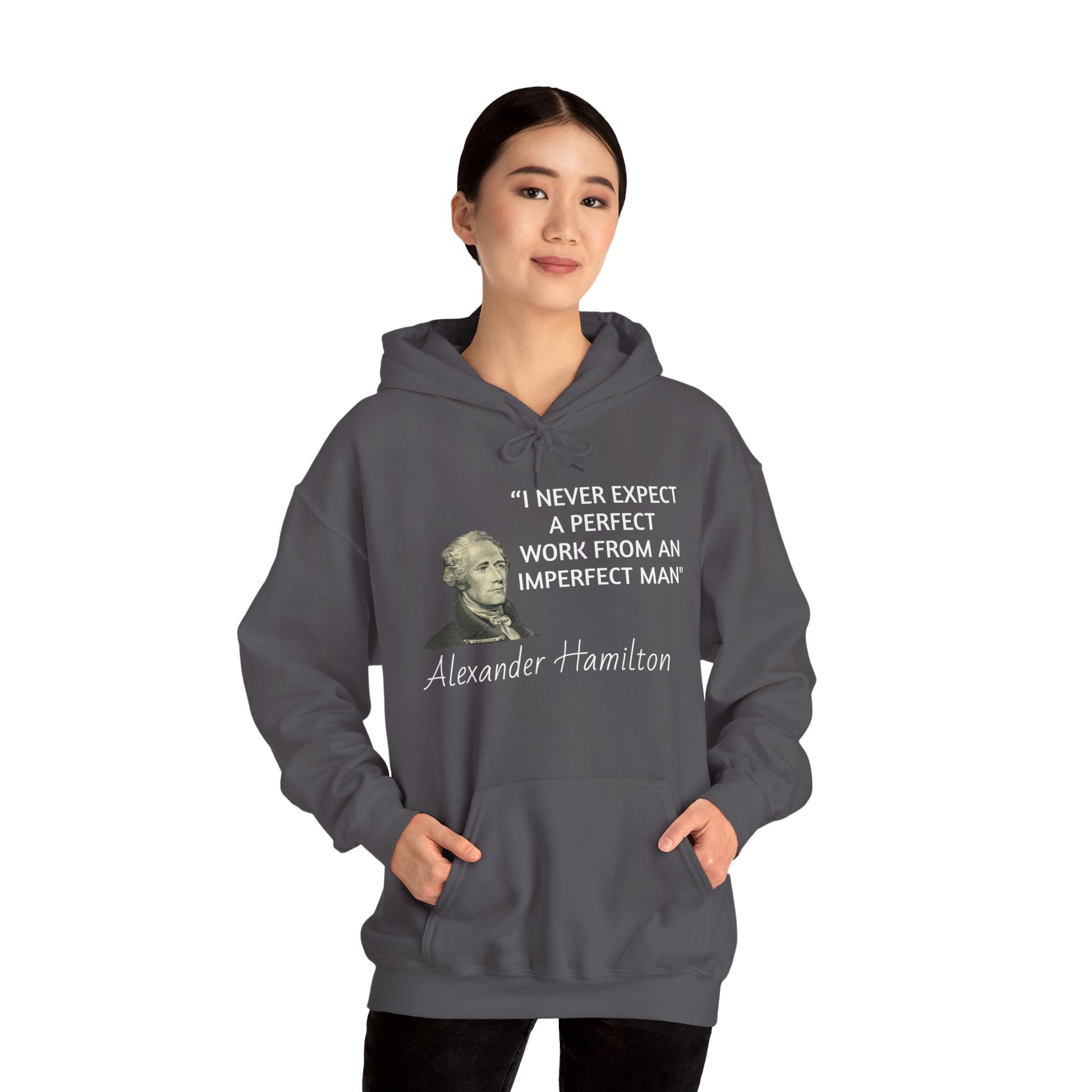 This Alexander Hamilton unisex heavy blend hooded sweatshirt embodies ultimate comfort and style, perfect for showing off your American History in cozy, chilly days. Crafted from a thick blend of 50% cotton and 50% polyester, the hoodie delivers a plush, soft, and warm feel that makes it a go-to choice for relaxation. Its classic fit, medium-heavy fabric (8.0 oz/yd² or 271 g/m²), and spacious kangaroo pocket provide both practicality and comfort for everyday wear.
