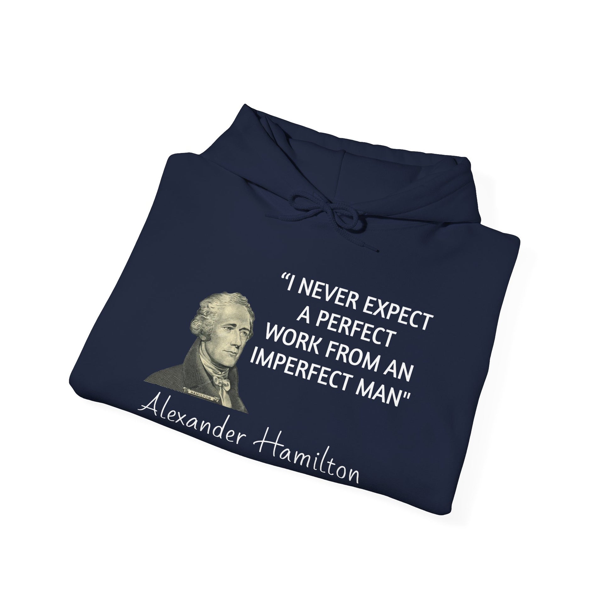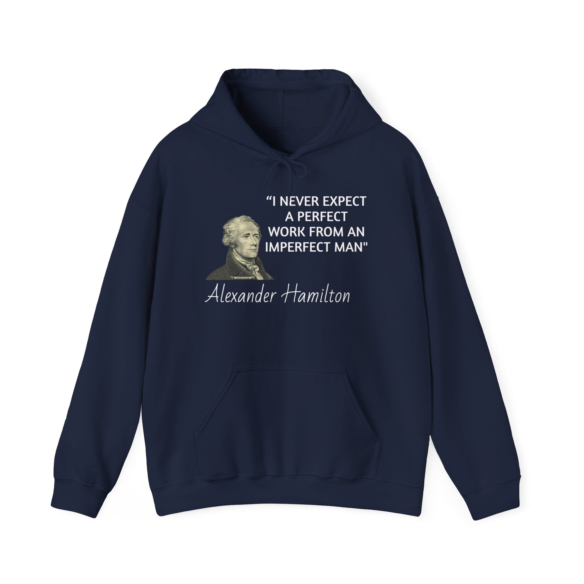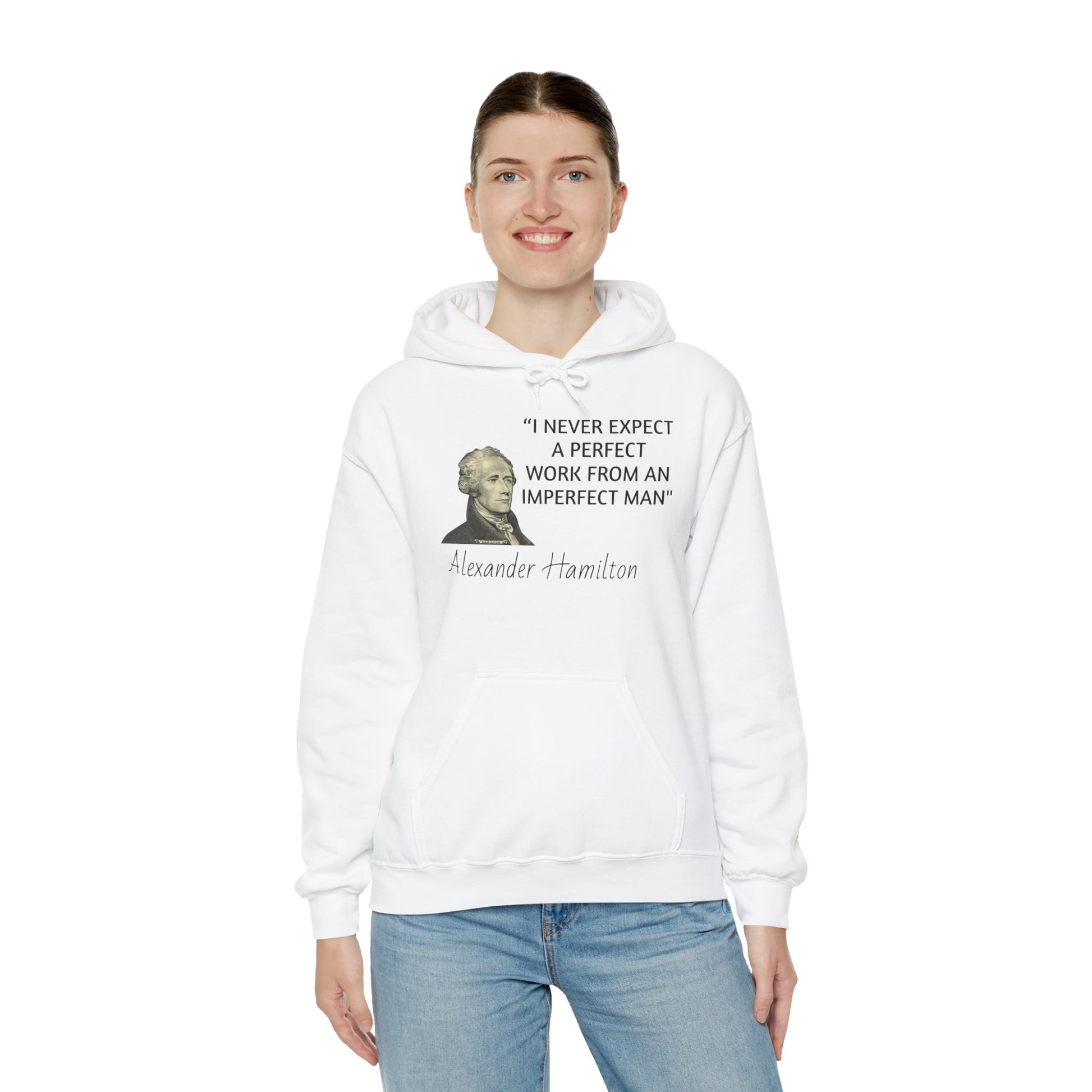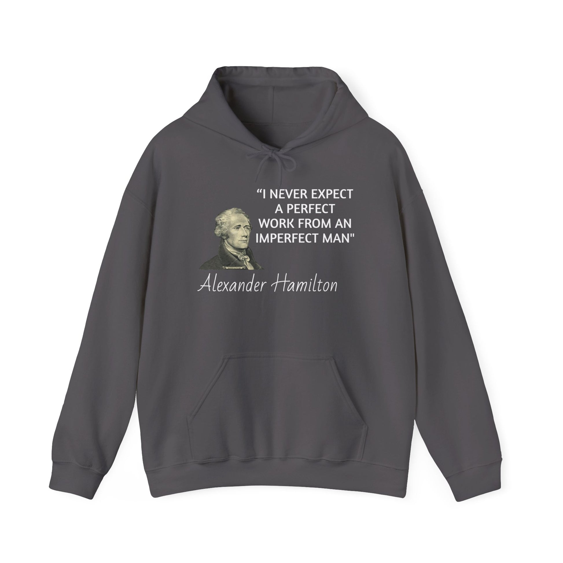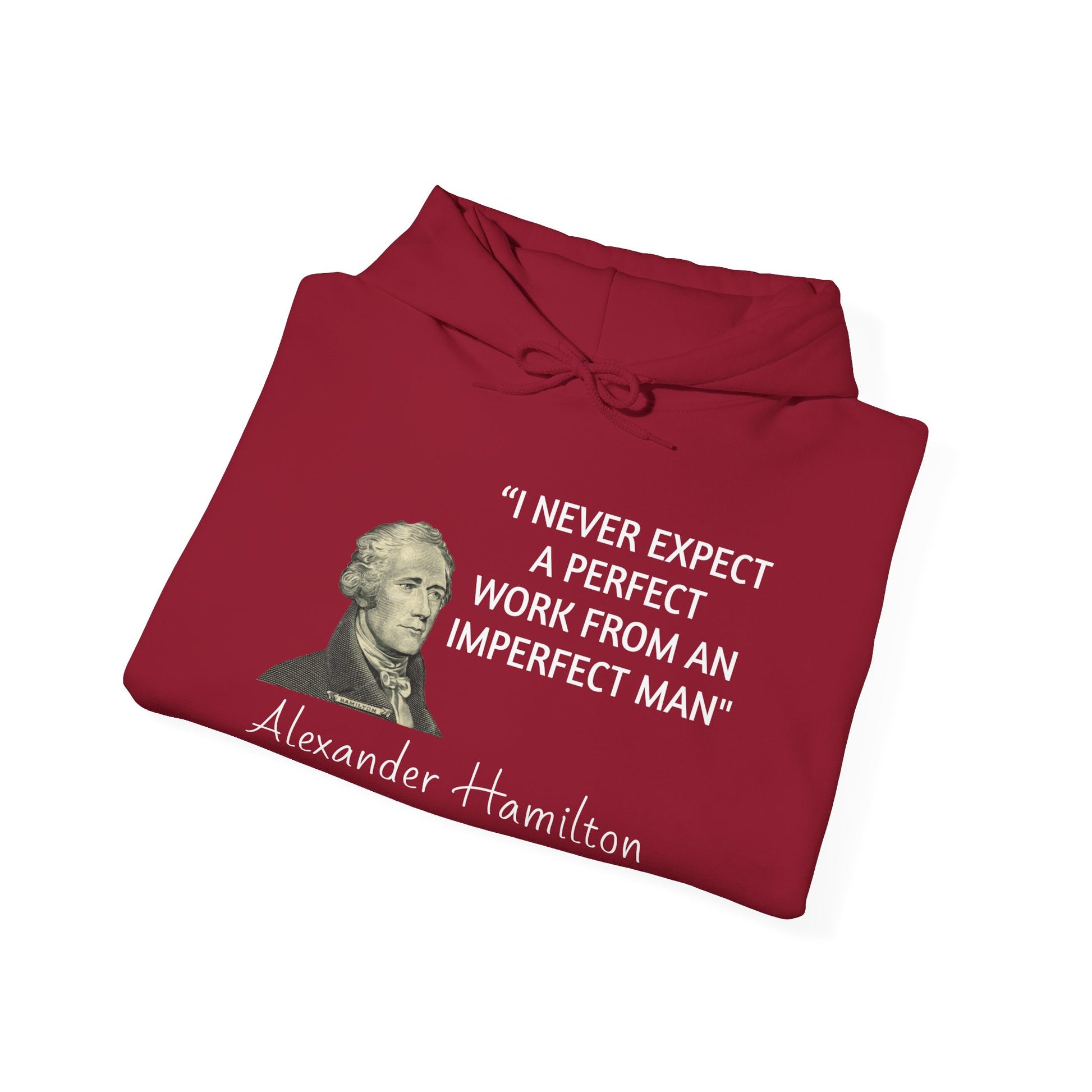 This Alexander Hamilton unisex heavy blend hooded sweatshirt embodies ultimate comfort and style, perfect for showing off your American History in cozy, chilly days. Crafted from a thick blend of 50% cotton and 50% polyester, the hoodie delivers a plush, soft, and warm feel that makes it a go-to choice for relaxation. Its classic fit, medium-heavy fabric (8.0 oz/yd² or 271 g/m²), and spacious kangaroo pocket provide both practicality and comfort for everyday wear.
