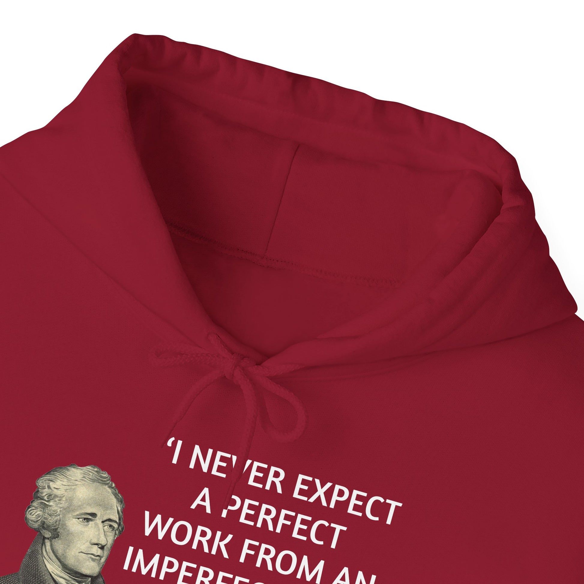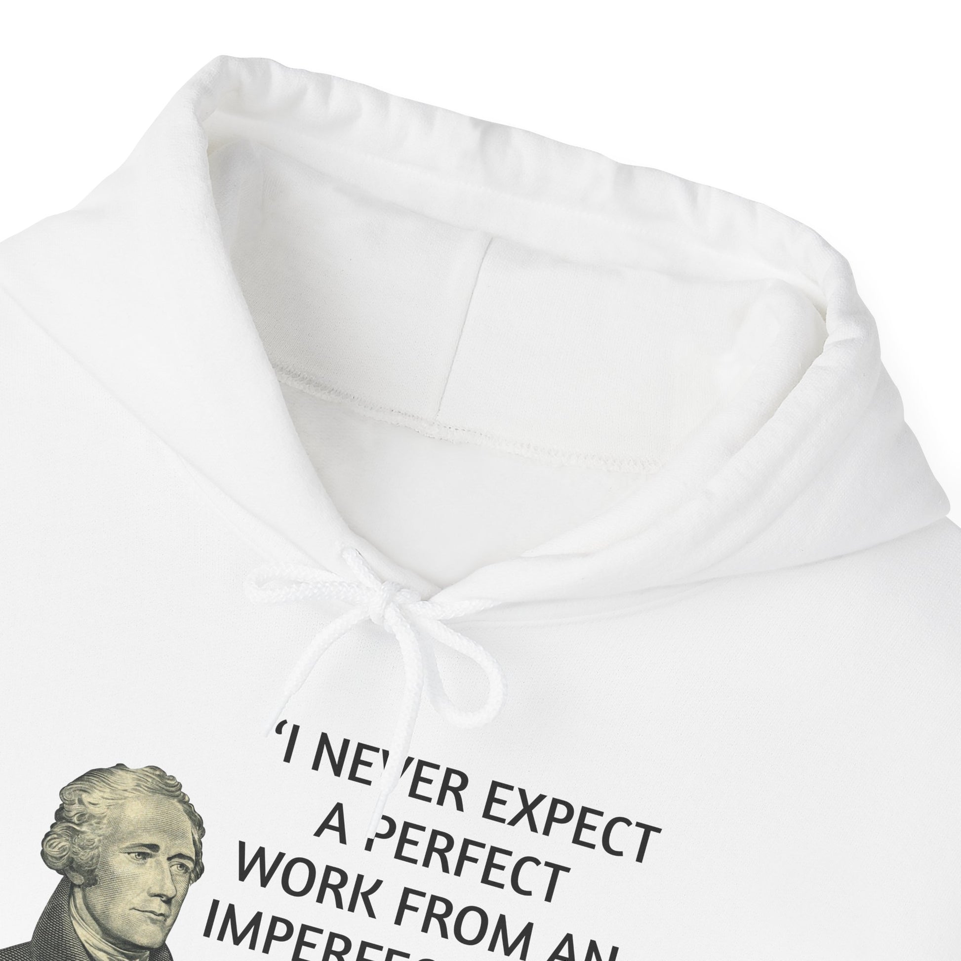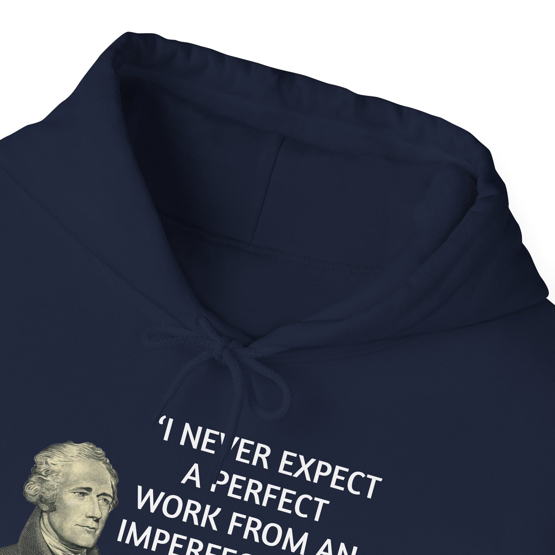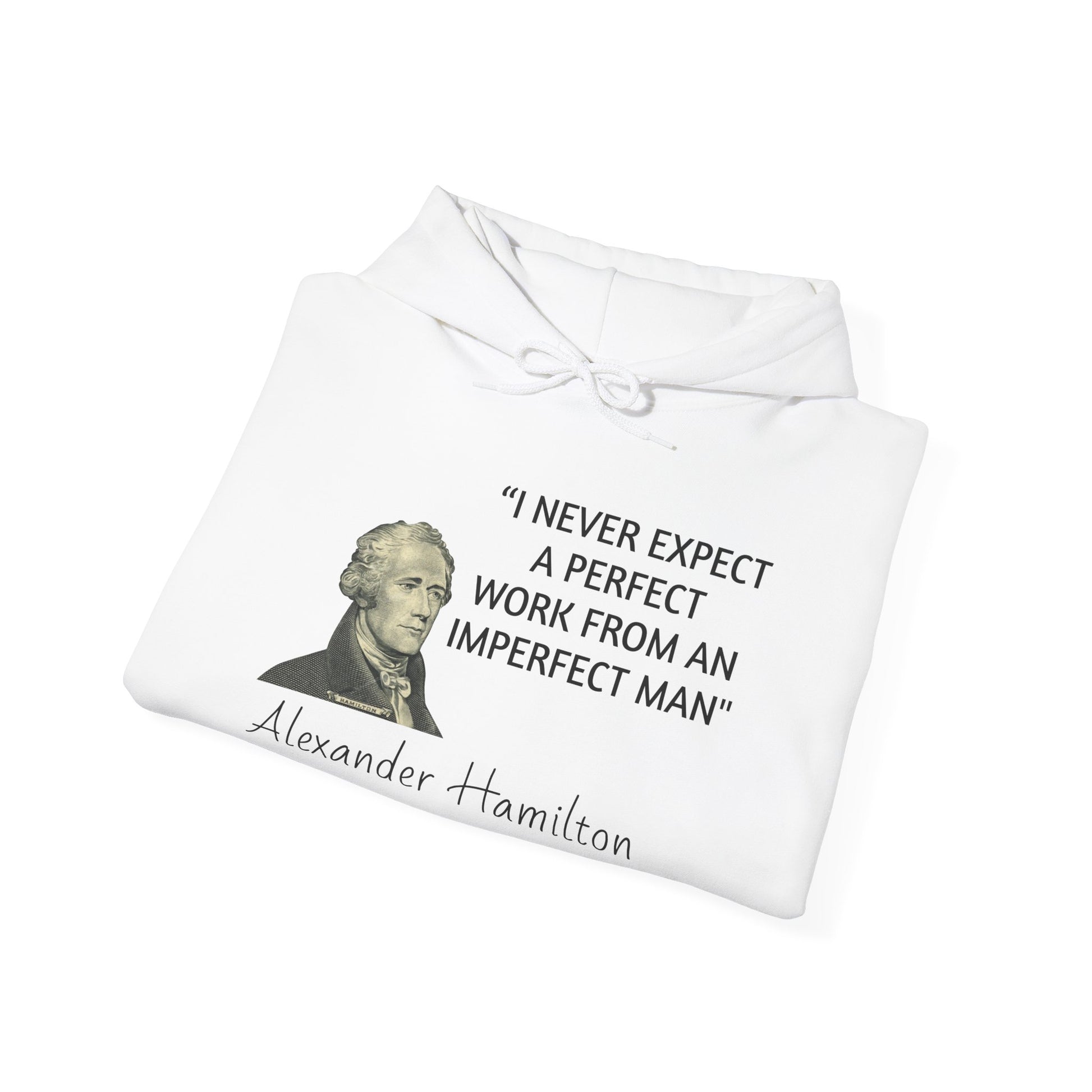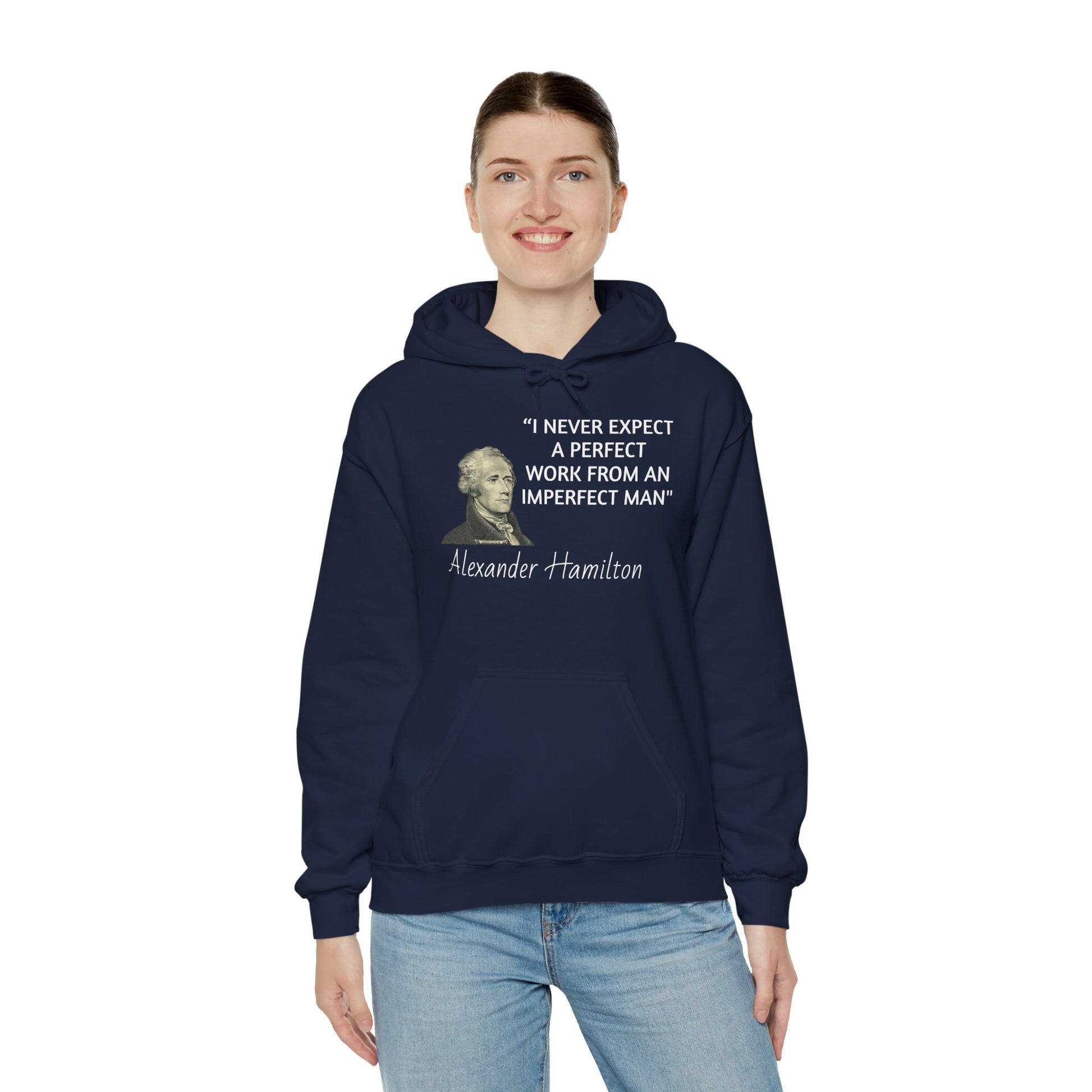 This Alexander Hamilton unisex heavy blend hooded sweatshirt embodies ultimate comfort and style, perfect for showing off your American History in cozy, chilly days. Crafted from a thick blend of 50% cotton and 50% polyester, the hoodie delivers a plush, soft, and warm feel that makes it a go-to choice for relaxation. Its classic fit, medium-heavy fabric (8.0 oz/yd² or 271 g/m²), and spacious kangaroo pocket provide both practicality and comfort for everyday wear.
