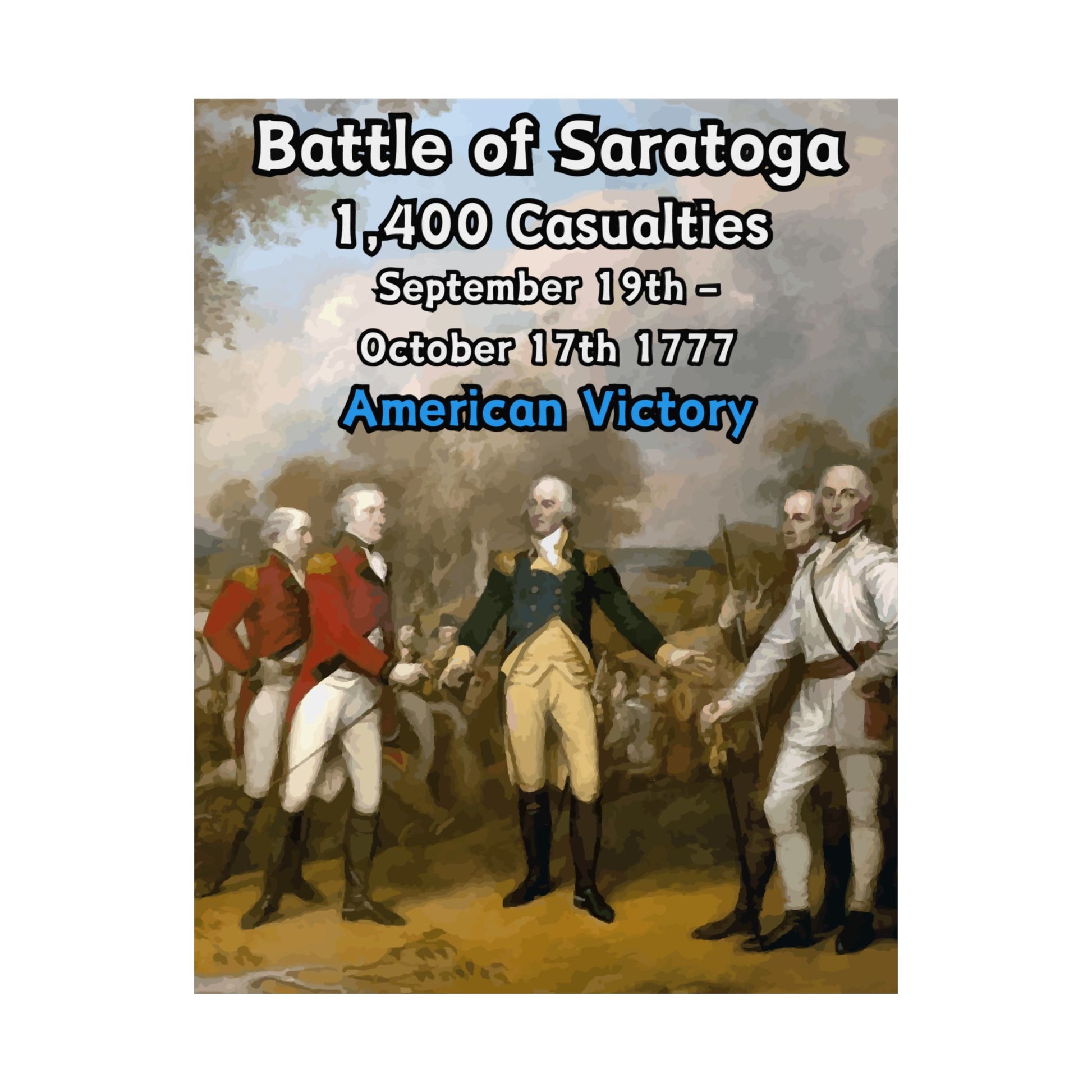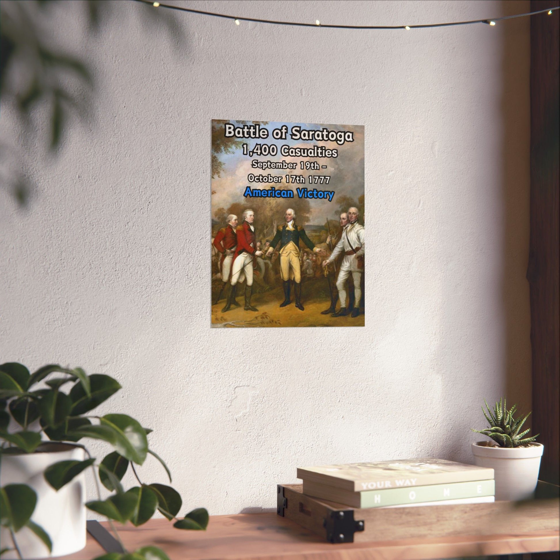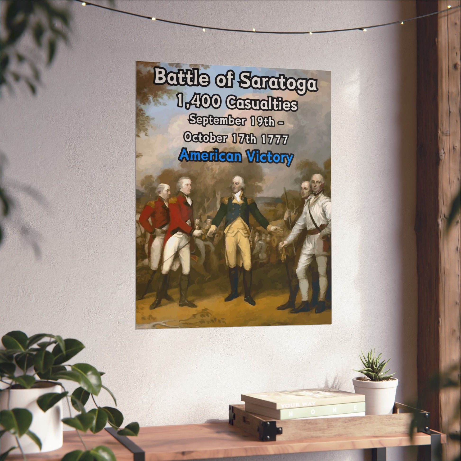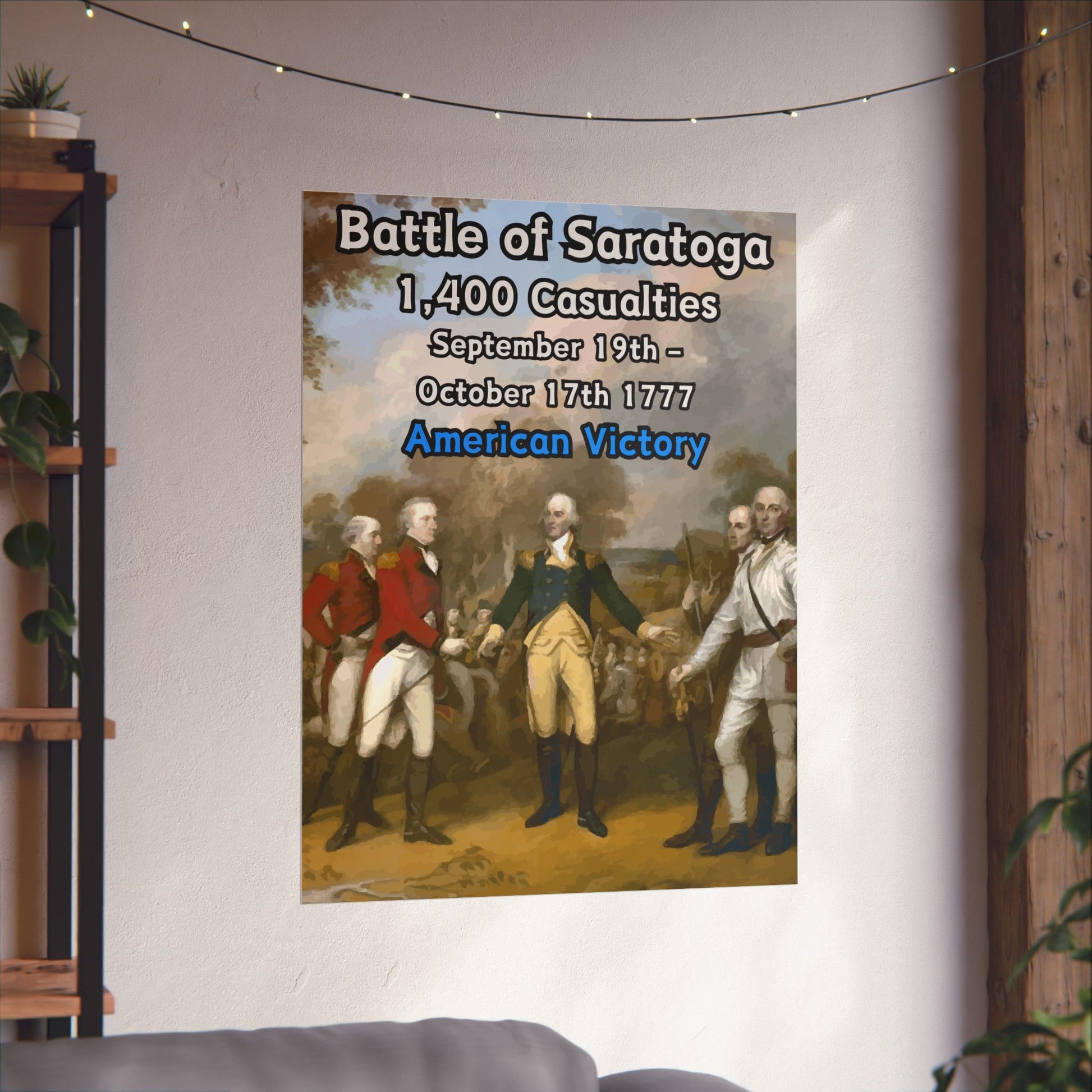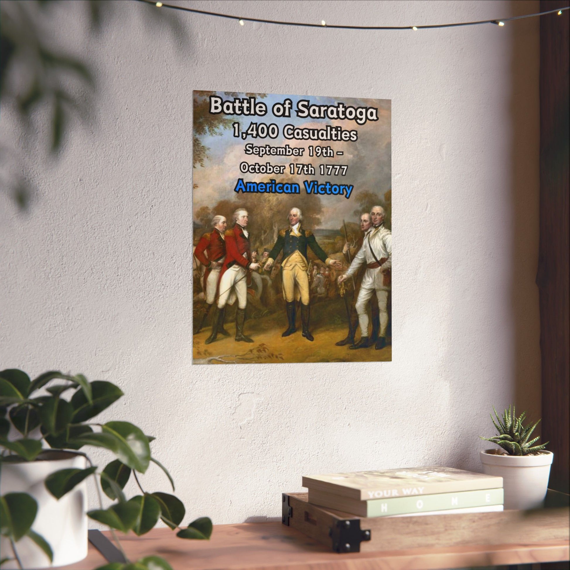 Add a little of bit of historical decoration with this Battle of Saratoga Poster which captures the essence of the historical event with intense colors and excellent printing fidelity. Perfect for history buffs, students, or anyone interested in American history. Ideal for decorating a home office, classroom, or study space.
