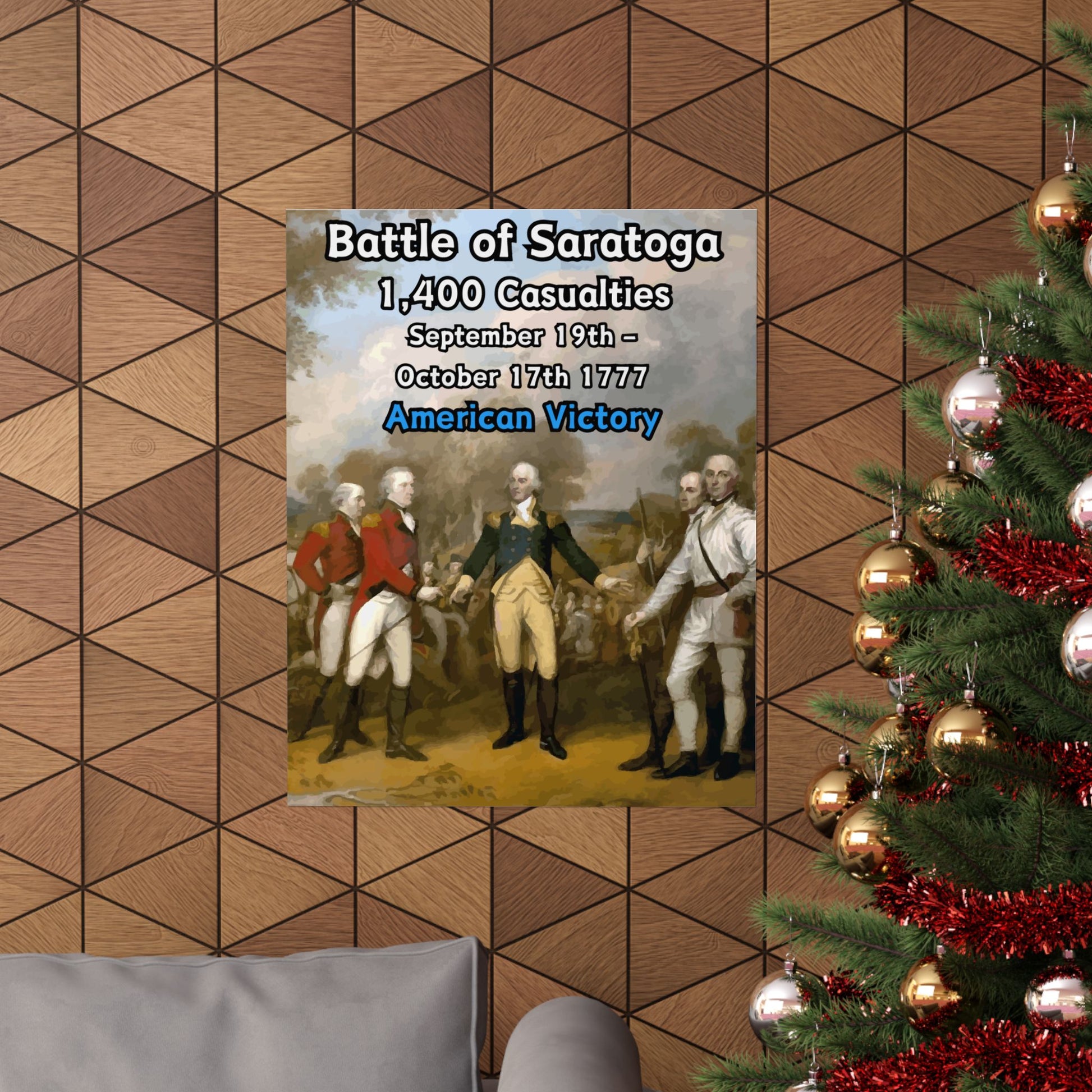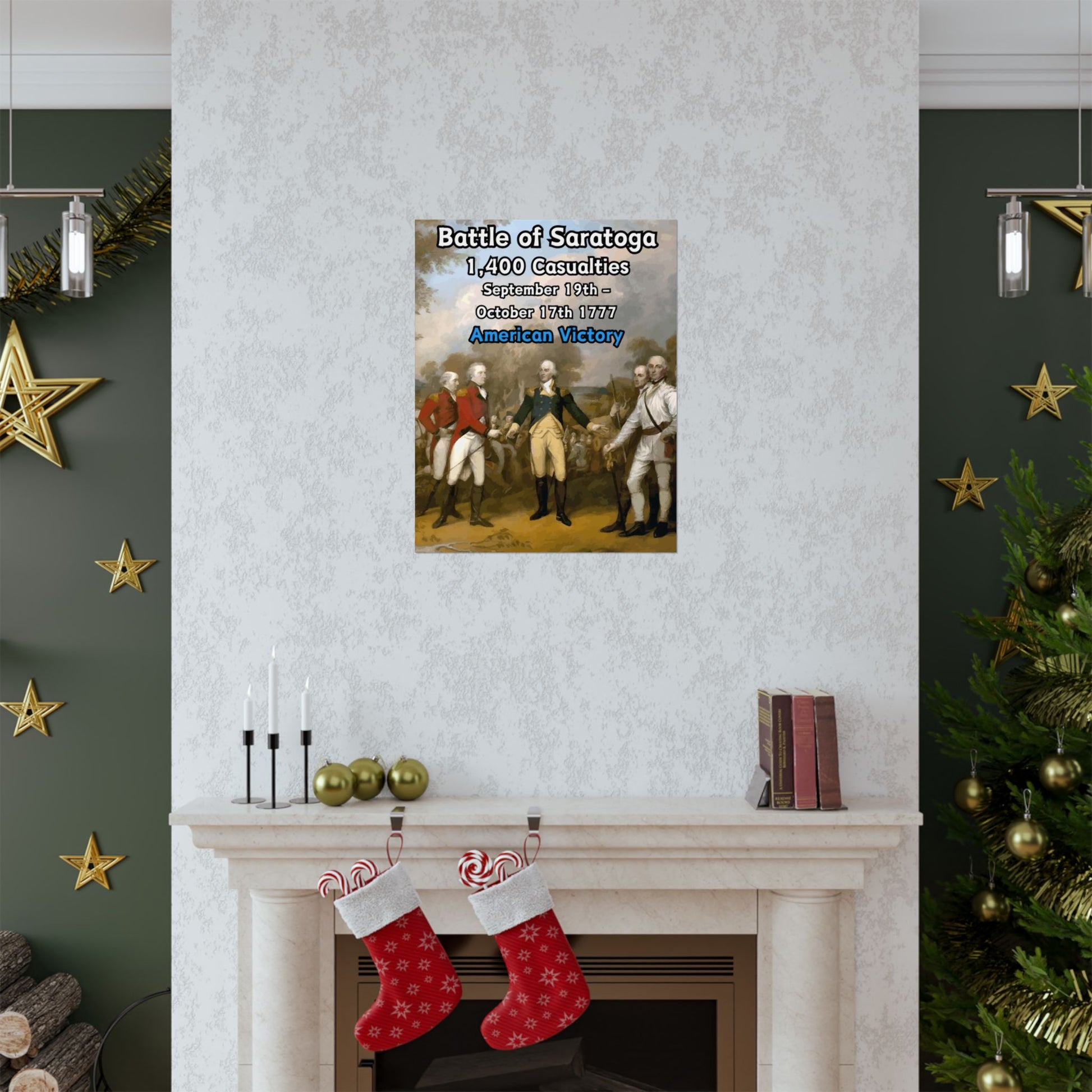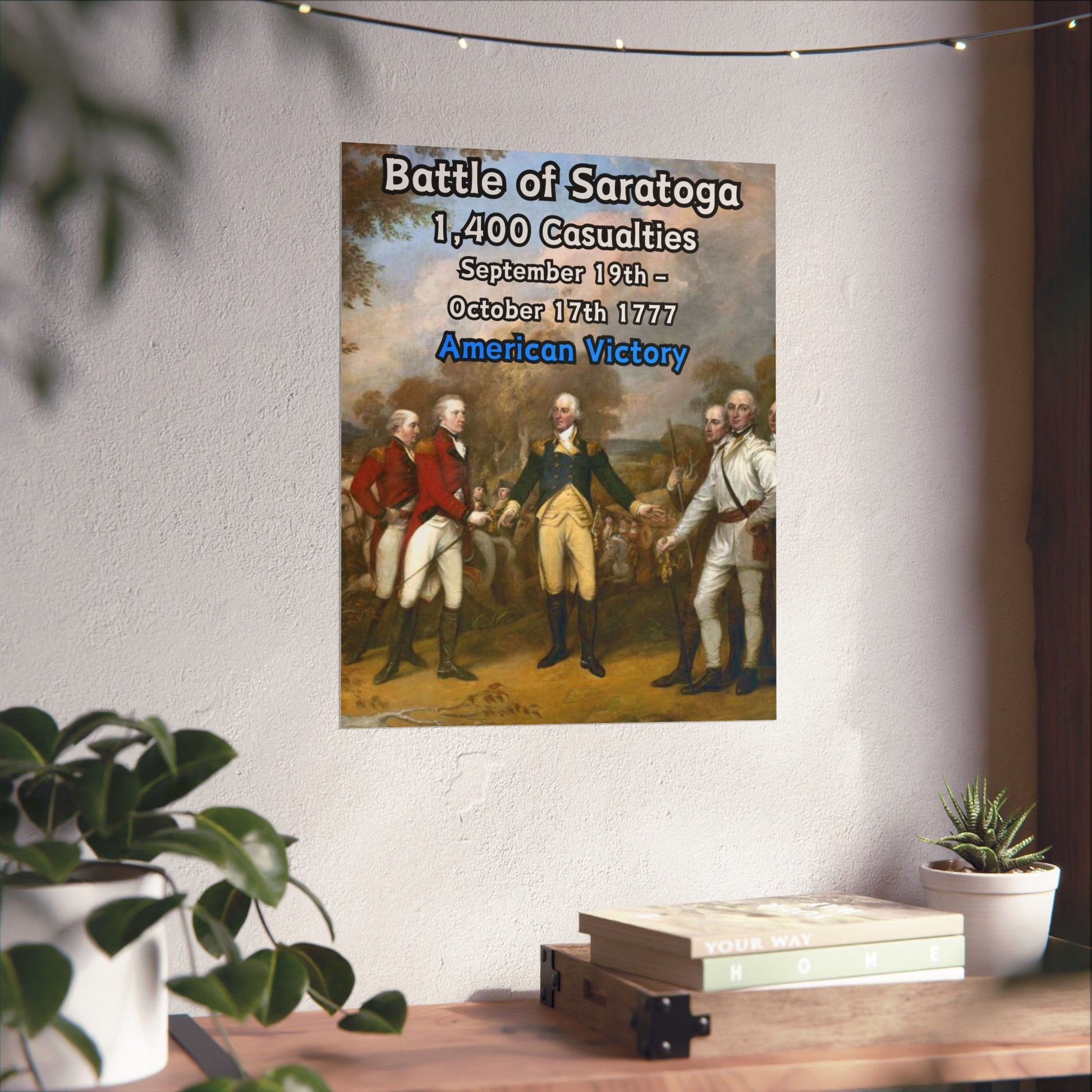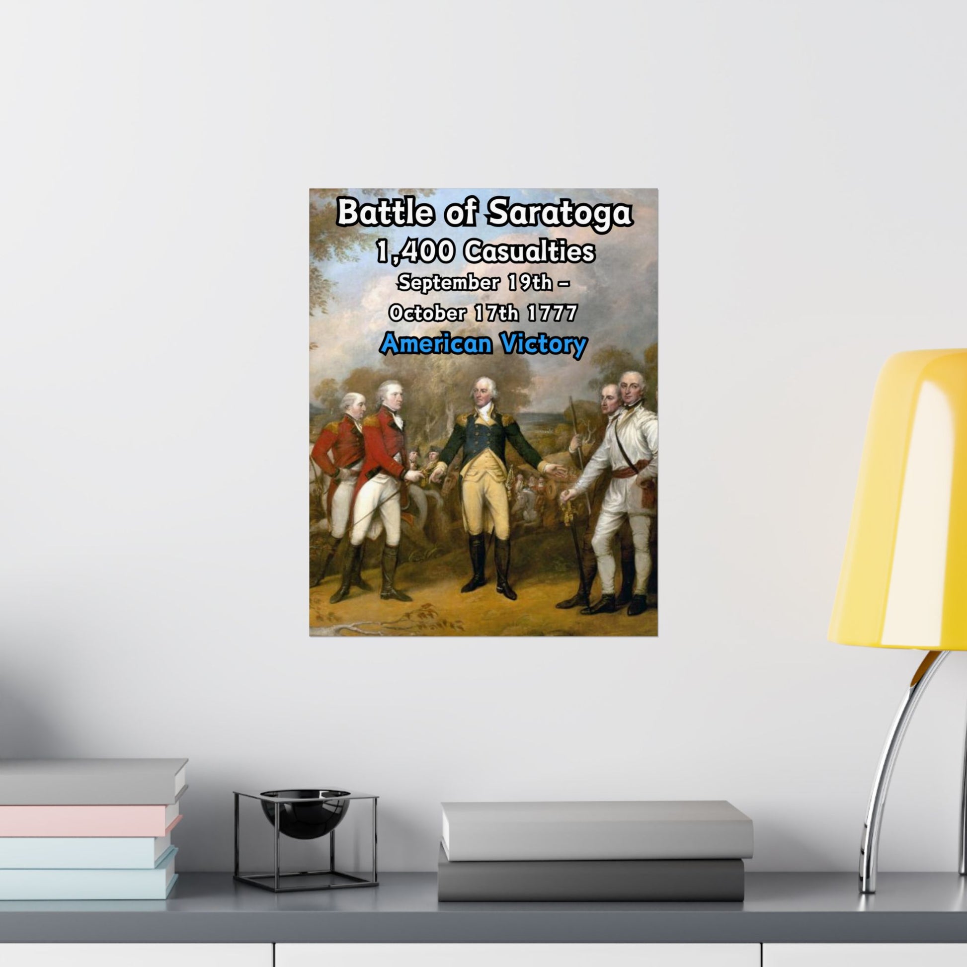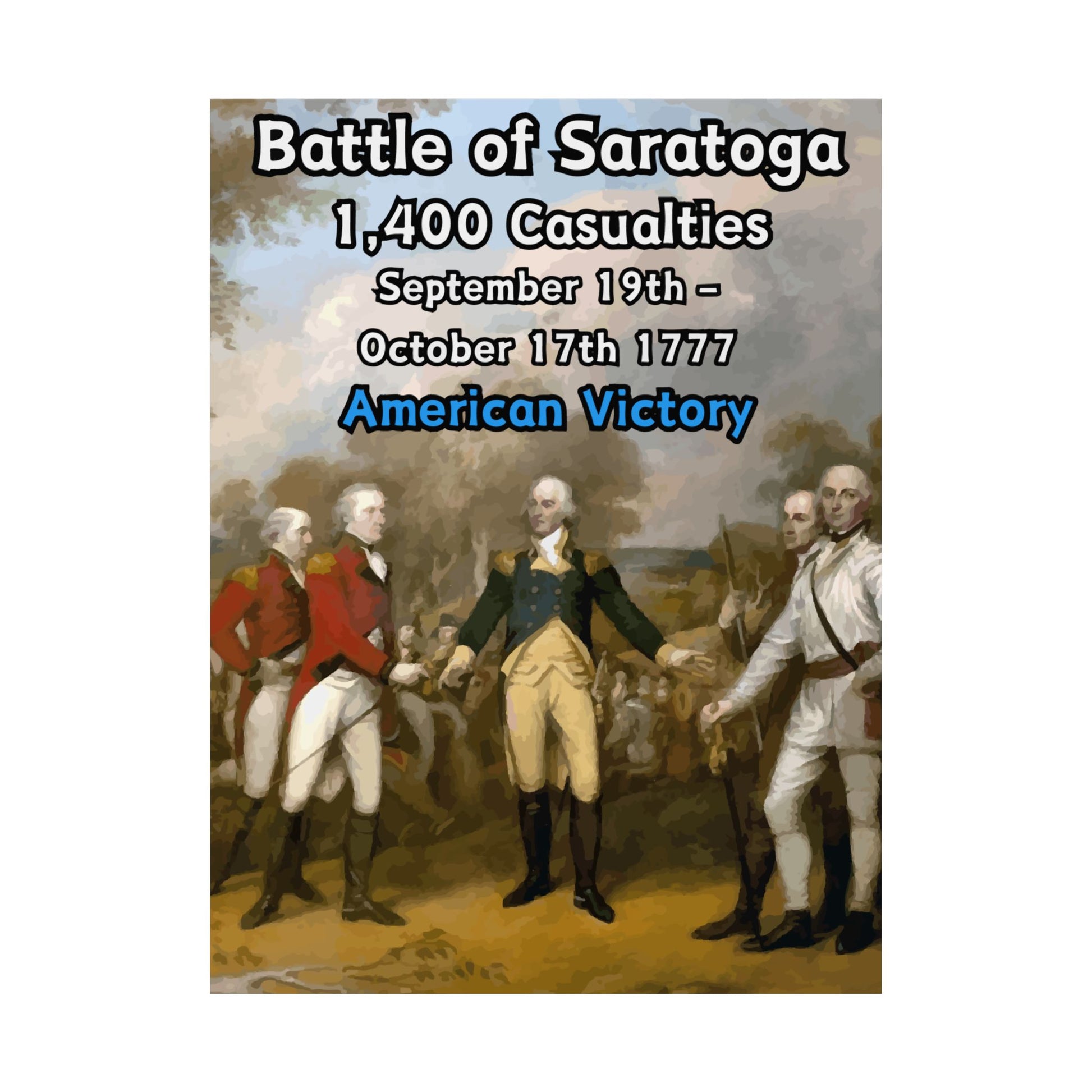 Add a little of bit of historical decoration with this Battle of Saratoga Poster which captures the essence of the historical event with intense colors and excellent printing fidelity. Perfect for history buffs, students, or anyone interested in American history. Ideal for decorating a home office, classroom, or study space.