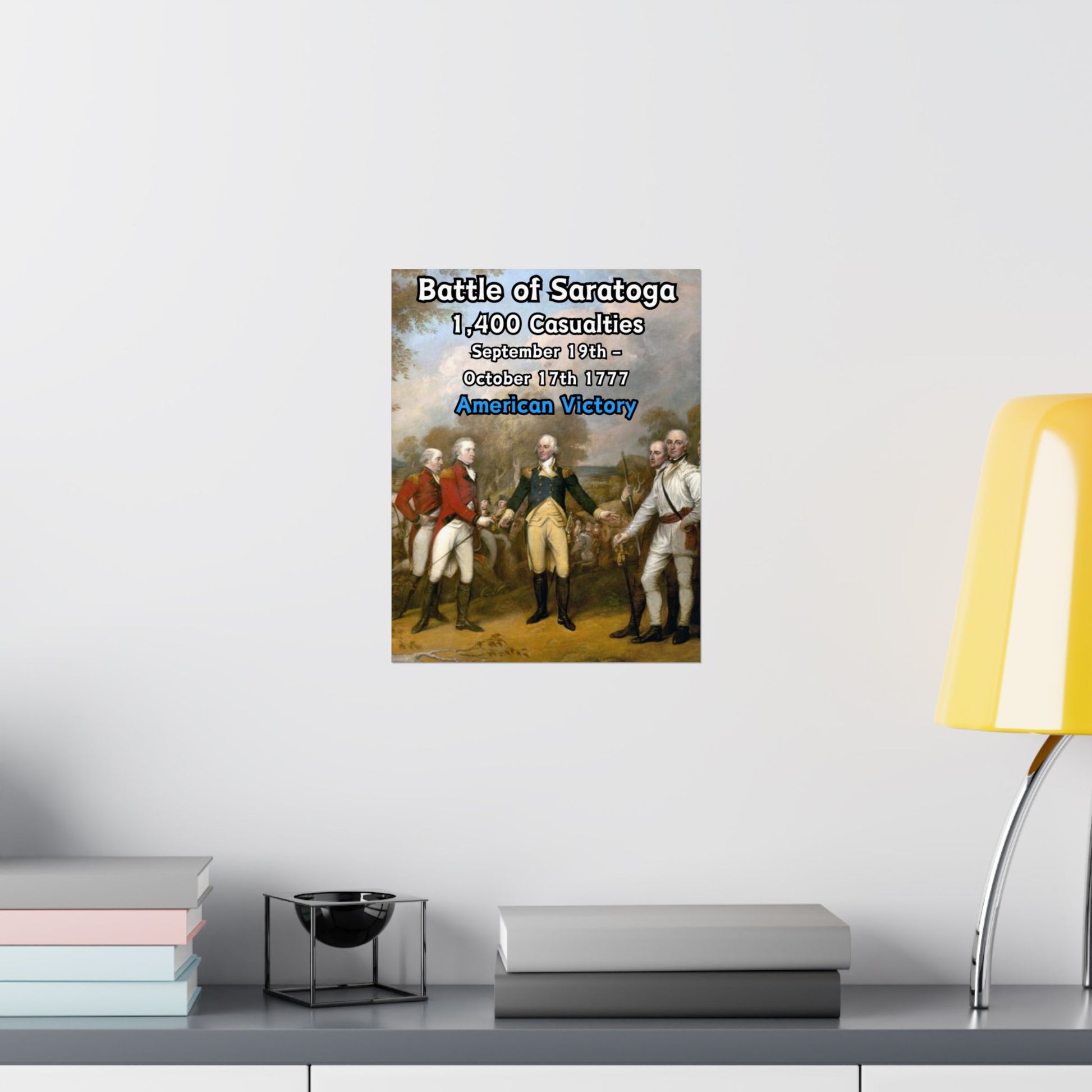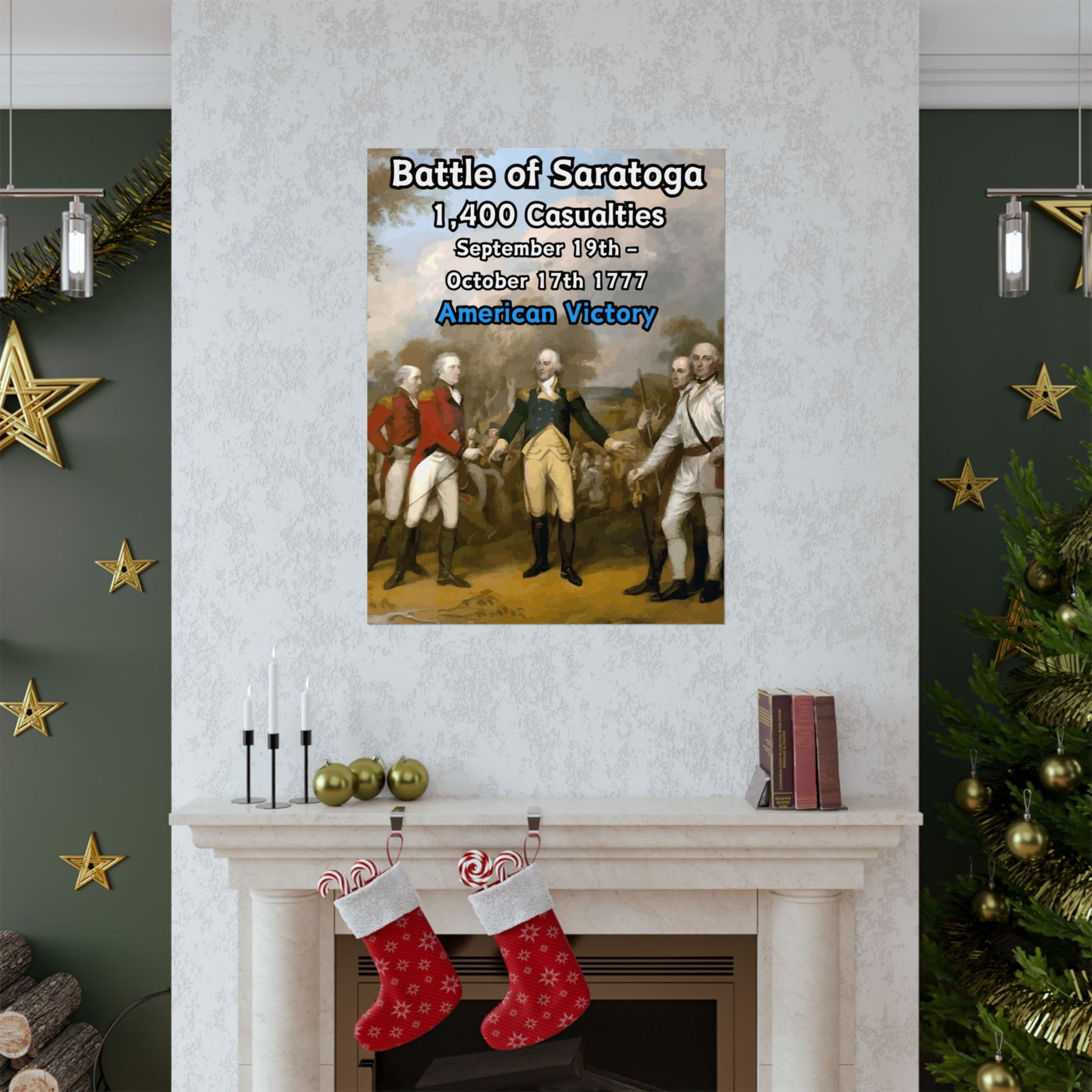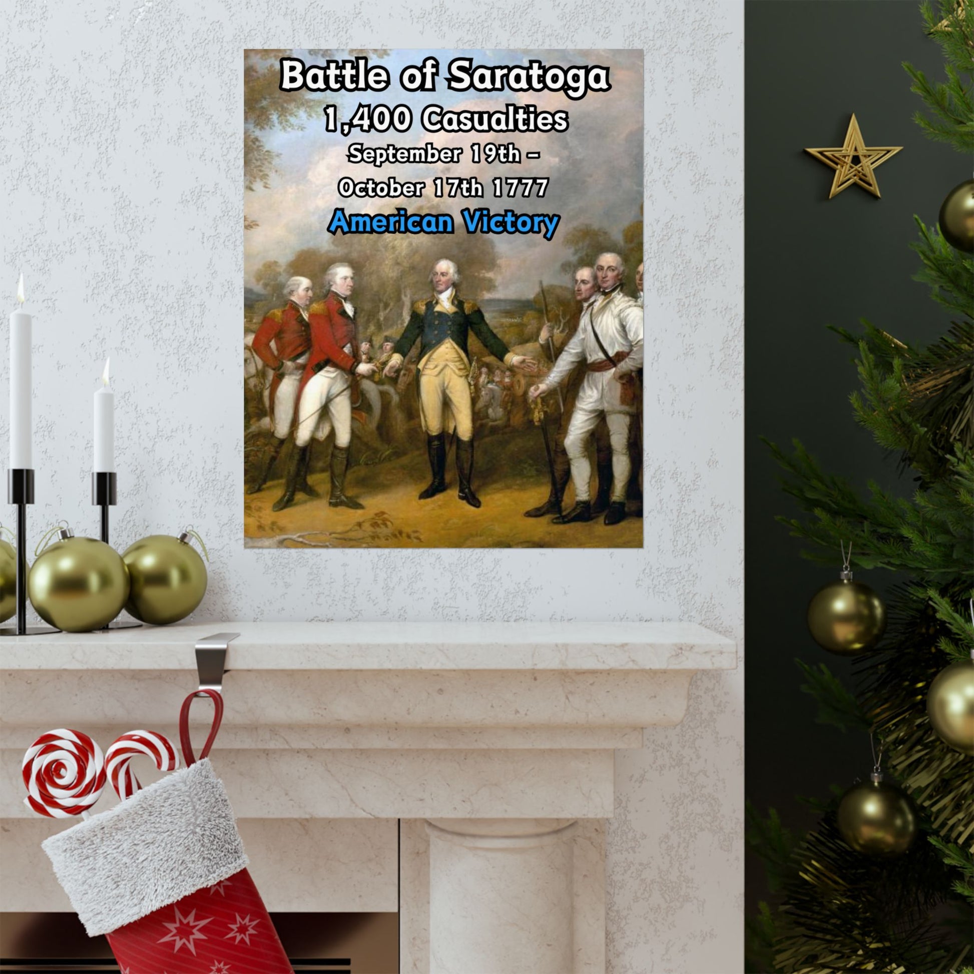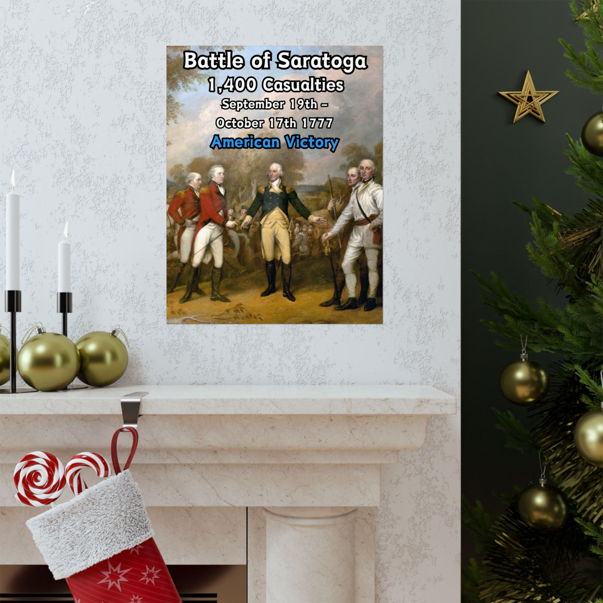 Add a little of bit of historical decoration with this Battle of Saratoga Poster which captures the essence of the historical event with intense colors and excellent printing fidelity. Perfect for history buffs, students, or anyone interested in American history. Ideal for decorating a home office, classroom, or study space.