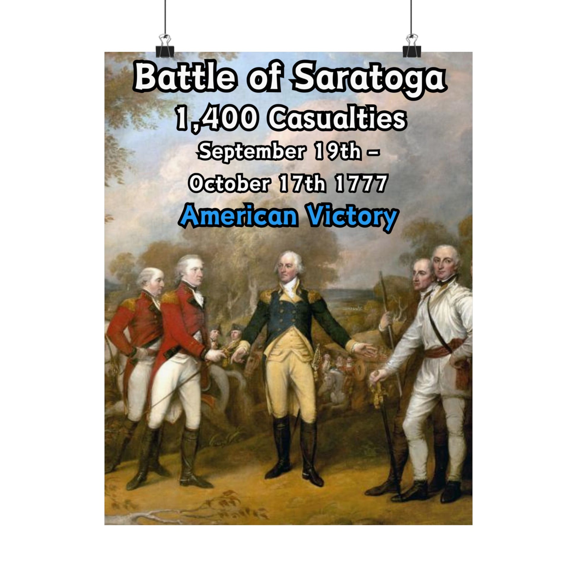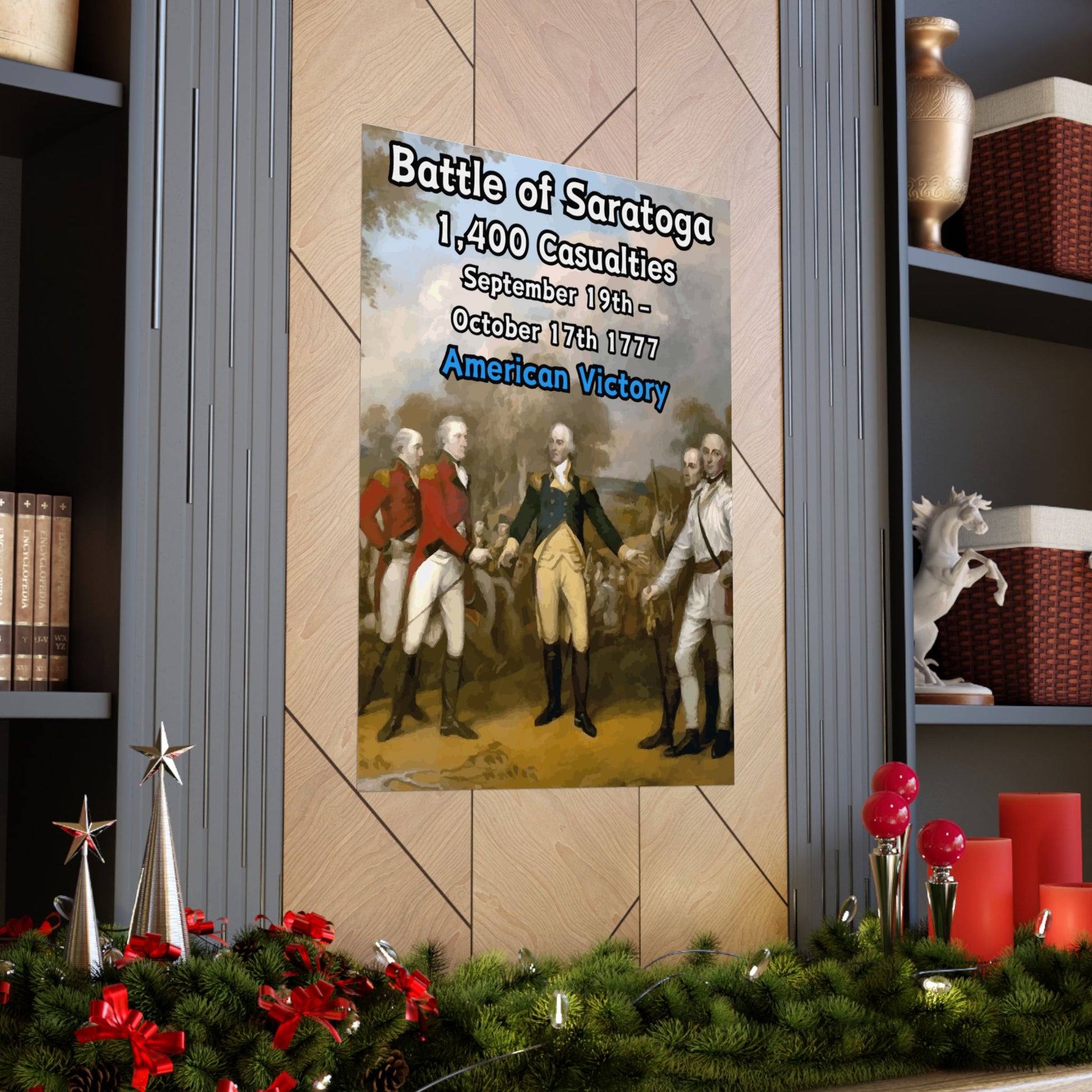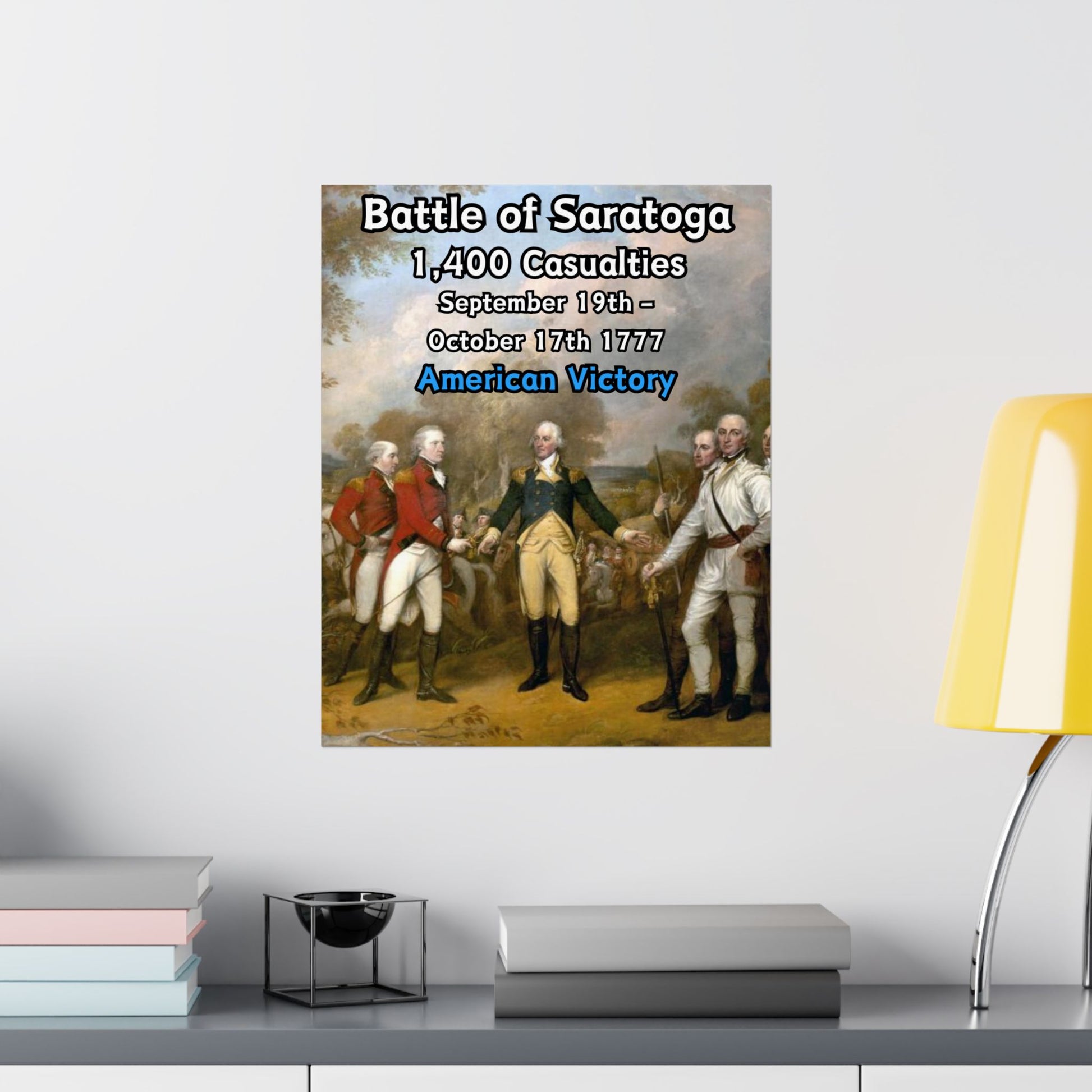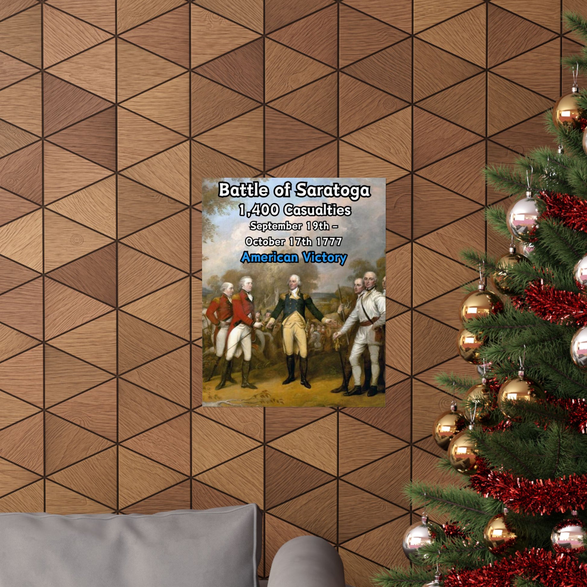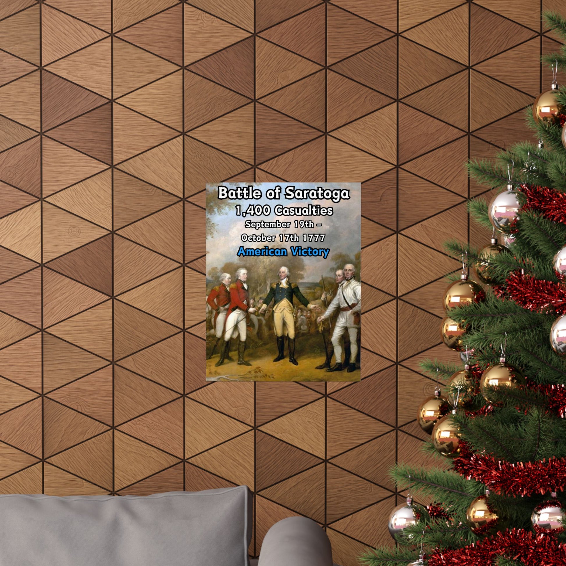 Add a little of bit of historical decoration with this Battle of Saratoga Poster which captures the essence of the historical event with intense colors and excellent printing fidelity. Perfect for history buffs, students, or anyone interested in American history. Ideal for decorating a home office, classroom, or study space.