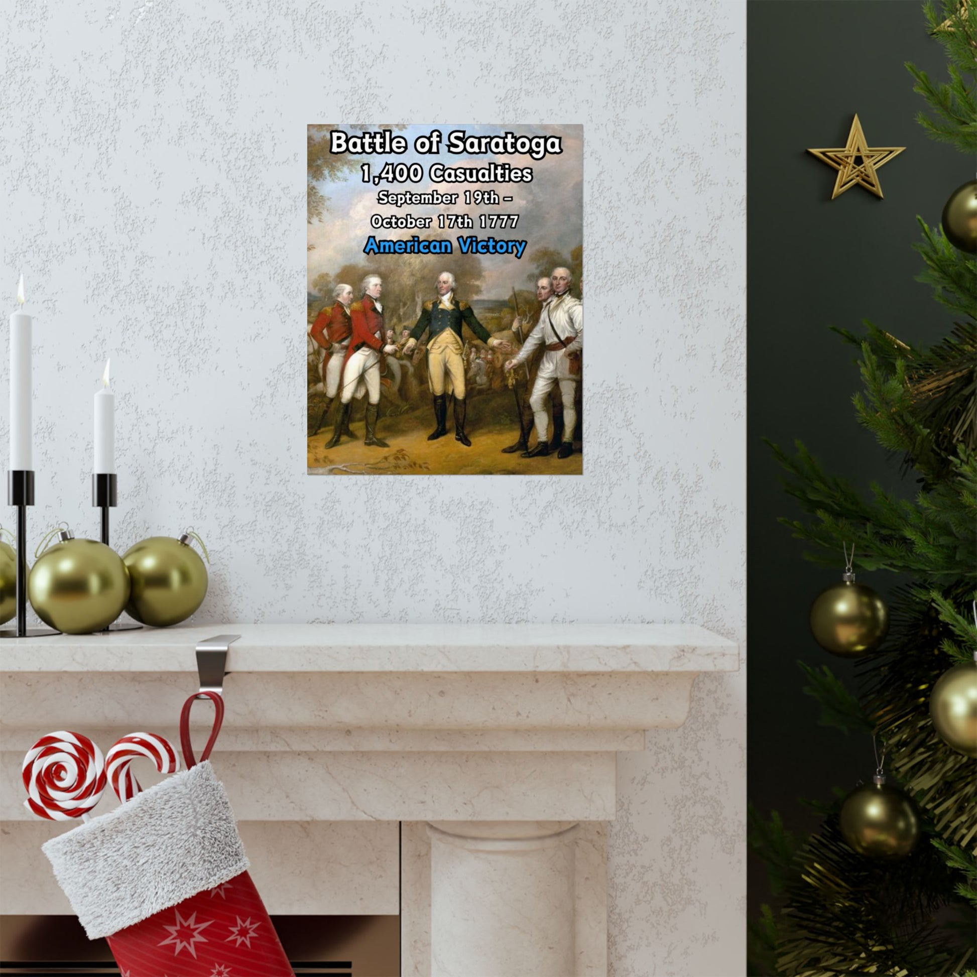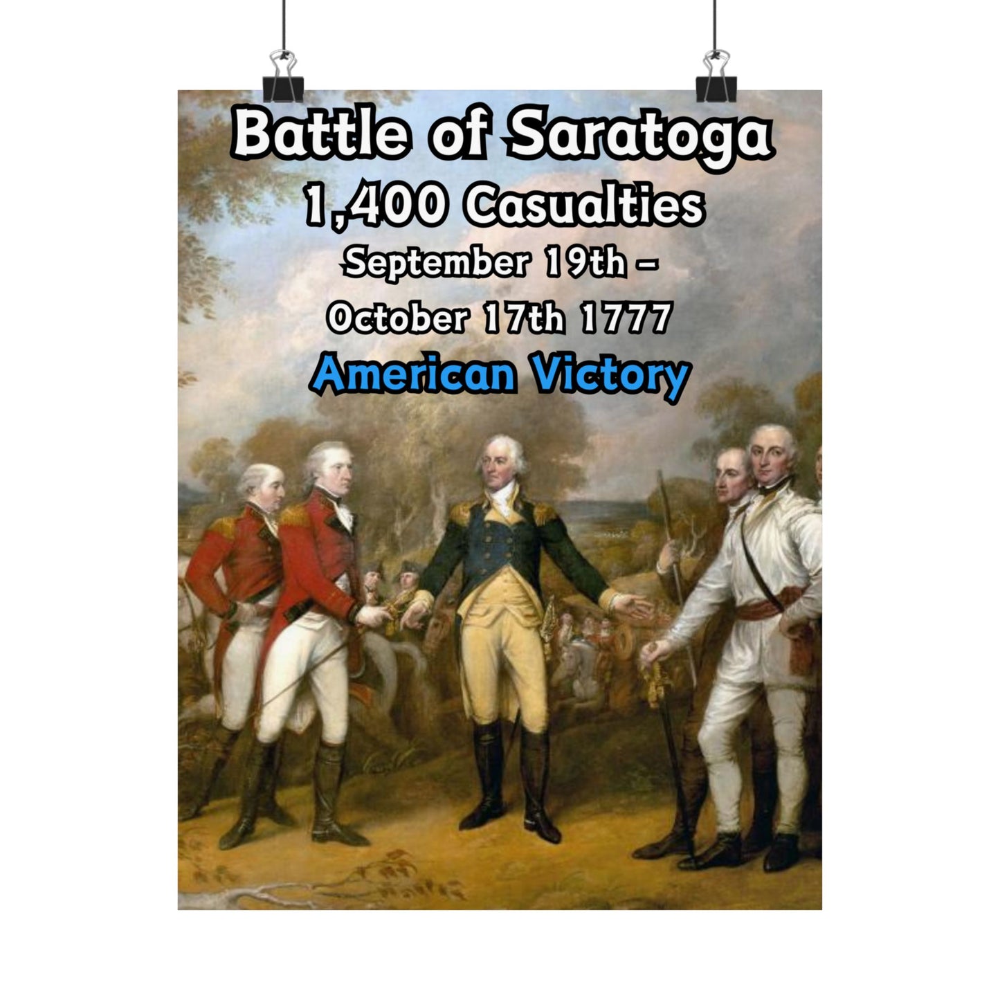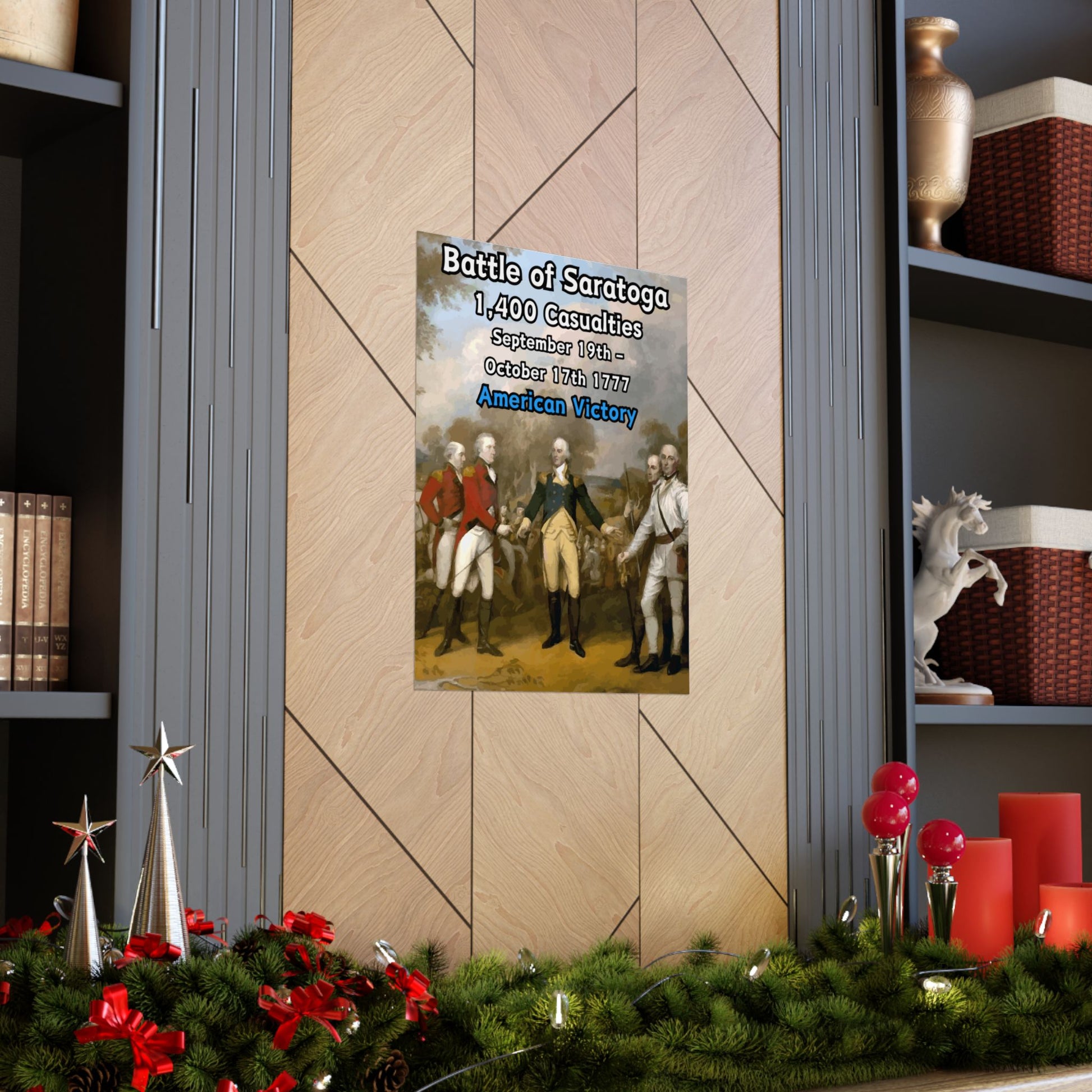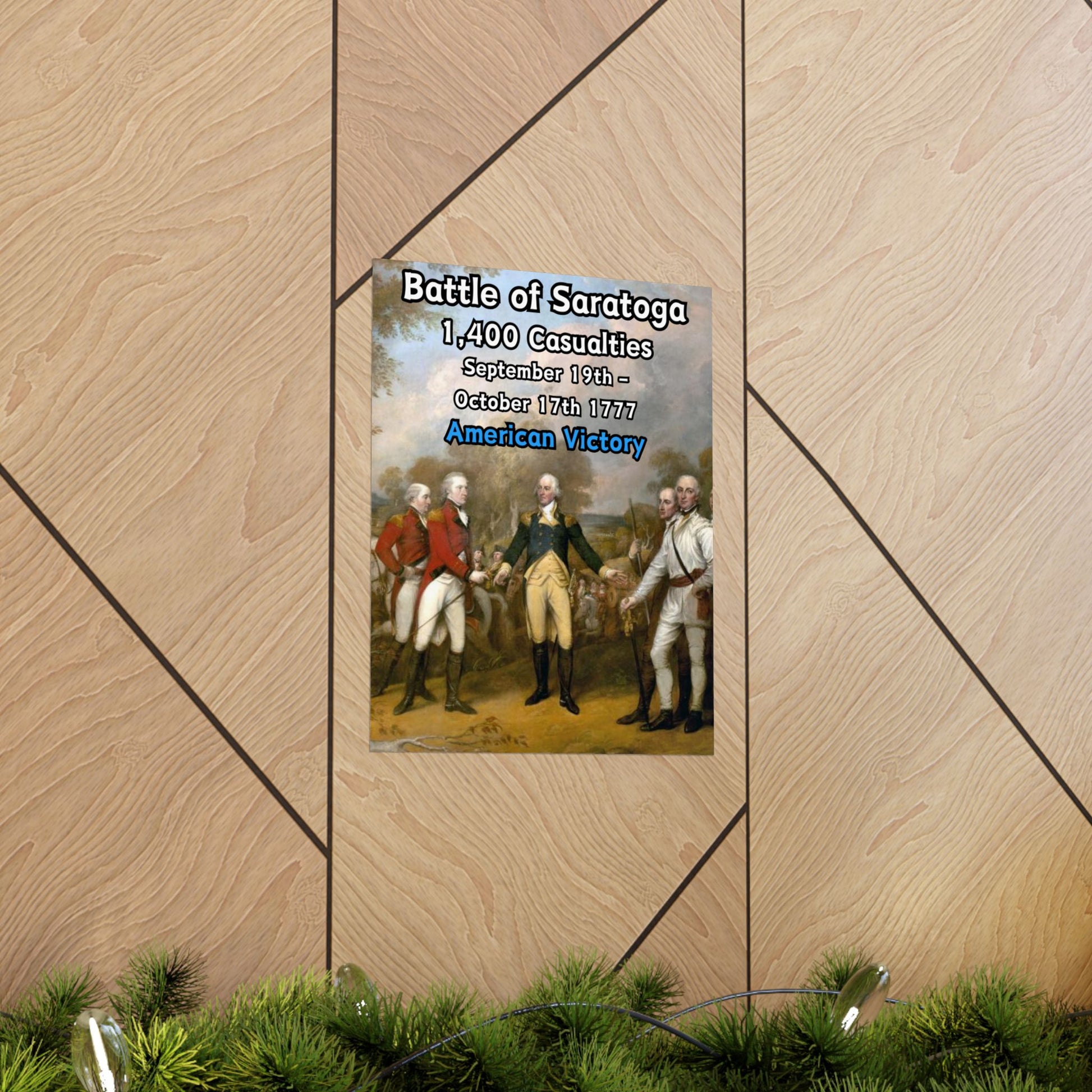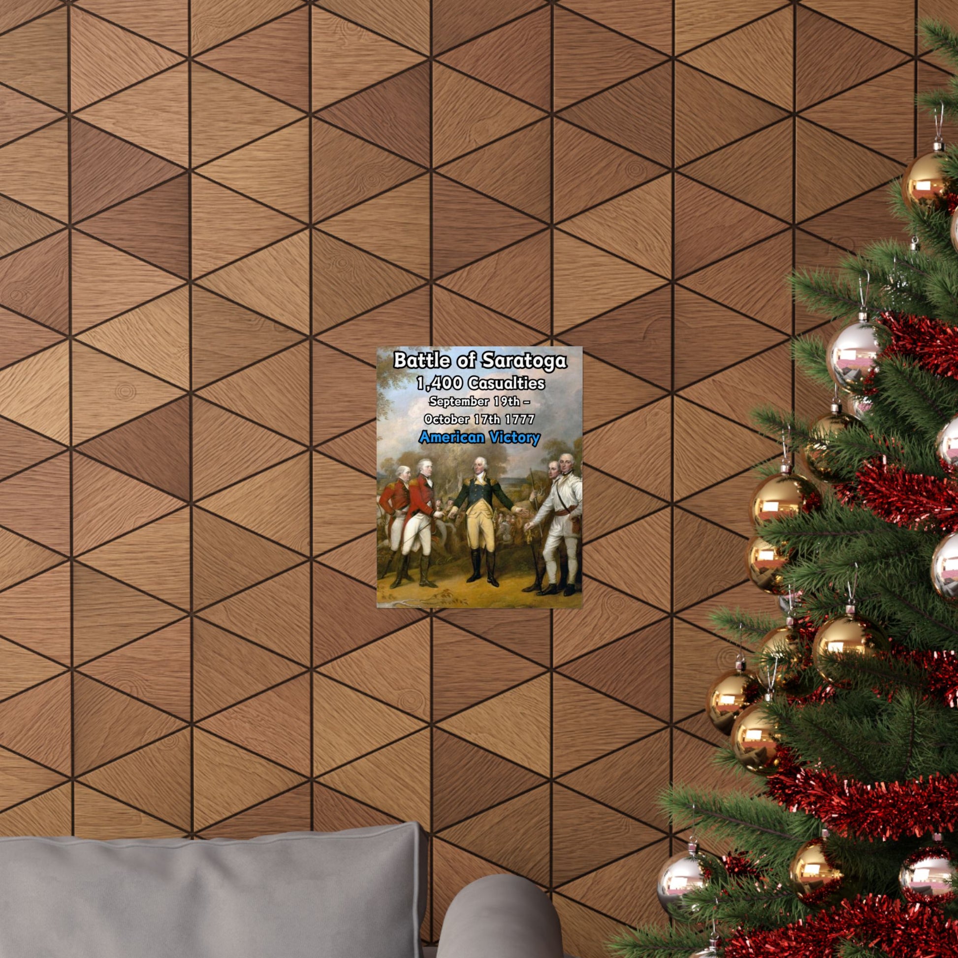 Add a little of bit of historical decoration with this Battle of Saratoga Poster which captures the essence of the historical event with intense colors and excellent printing fidelity. Perfect for history buffs, students, or anyone interested in American history. Ideal for decorating a home office, classroom, or study space.