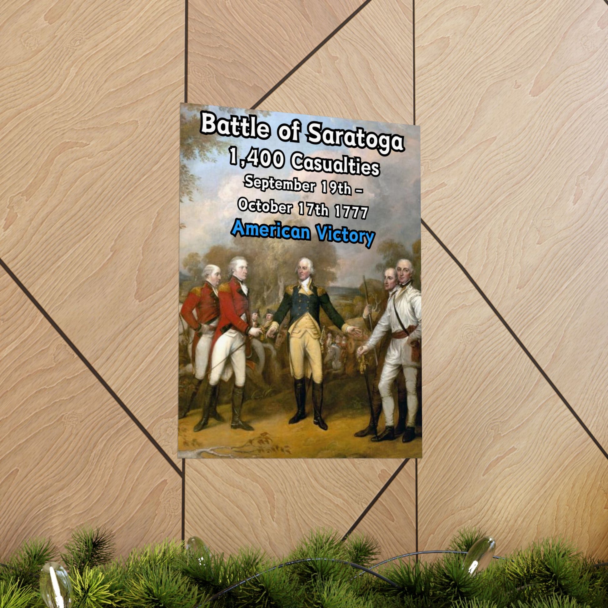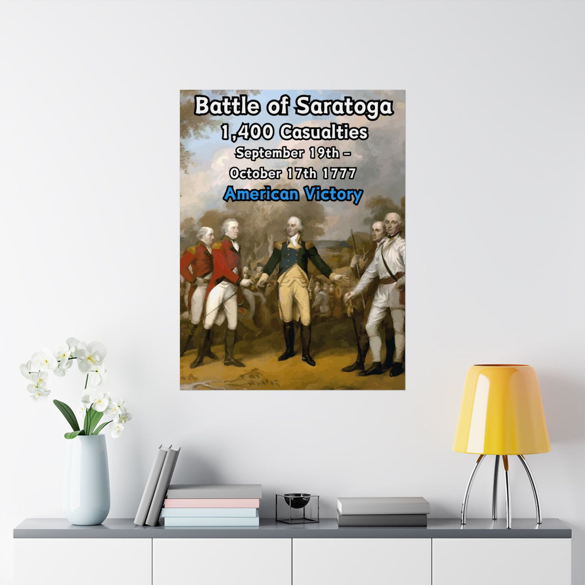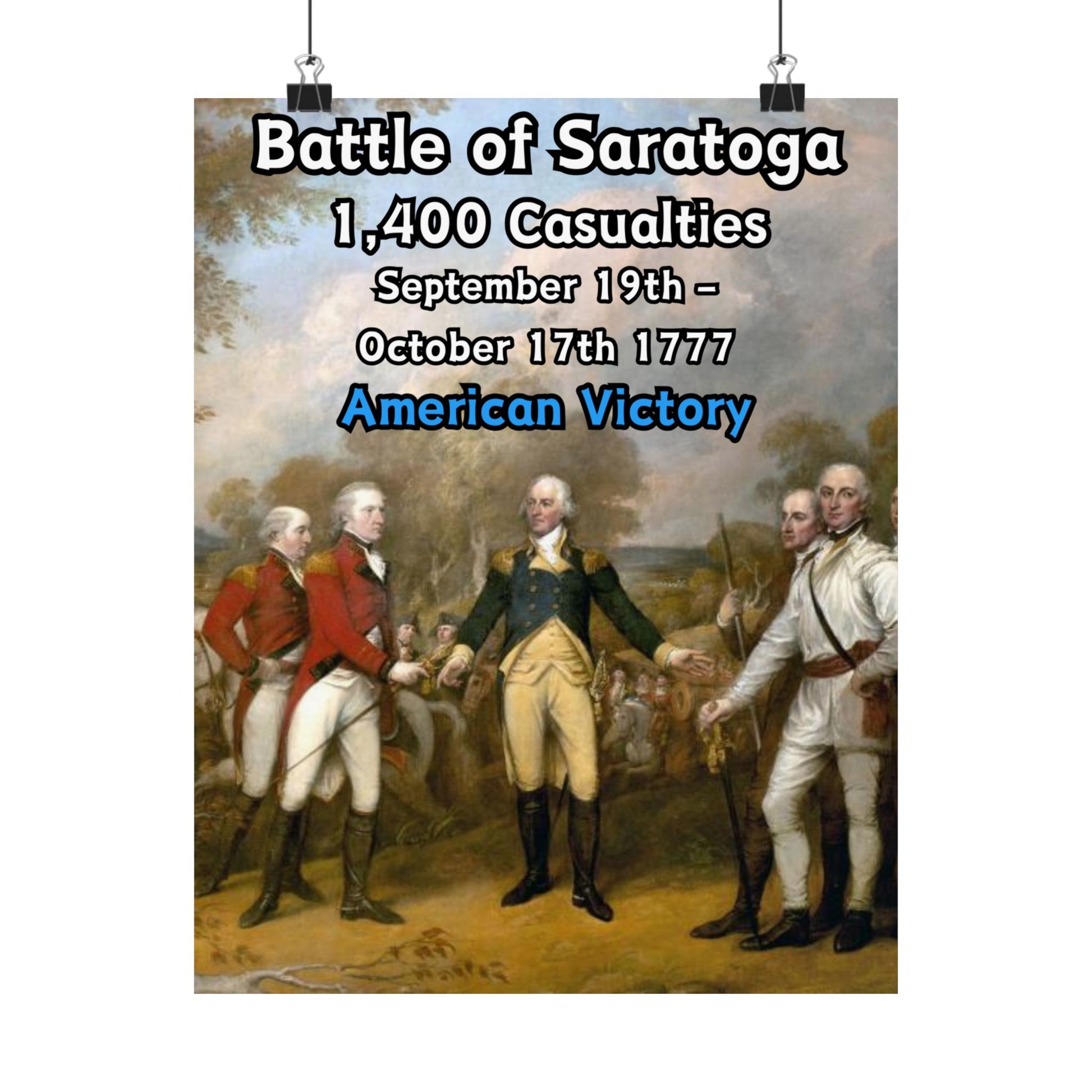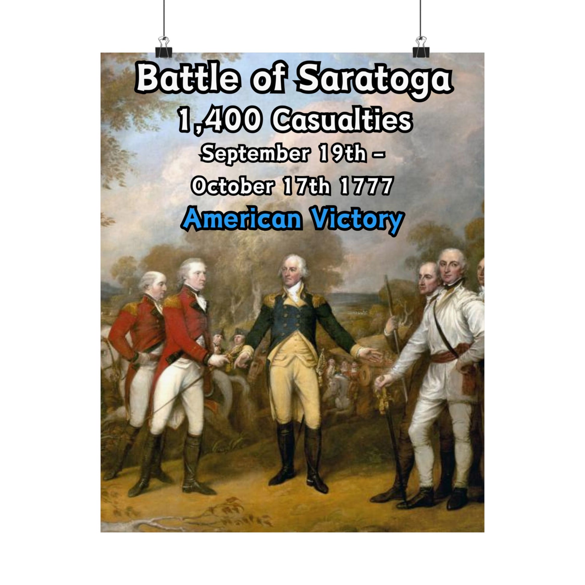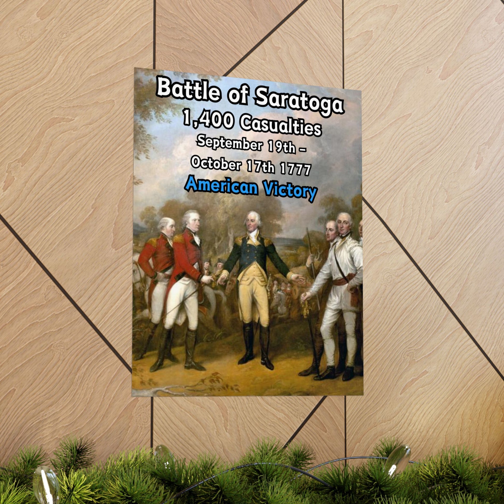 Add a little of bit of historical decoration with this Battle of Saratoga Poster which captures the essence of the historical event with intense colors and excellent printing fidelity. Perfect for history buffs, students, or anyone interested in American history. Ideal for decorating a home office, classroom, or study space.