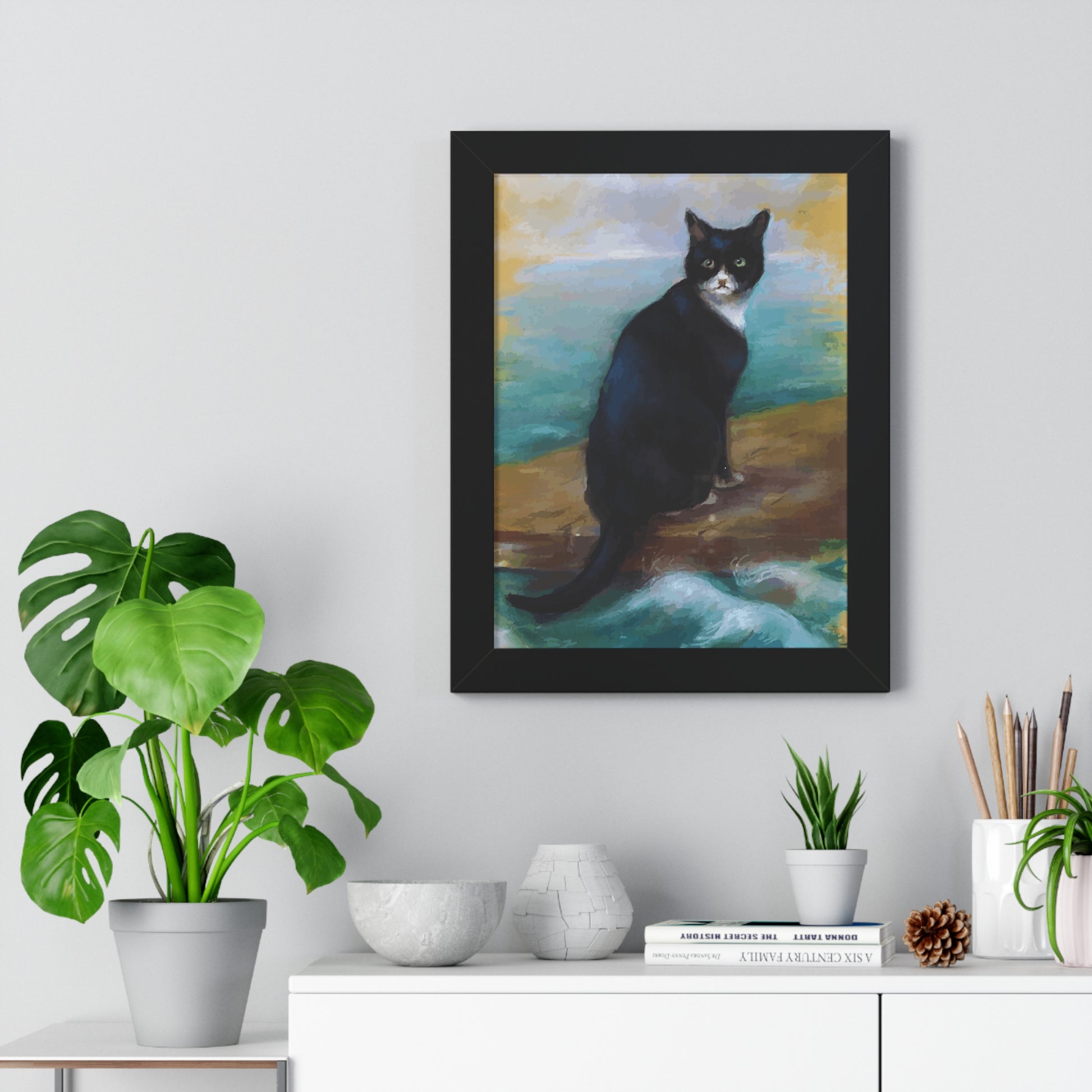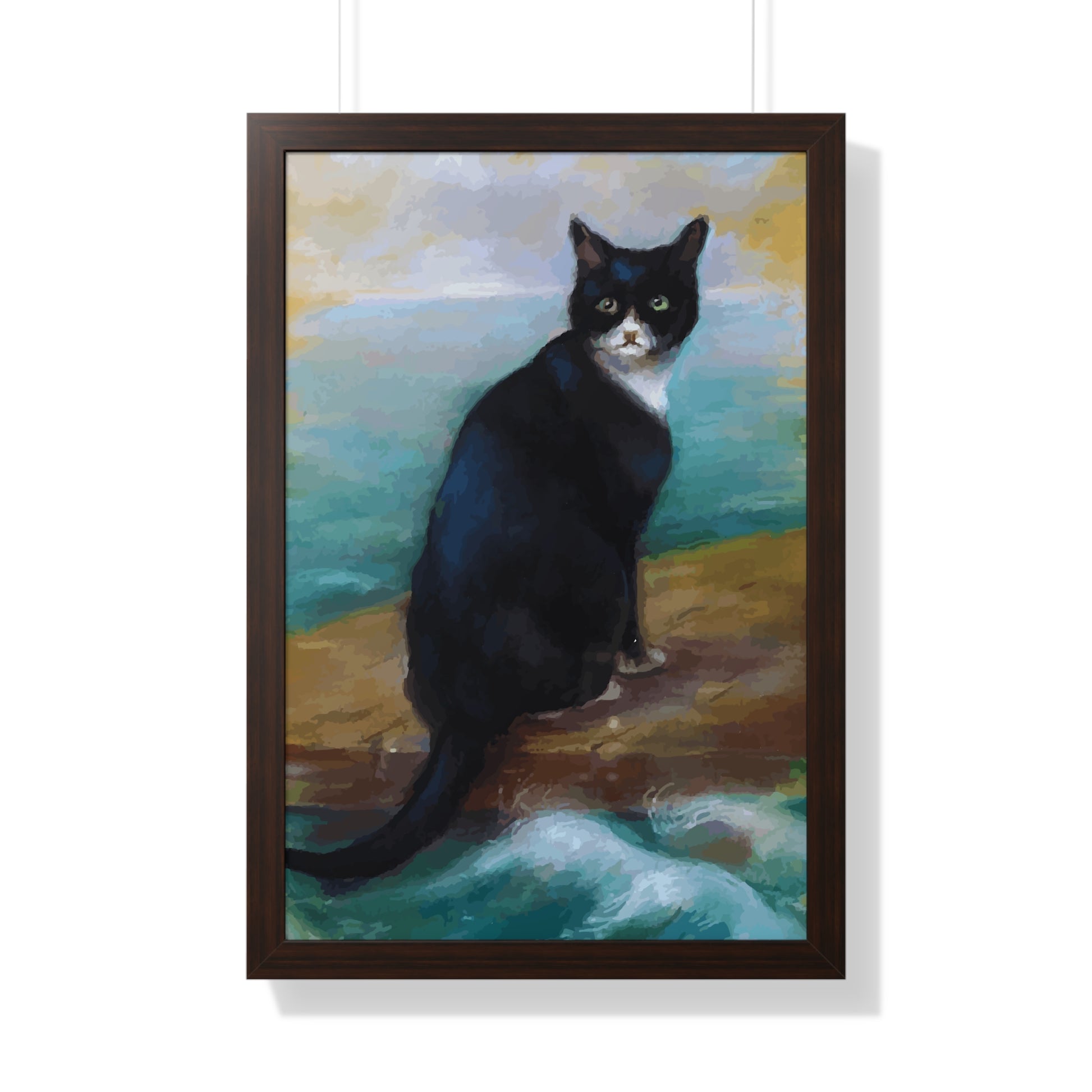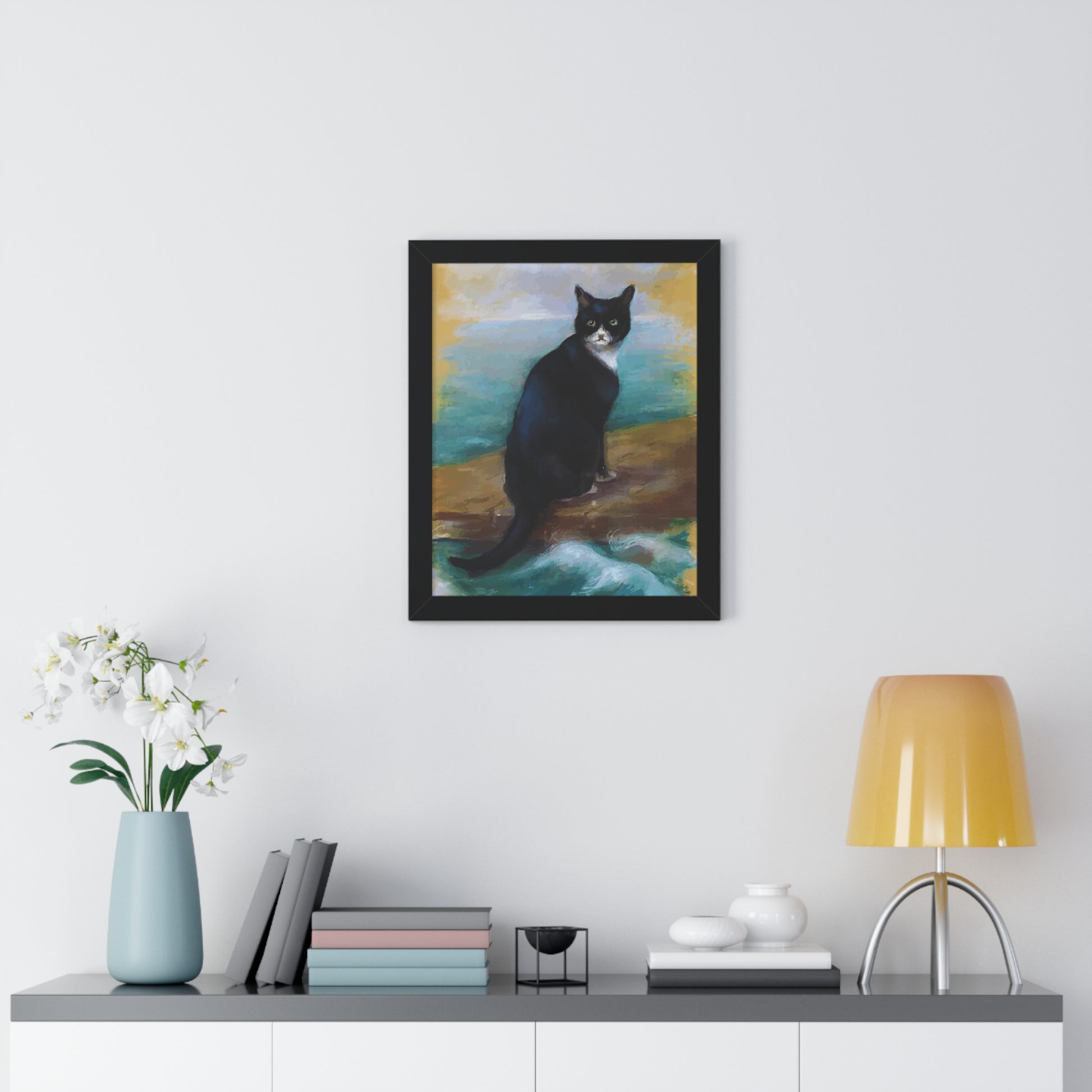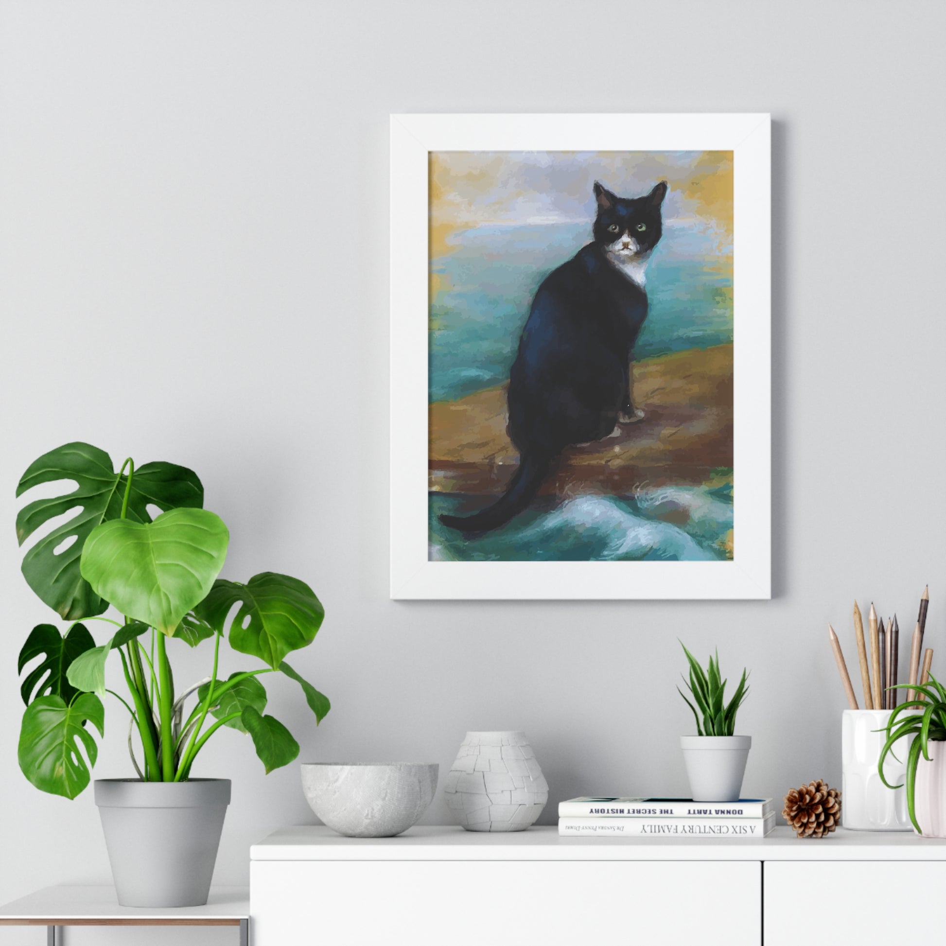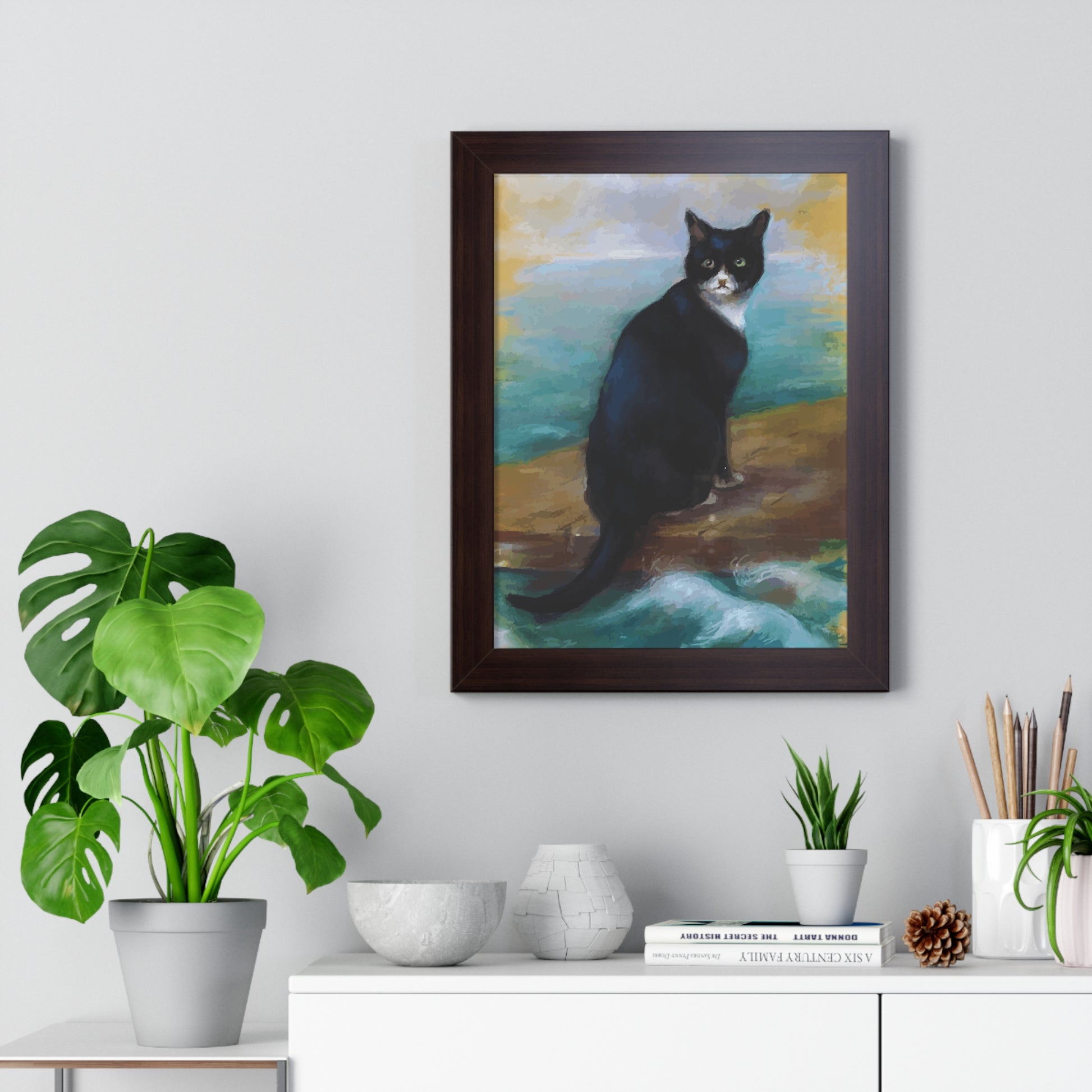 Elevate your wall decor with our Premium Framed Historical Painting of Unsinkable Sam, a cat named Oskar that was rescued from the wreckage of German Battleship Bismarck. Painted by Georgina Shaw Baker. Available in three sophisticated colors: black, white, and walnut.