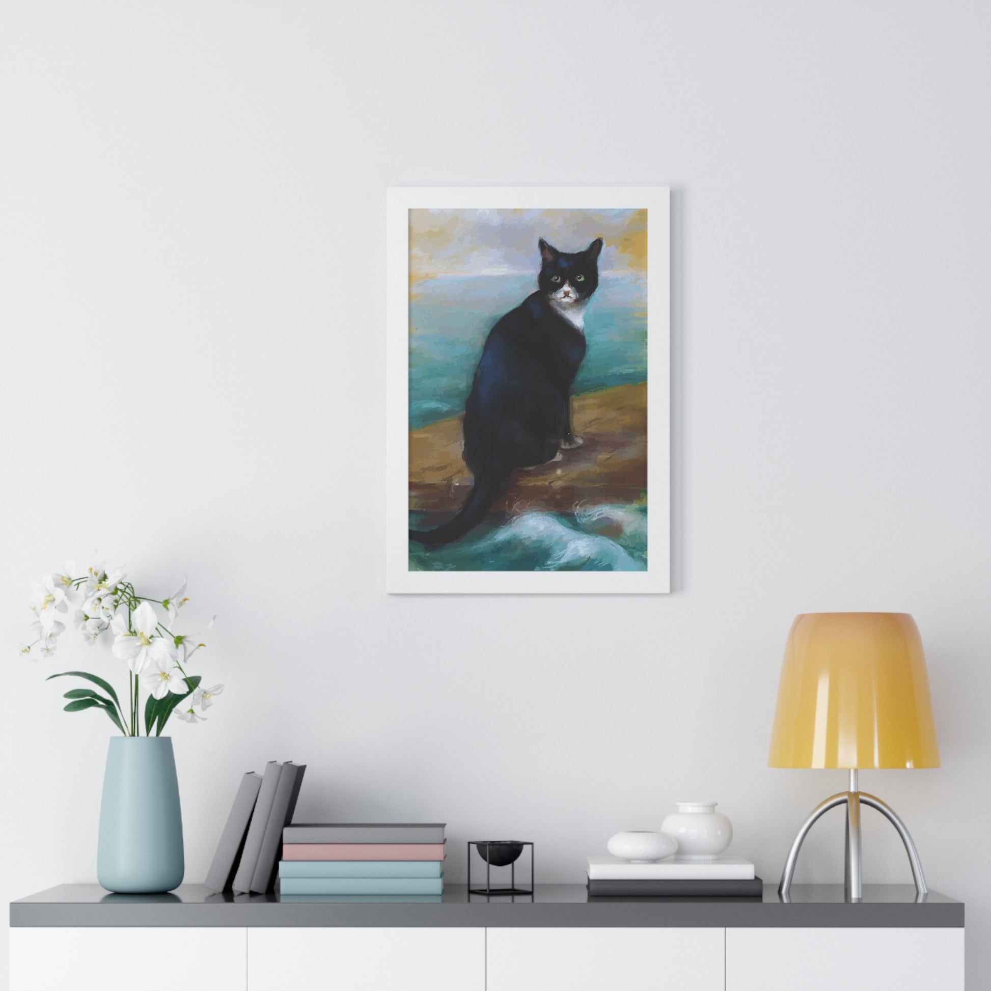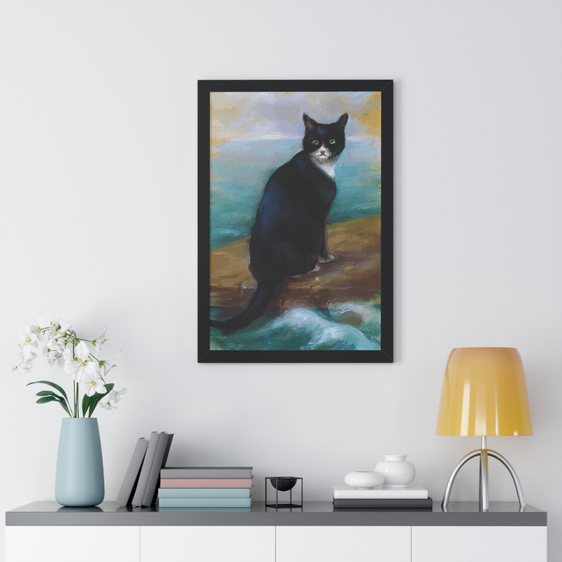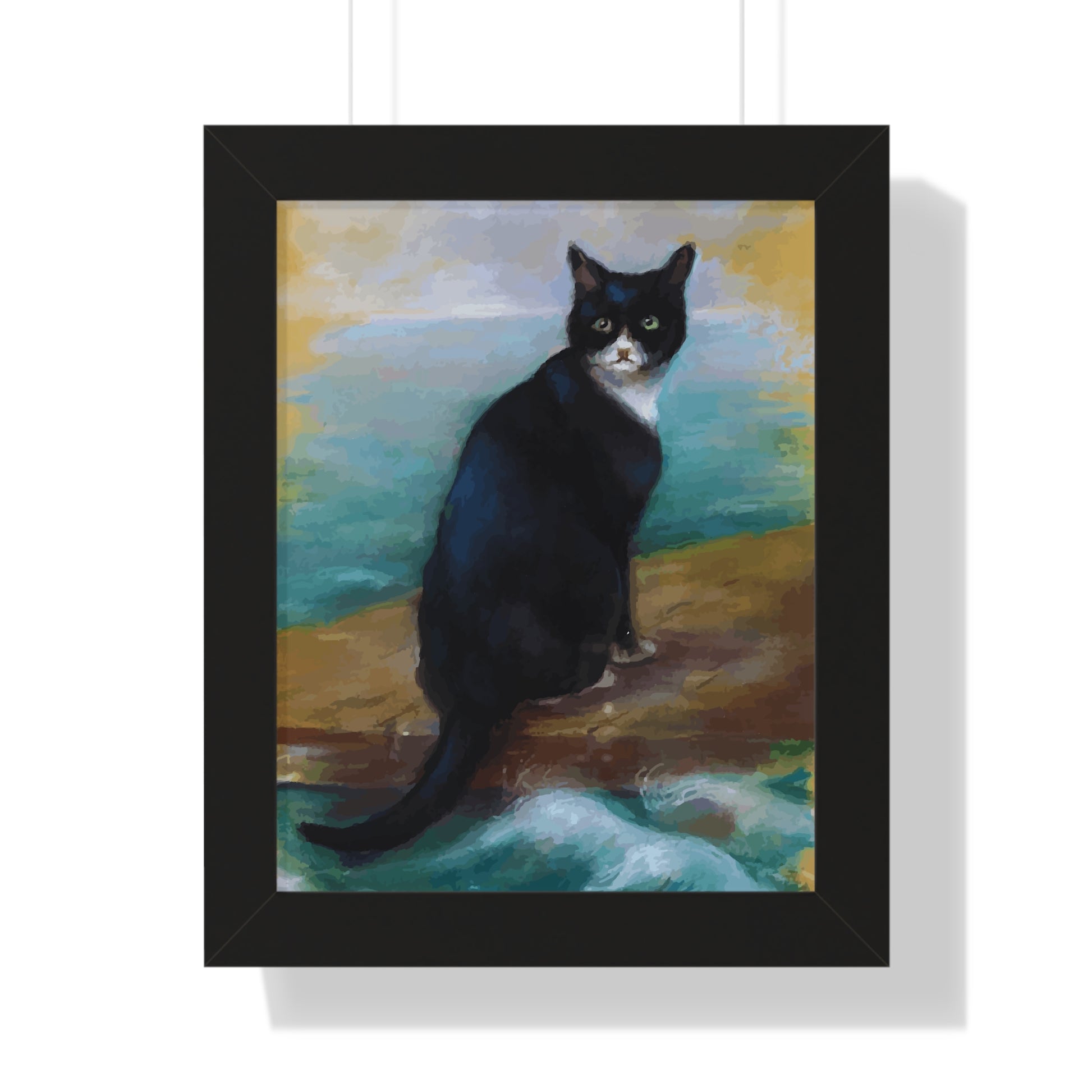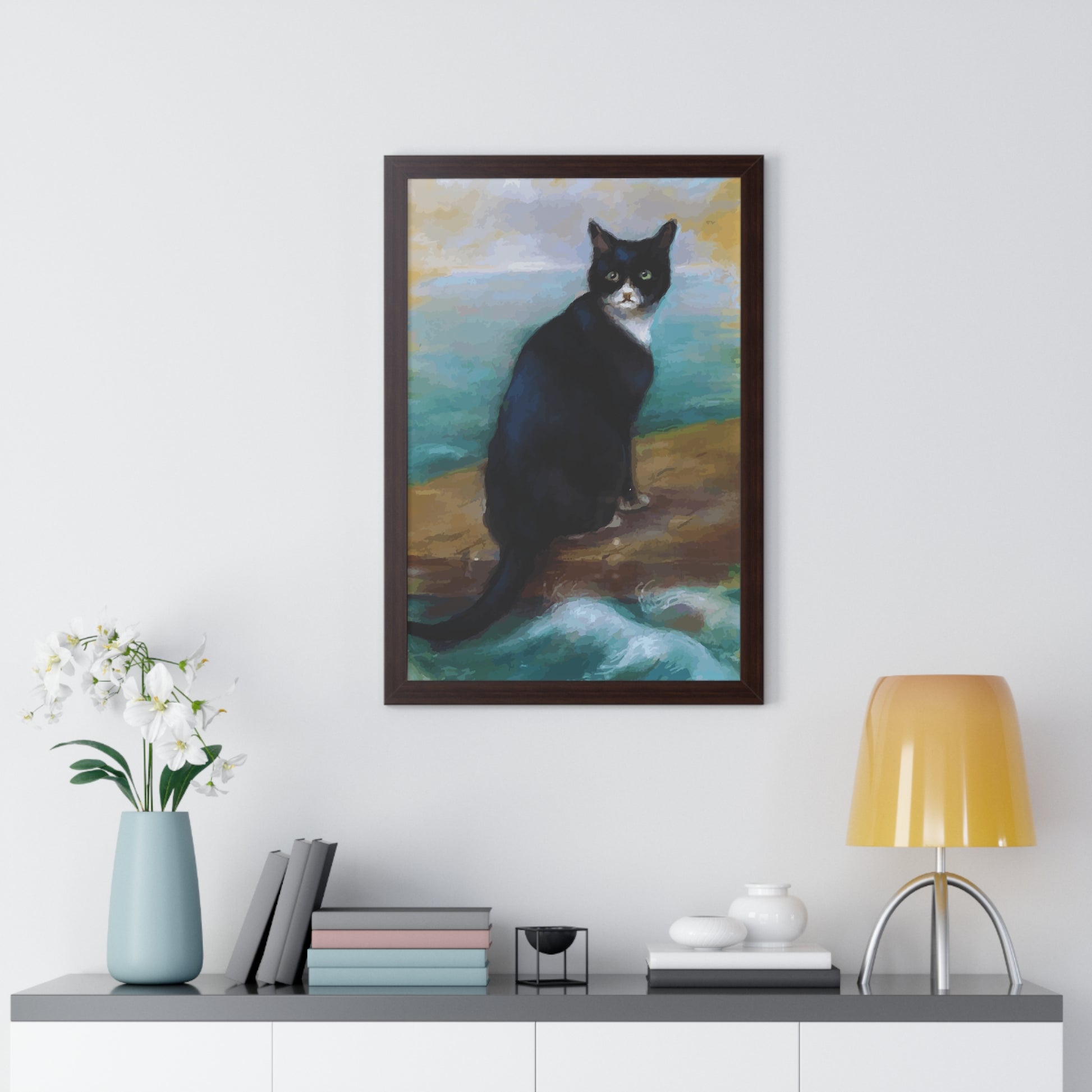 Elevate your wall decor with our Premium Framed Historical Painting of Unsinkable Sam, a cat named Oskar that was rescued from the wreckage of German Battleship Bismarck. Painted by Georgina Shaw Baker. Available in three sophisticated colors: black, white, and walnut.