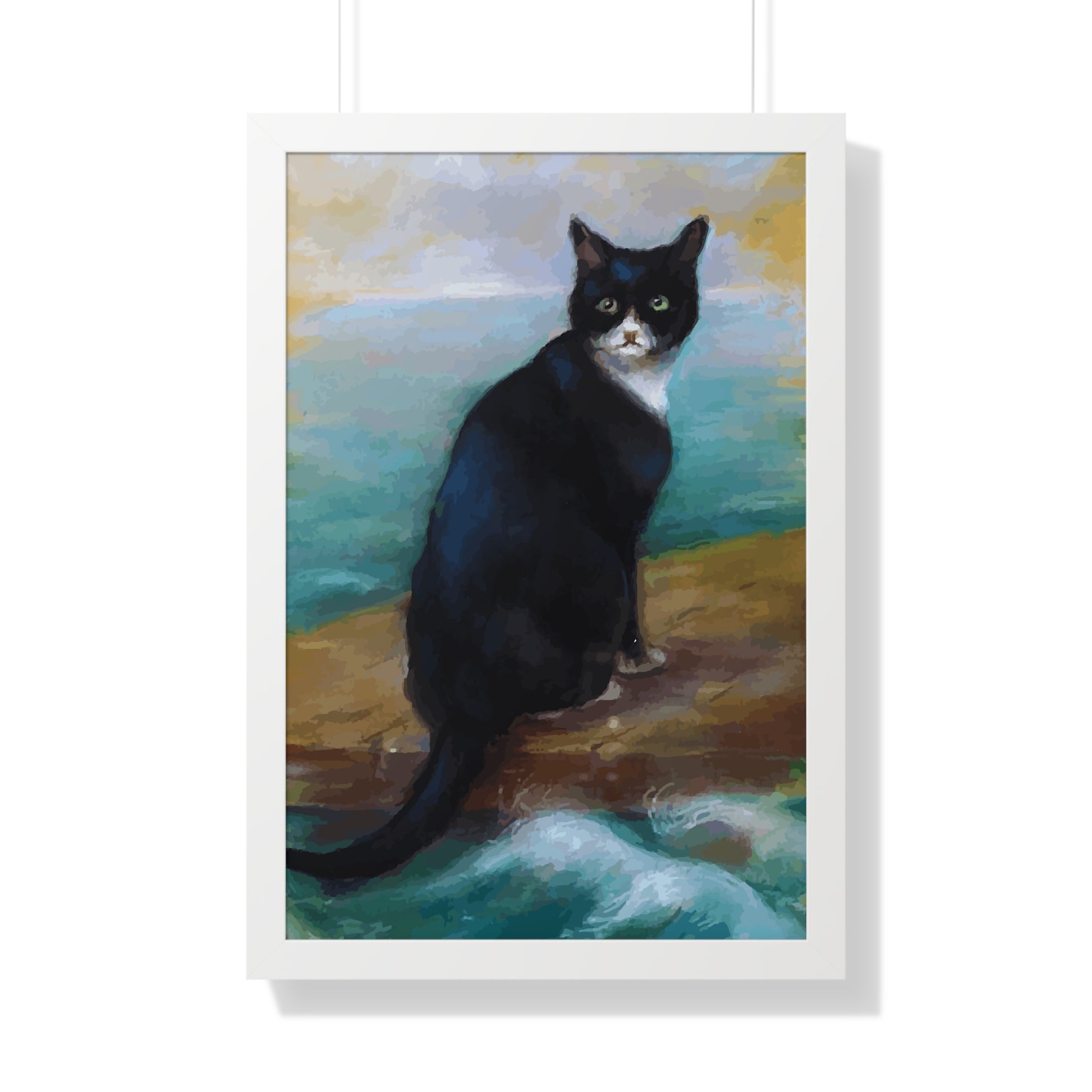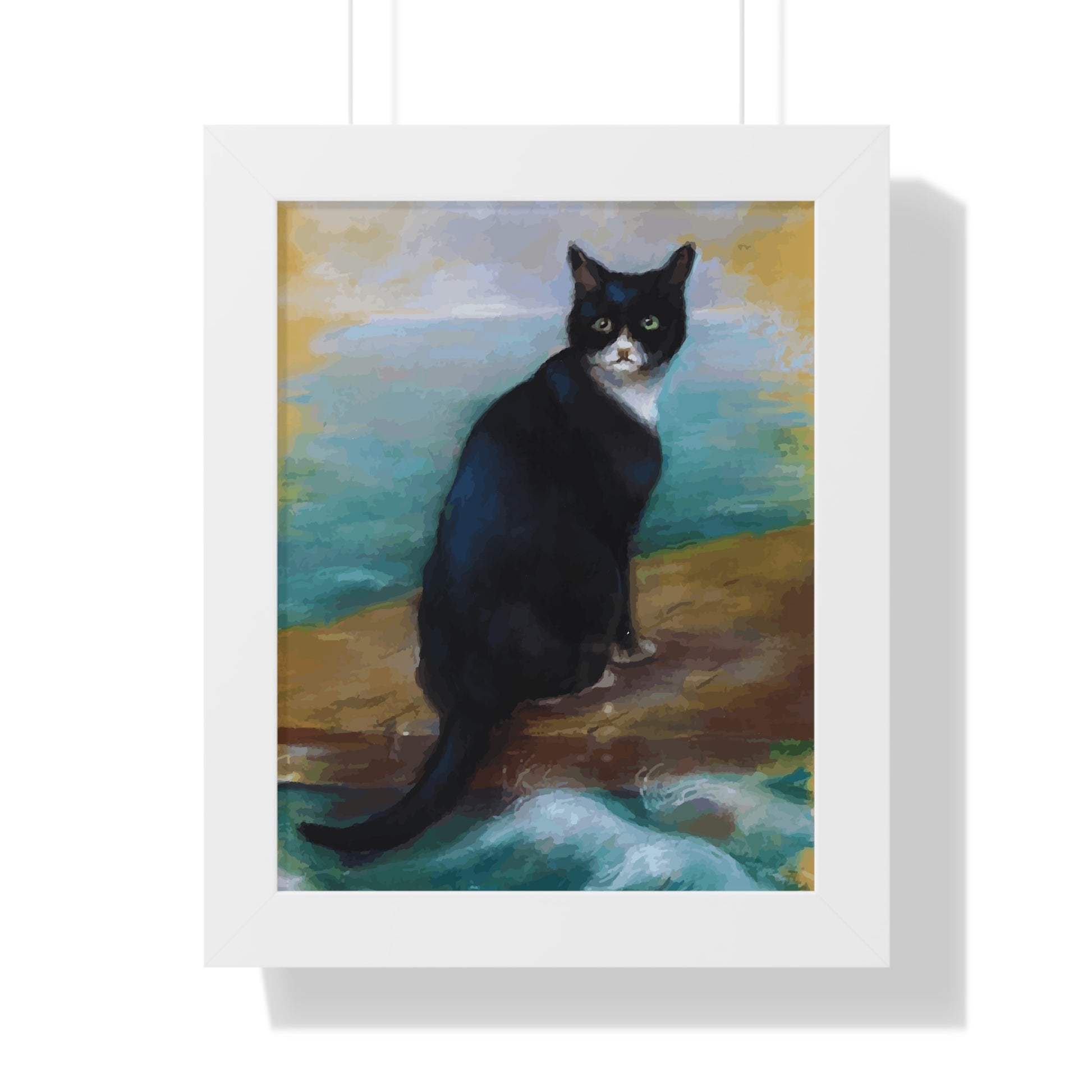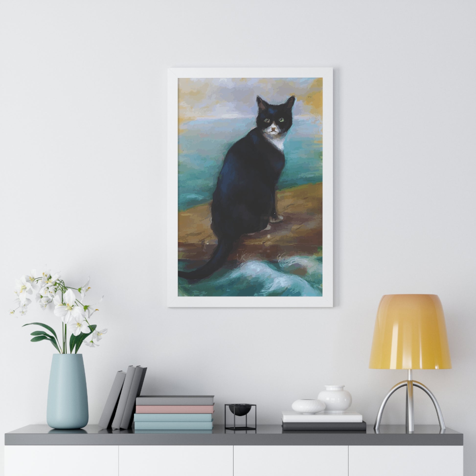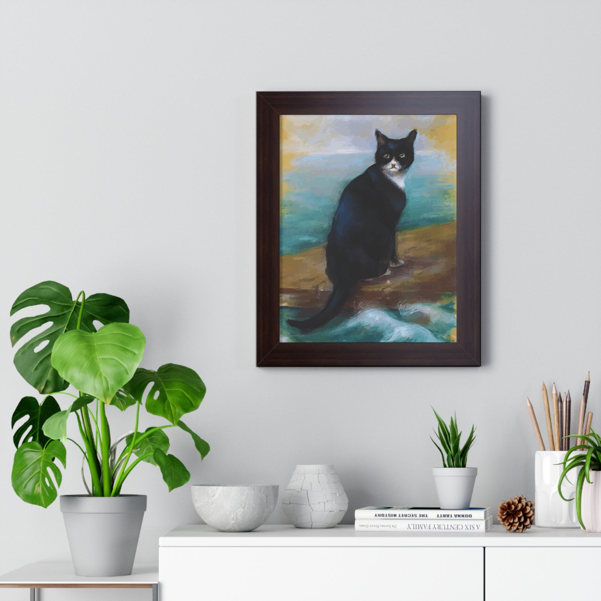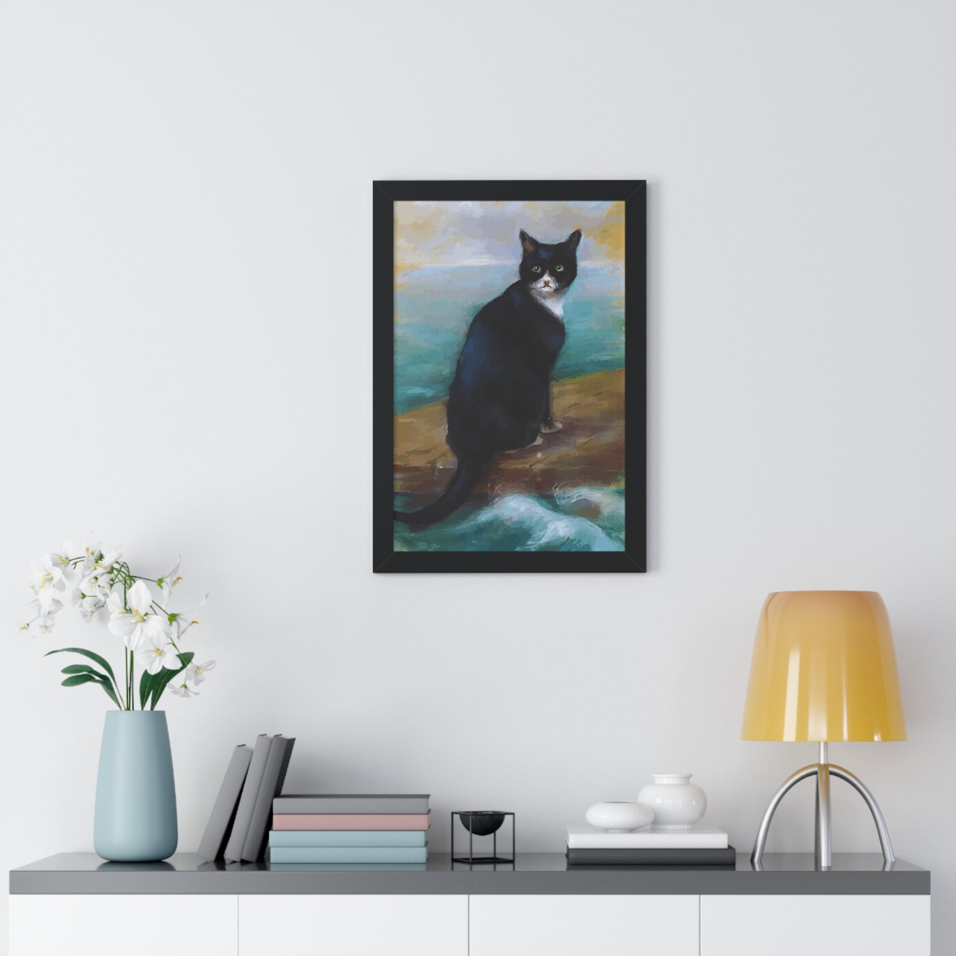 Elevate your wall decor with our Premium Framed Historical Painting of Unsinkable Sam, a cat named Oskar that was rescued from the wreckage of German Battleship Bismarck. Painted by Georgina Shaw Baker. Available in three sophisticated colors: black, white, and walnut.