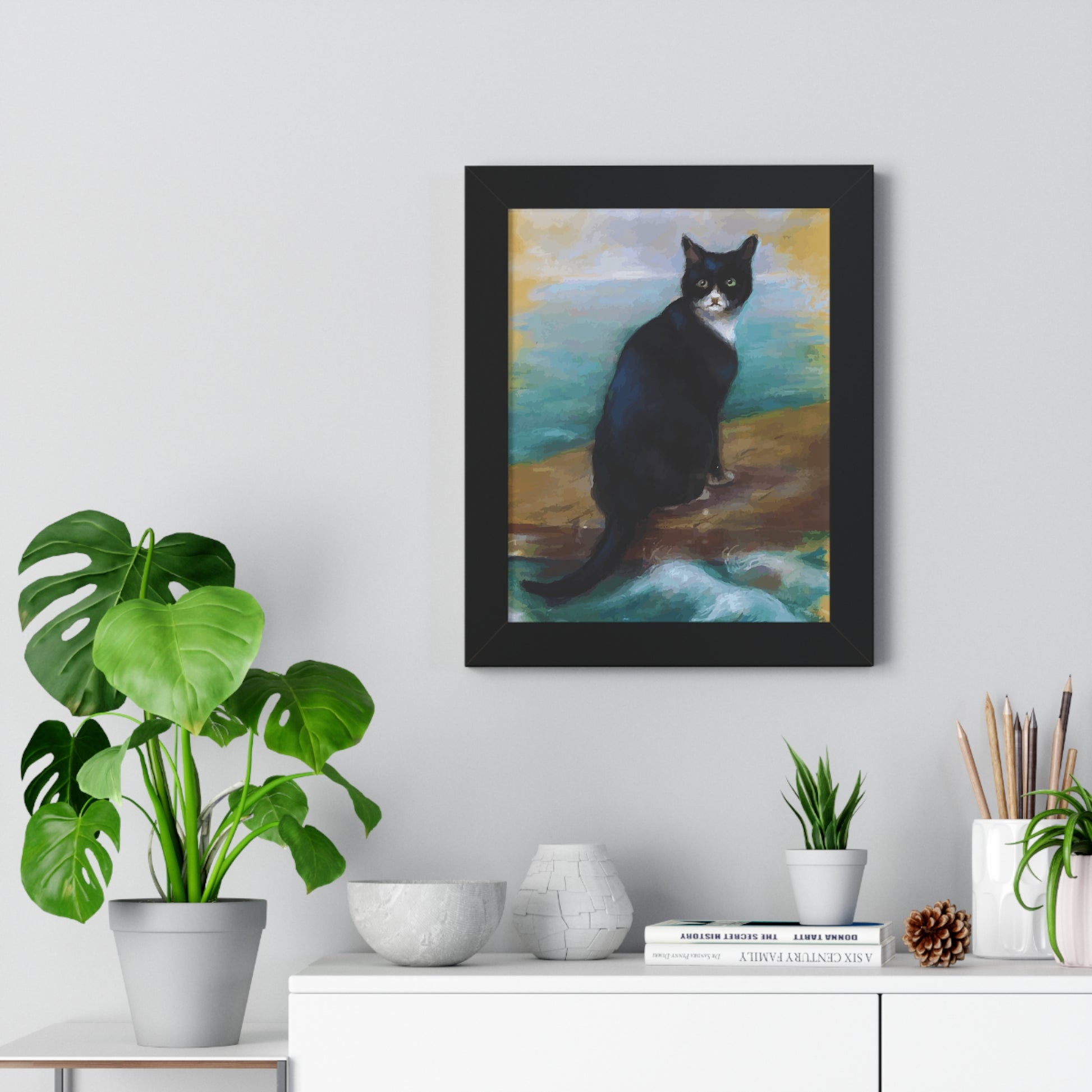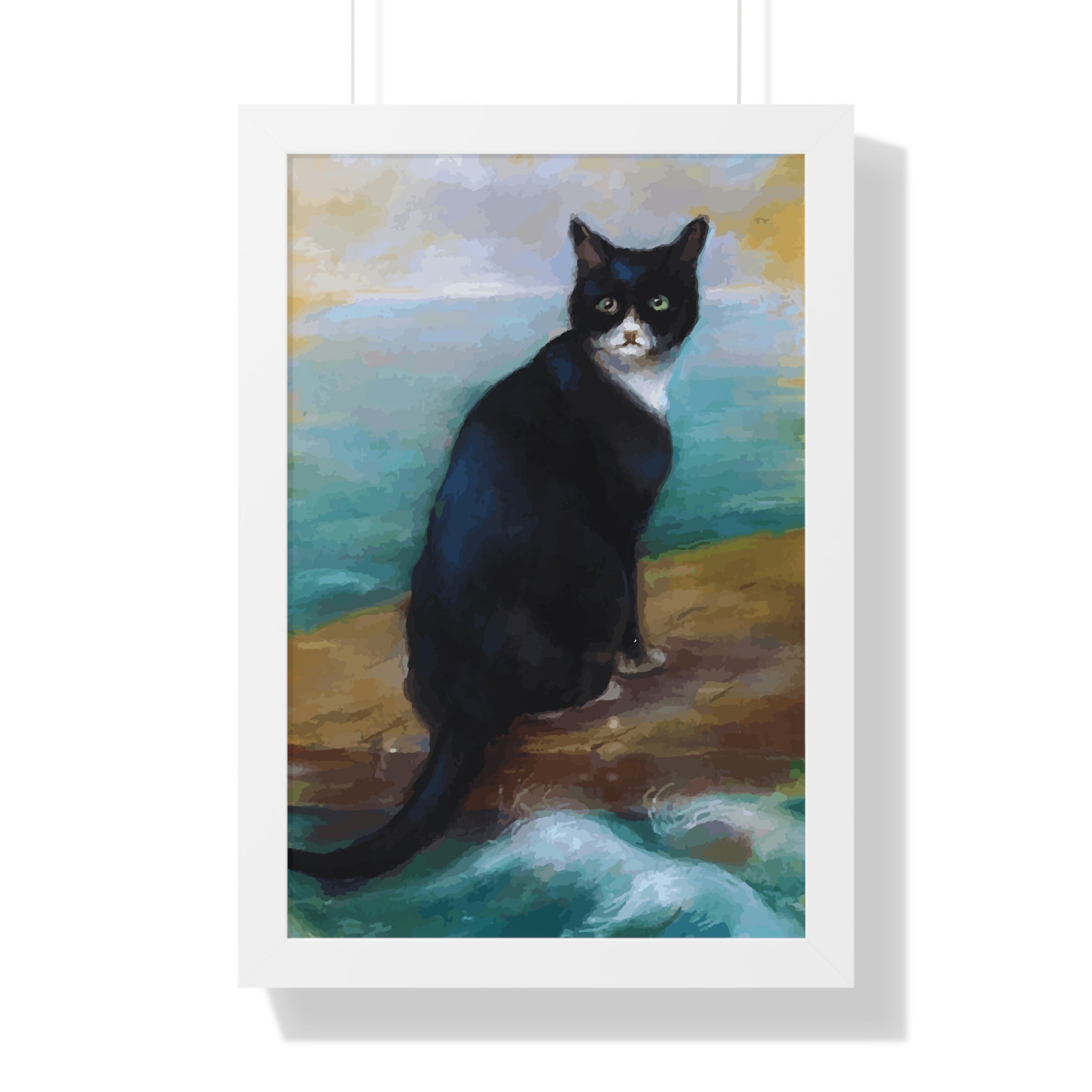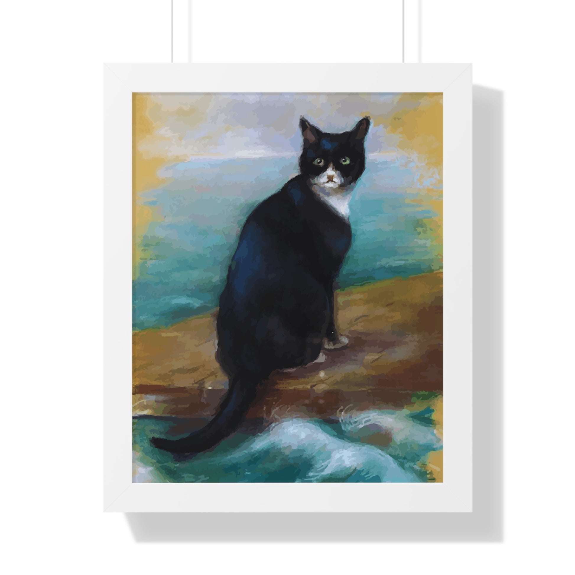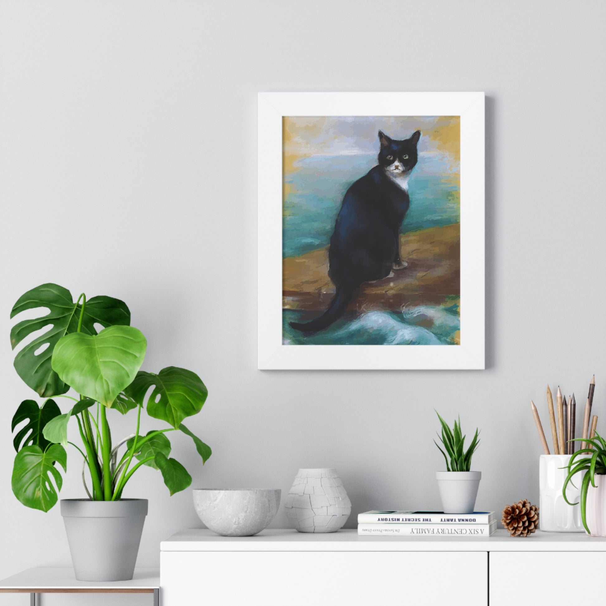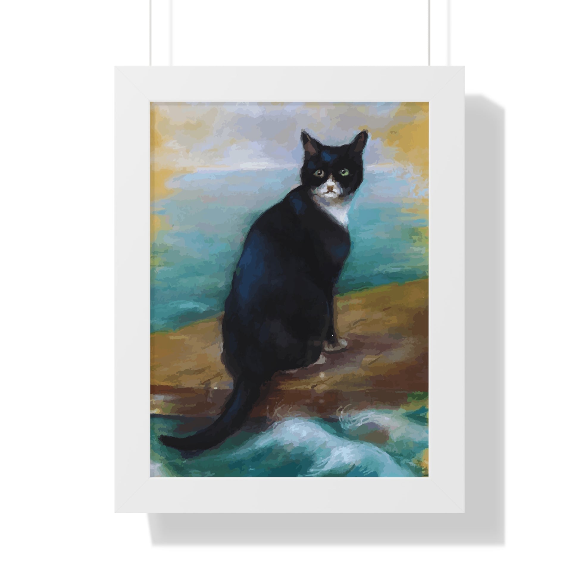 Elevate your wall decor with our Premium Framed Historical Painting of Unsinkable Sam, a cat named Oskar that was rescued from the wreckage of German Battleship Bismarck. Painted by Georgina Shaw Baker. Available in three sophisticated colors: black, white, and walnut.