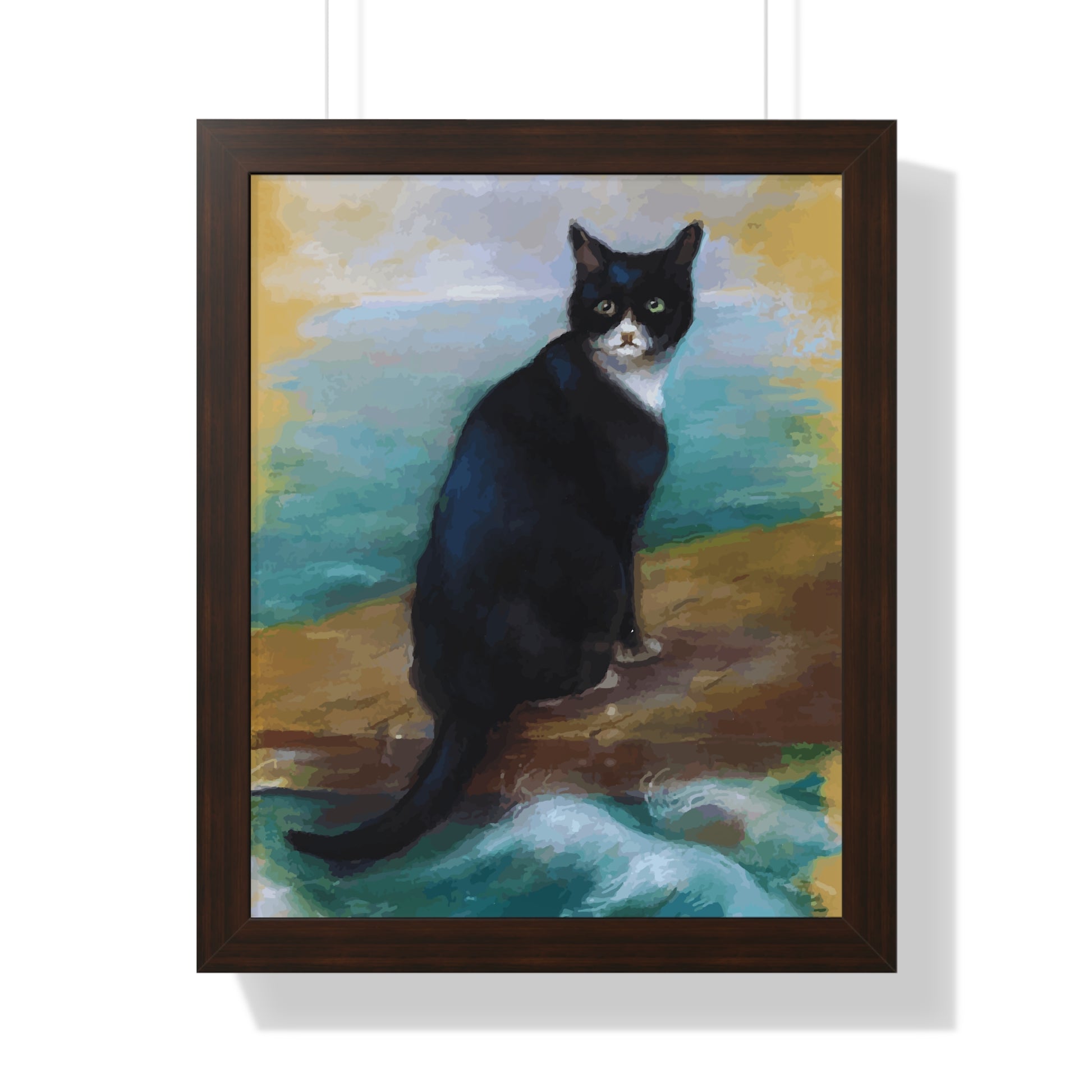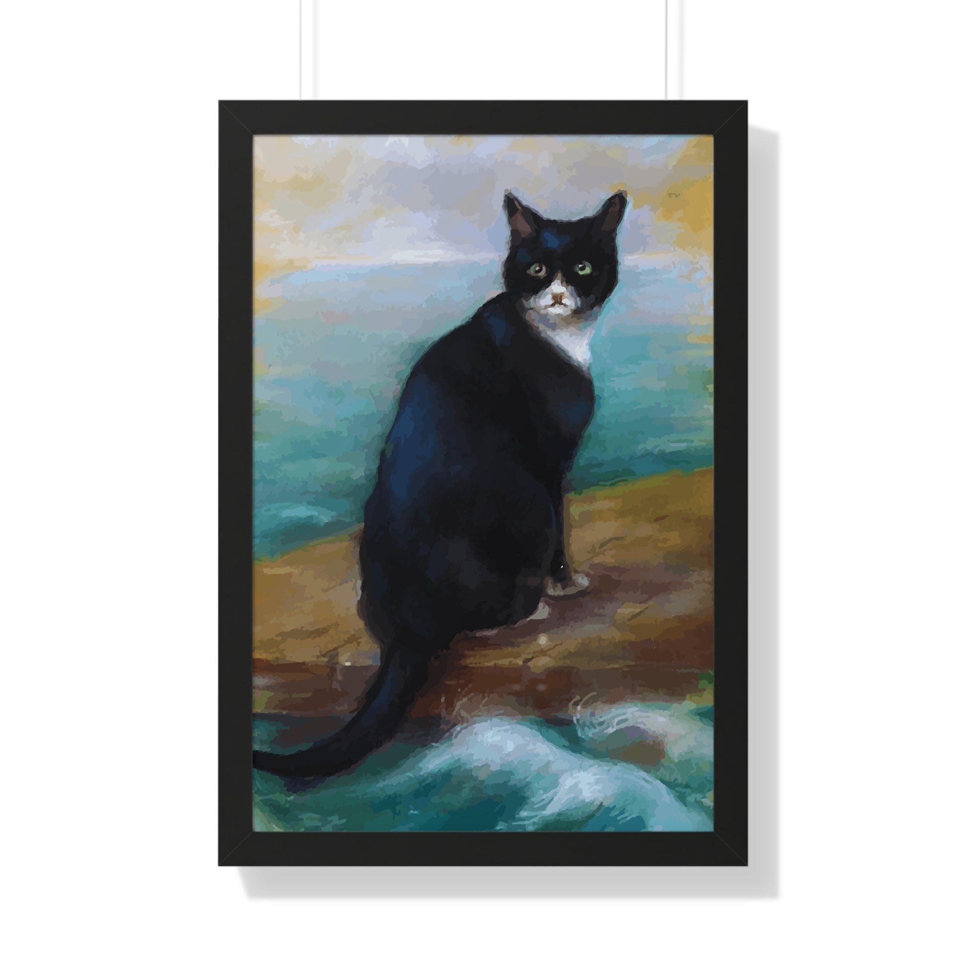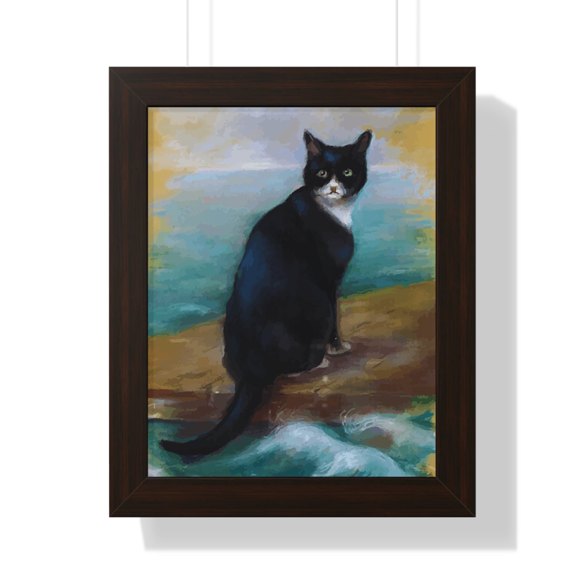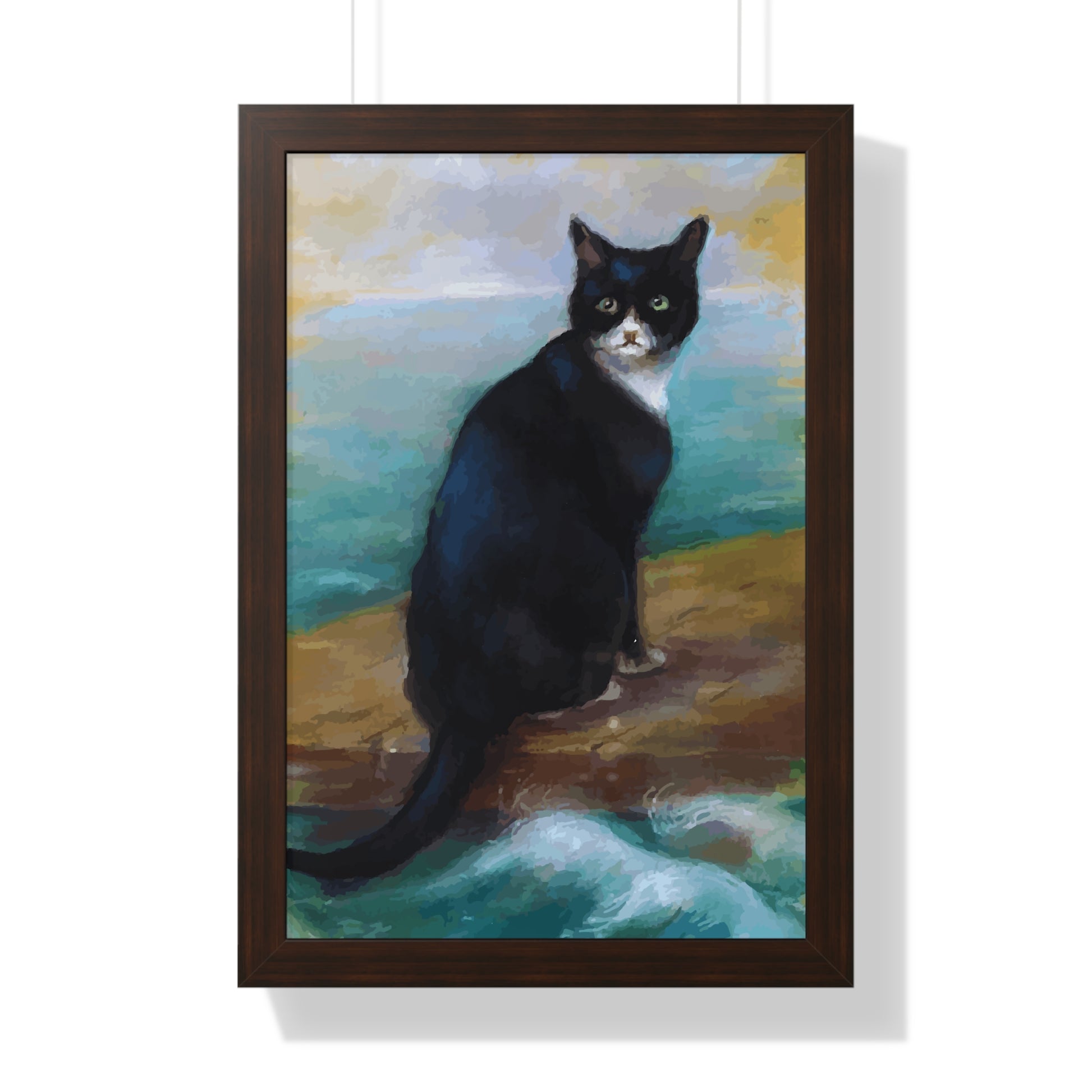 Elevate your wall decor with our Premium Framed Historical Painting of Unsinkable Sam, a cat named Oskar that was rescued from the wreckage of German Battleship Bismarck. Painted by Georgina Shaw Baker. Available in three sophisticated colors: black, white, and walnut.