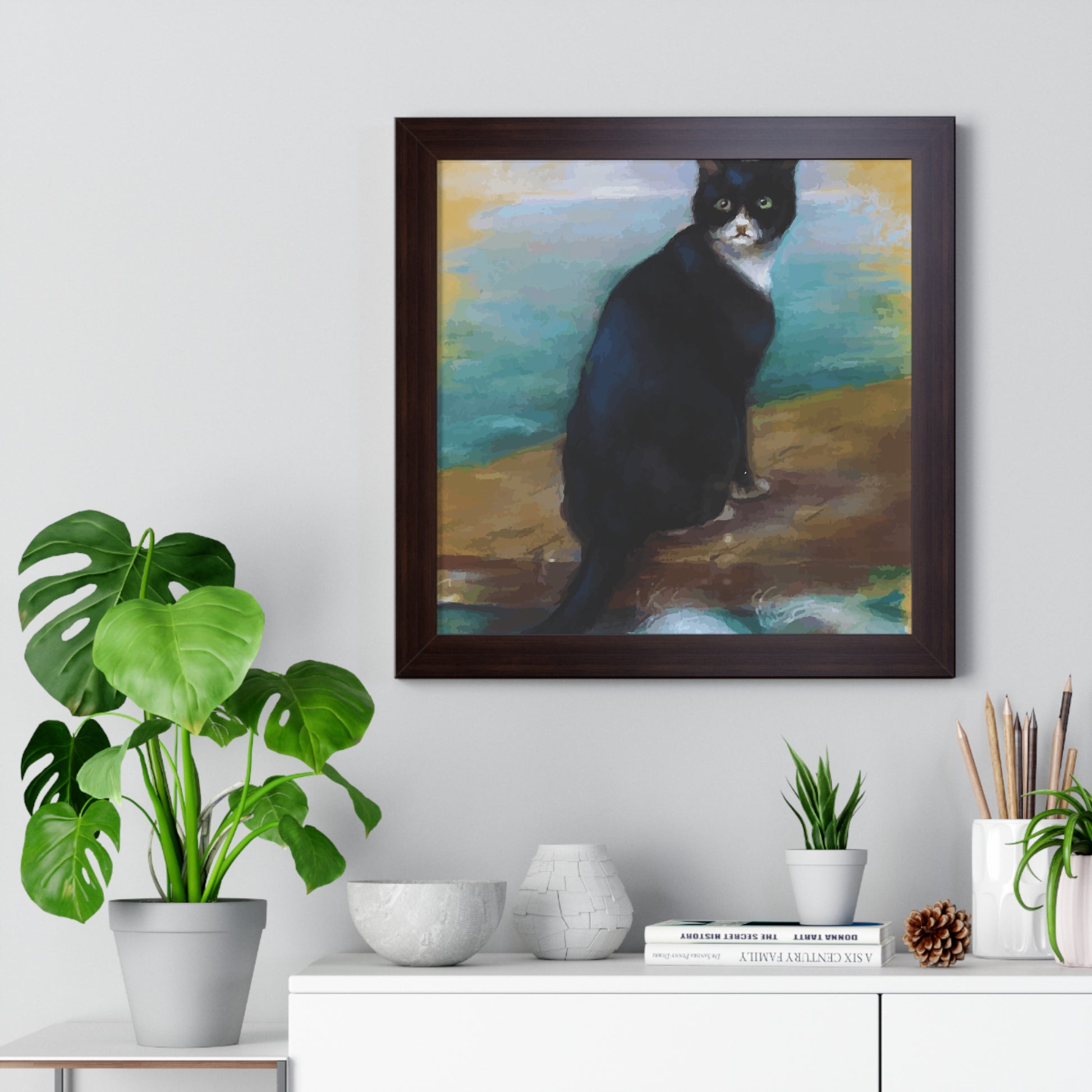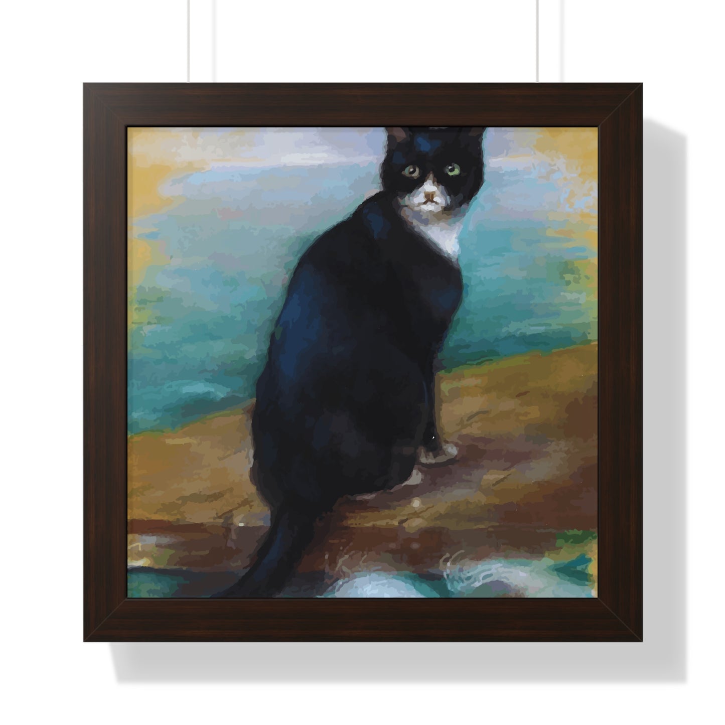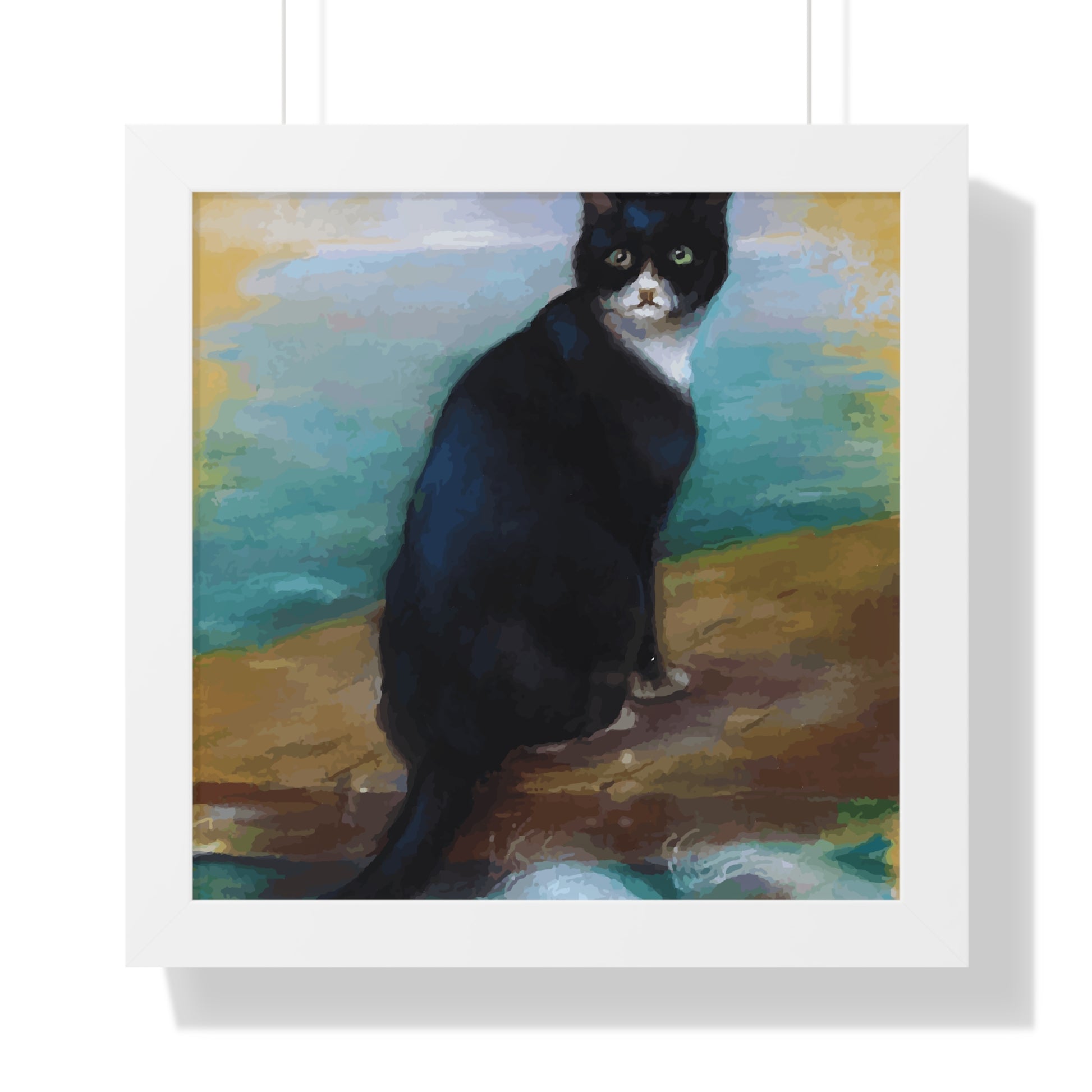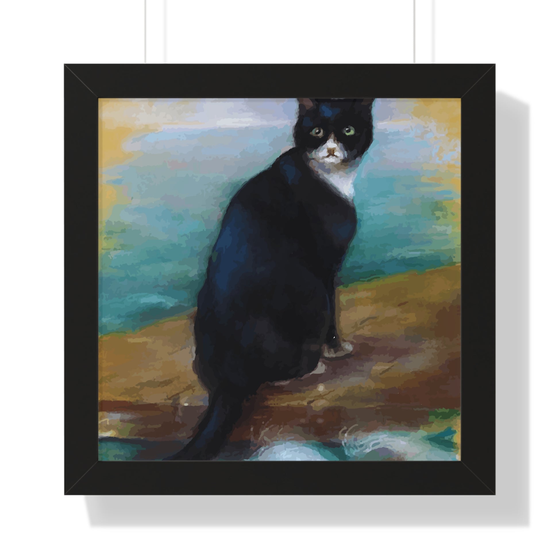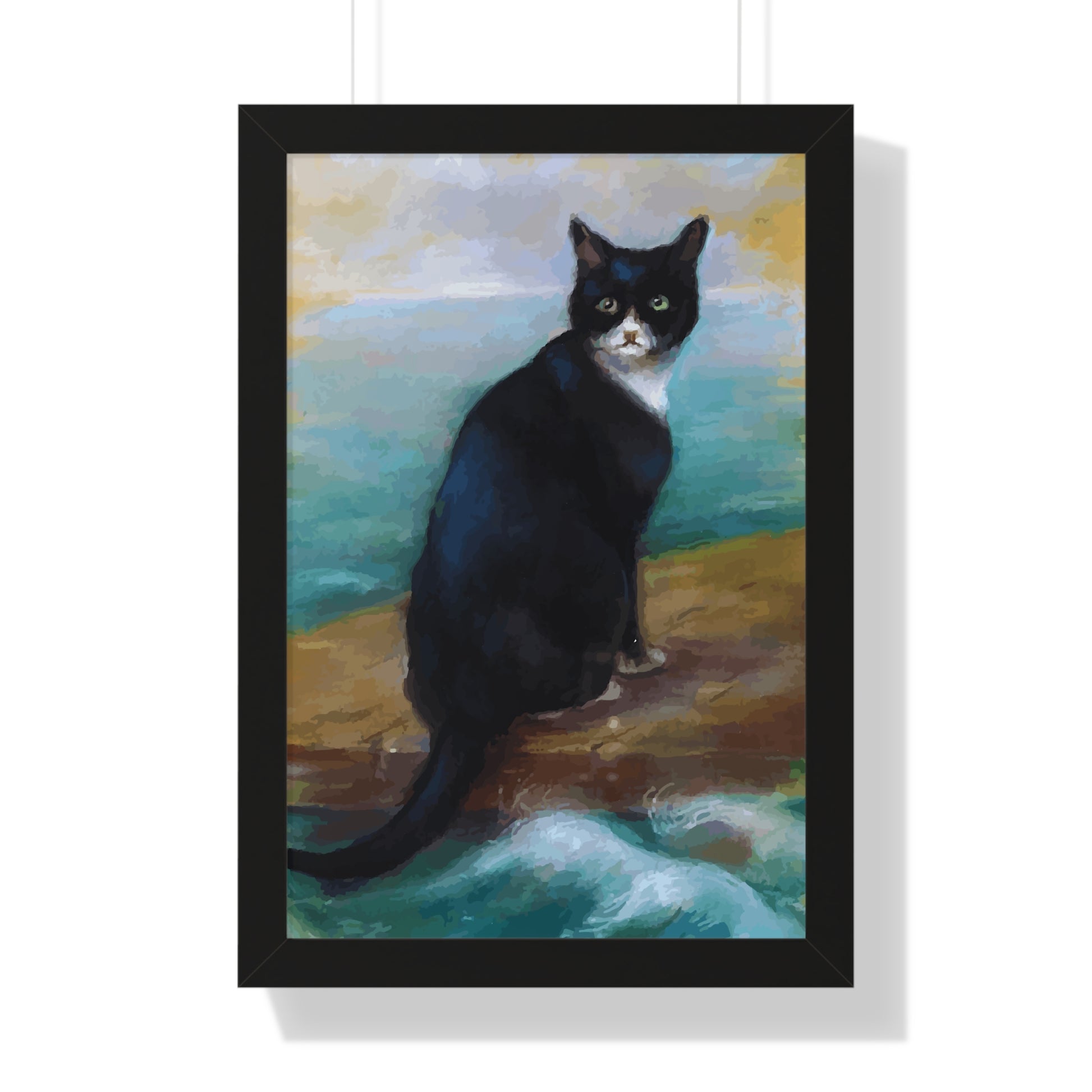Elevate your wall decor with our Premium Framed Historical Painting of Unsinkable Sam, a cat named Oskar that was rescued from the wreckage of German Battleship Bismarck. Painted by Georgina Shaw Baker. Available in three sophisticated colors: black, white, and walnut.