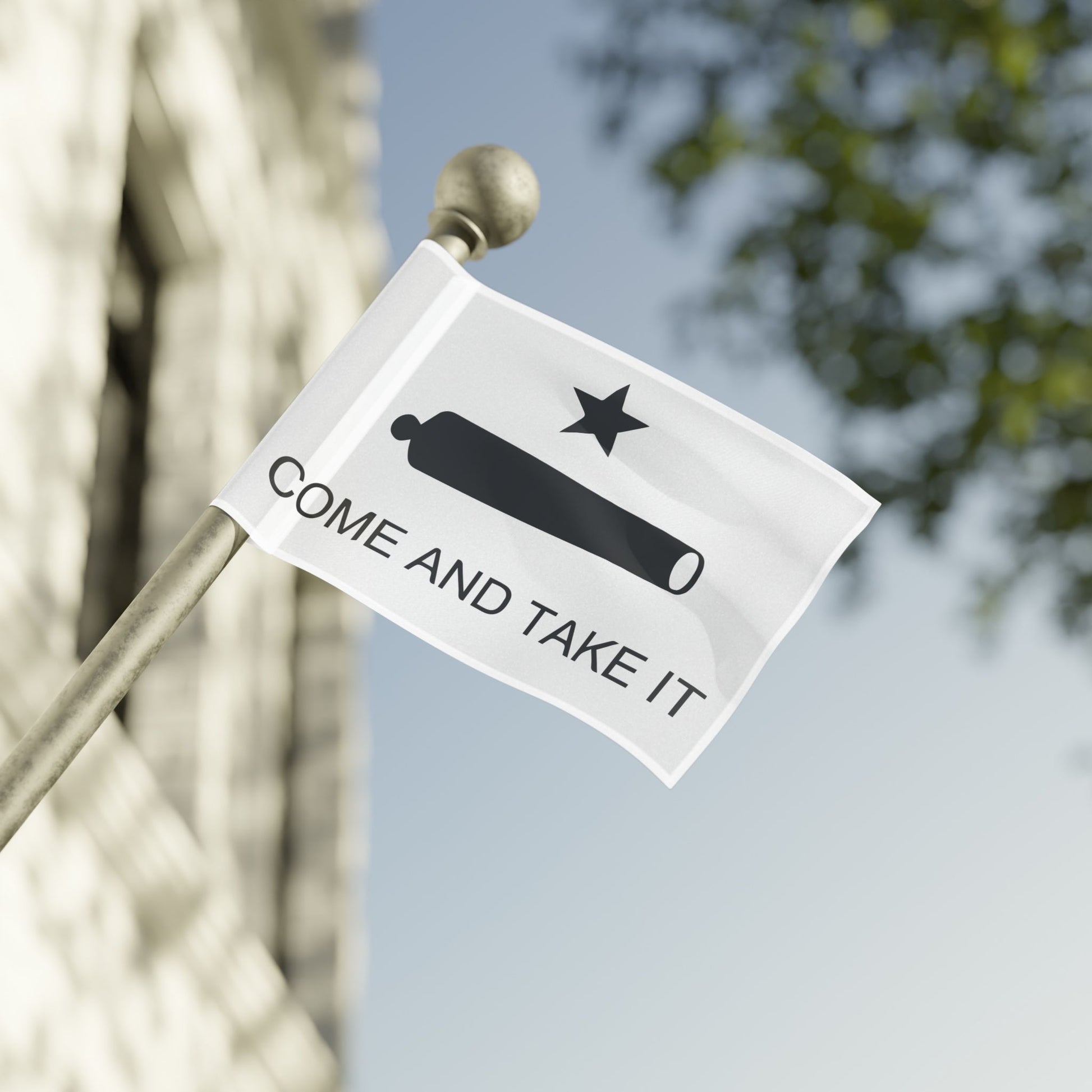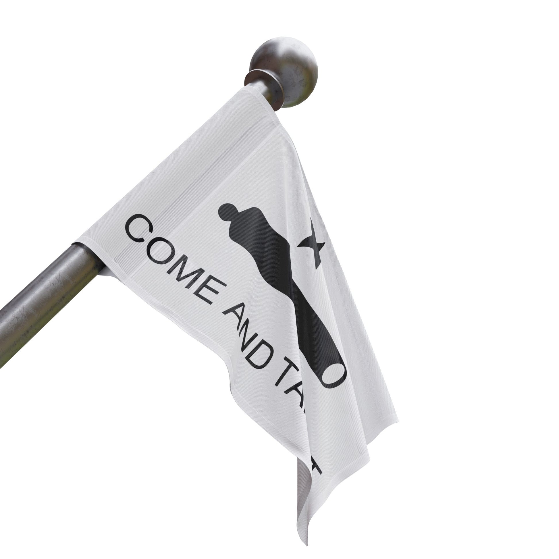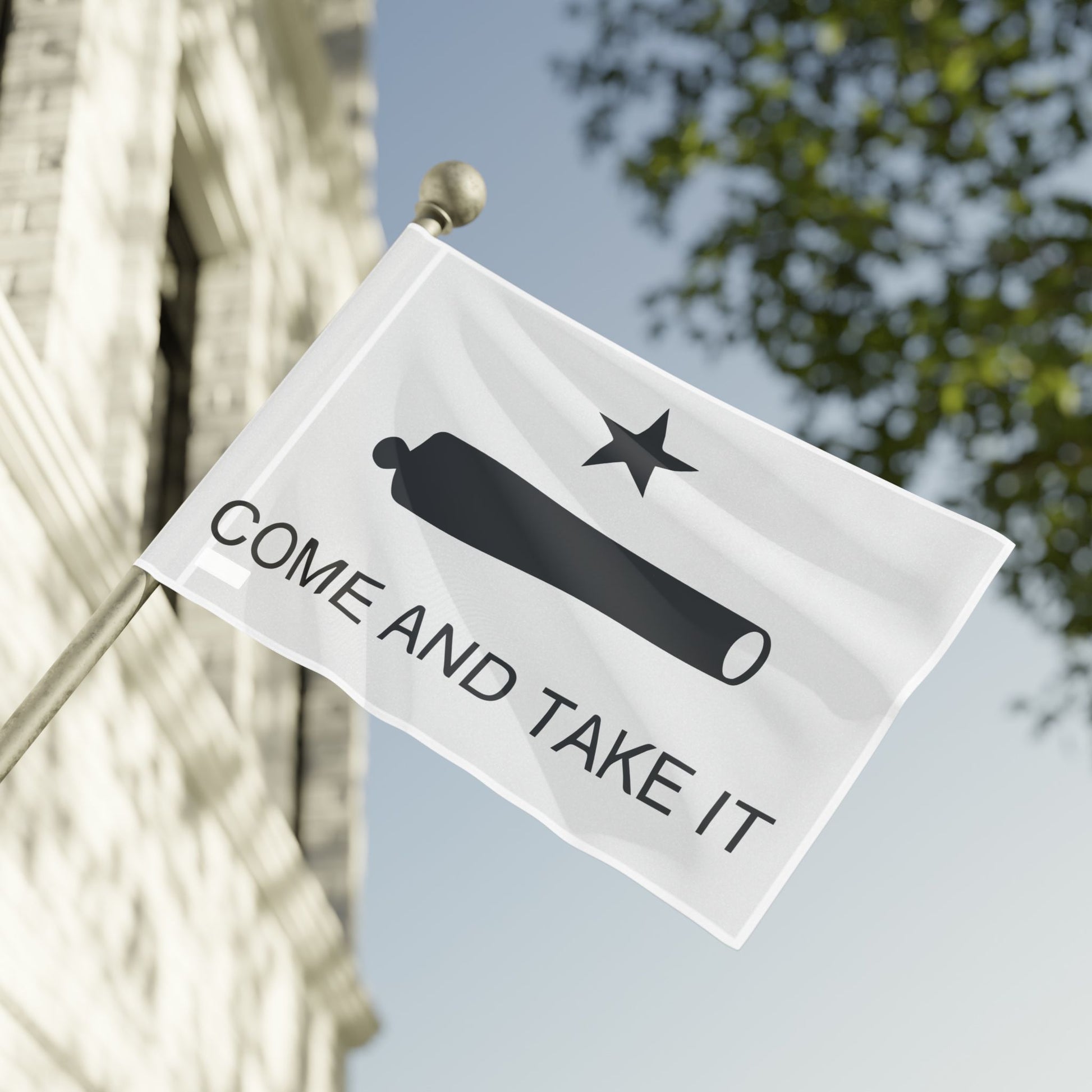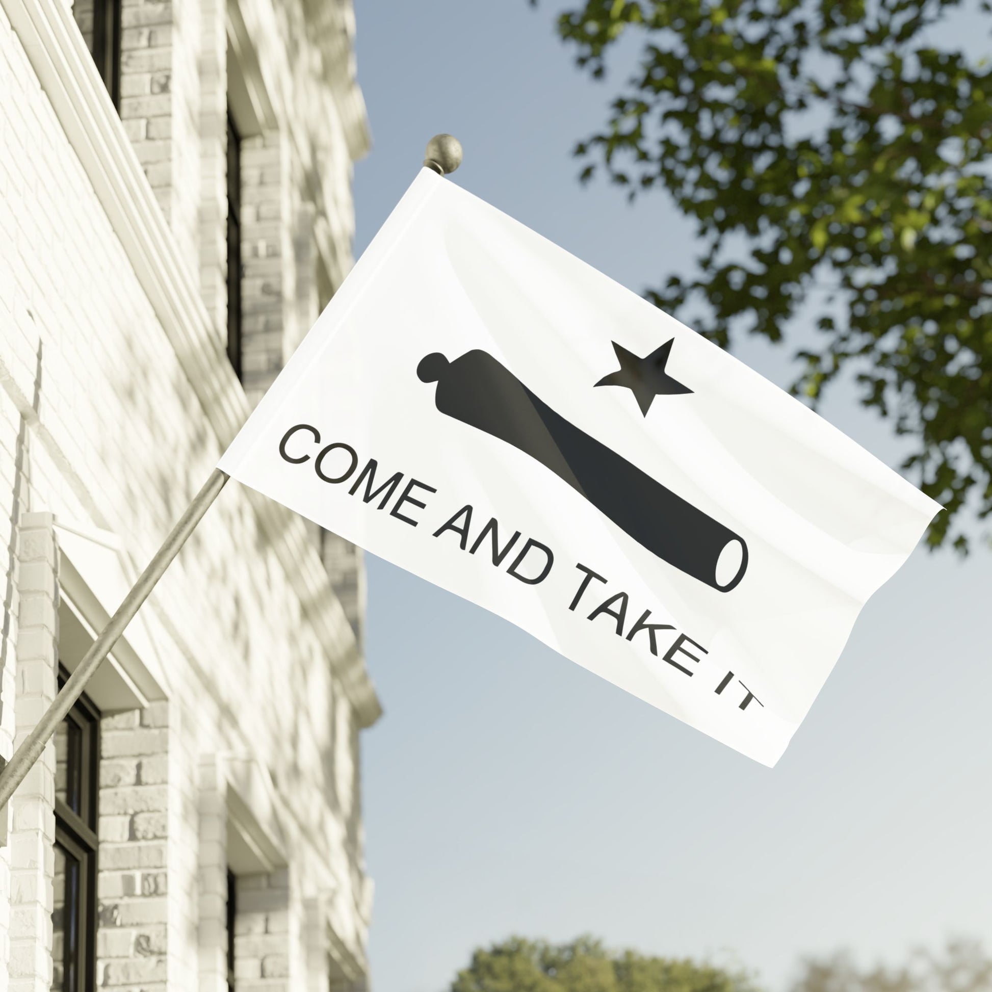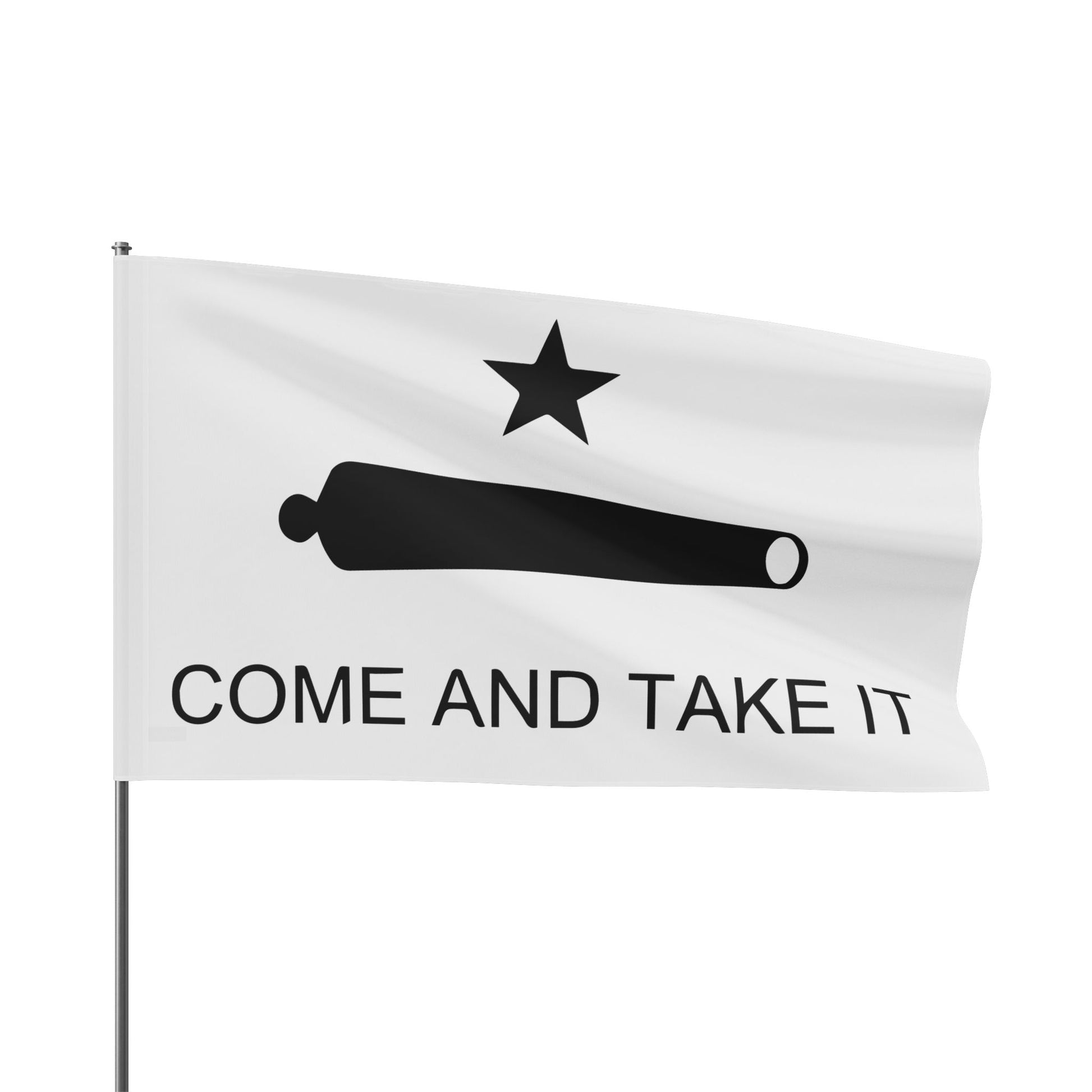 Show off you historical enthusiasm with this Come and Take it Texas Revolution Flag! This stunning flag is crafted from 100% premium polyester with a luxurious satin finish that adds a sophisticated sheen, perfect for showcasing vibrant designs and colors.
