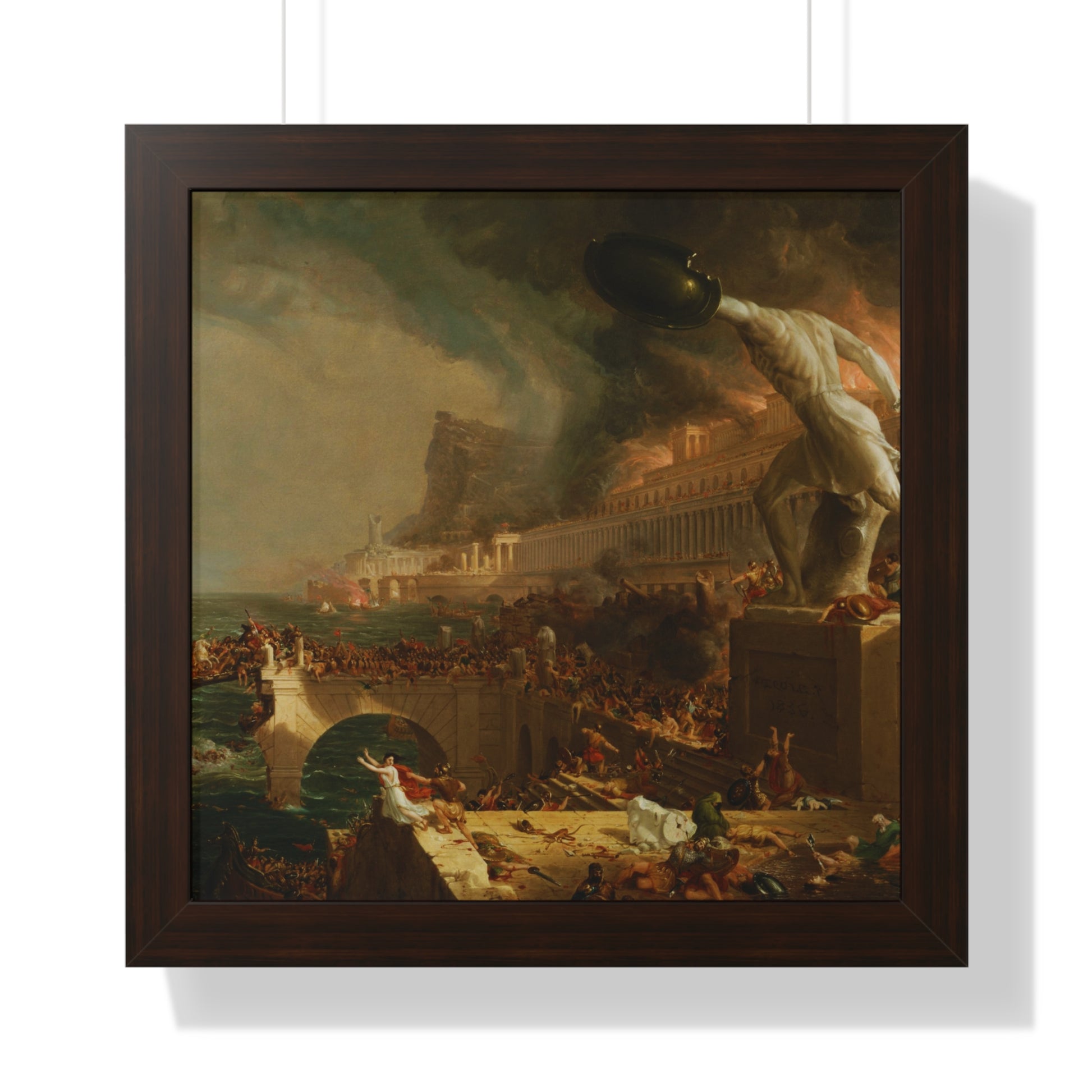 Elevate your wall decor with our Premium Framed Historical Painting titled "Destruction from The Course of Empire", painted by Thomas Cole in 1836. Available in three sophisticated colors: black, white, and walnut.
