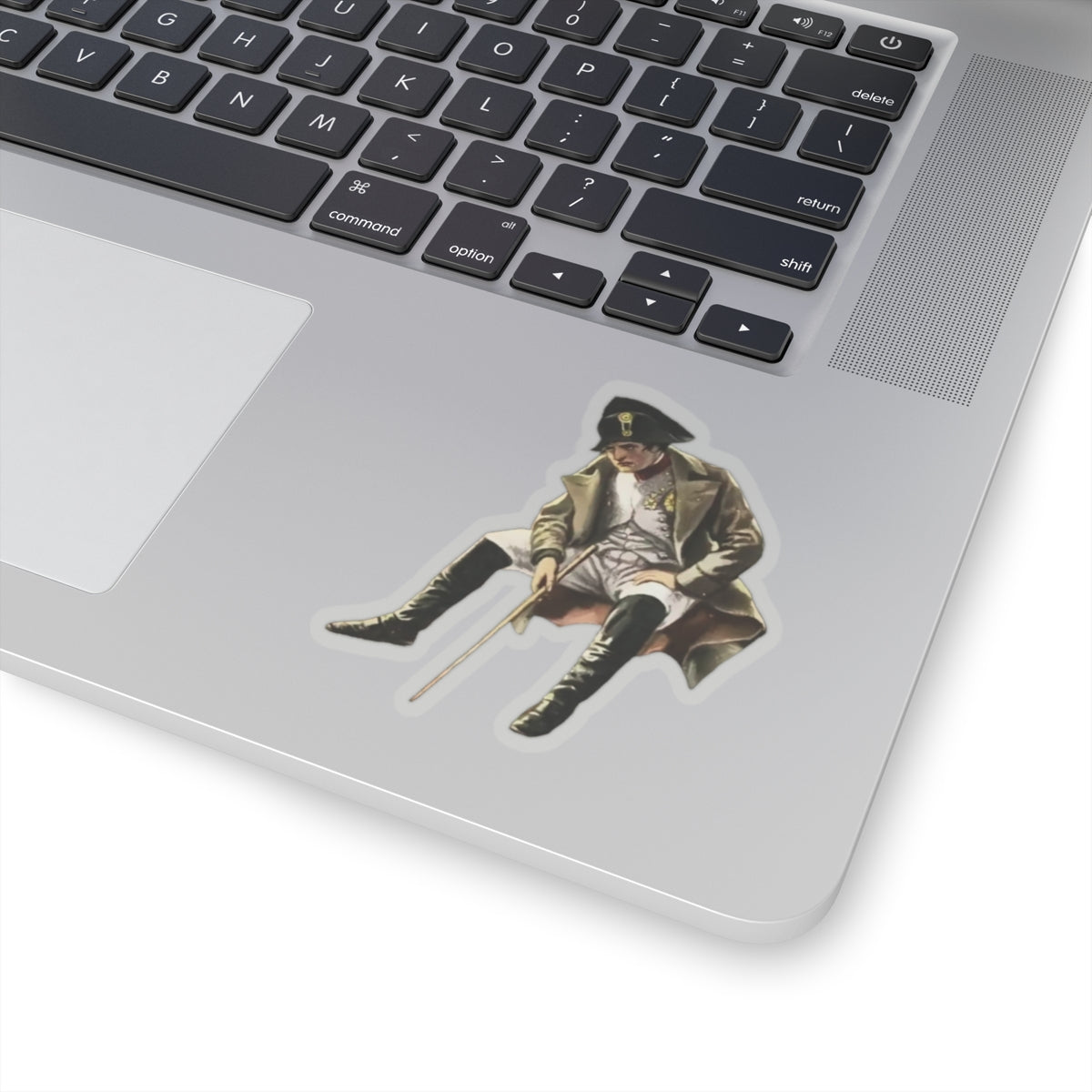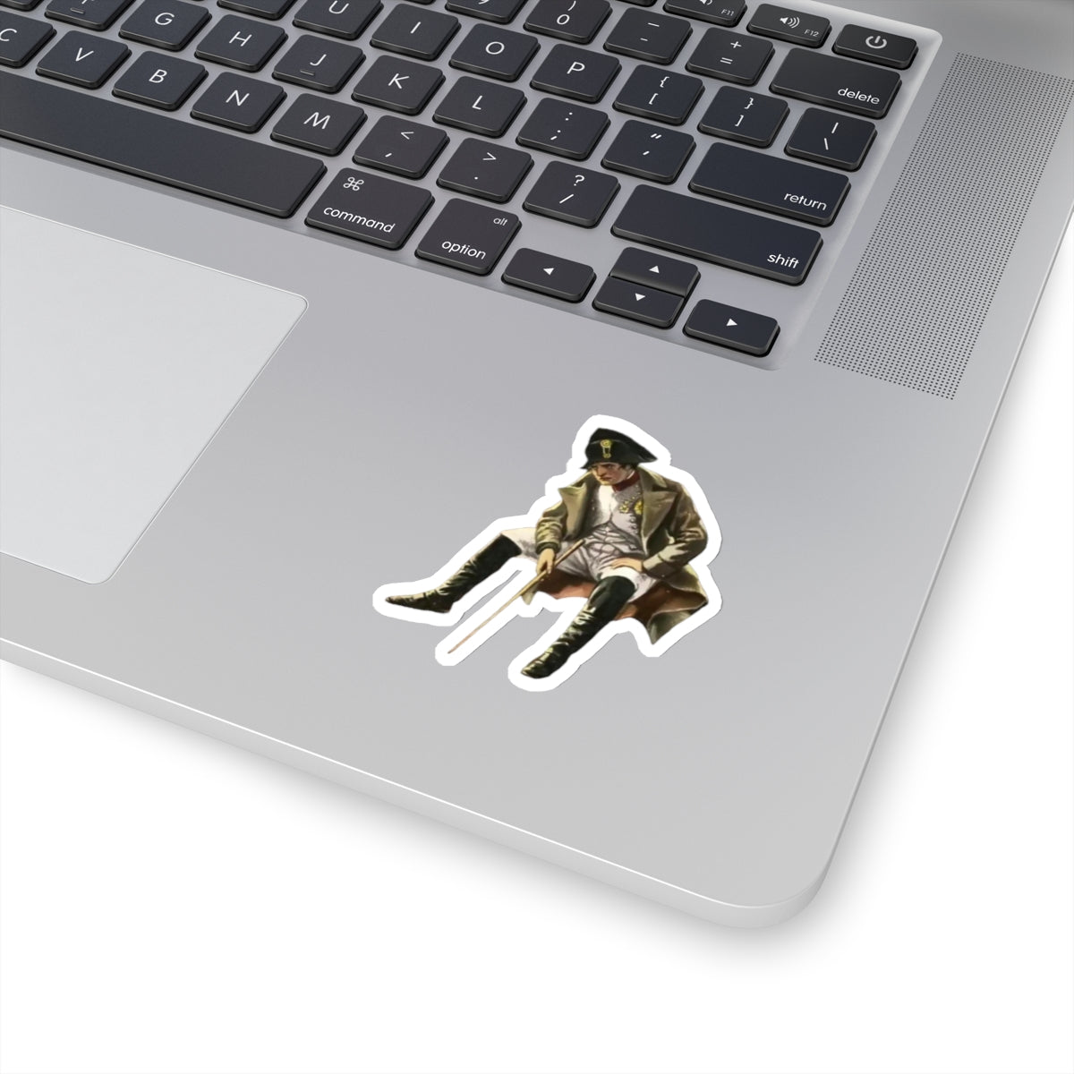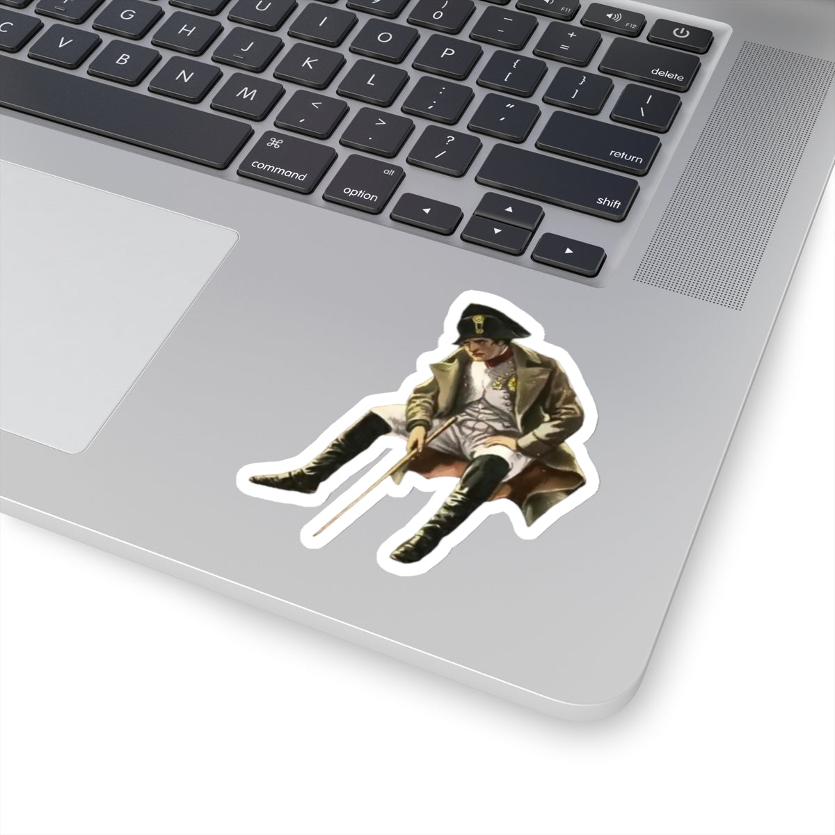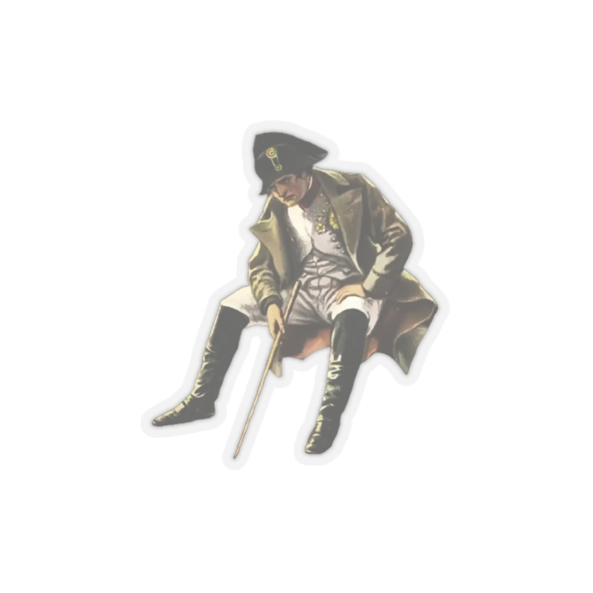 Upgrade your surroundings with this historical cutout of Napoleon Bonaparte sitting while in exile.