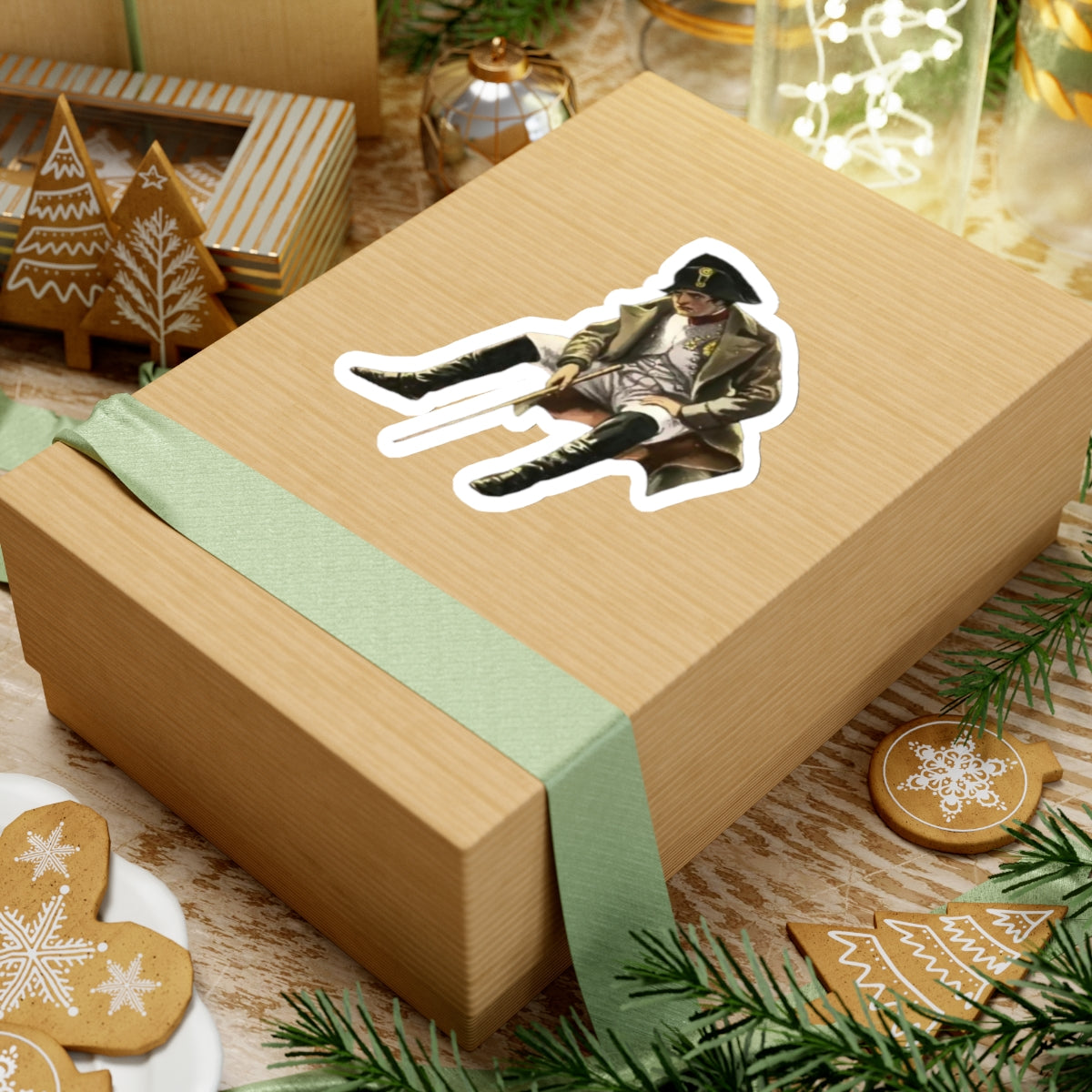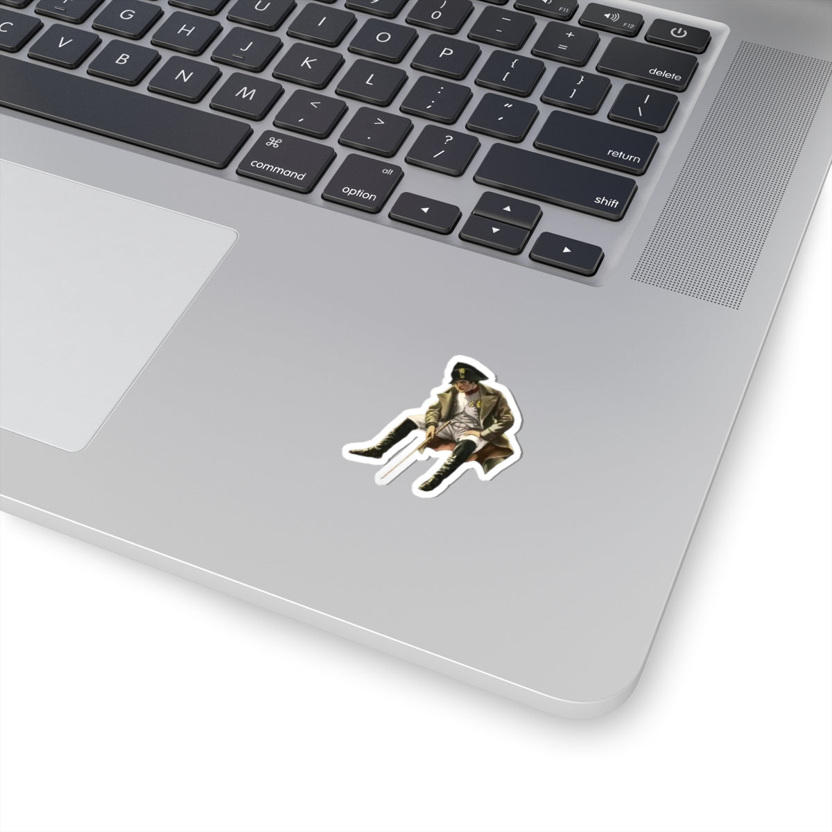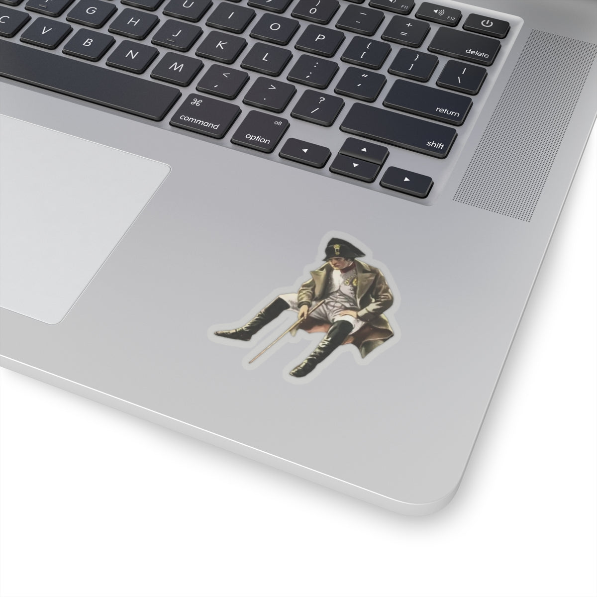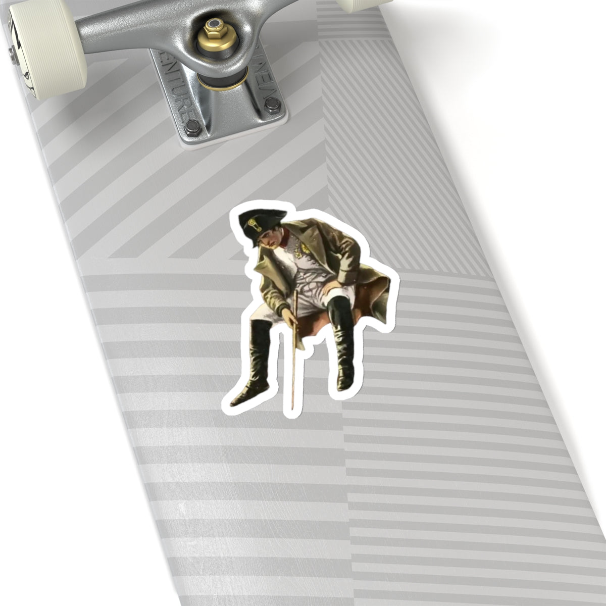 Upgrade your surroundings with this historical cutout of Napoleon Bonaparte sitting while in exile.