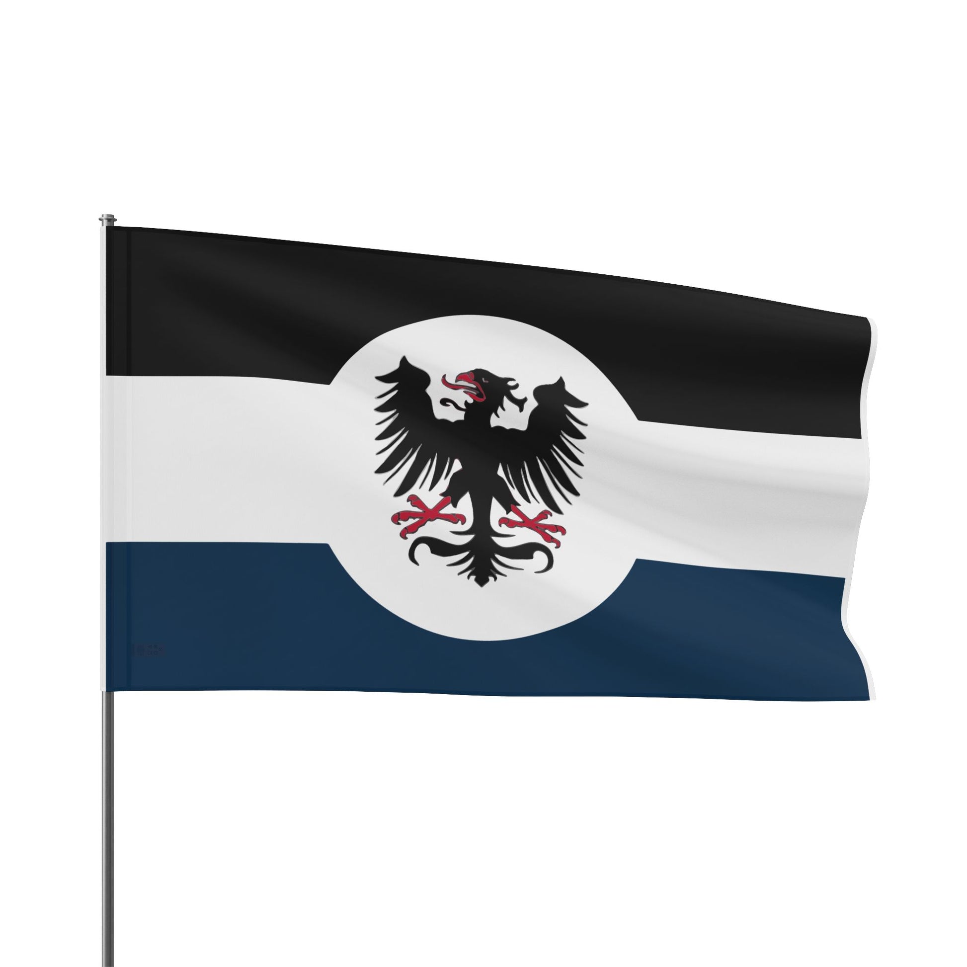 Show off you historical enthusiasm with this custom alternate flag of the Kingdom of Prussia. Made from Prussian blue, this stunning flag is crafted from 100% premium polyester with a luxurious satin finish that adds a sophisticated sheen, perfect for showcasing vibrant designs and colors.