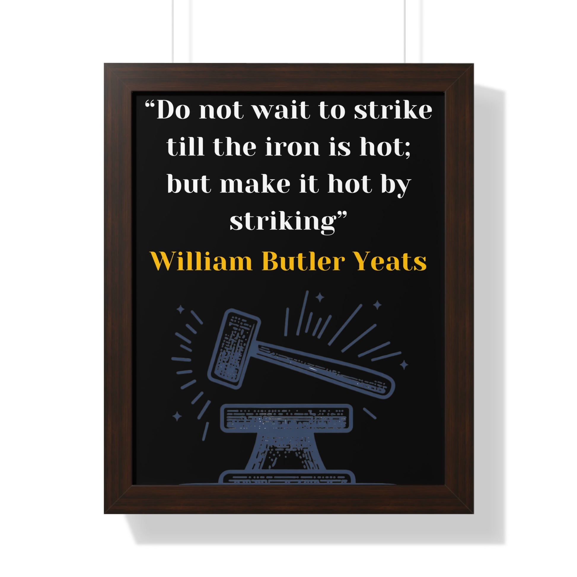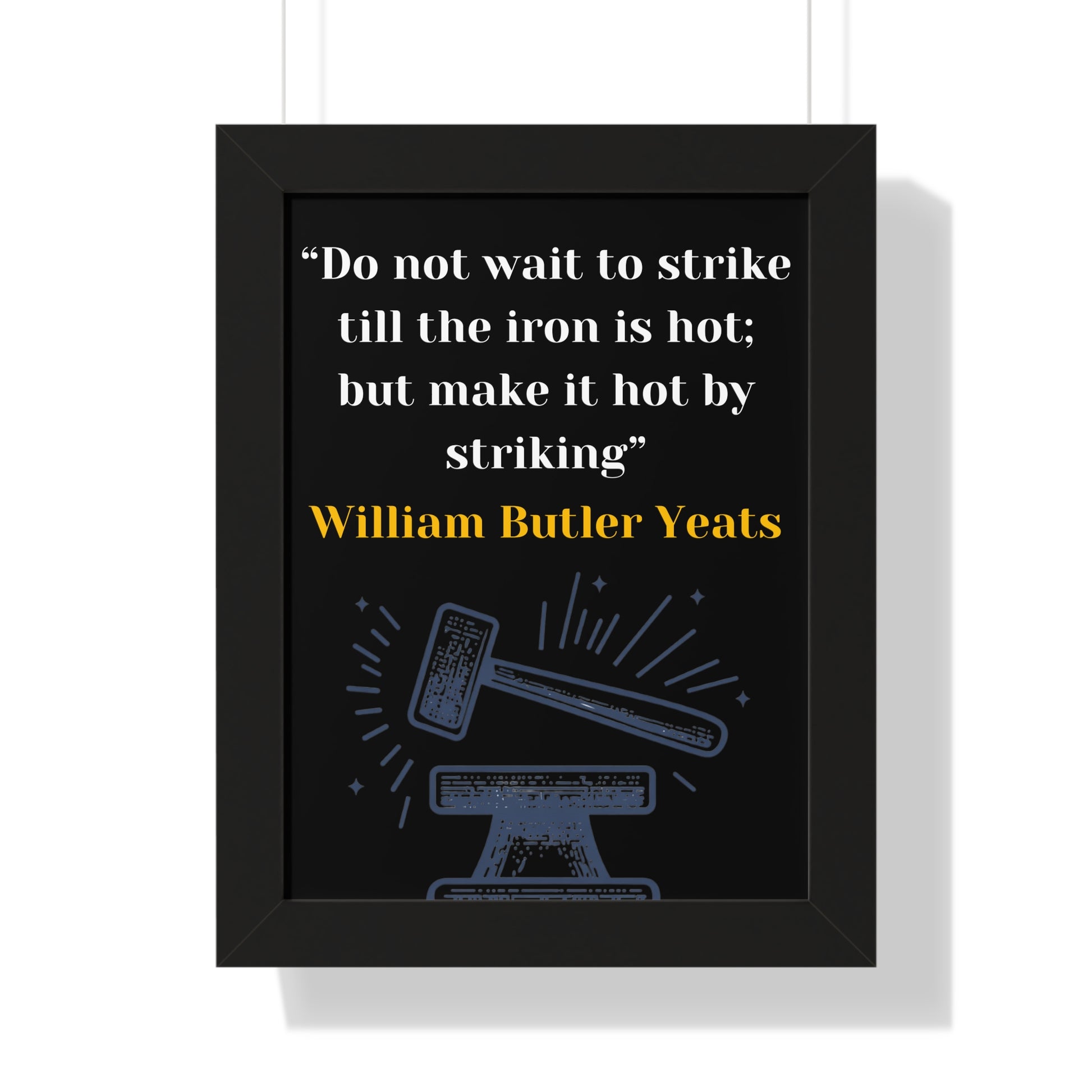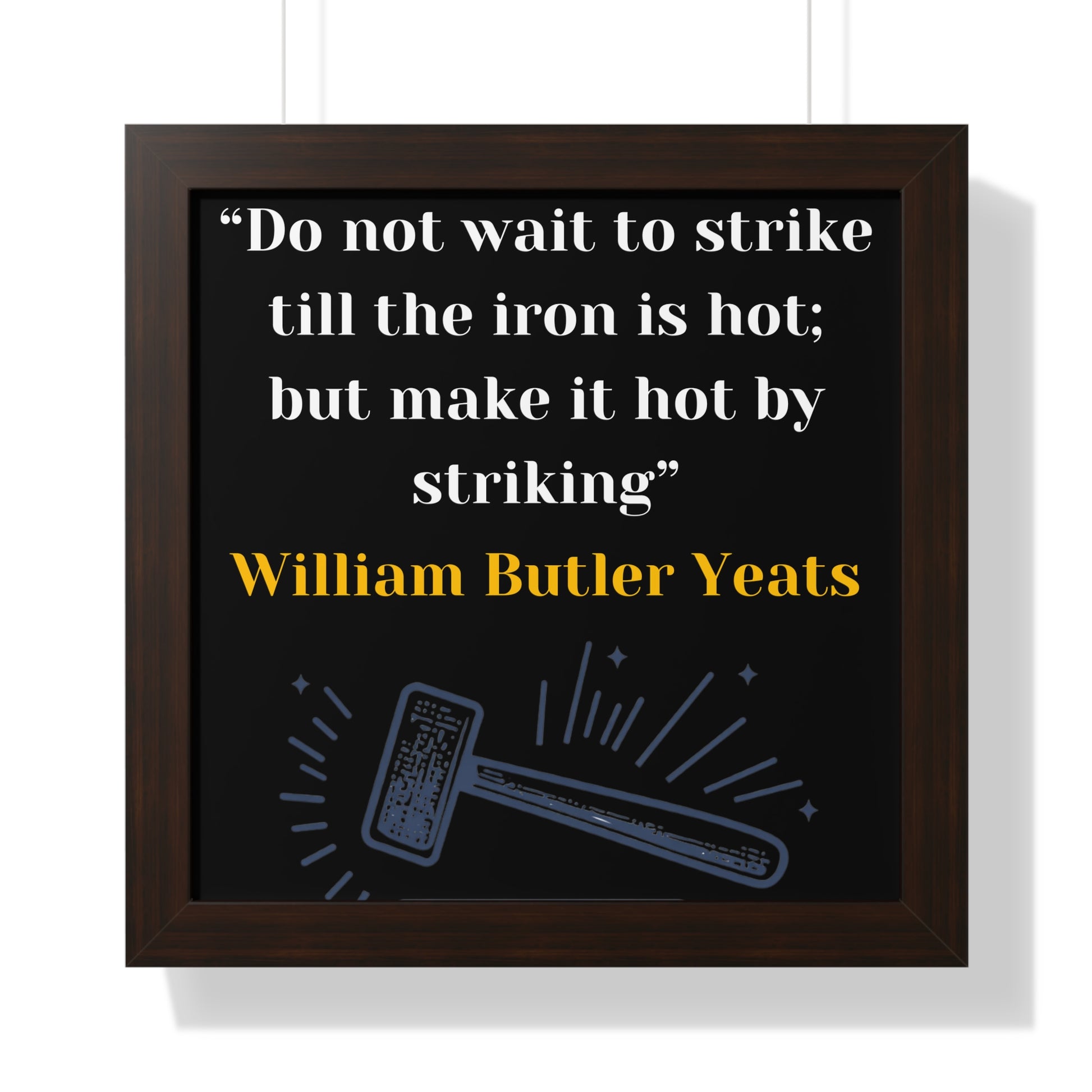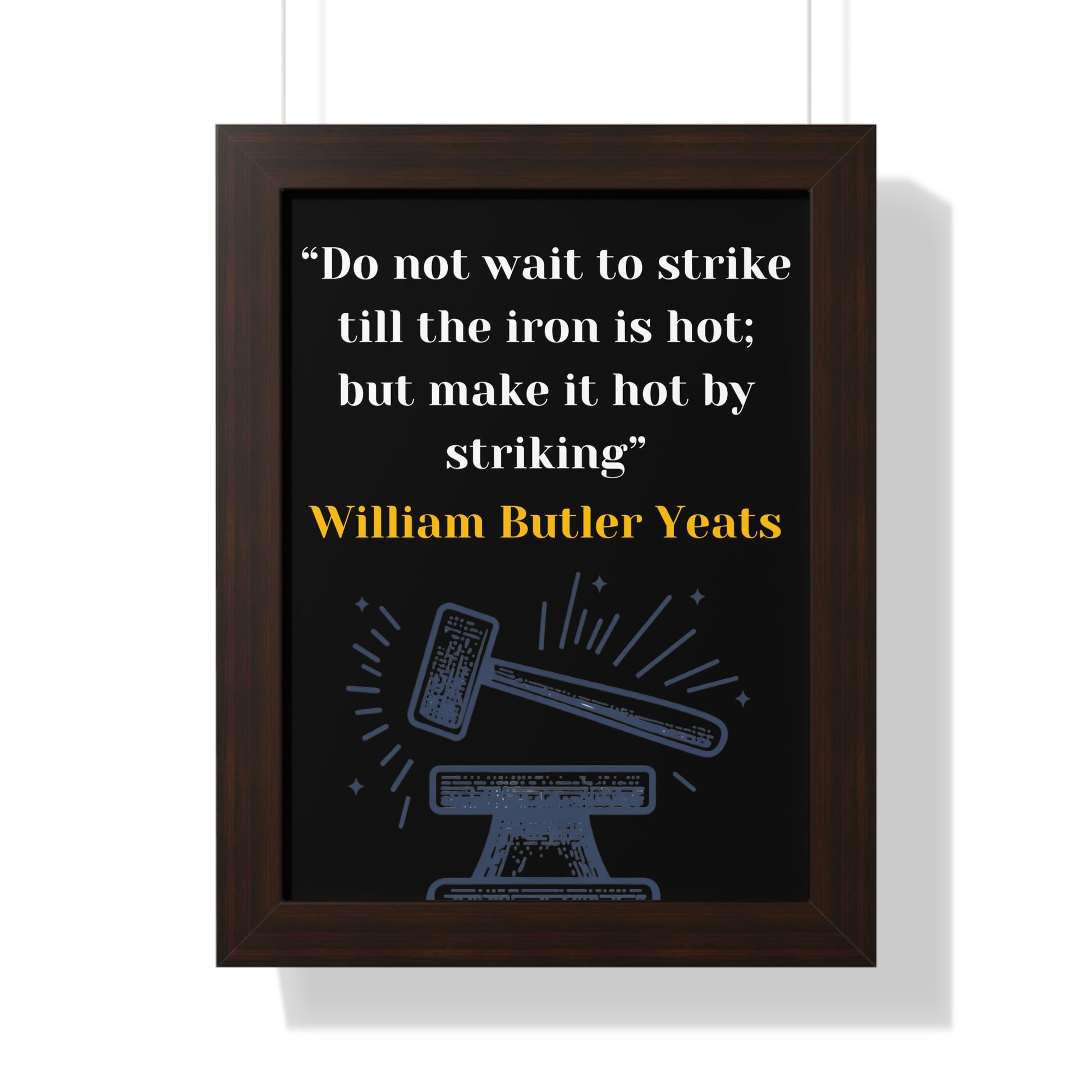 Framed Historical Quote “Do not wait to strike till the iron is hot; but make it hot by striking” by William Butler Yeats