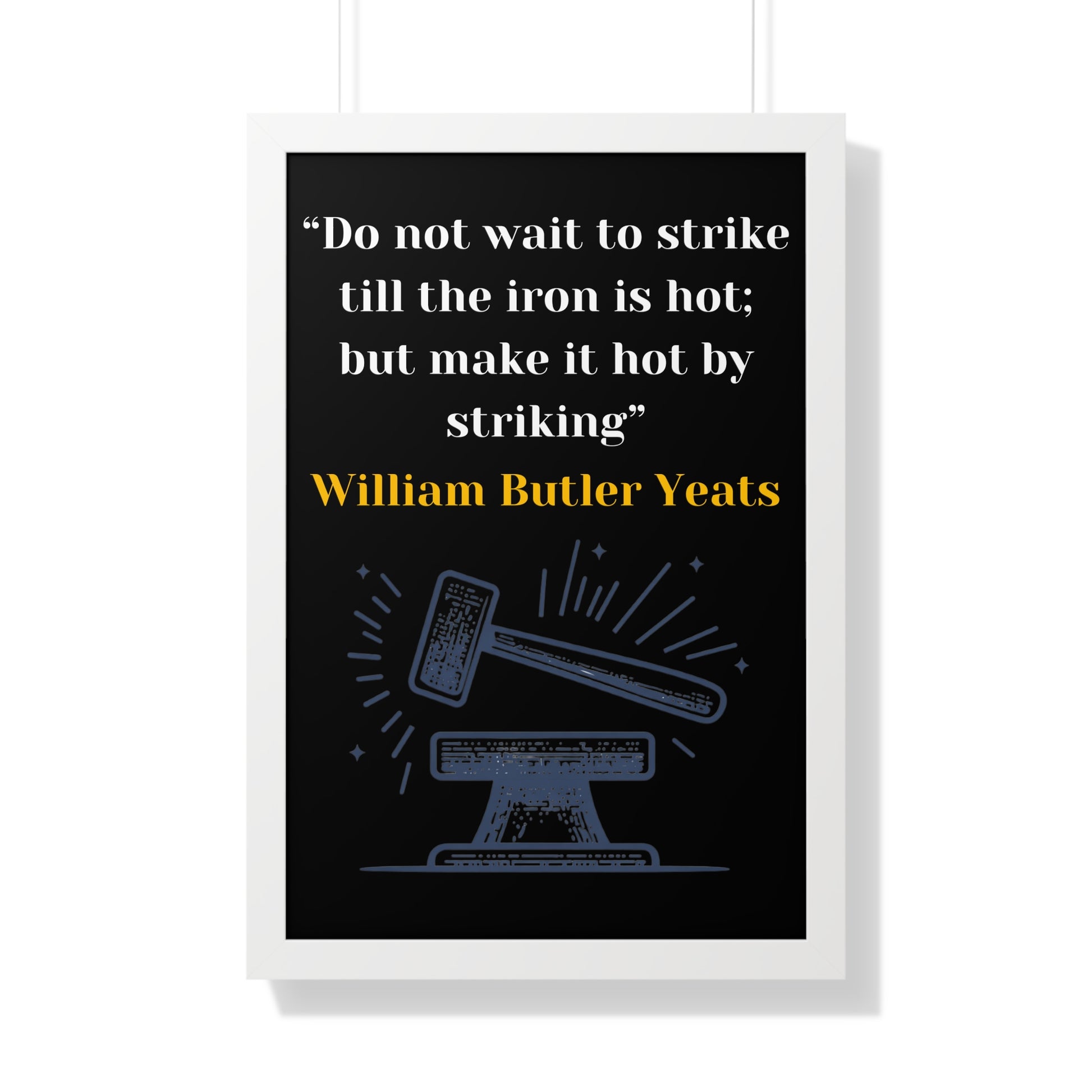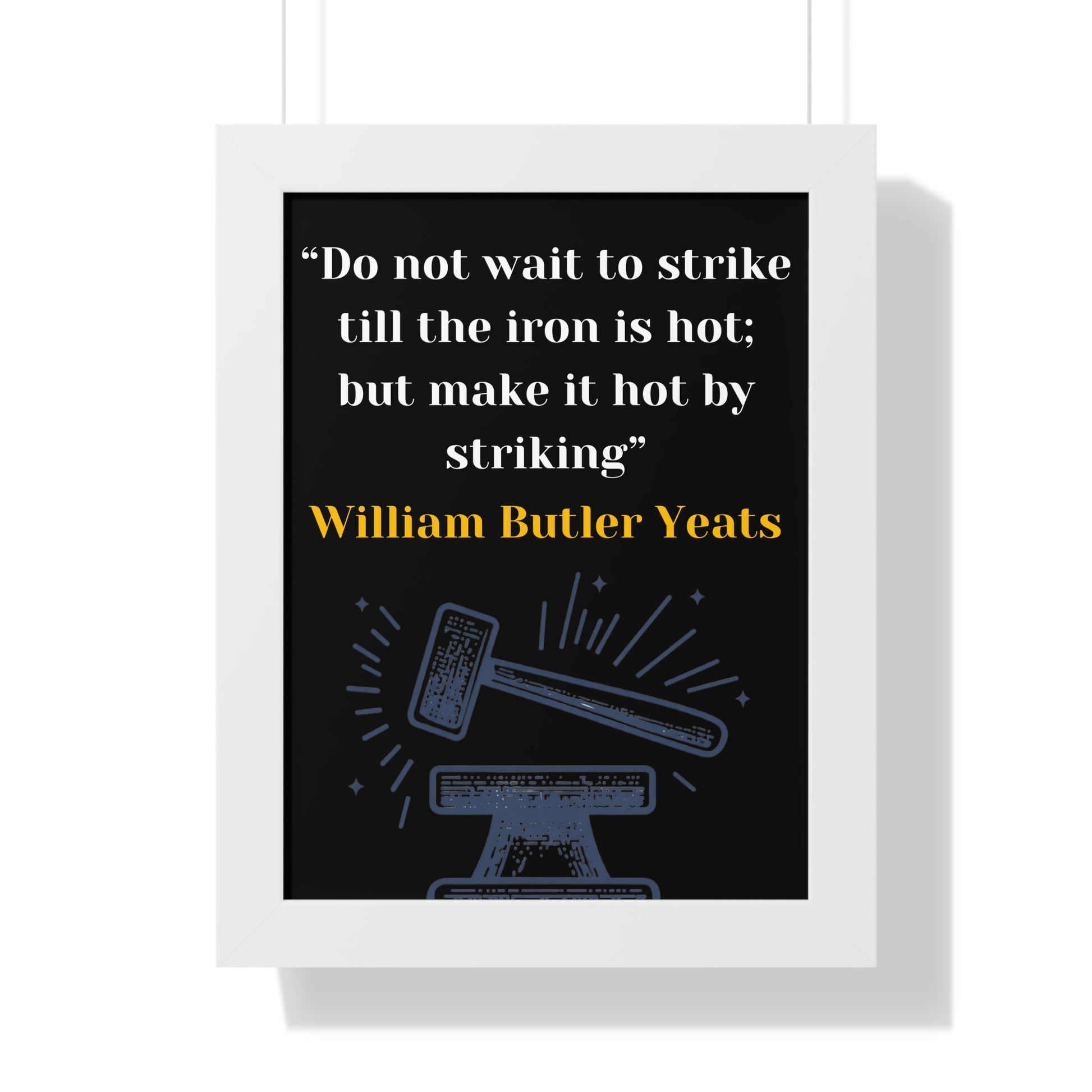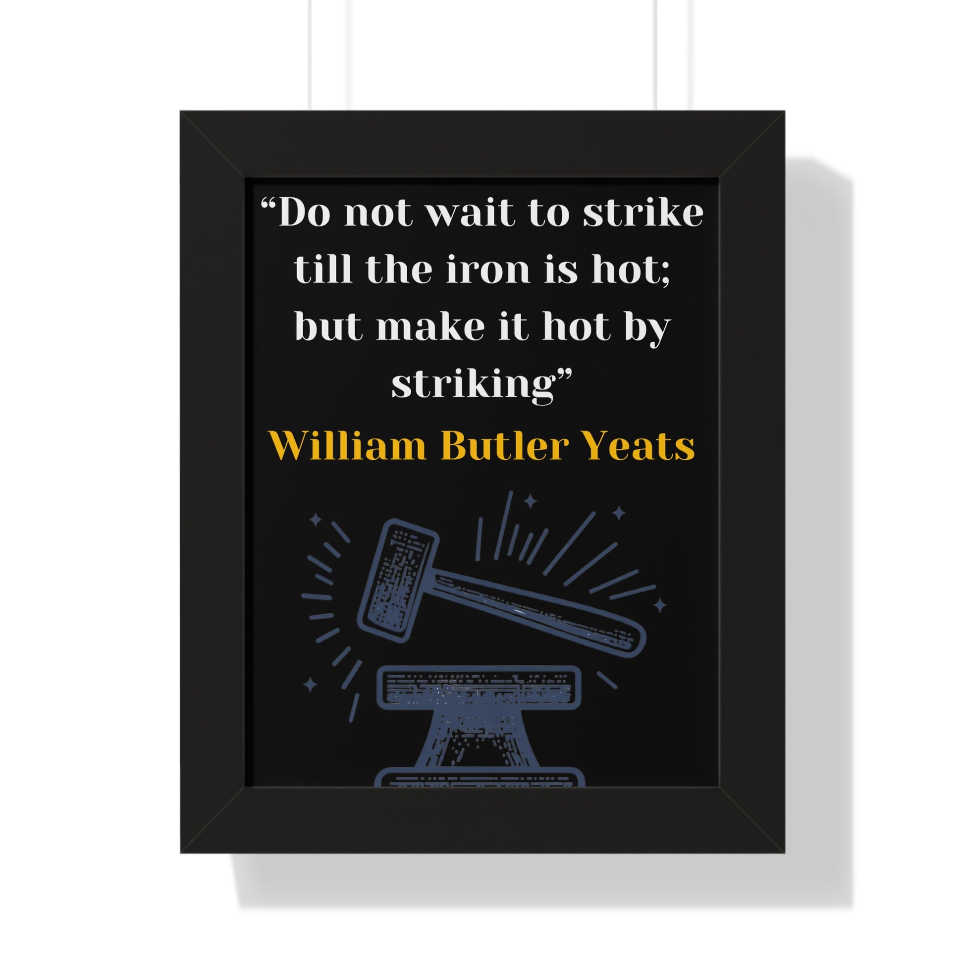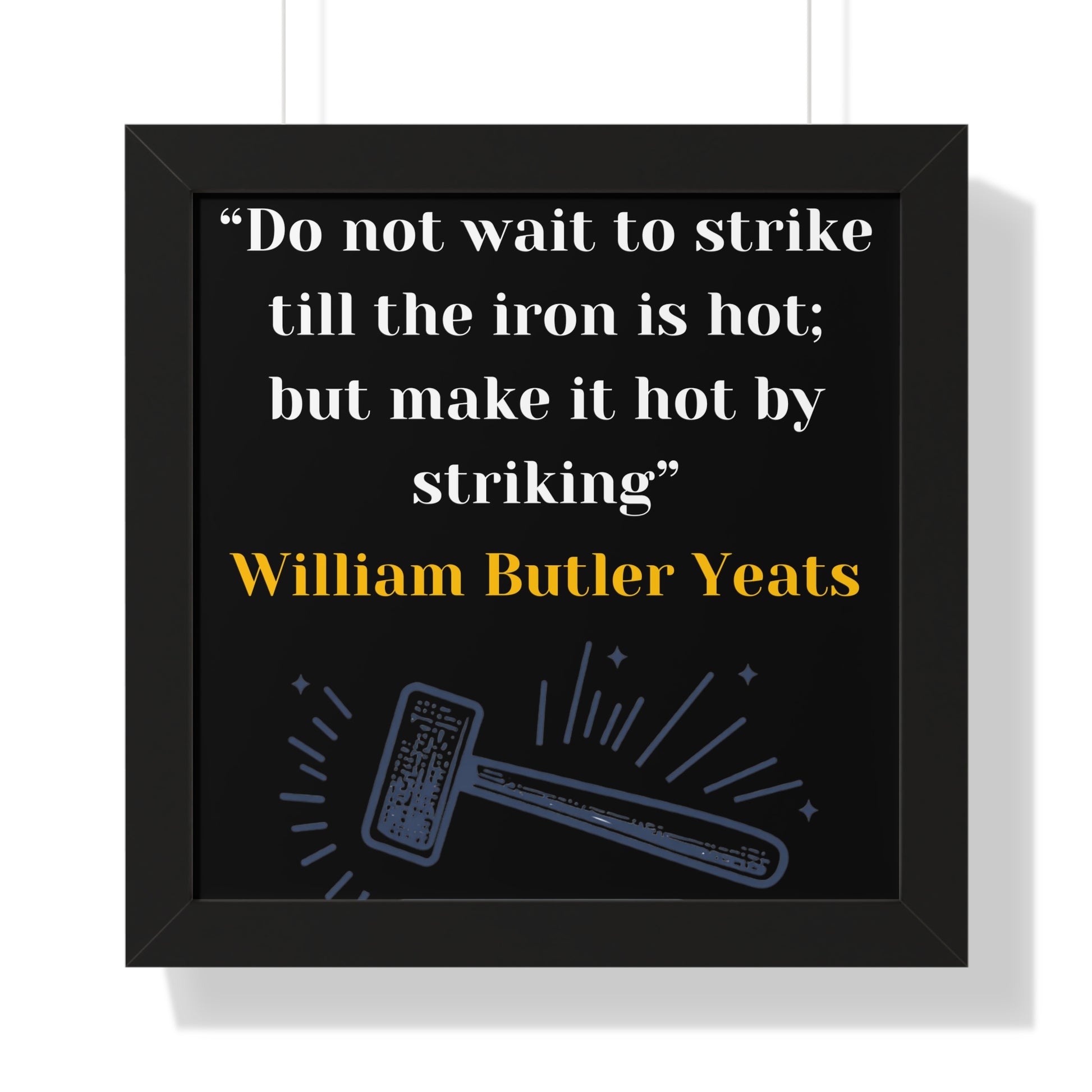 Framed Historical Quote “Do not wait to strike till the iron is hot; but make it hot by striking” by William Butler Yeats