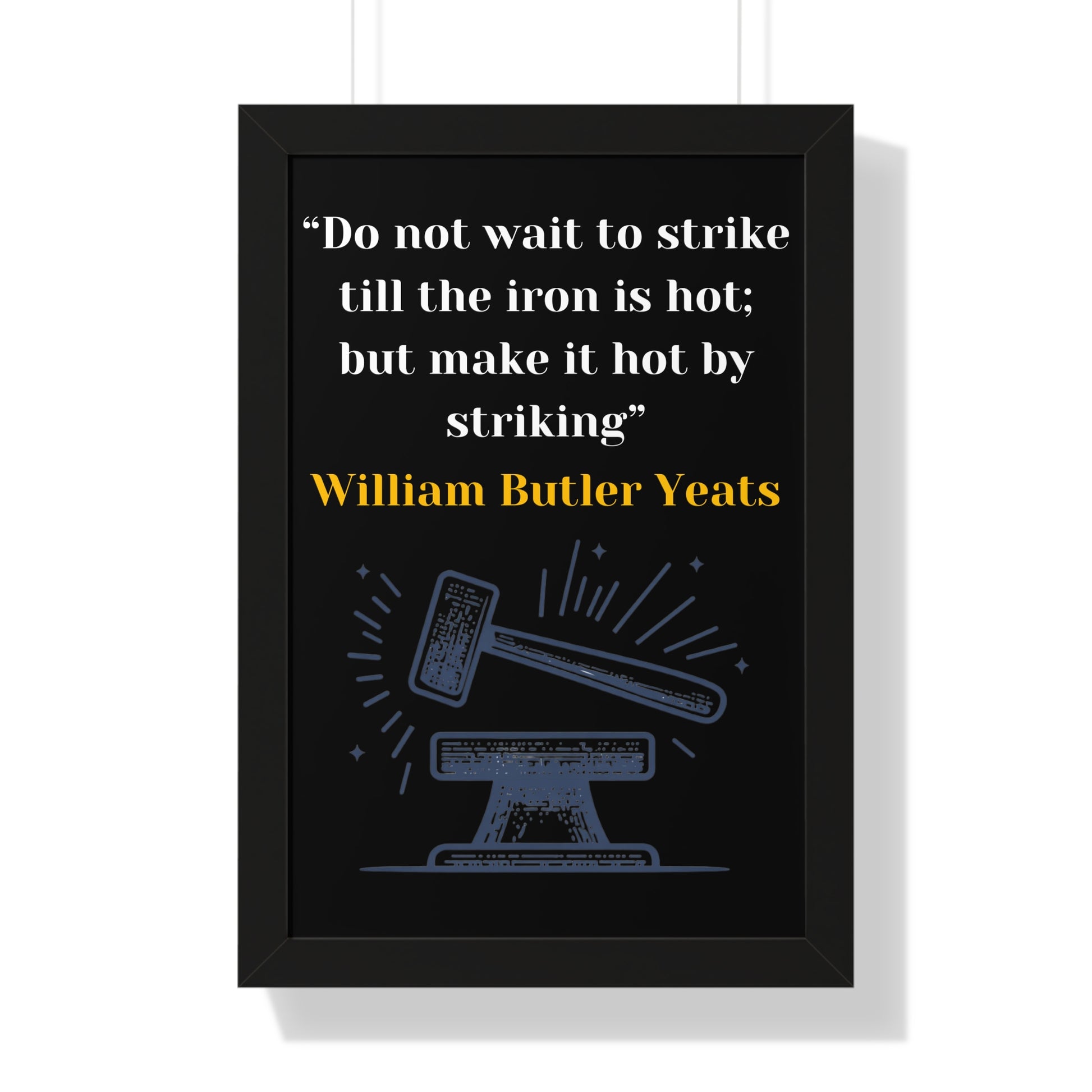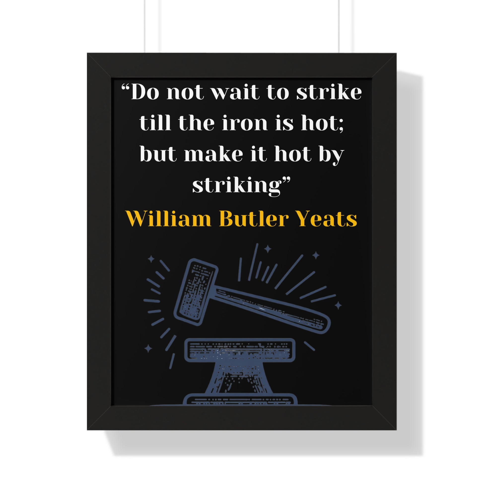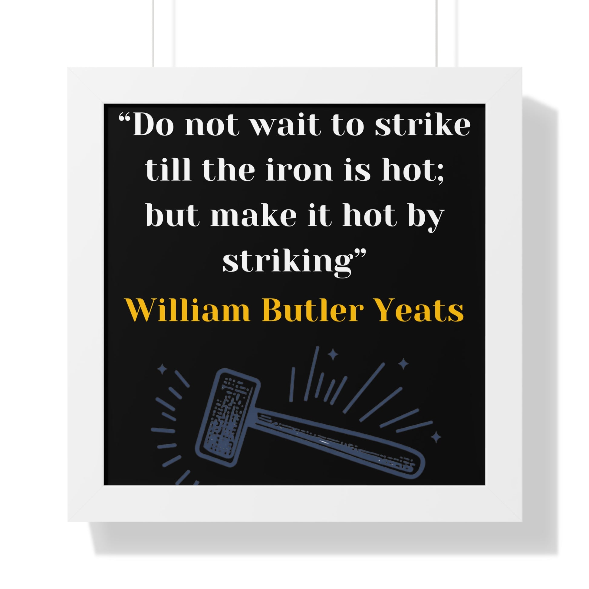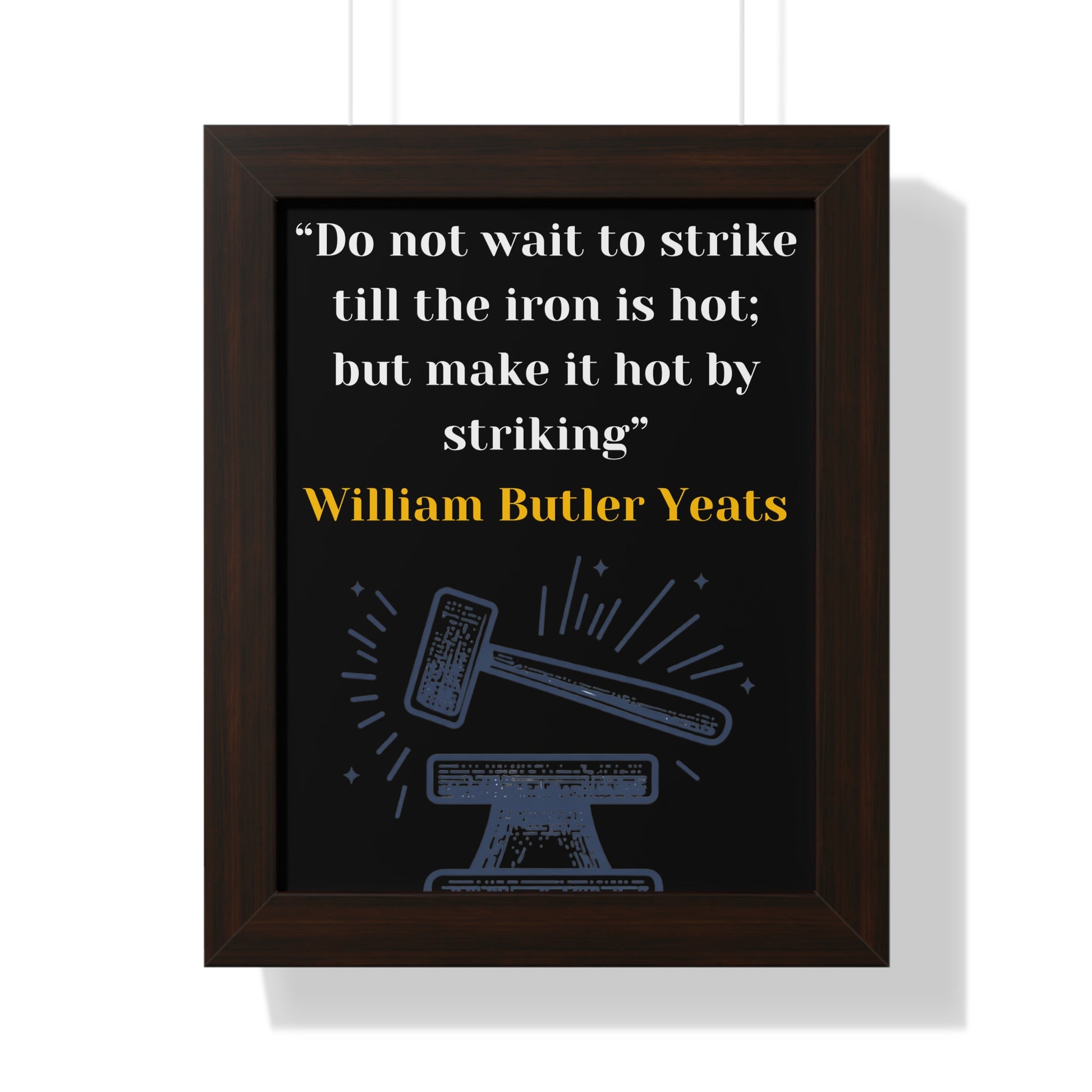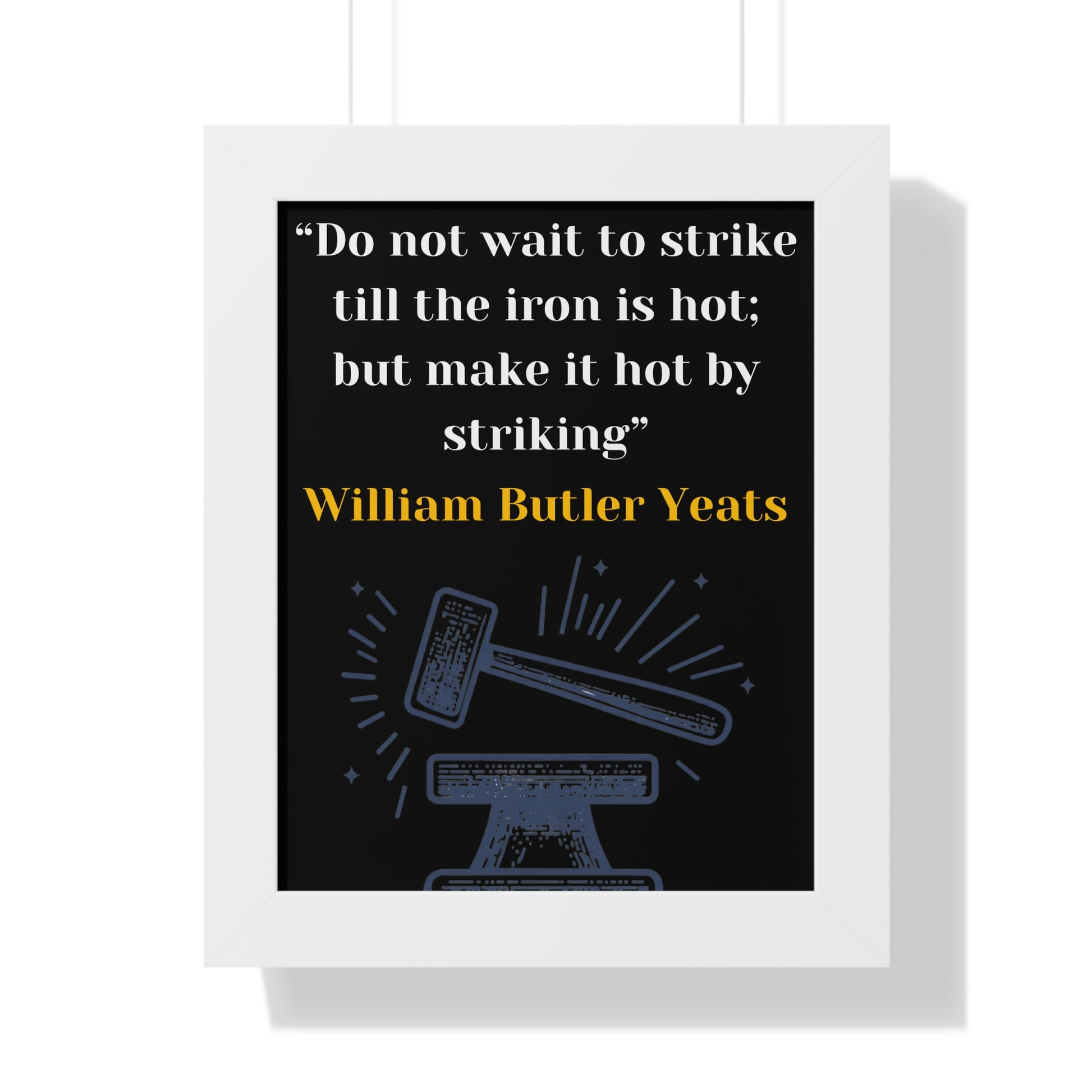 Framed Historical Quote “Do not wait to strike till the iron is hot; but make it hot by striking” by William Butler Yeats
