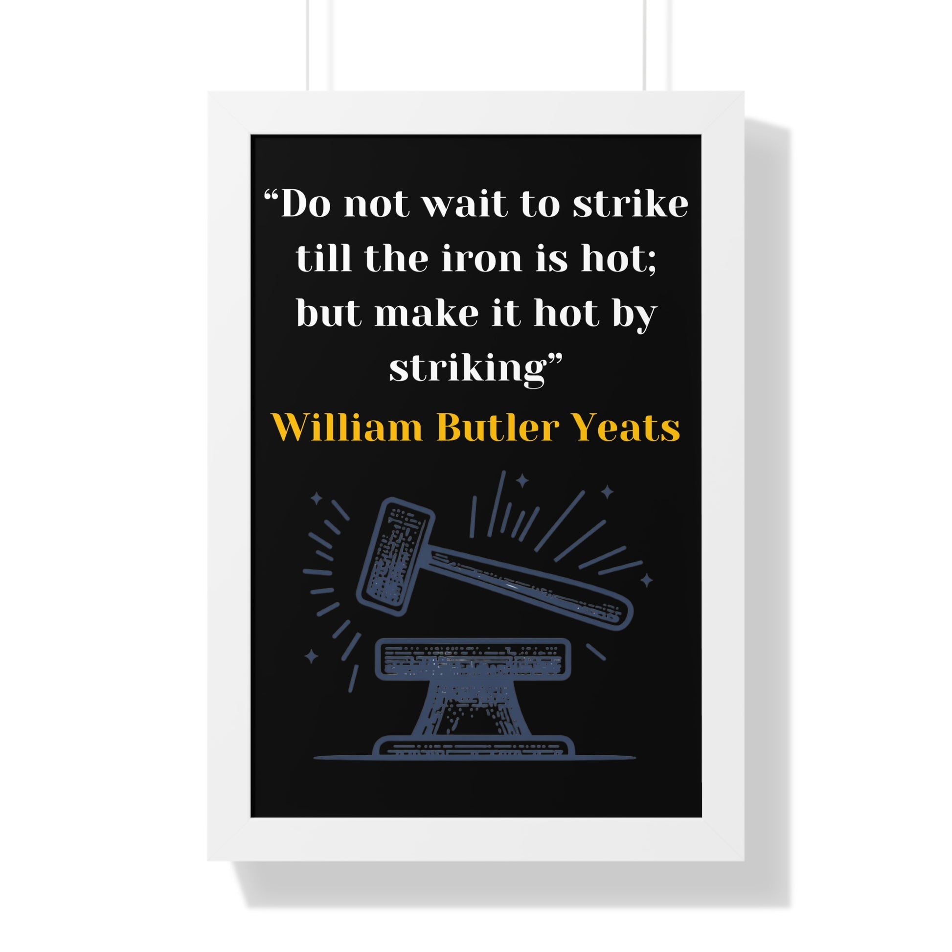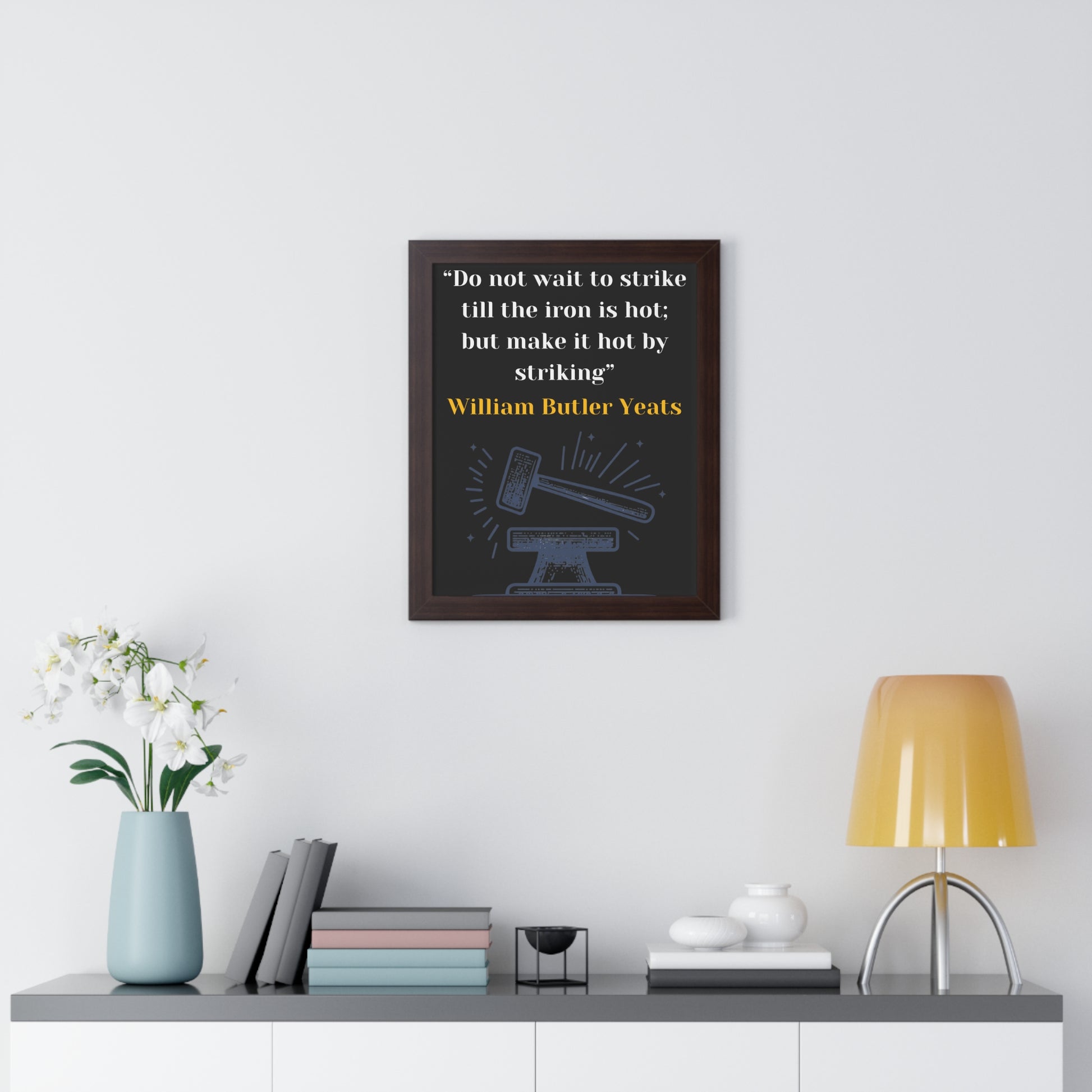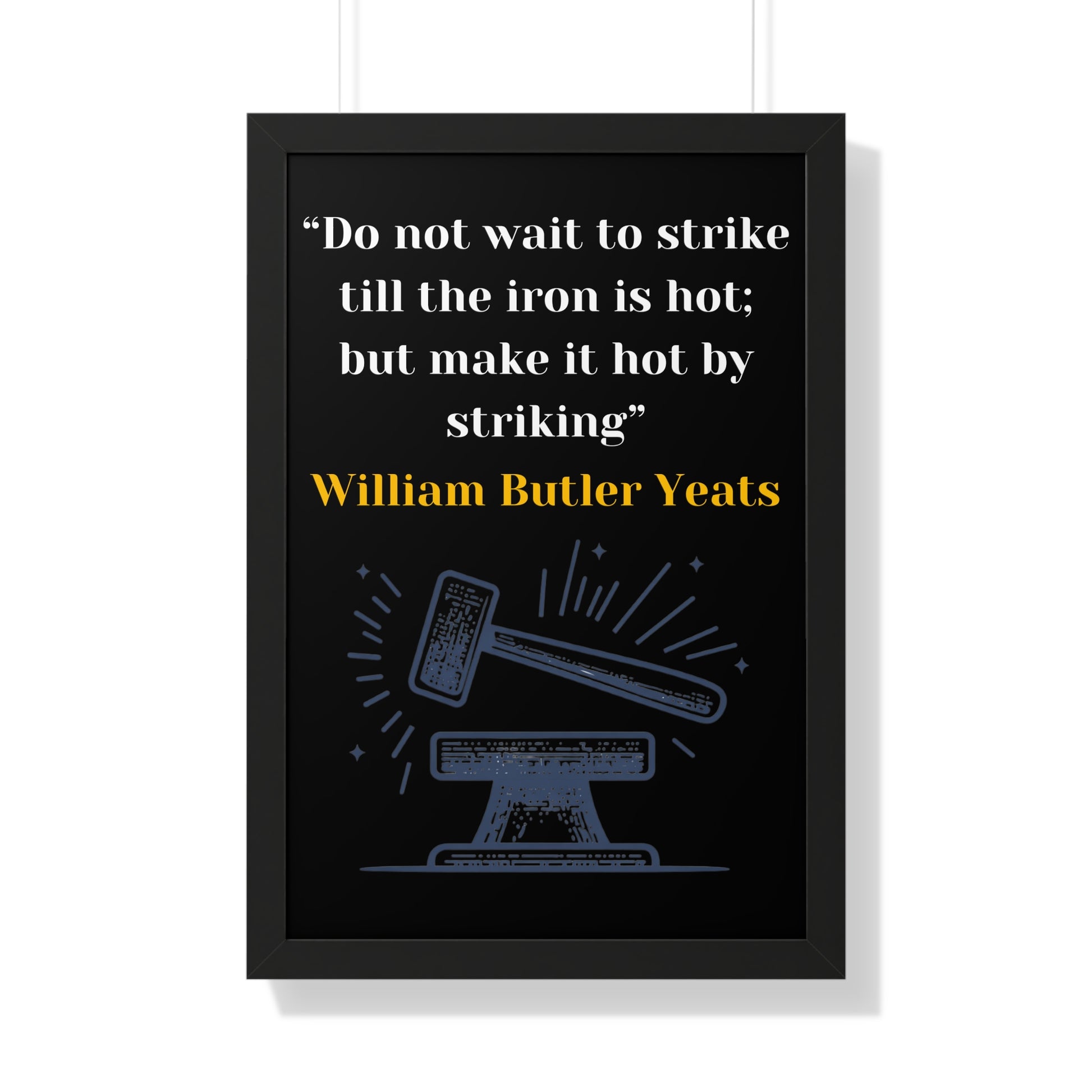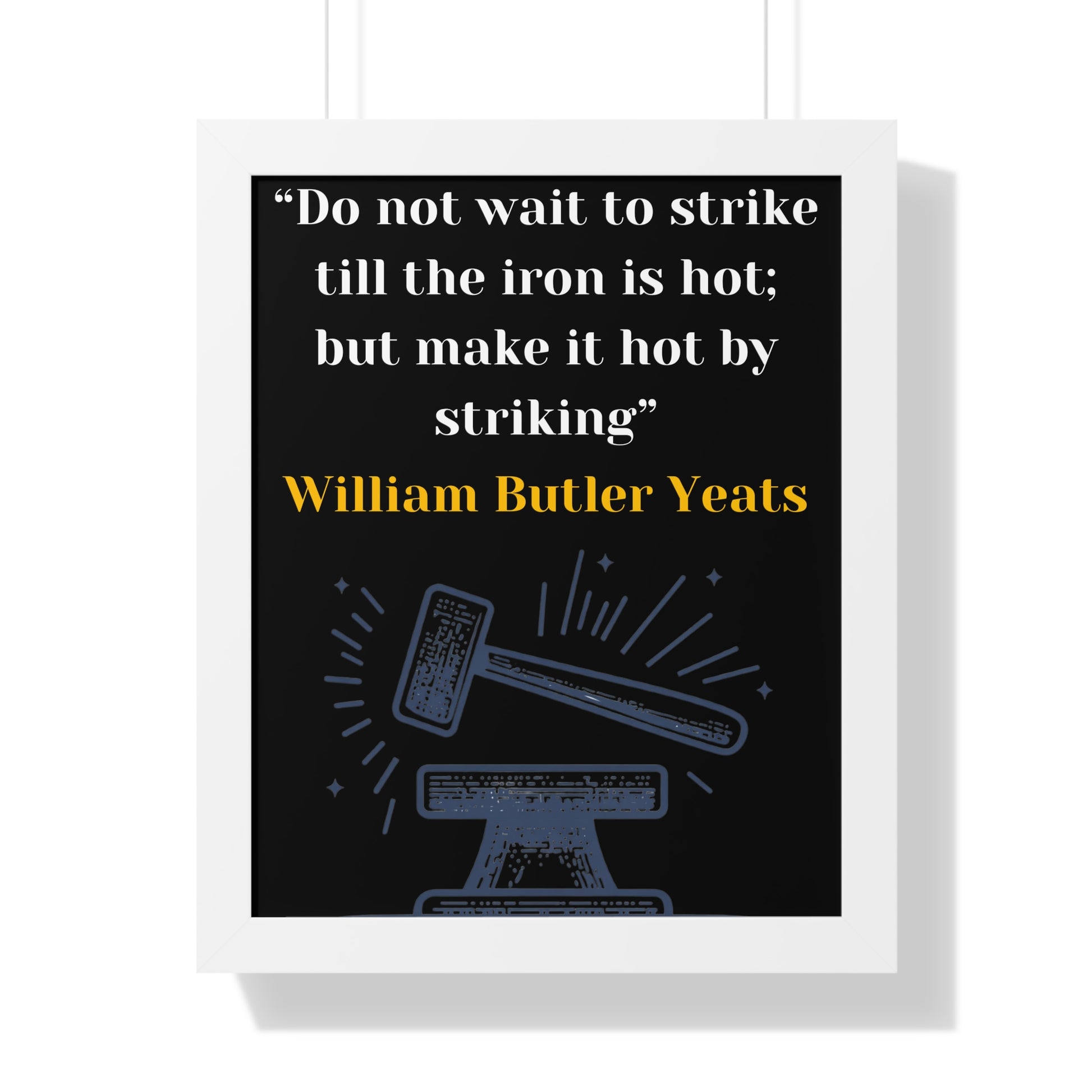 Framed Historical Quote “Do not wait to strike till the iron is hot; but make it hot by striking” by William Butler Yeats