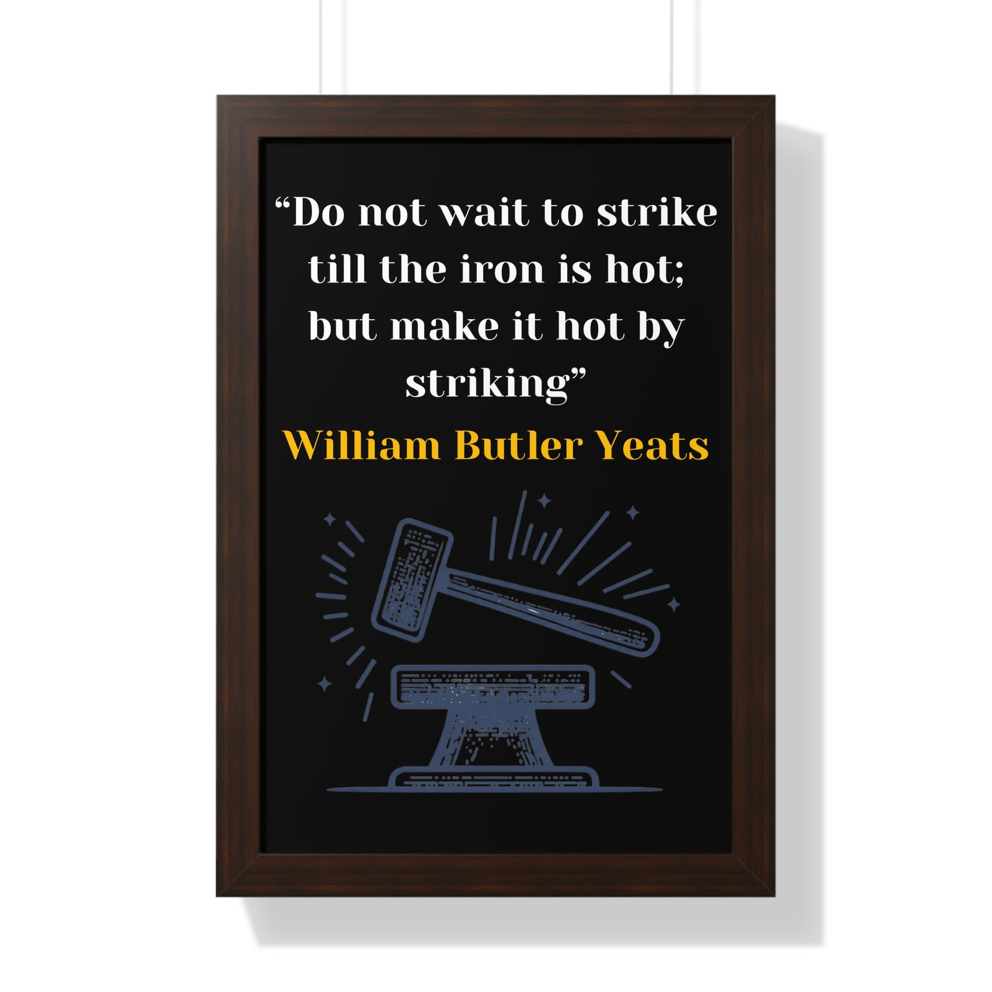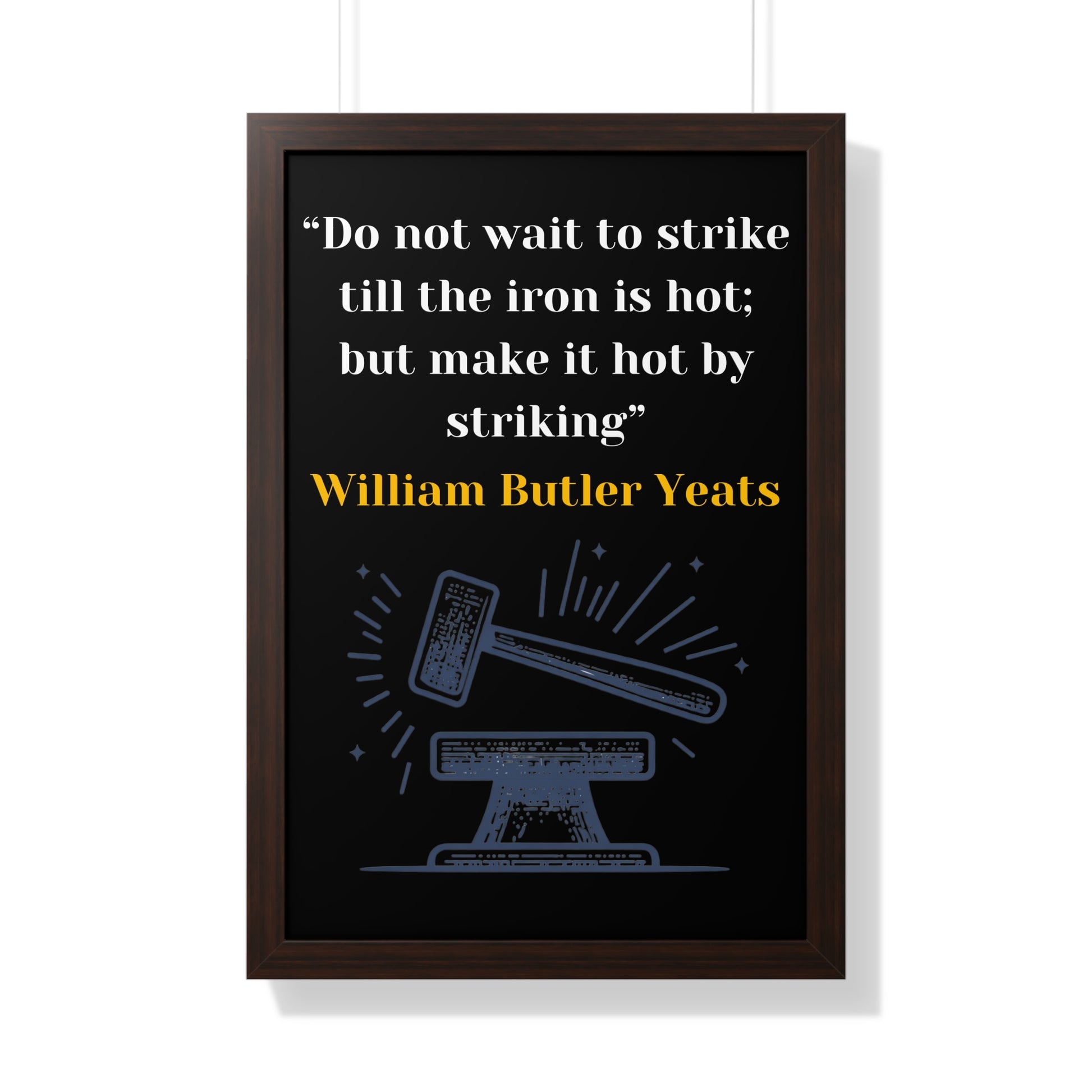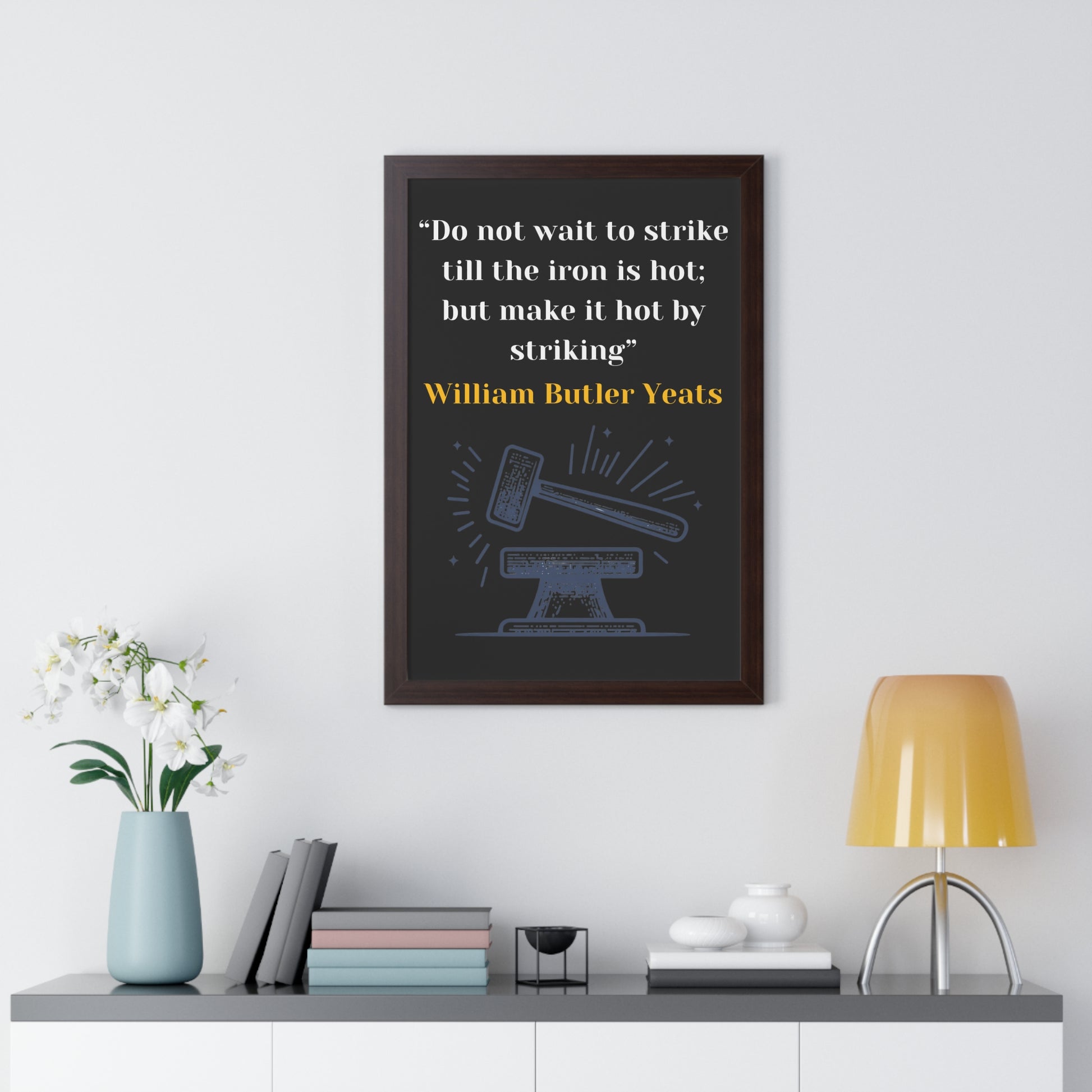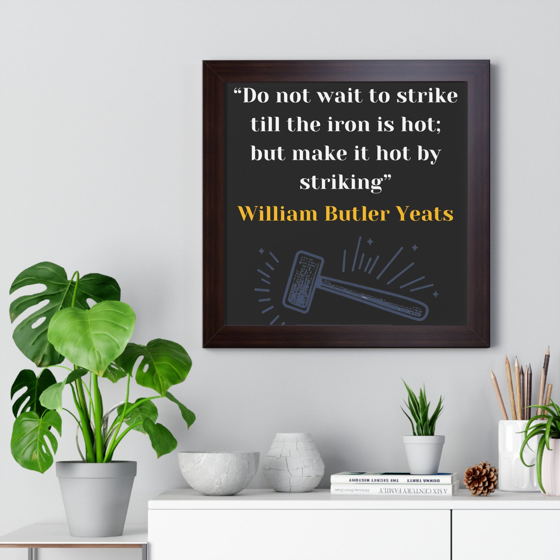 Elevate your wall decor with our Premium Framed Historical quote by Irish poet, dramatist and writer William Butler Yeats "“Do not wait to strike till the iron is hot; but make it hot by striking” Available in three sophisticated colors: black, white, and walnut.