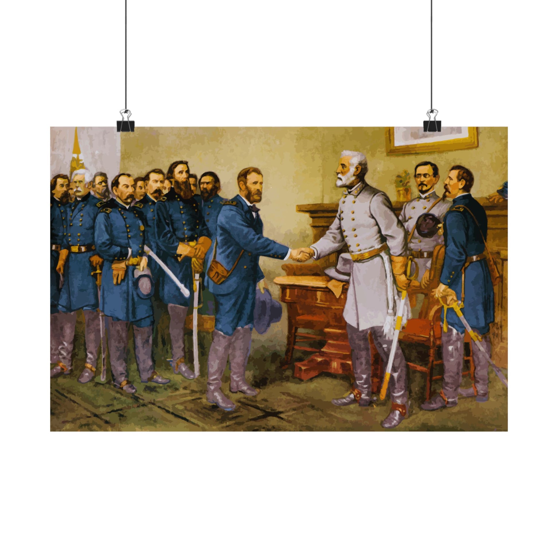General Robert E. Lee surrenders at Appomattox Court House Matte Painting Poster