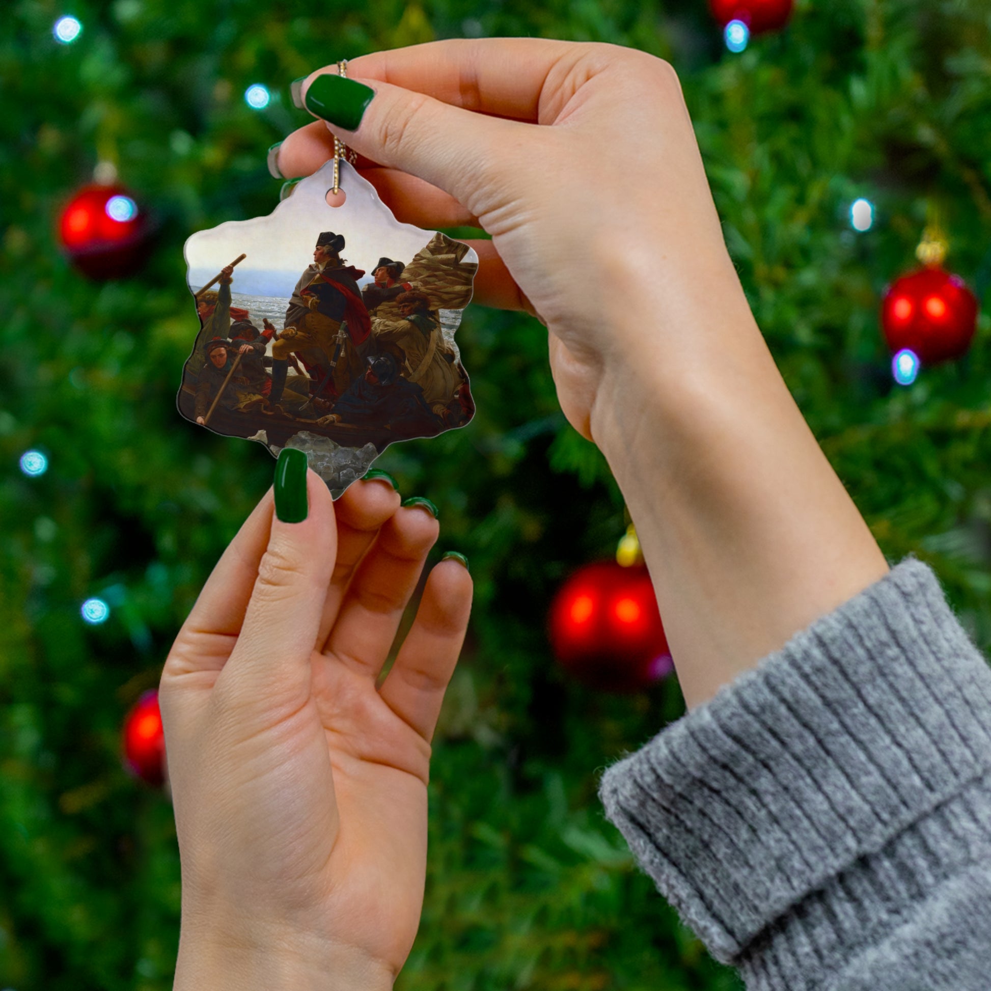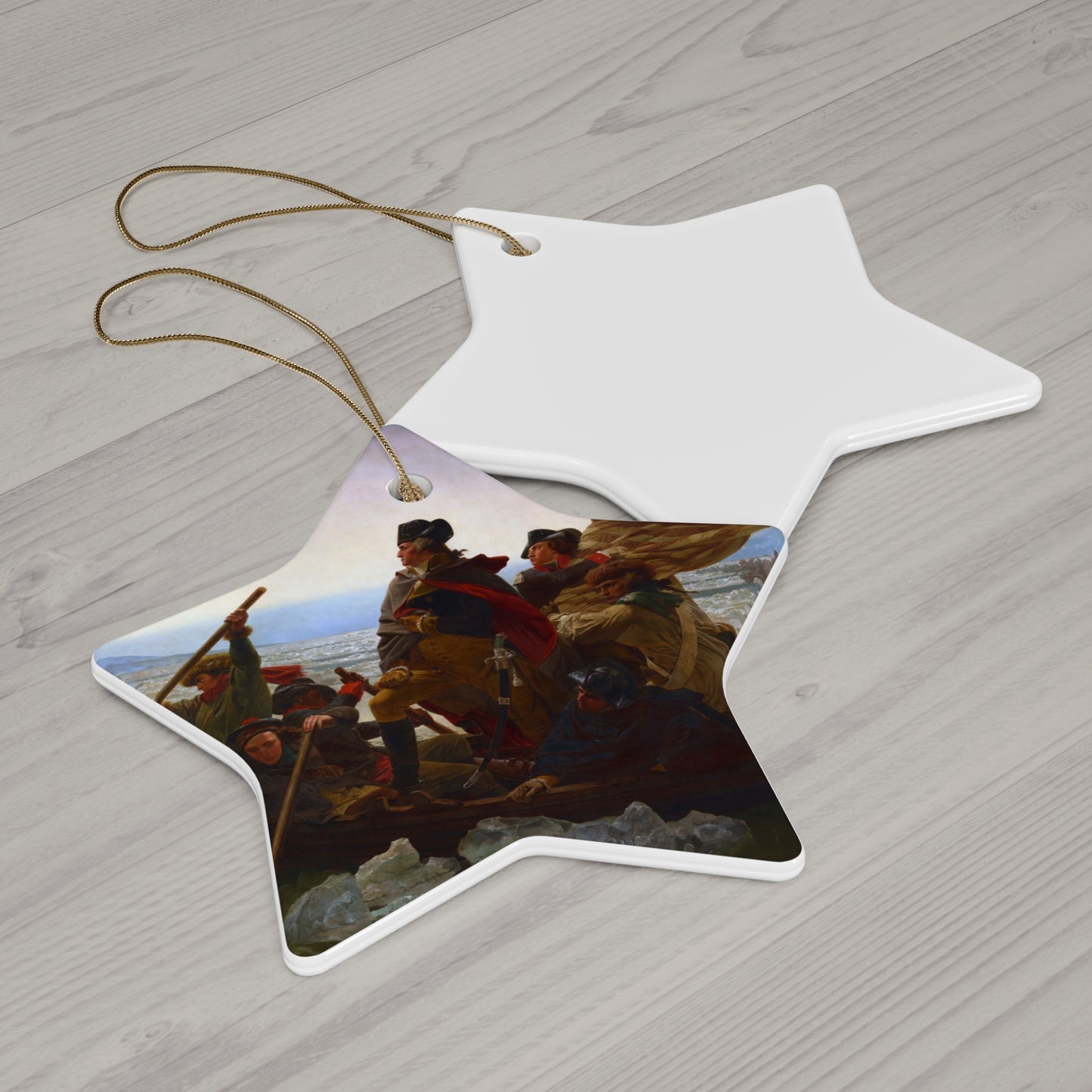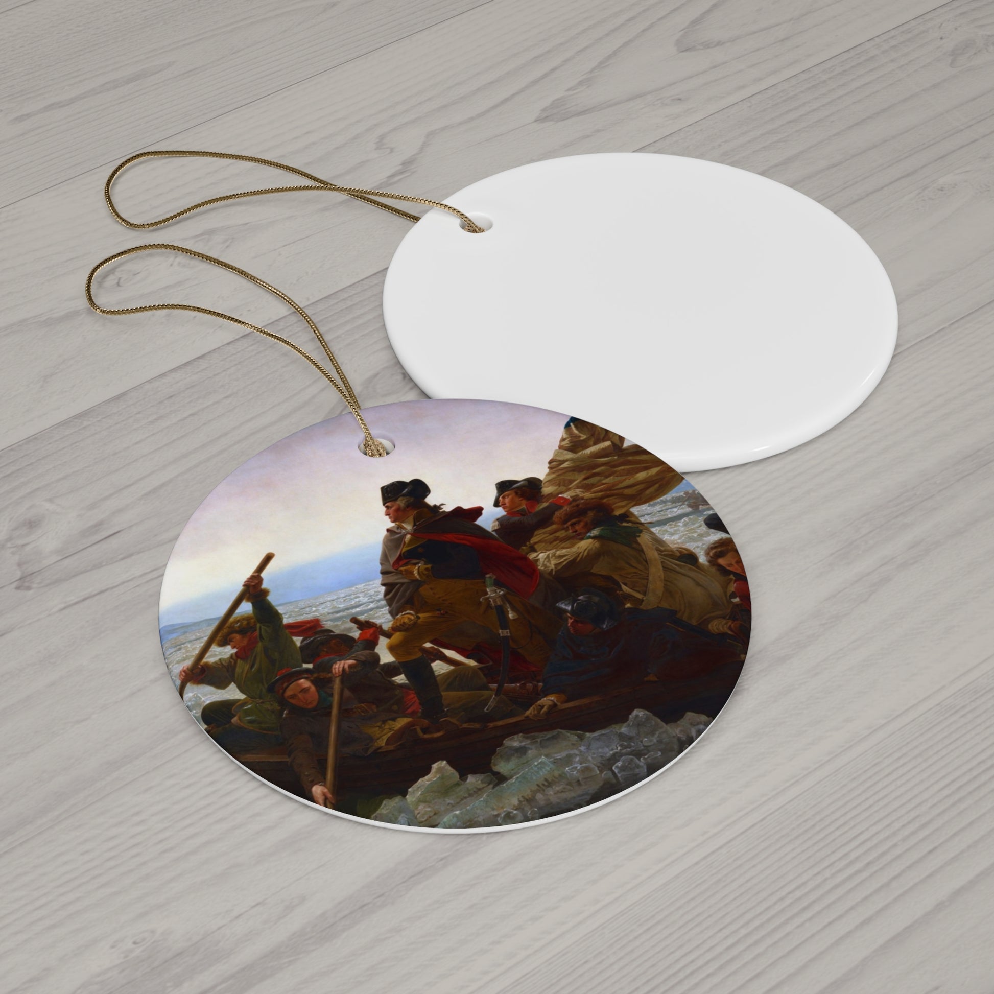 Add a bit of history to your home with our charming George Washington Crossing the Delaware Ceramic Ornament. Crafted from high-quality ceramic, these ornaments bring a touch of elegance and cheer to your home. With vibrant colors and a glossy finish, each piece captures attention and adds personality to your decor.