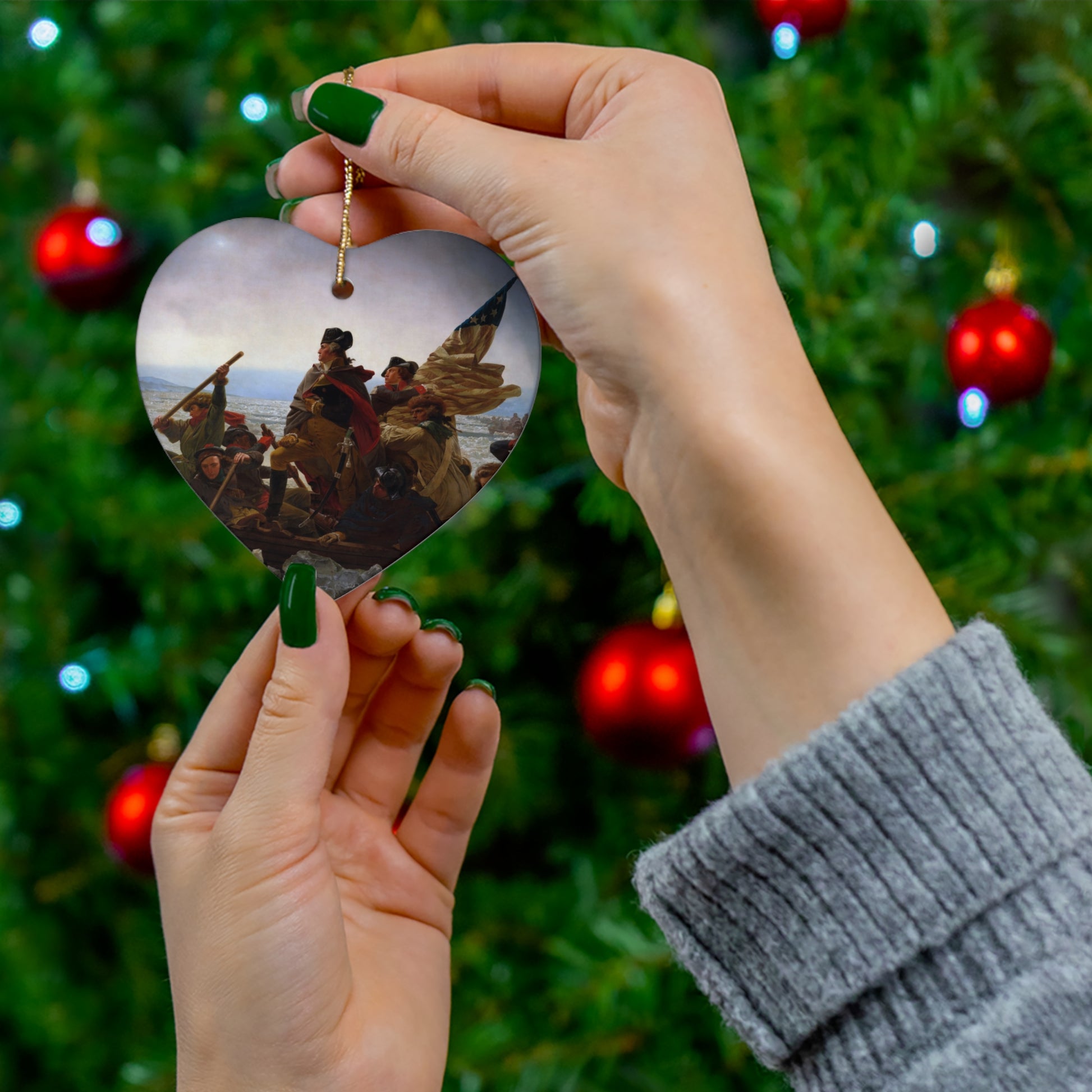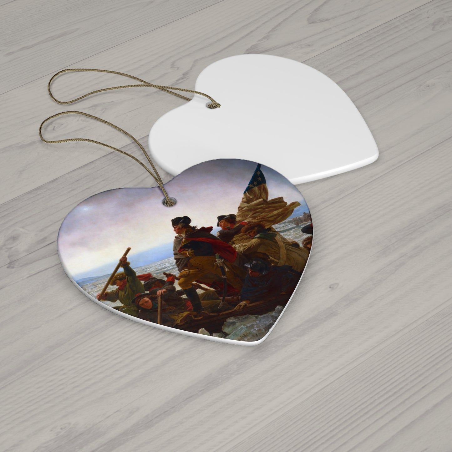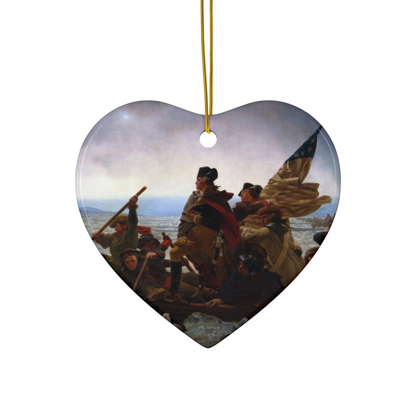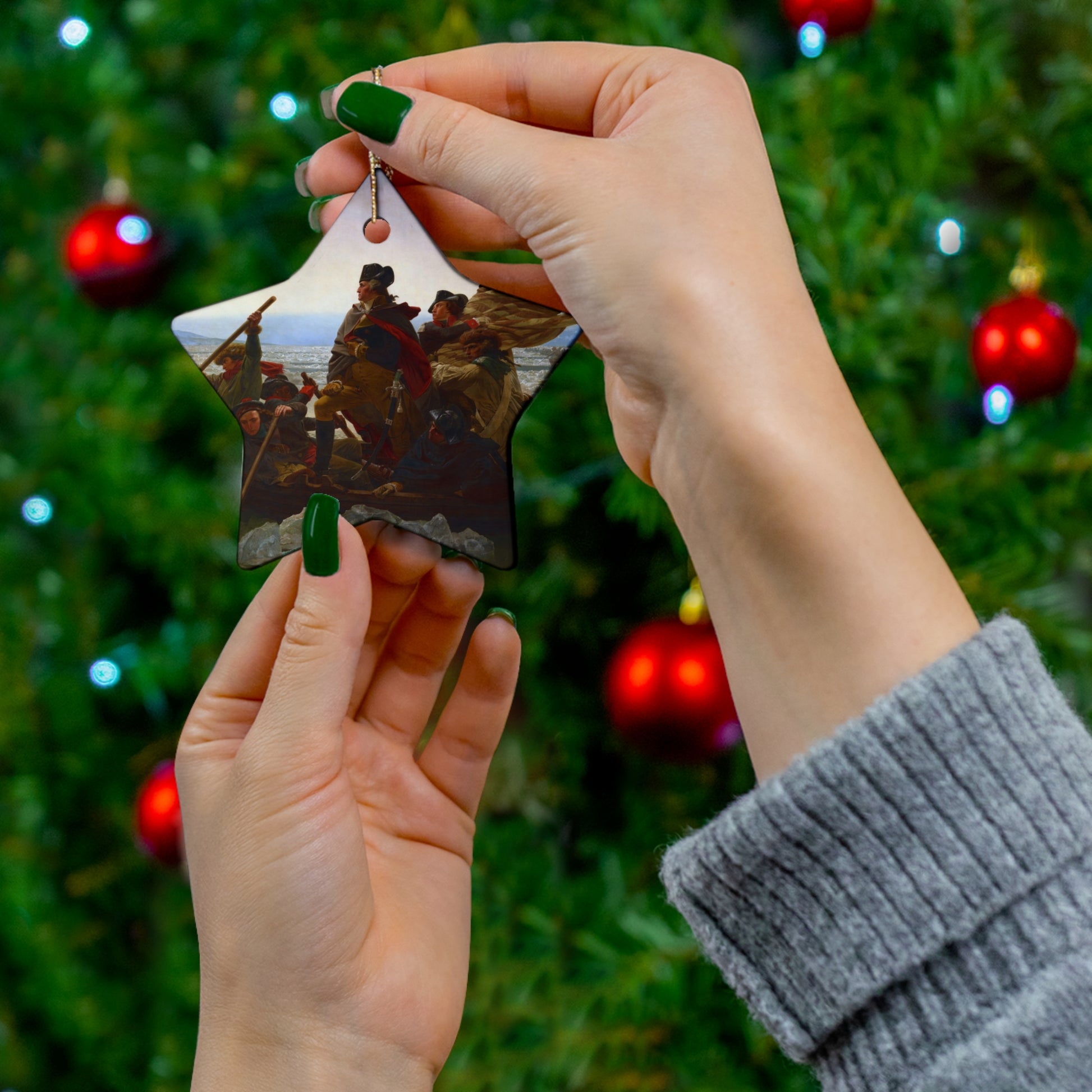 Add a bit of history to your home with our charming George Washington Crossing the Delaware Ceramic Ornament. Crafted from high-quality ceramic, these ornaments bring a touch of elegance and cheer to your home. With vibrant colors and a glossy finish, each piece captures attention and adds personality to your decor.