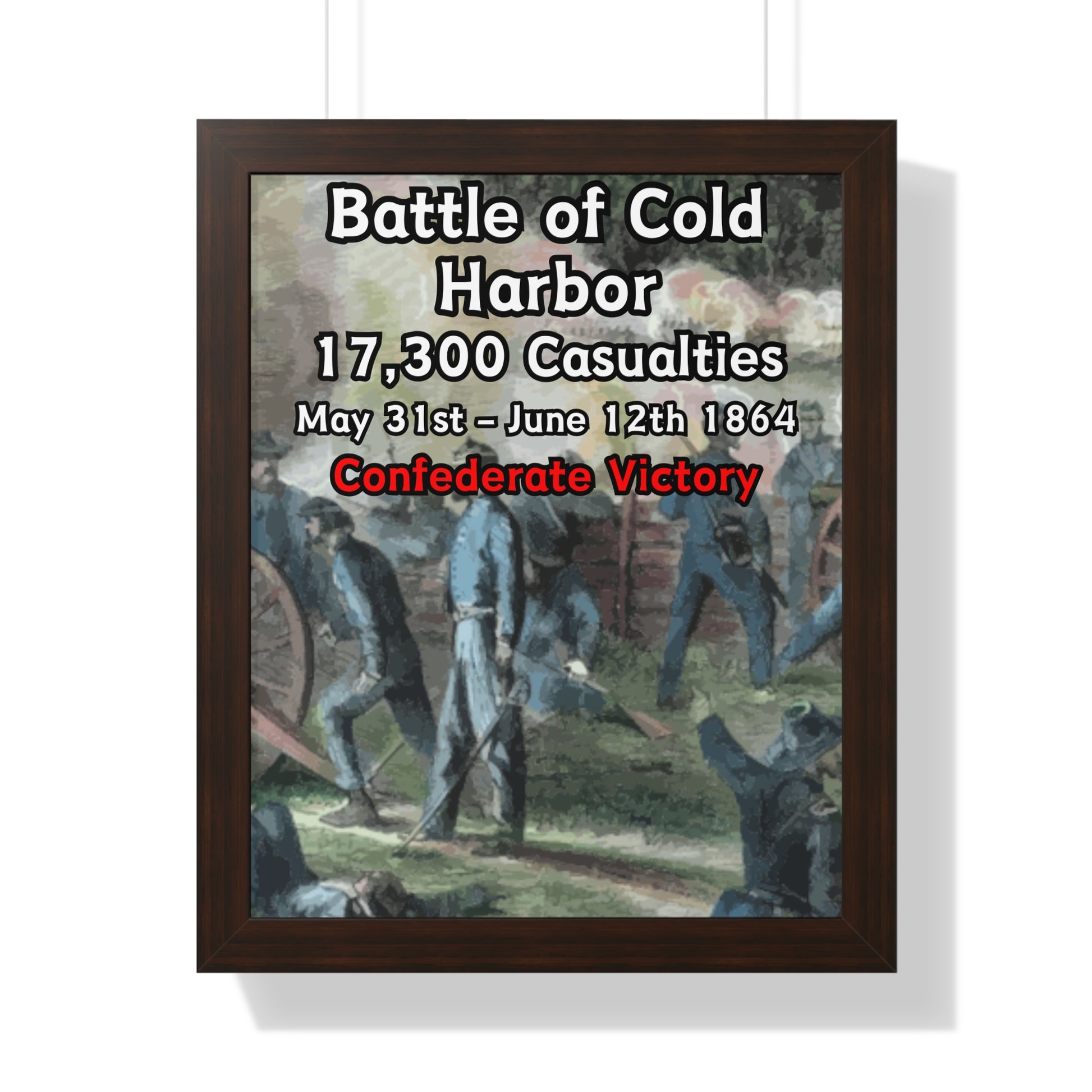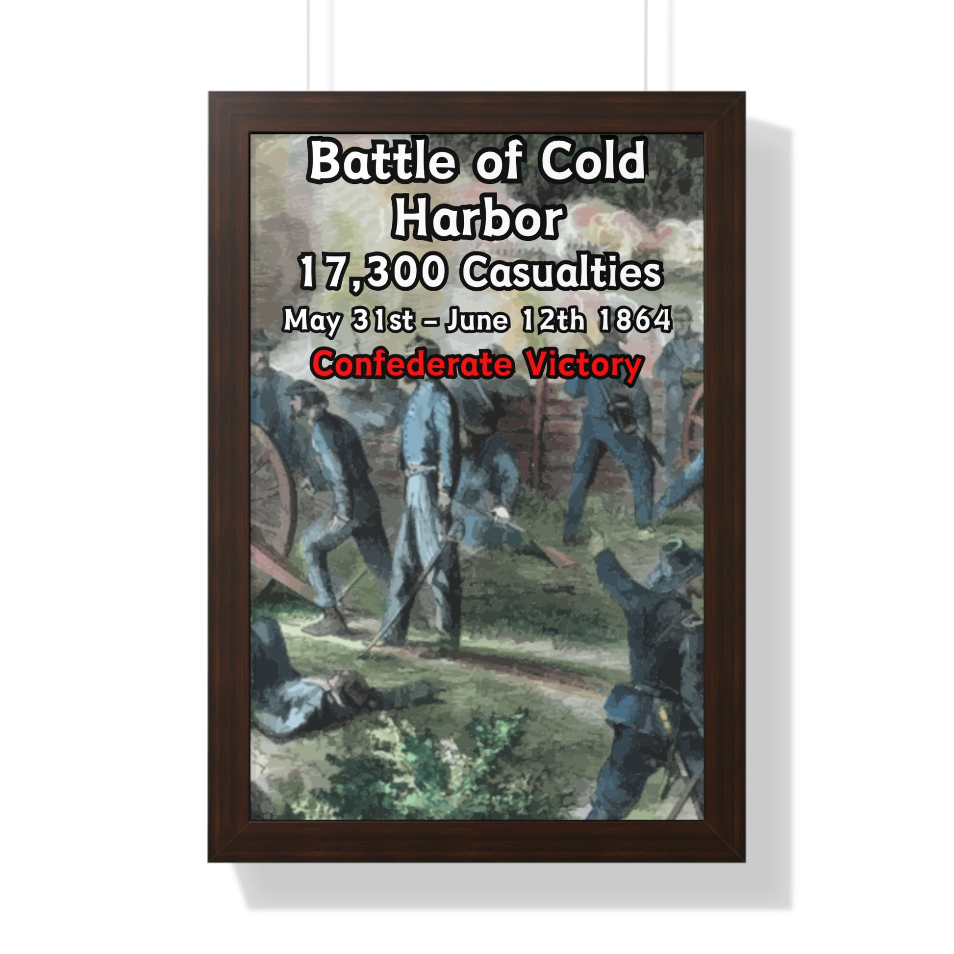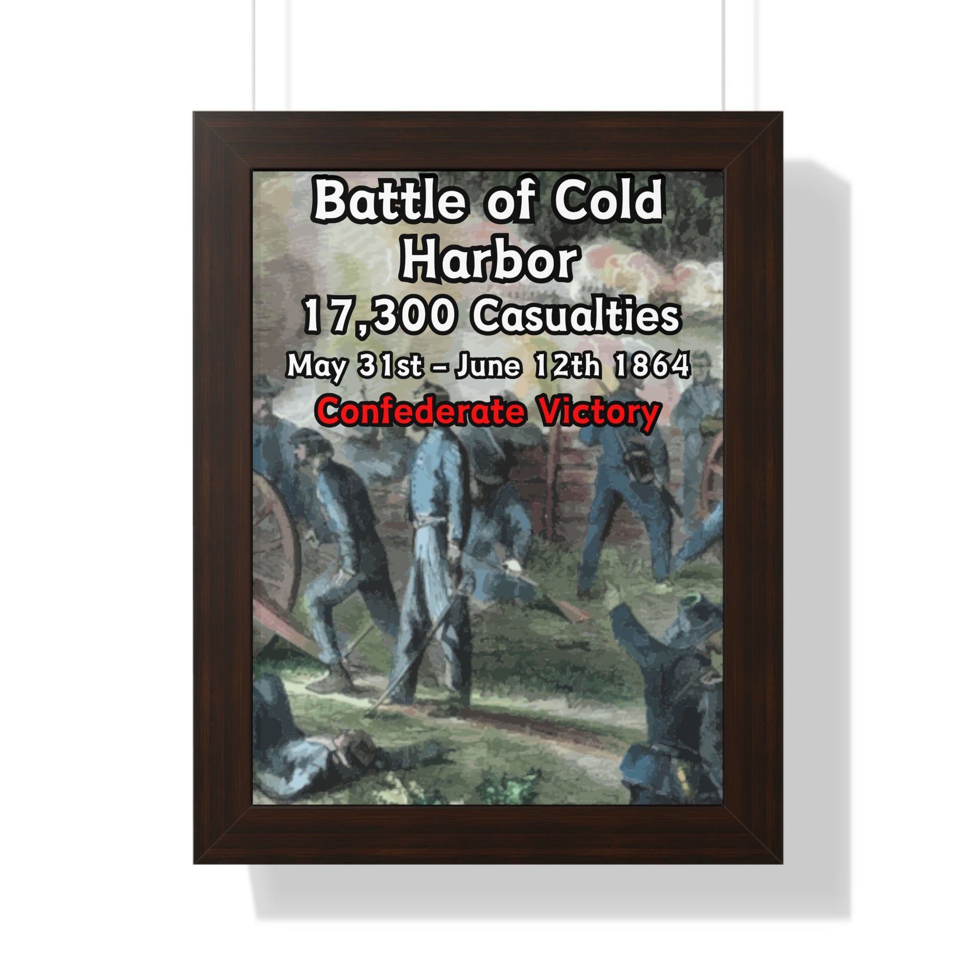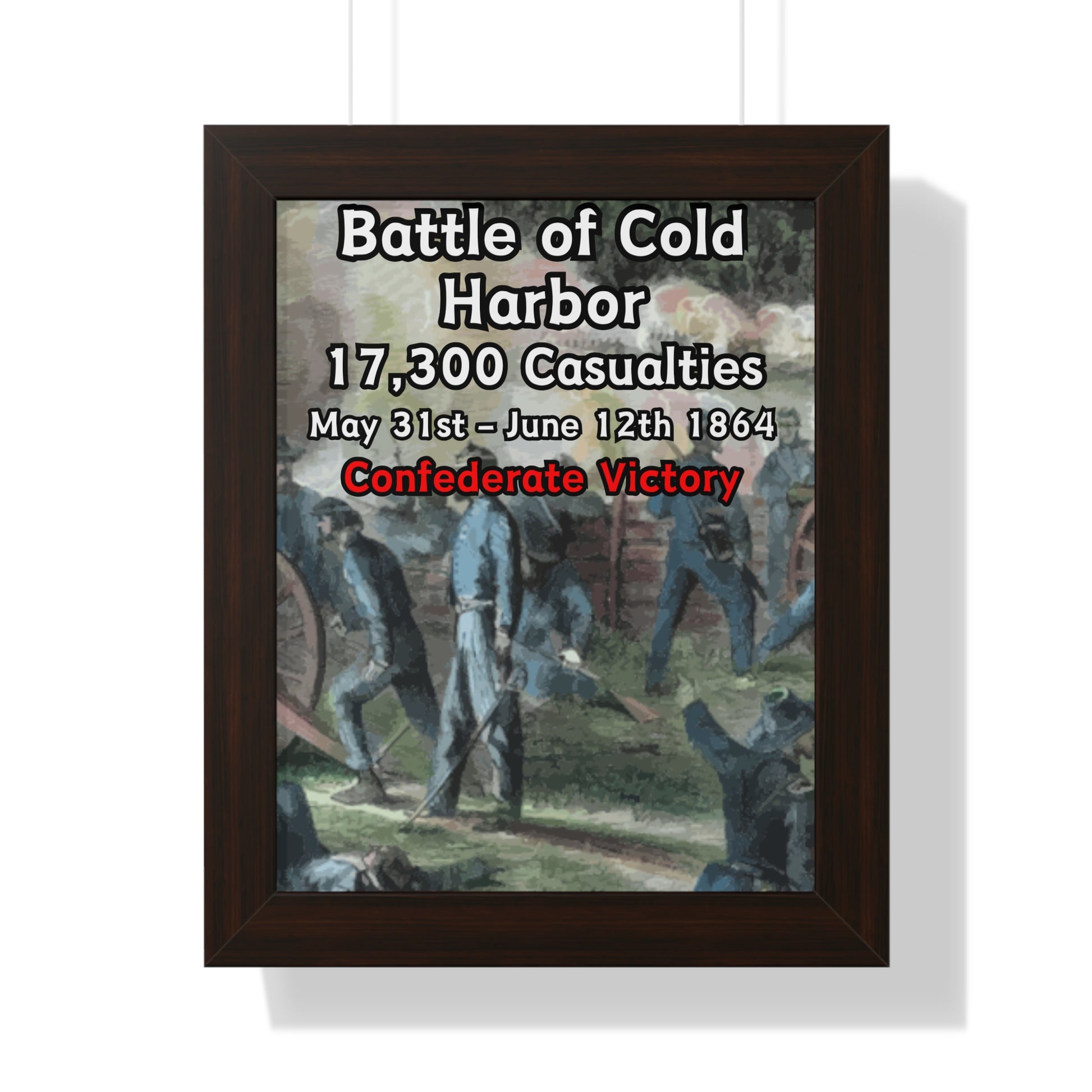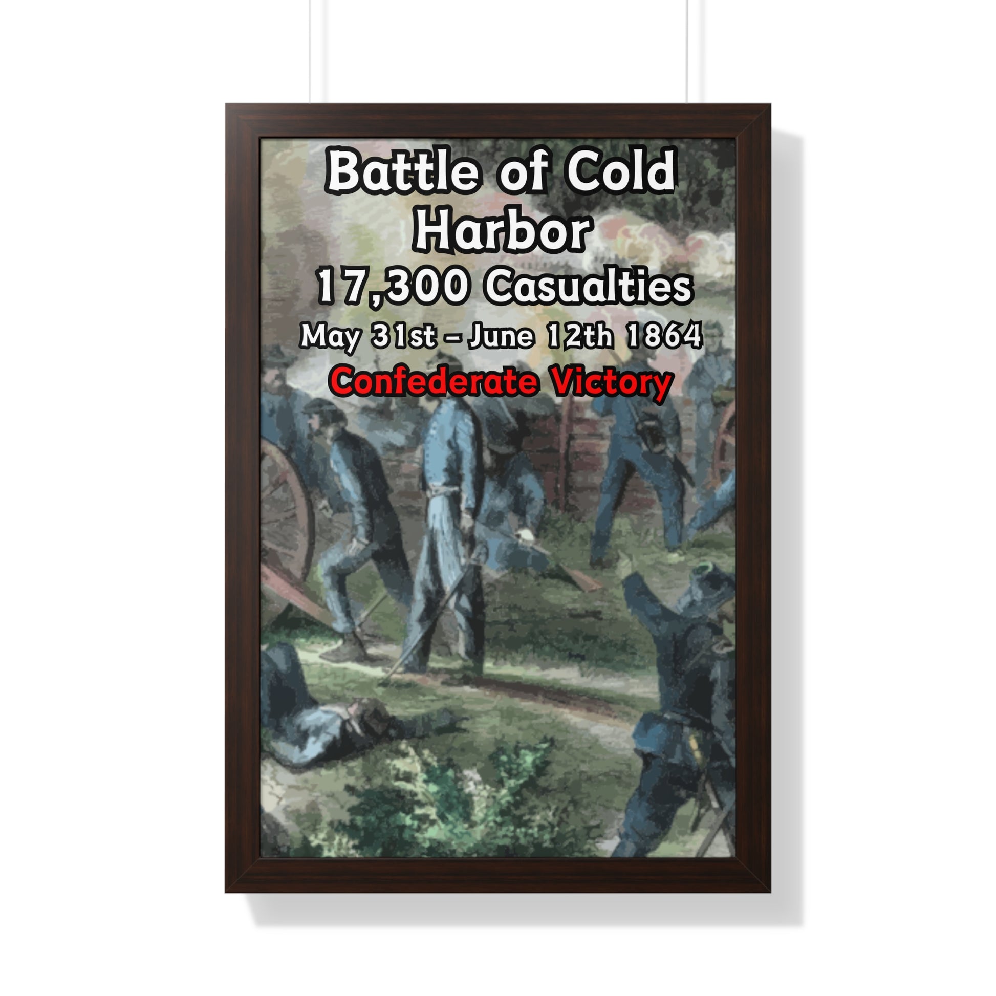 Elevate your wall decor with our Premium Framed Historical Poster of the American Civil War Battle of Cold Harbor, available in three sophisticated colors: black, white, and walnut.