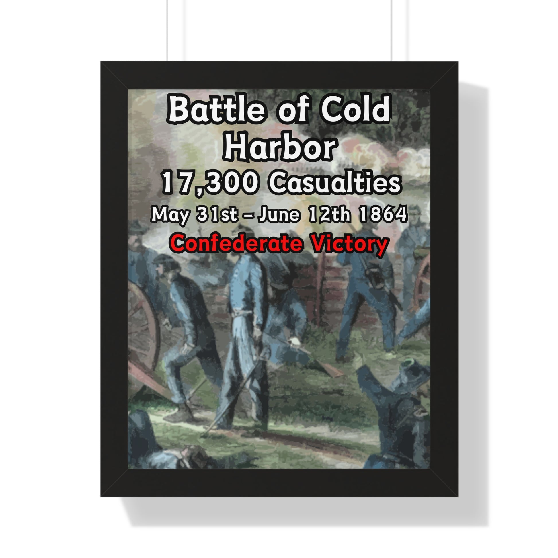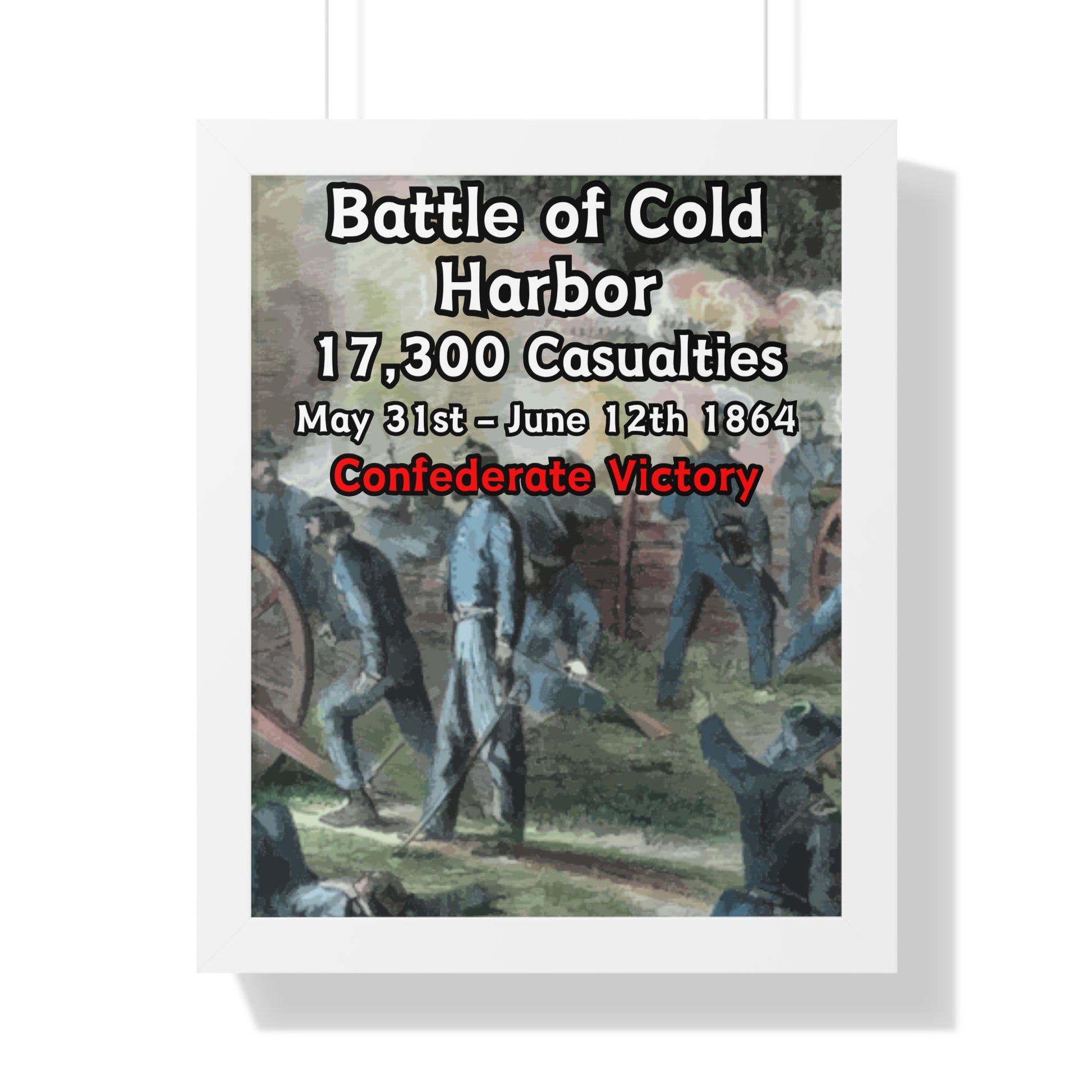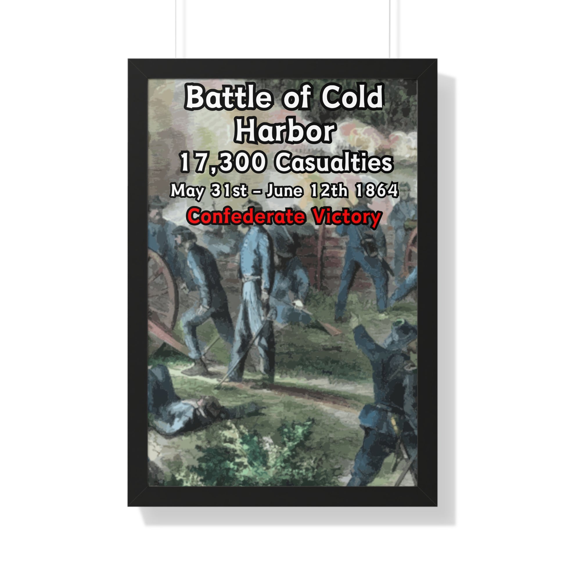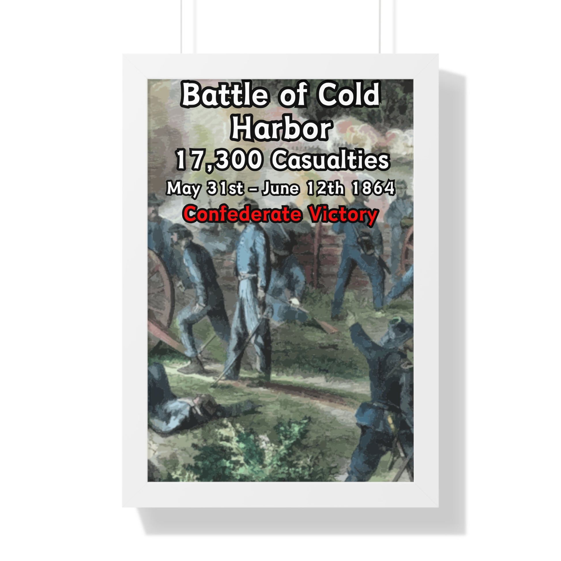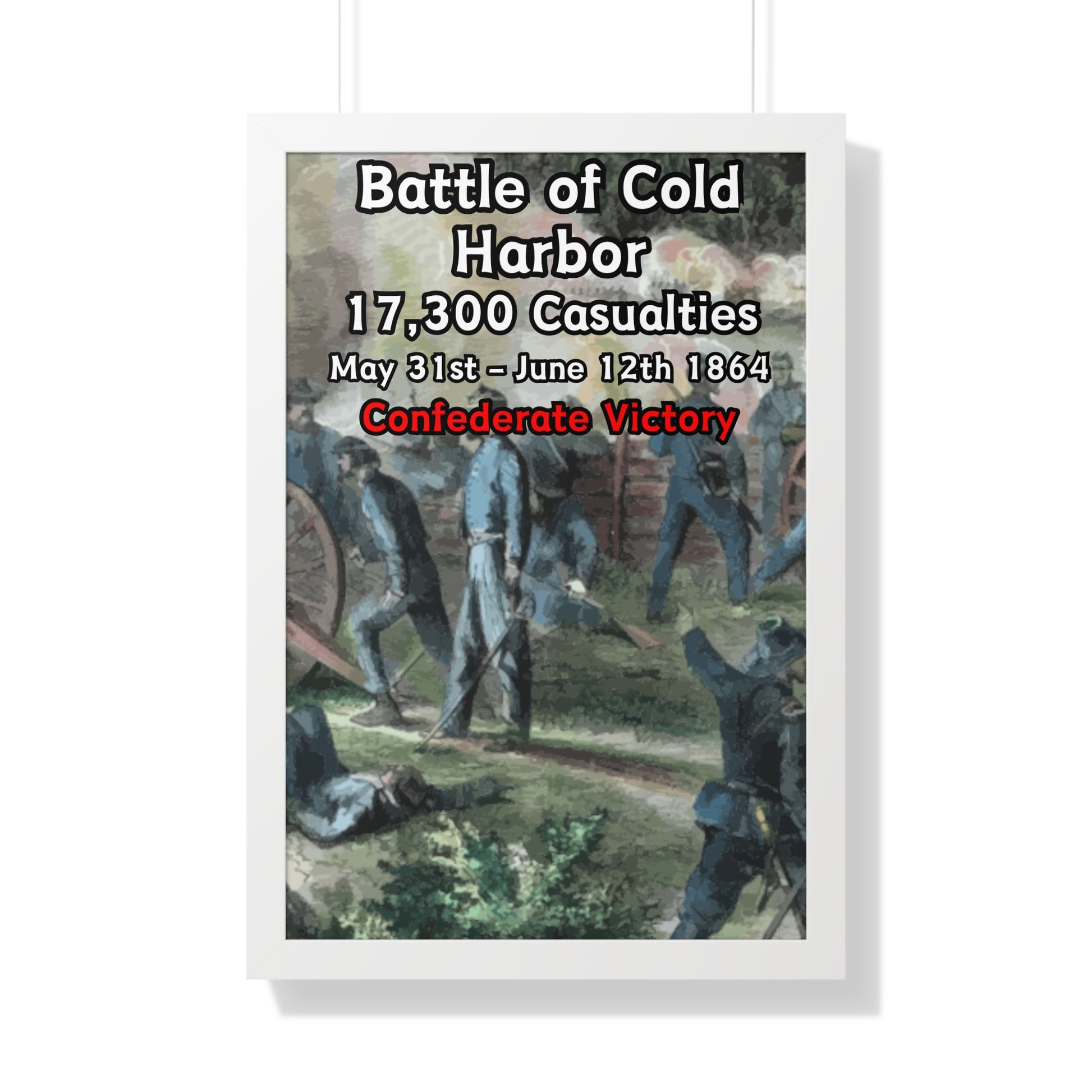Elevate your wall decor with our Premium Framed Historical Poster of the American Civil War Battle of Cold Harbor, available in three sophisticated colors: black, white, and walnut.