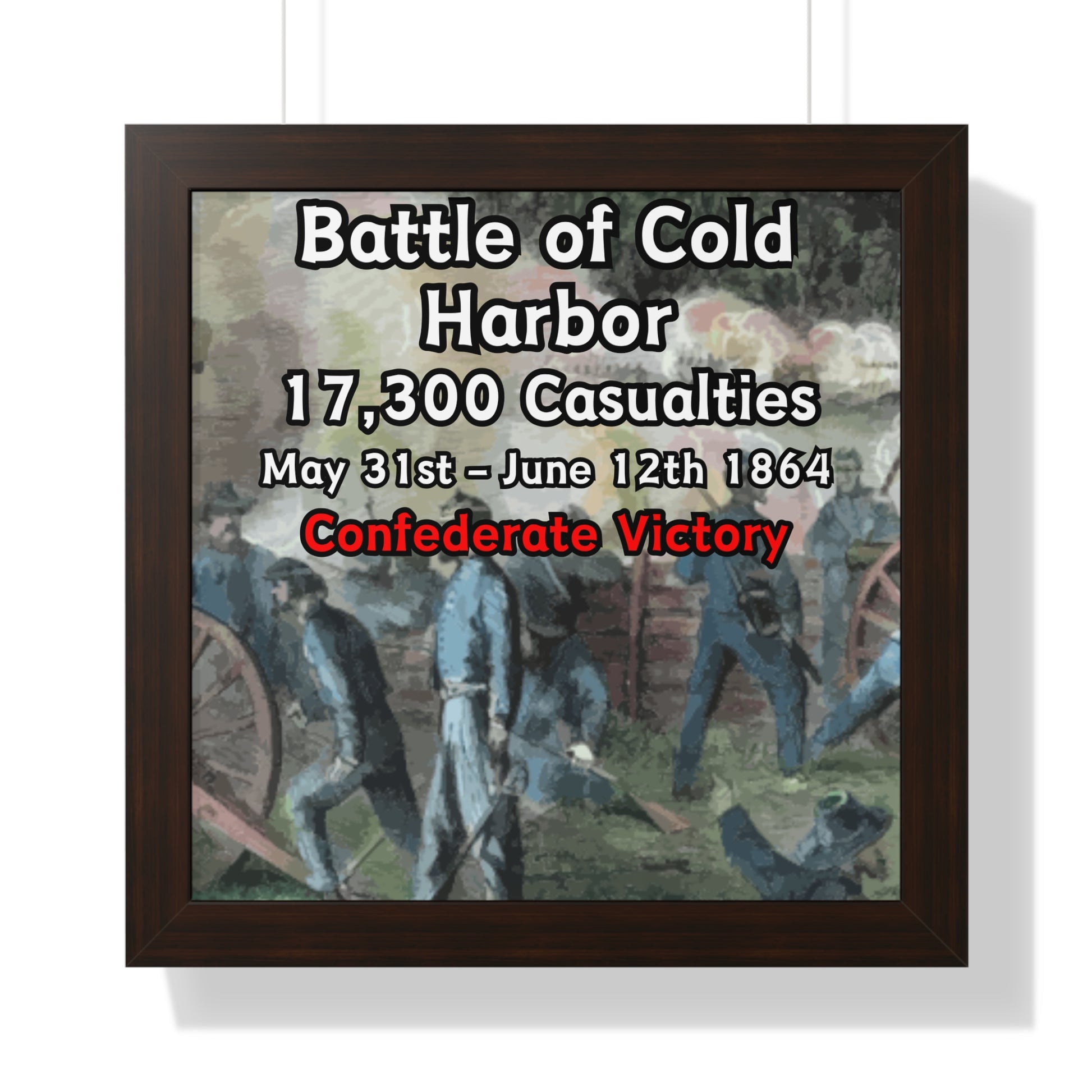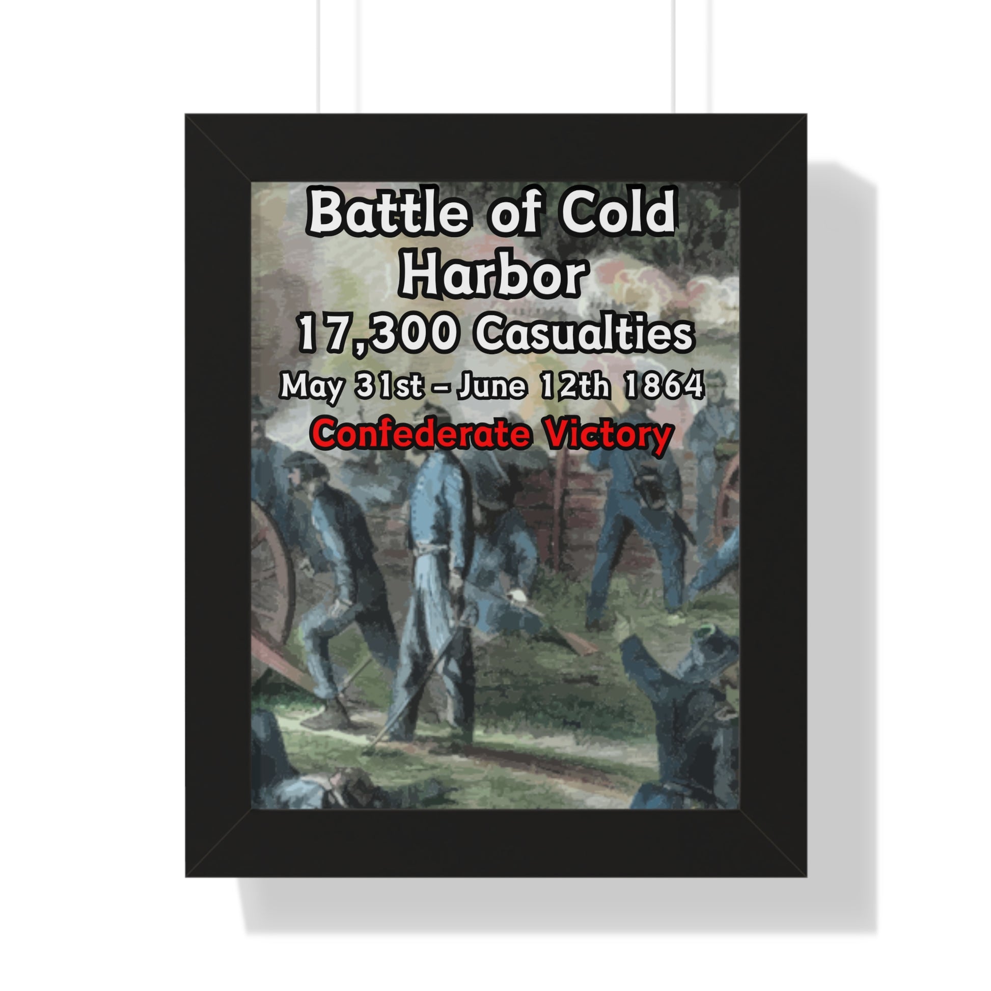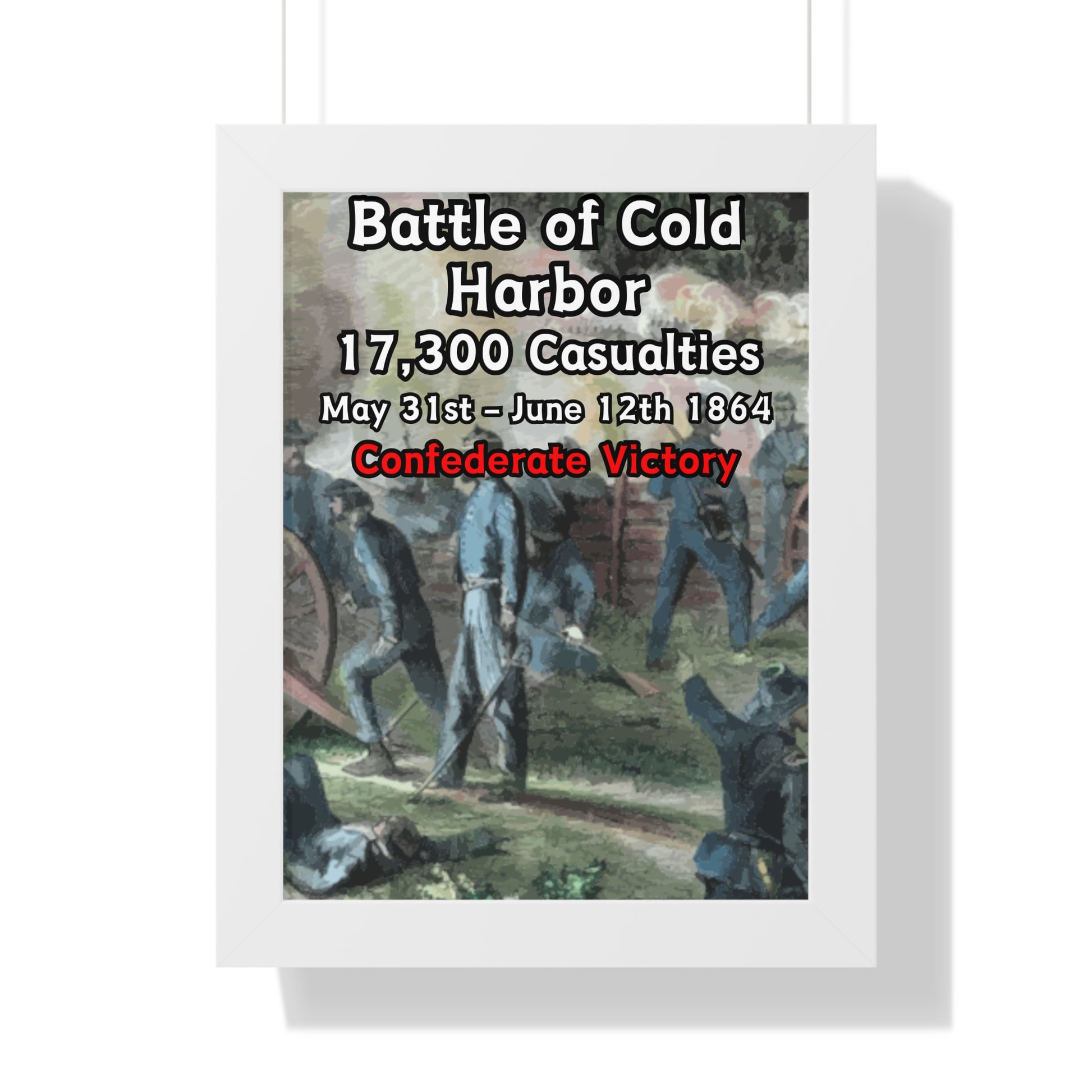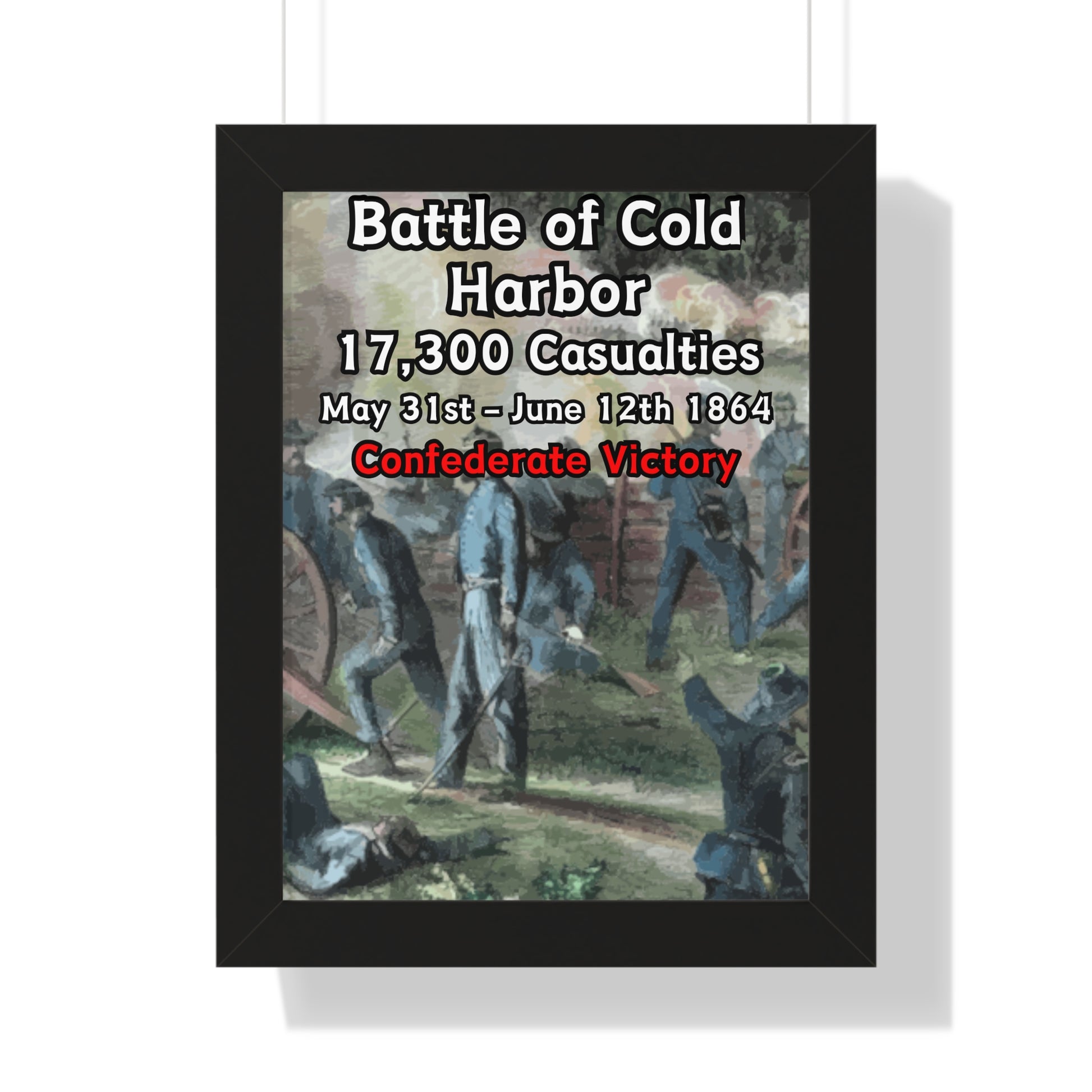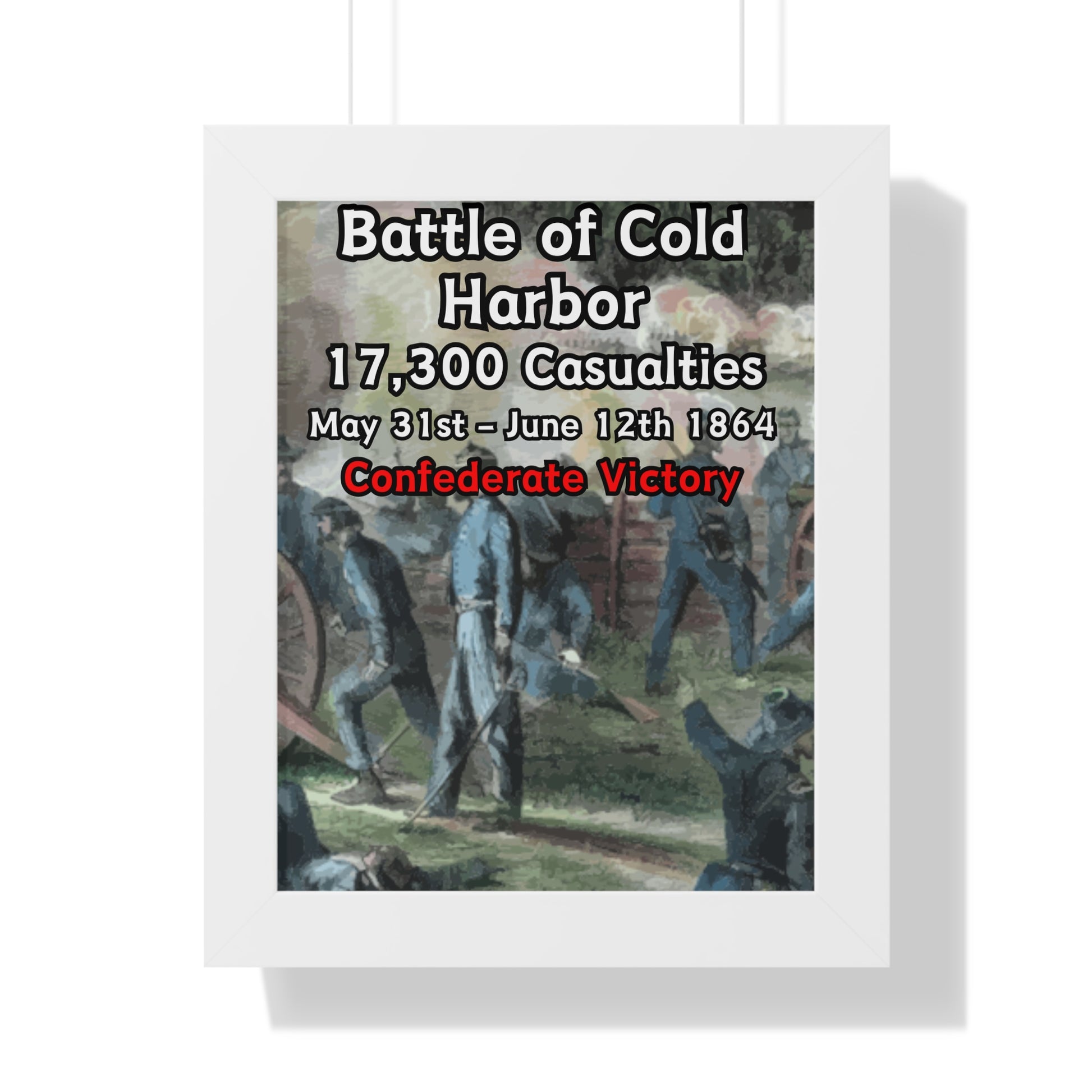 Elevate your wall decor with our Premium Framed Historical Poster of the American Civil War Battle of Cold Harbor, available in three sophisticated colors: black, white, and walnut.