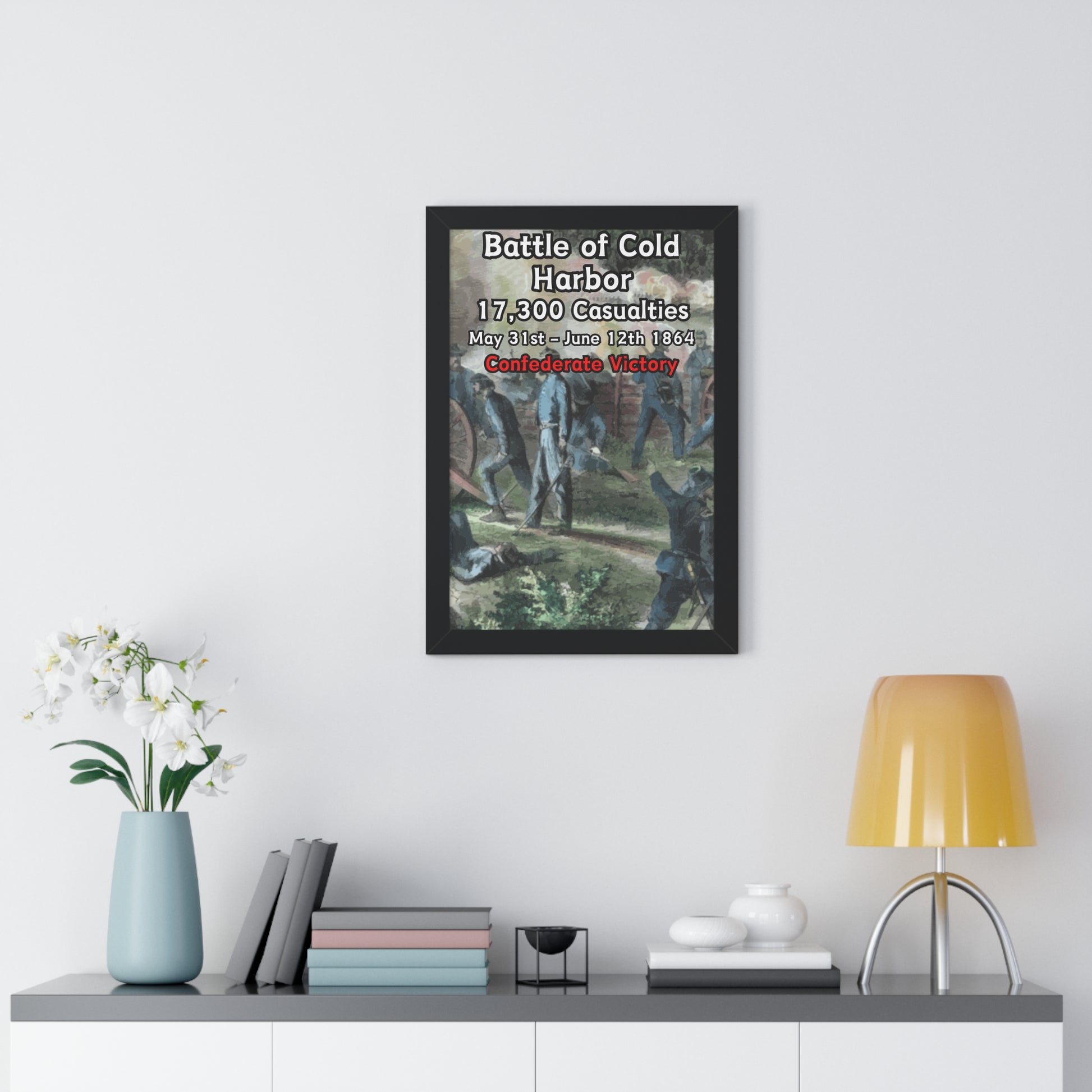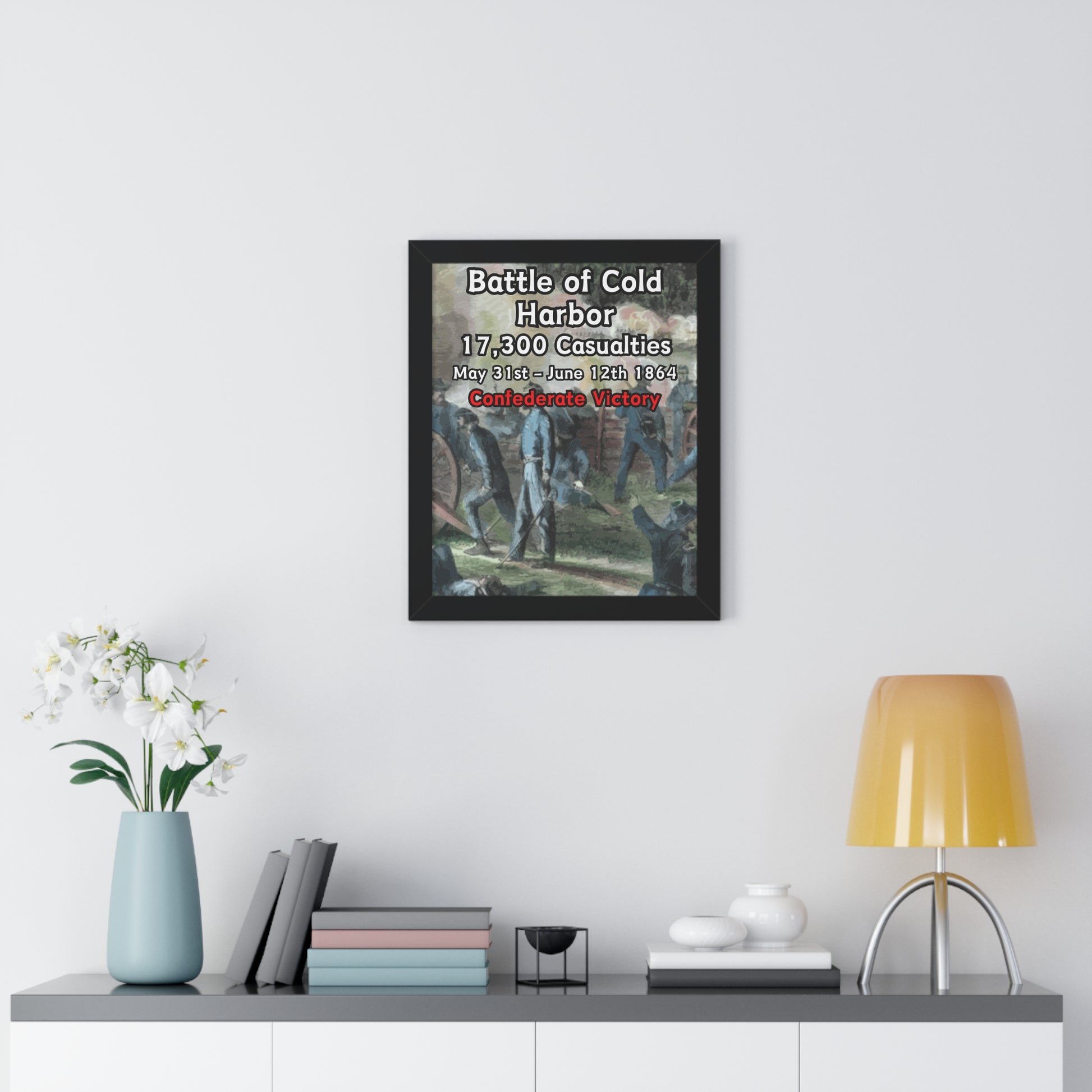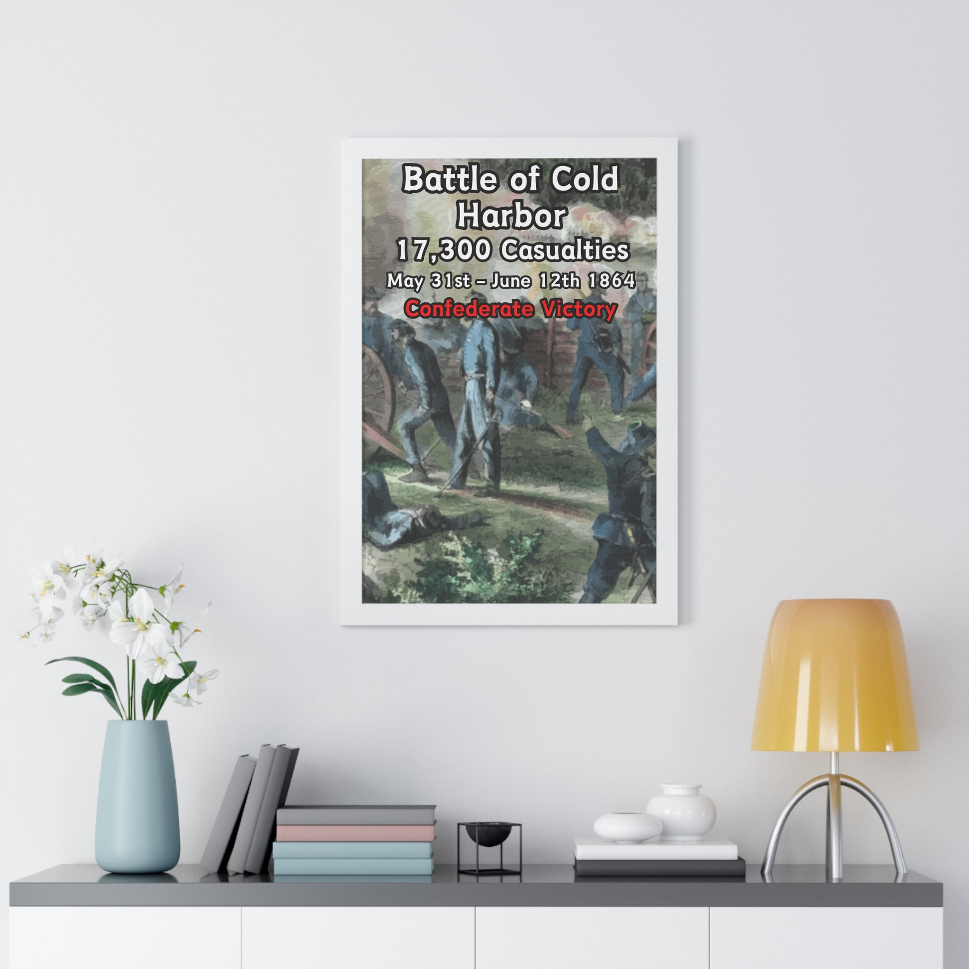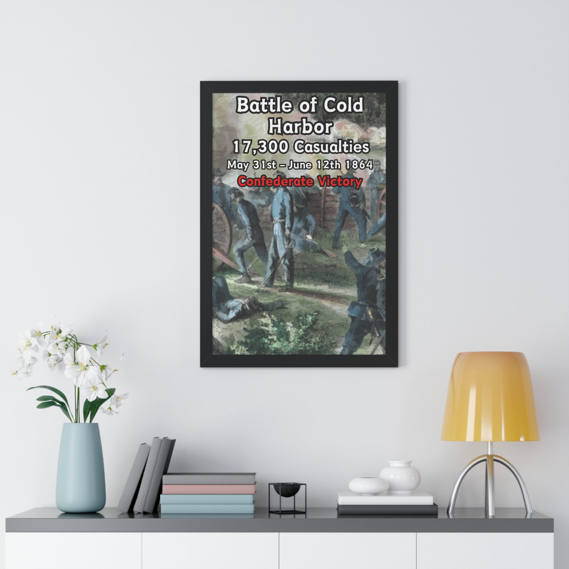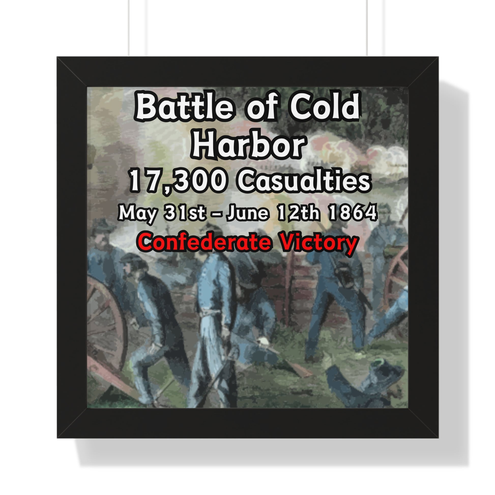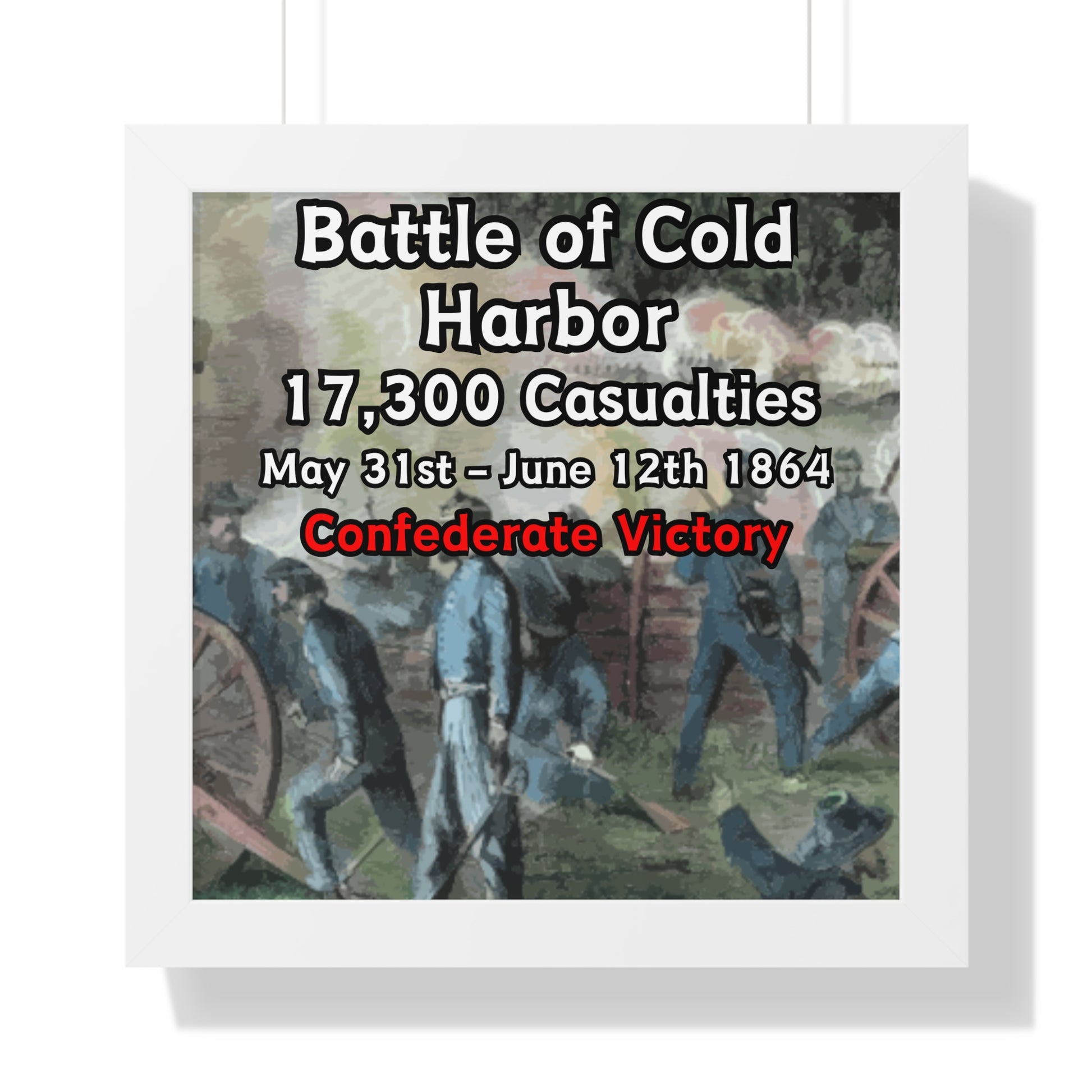 Elevate your wall decor with our Premium Framed Historical Poster of the American Civil War Battle of Cold Harbor, available in three sophisticated colors: black, white, and walnut.