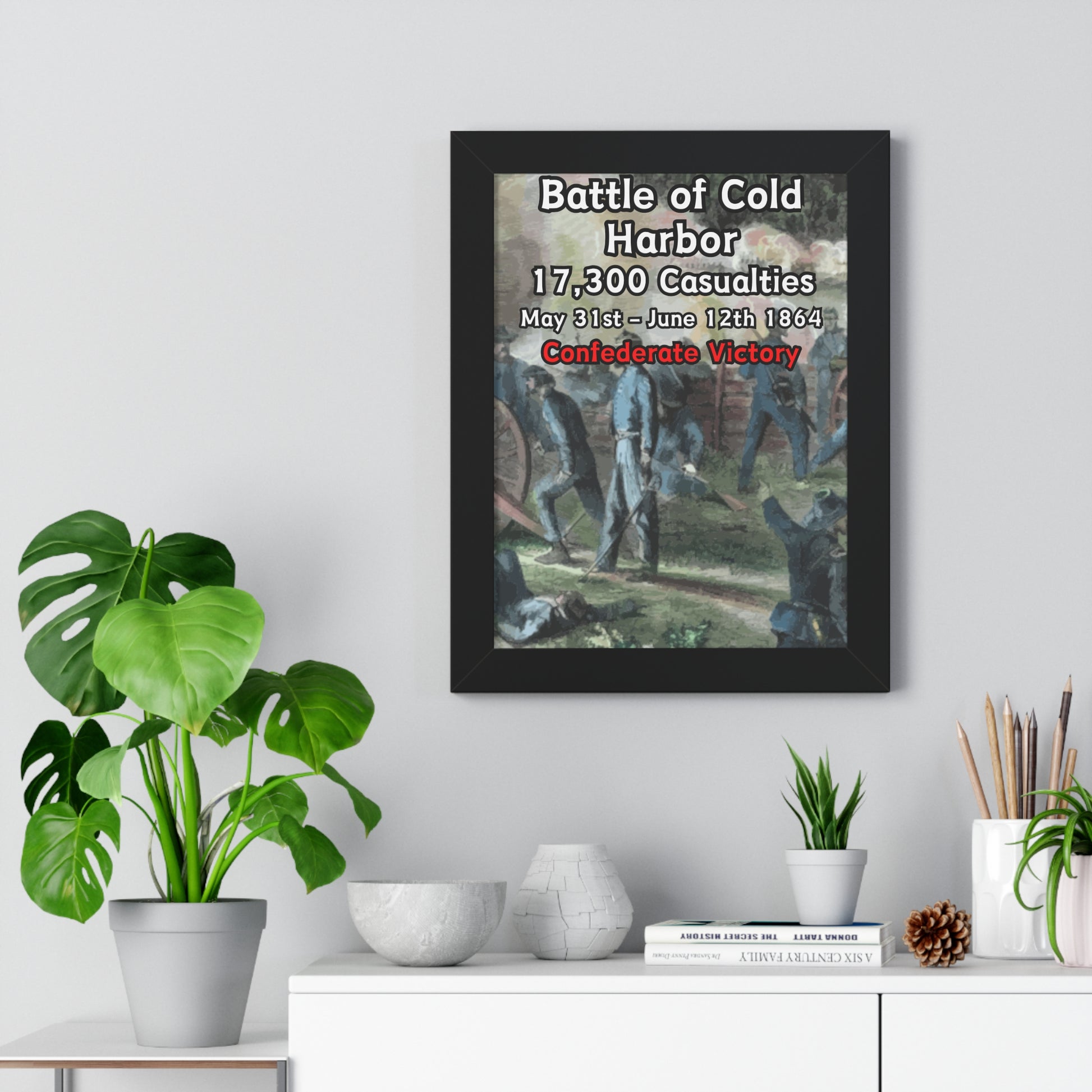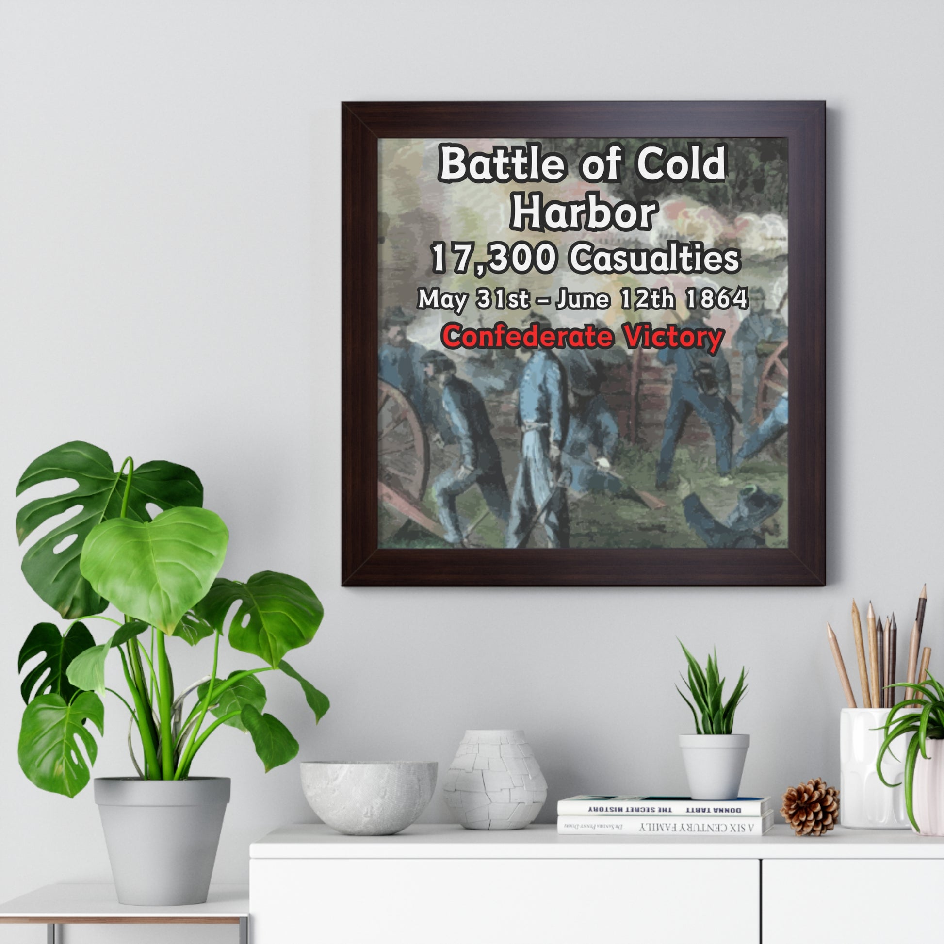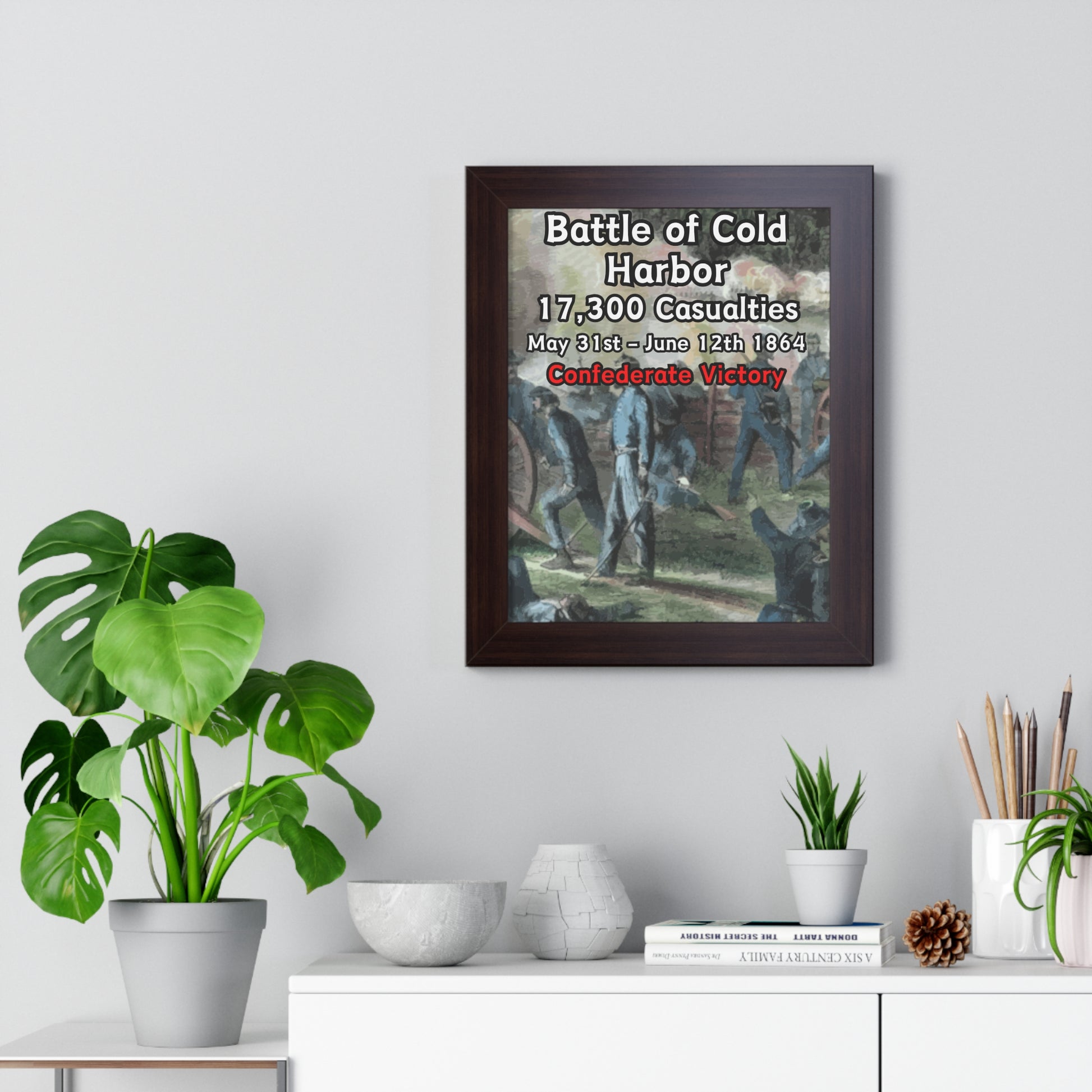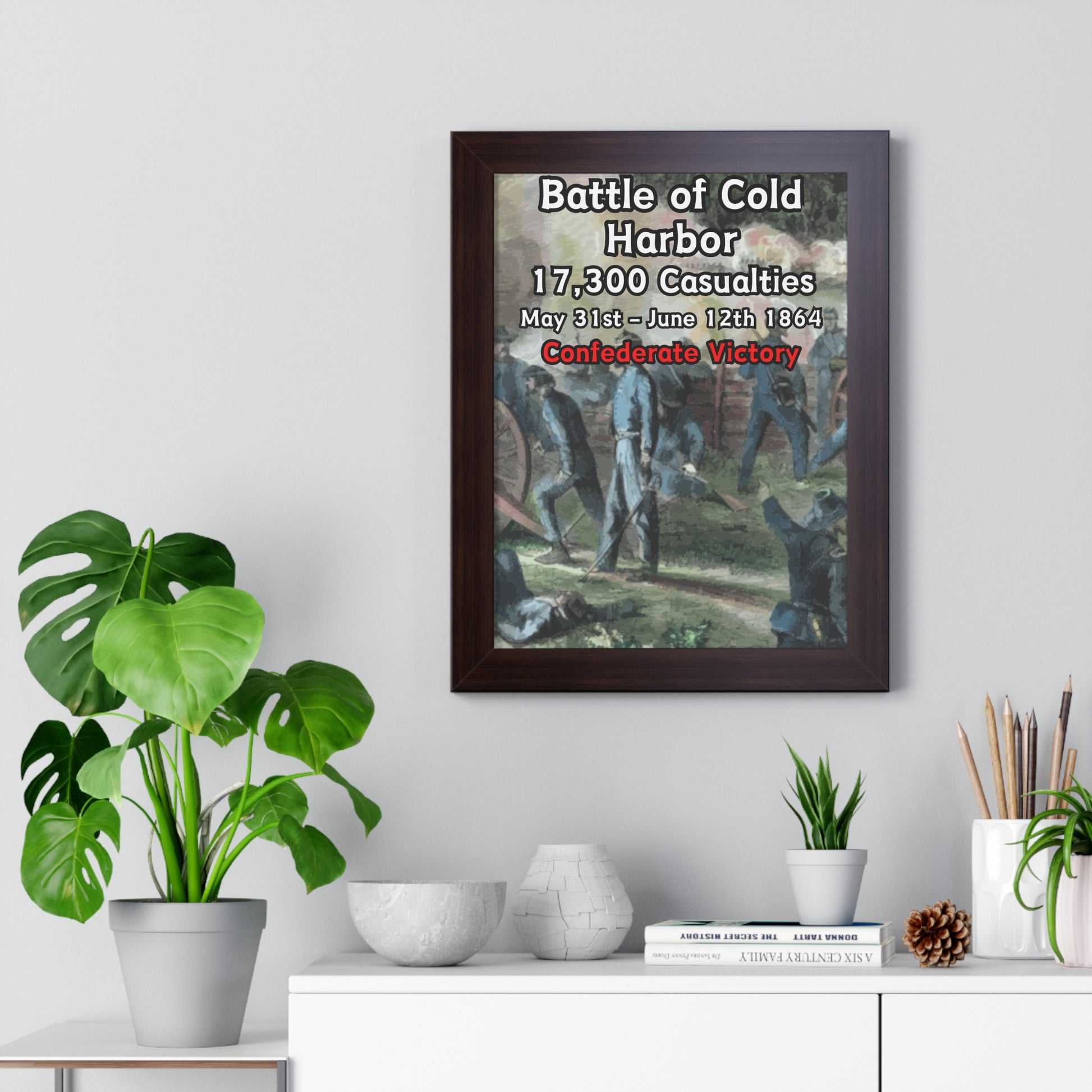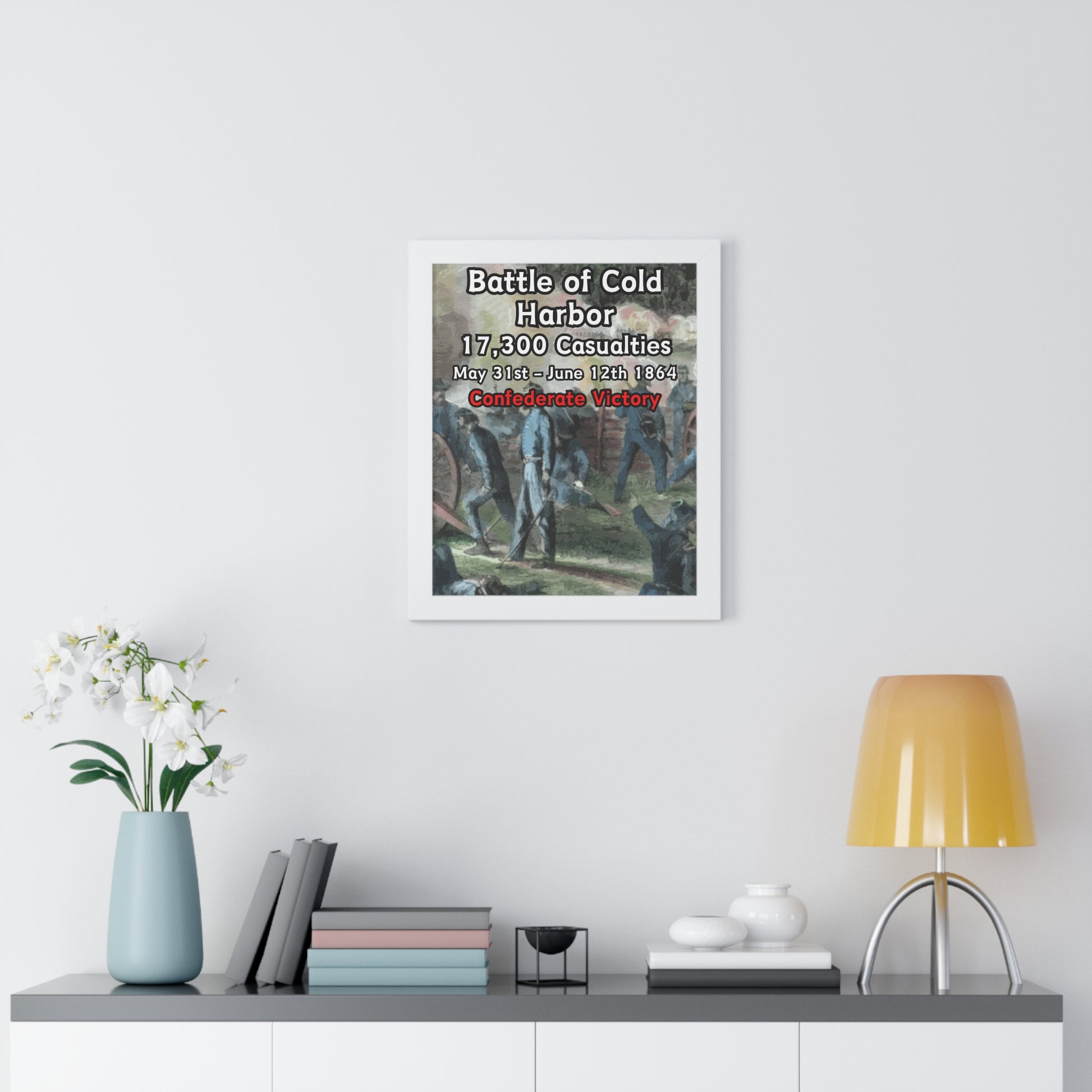 Elevate your wall decor with our Premium Framed Historical Poster of the American Civil War Battle of Cold Harbor, available in three sophisticated colors: black, white, and walnut.