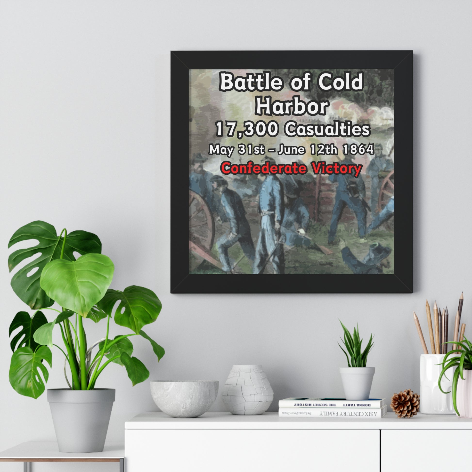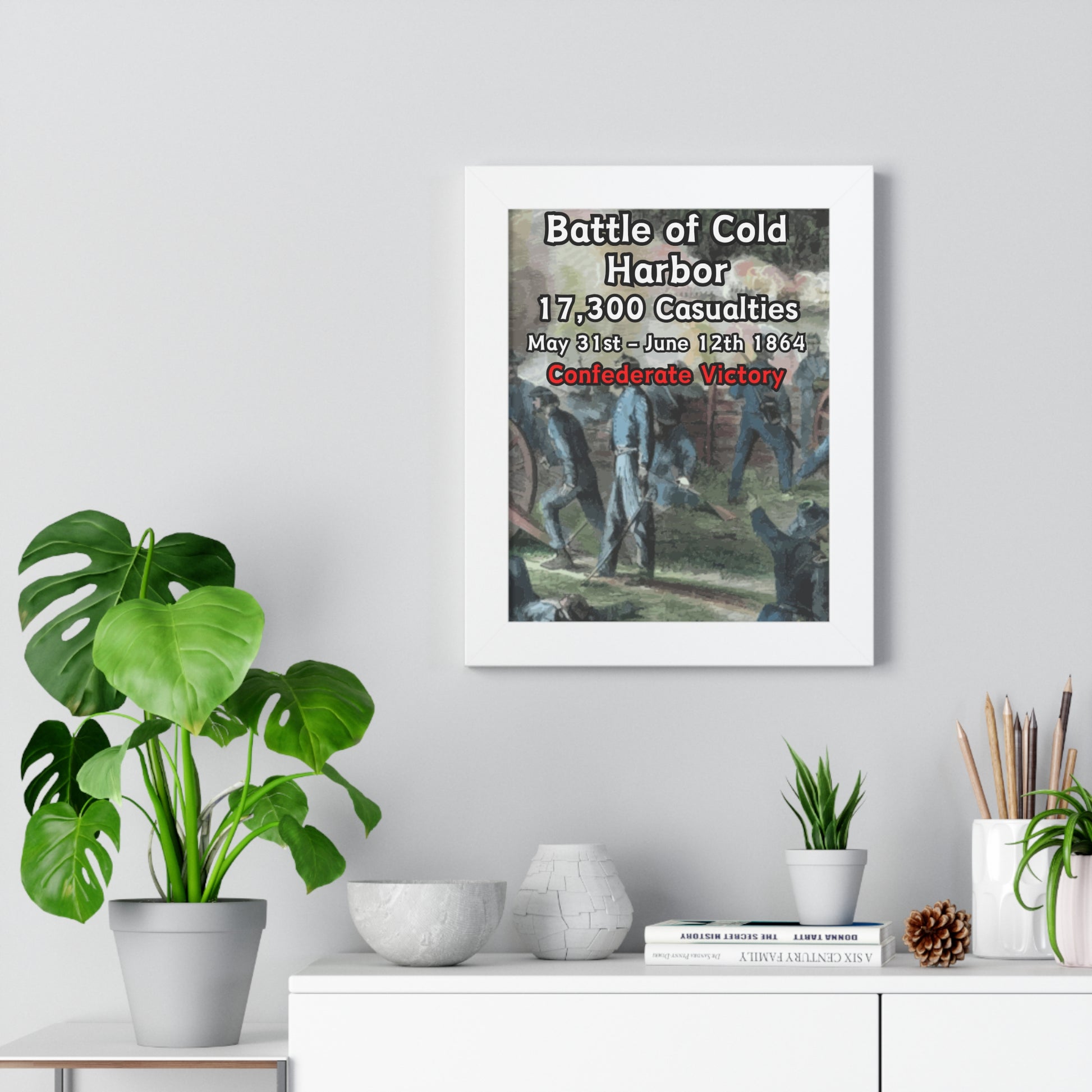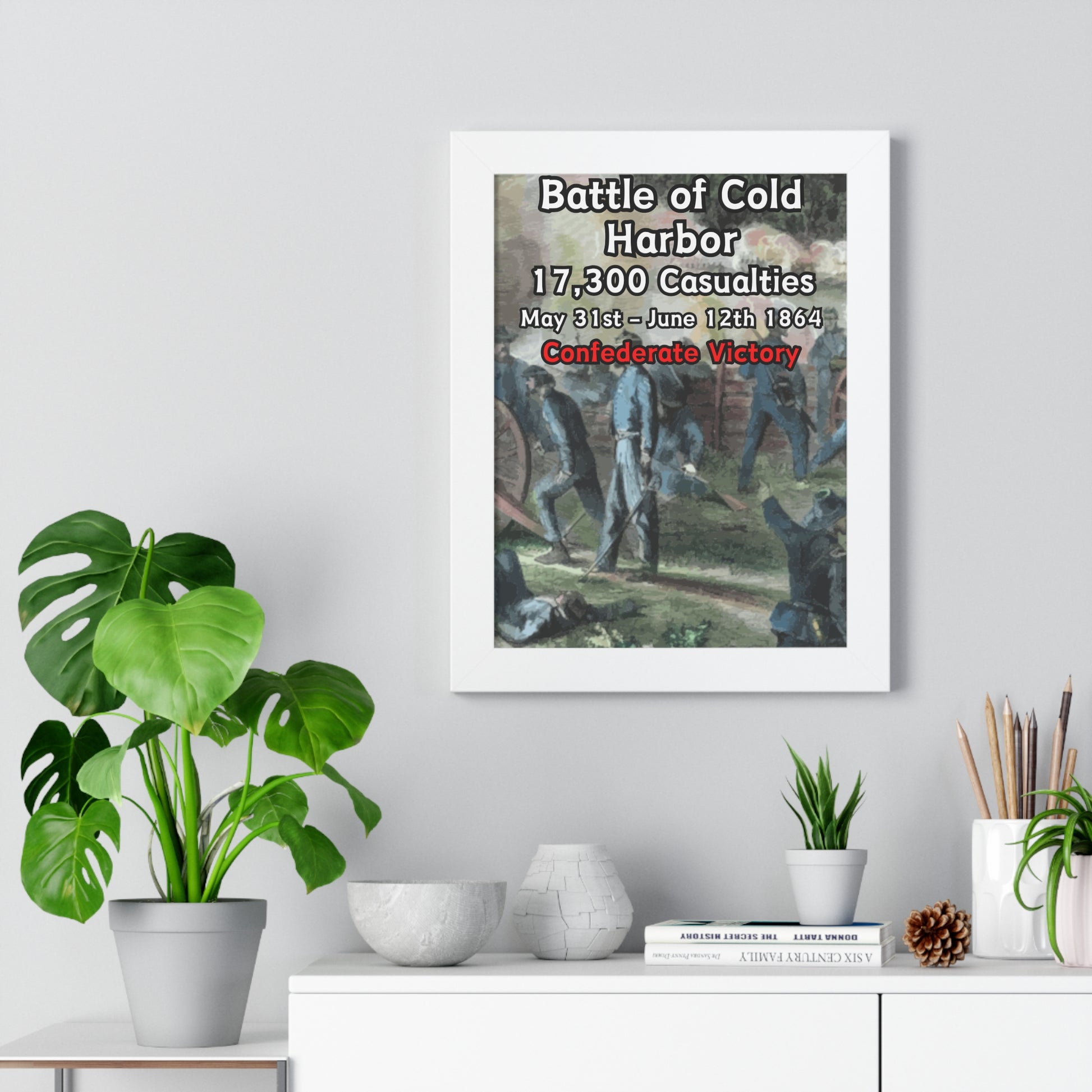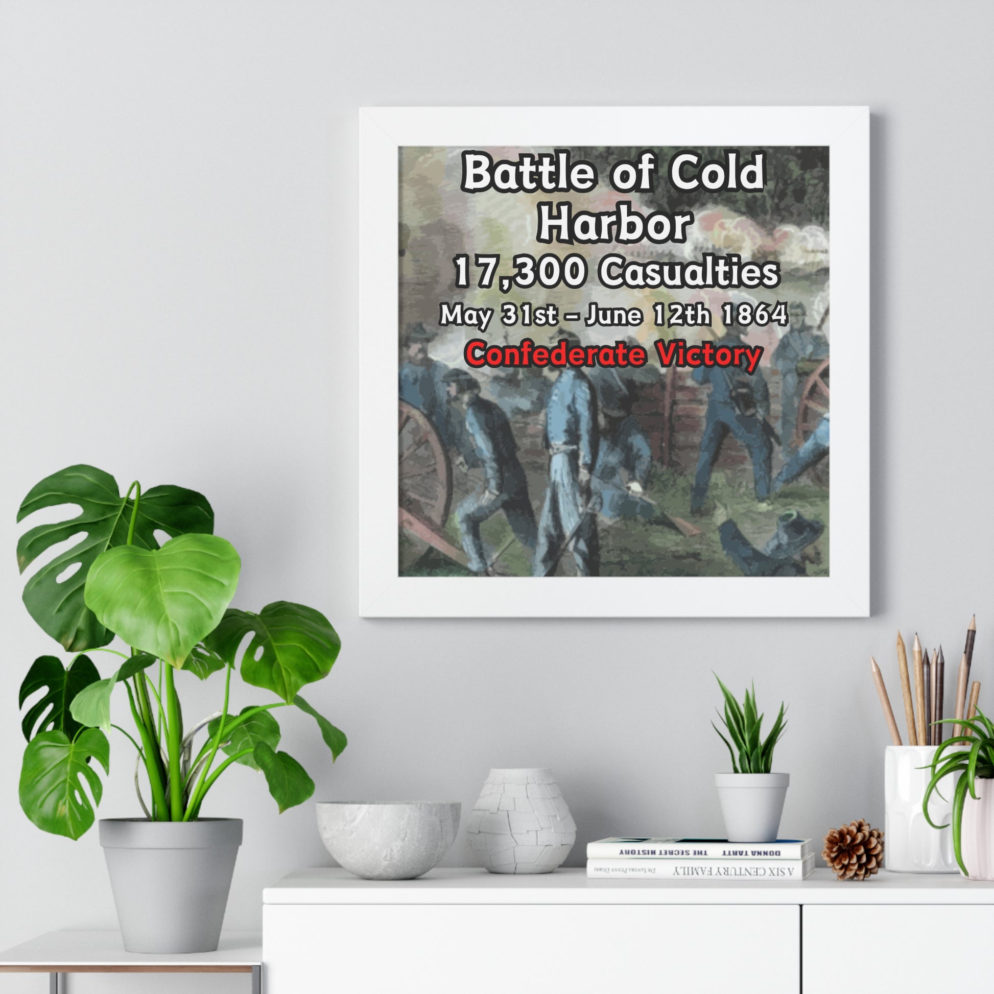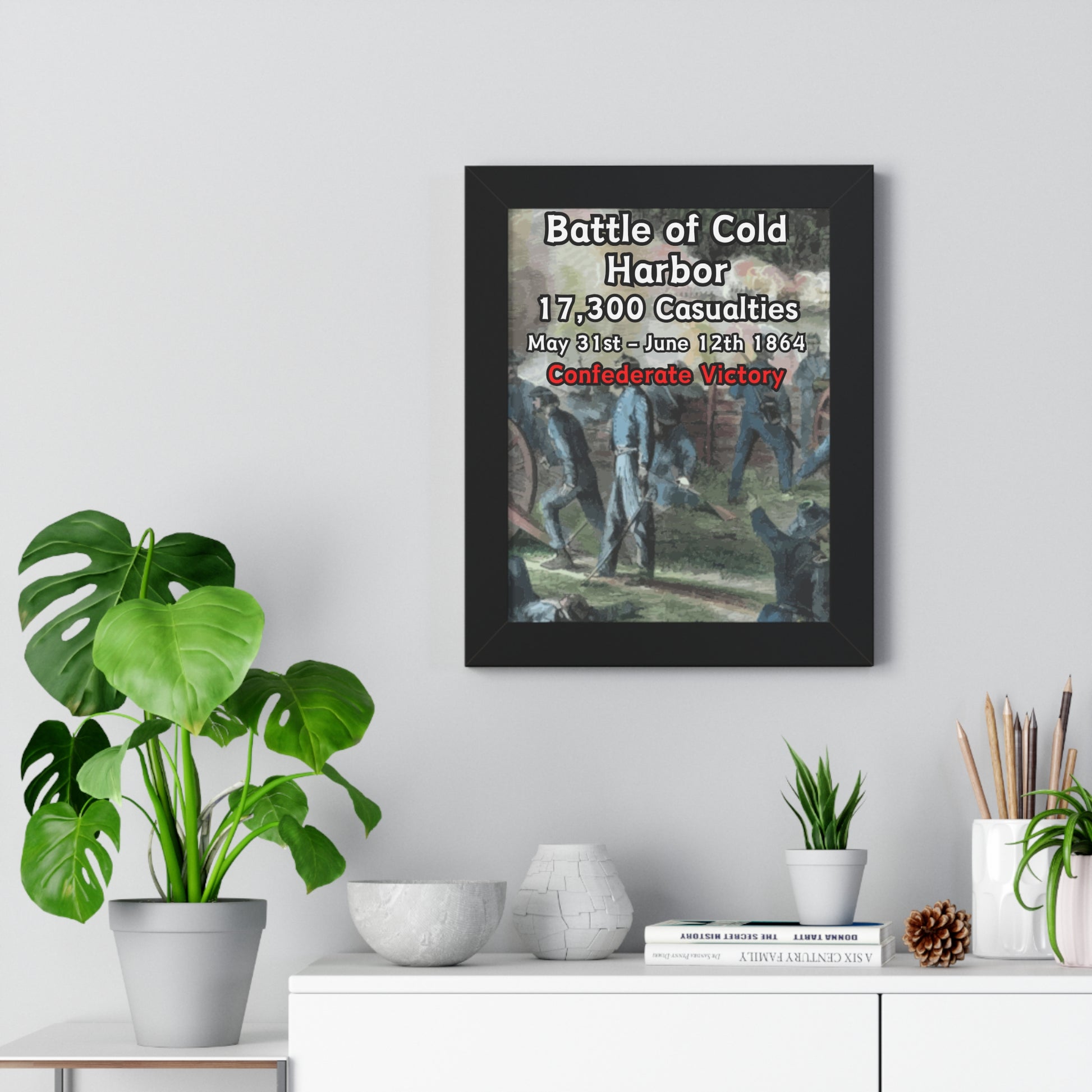Elevate your wall decor with our Premium Framed Historical Poster of the American Civil War Battle of Cold Harbor, available in three sophisticated colors: black, white, and walnut.