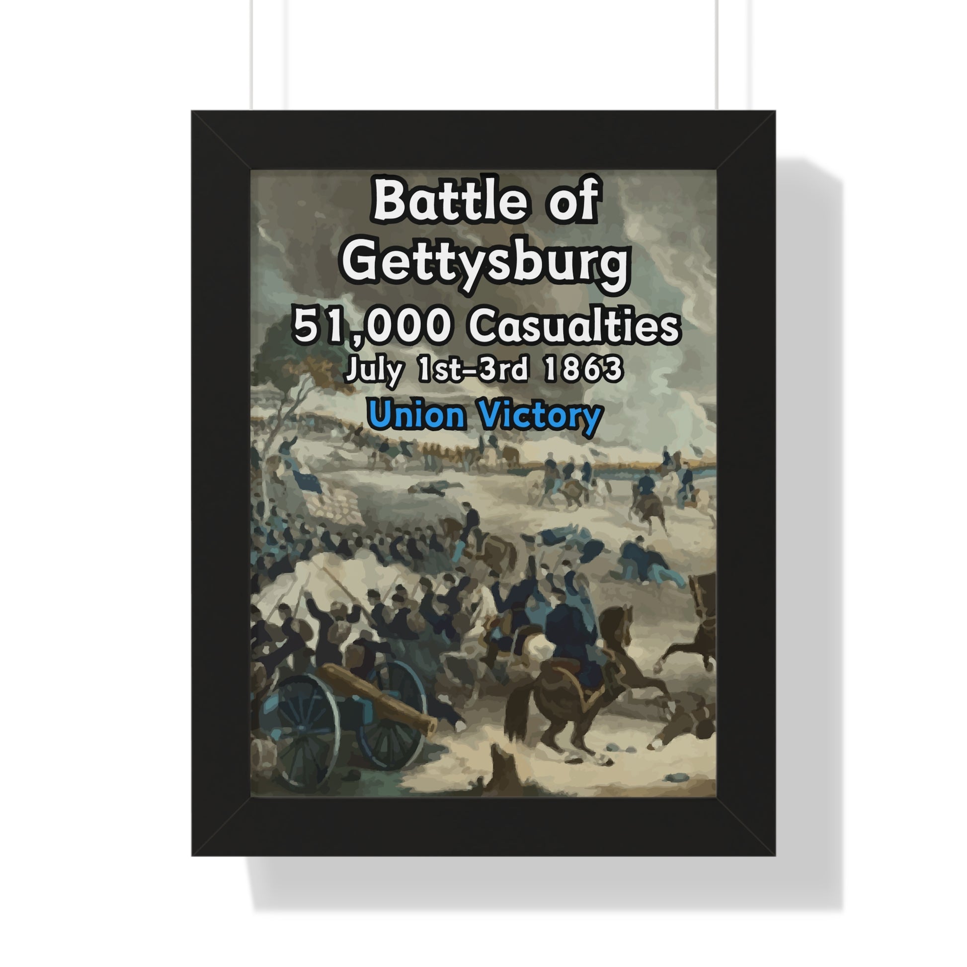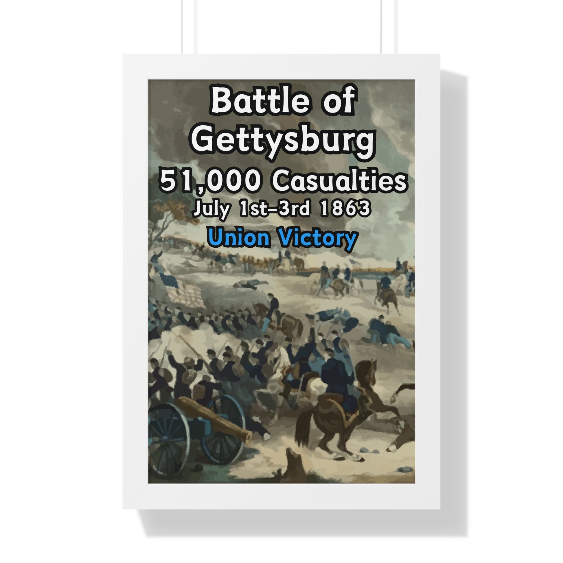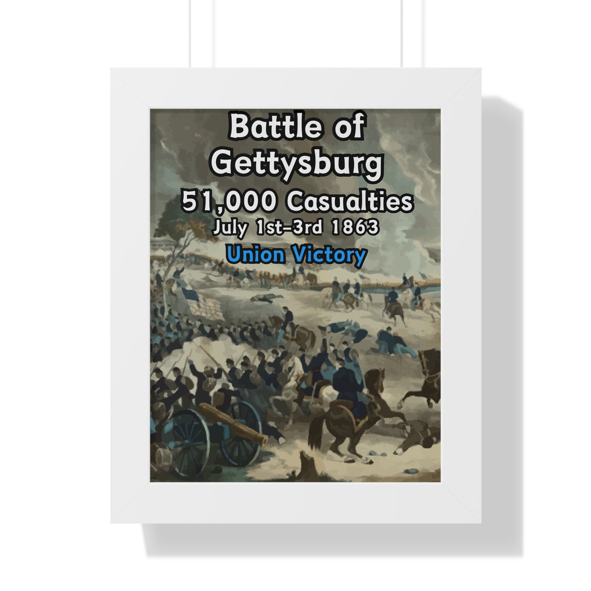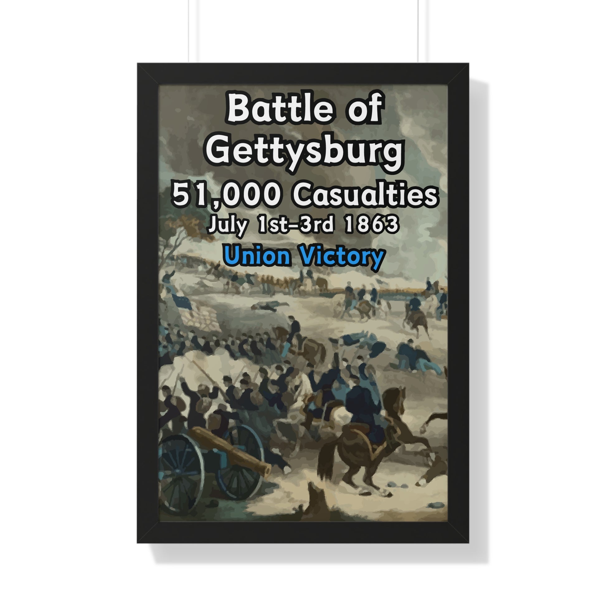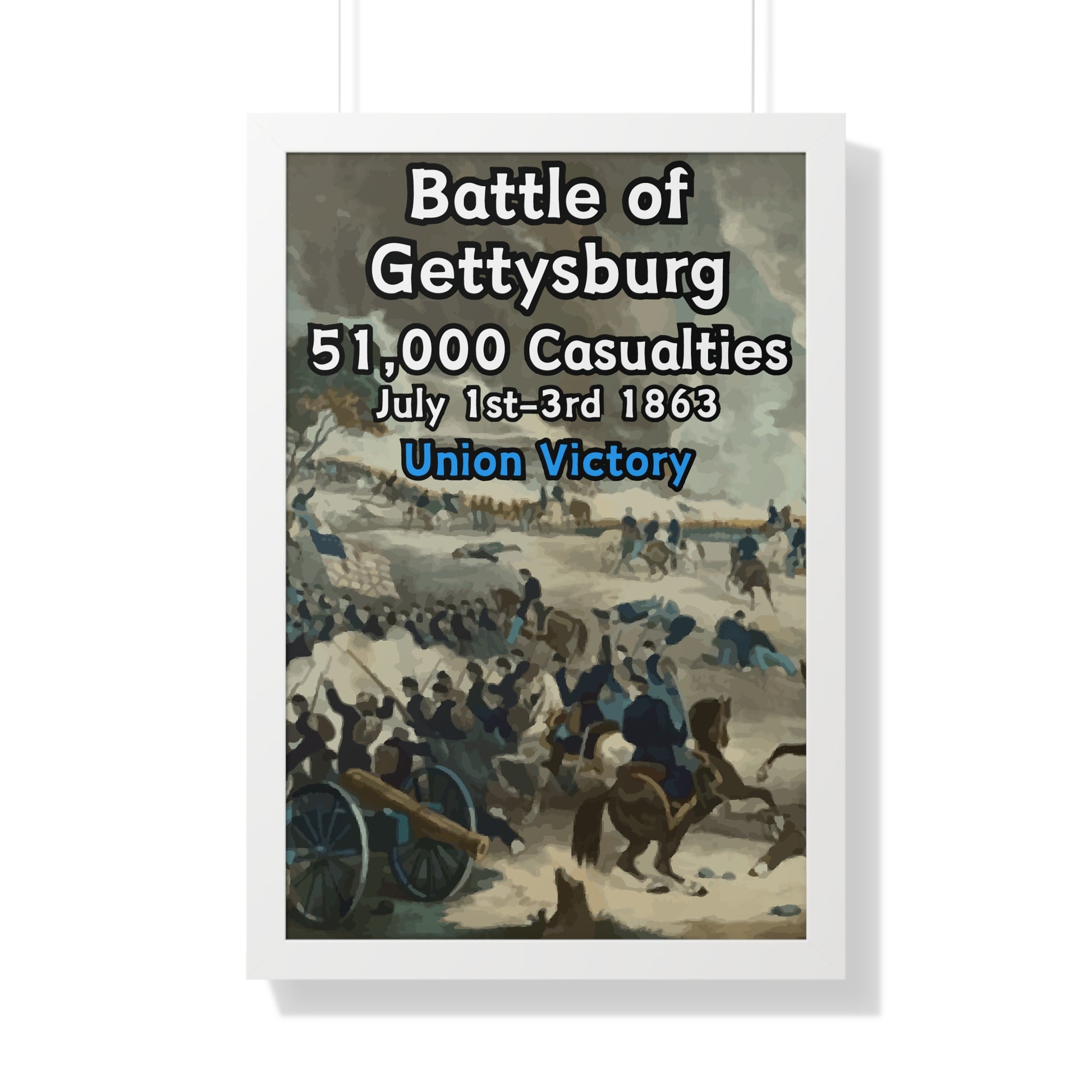 Elevate your wall decor with our Premium Framed Historical Poster of the American Civil War Battle of Gettysburg, available in three sophisticated colors: black, white, and walnut.