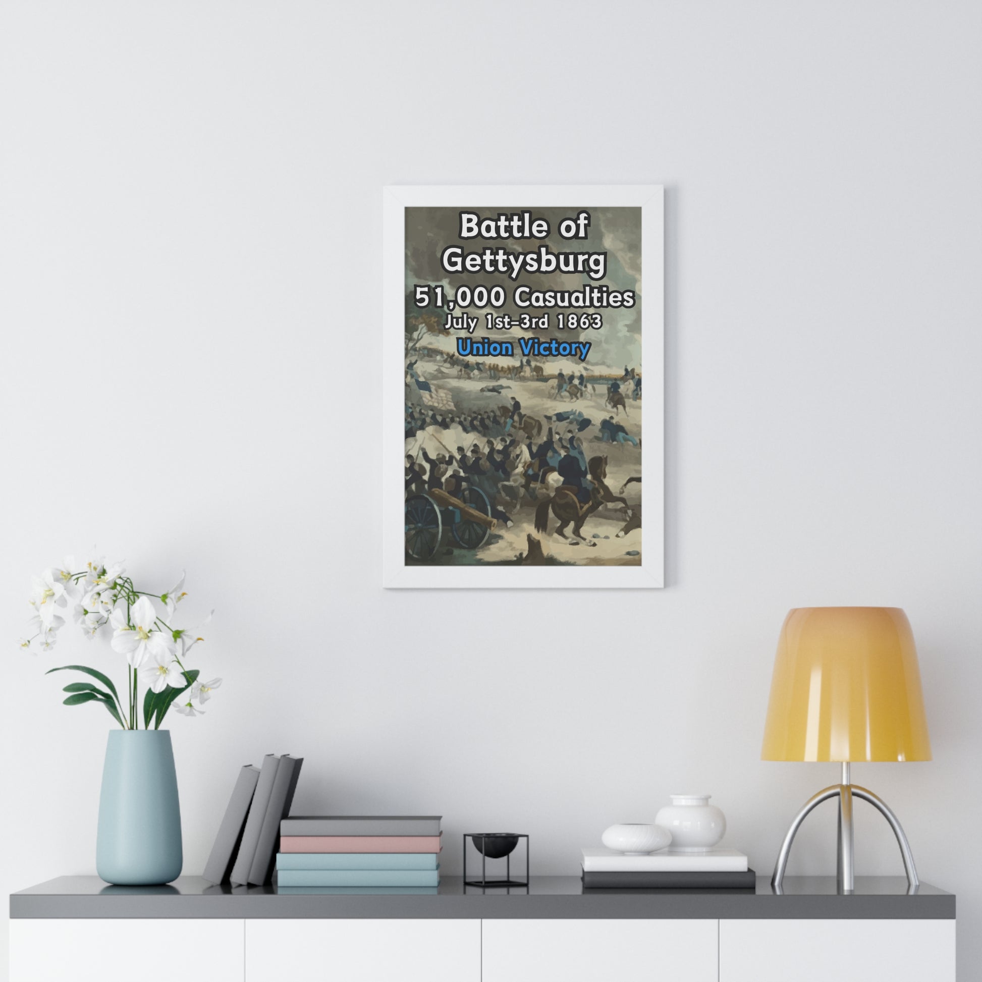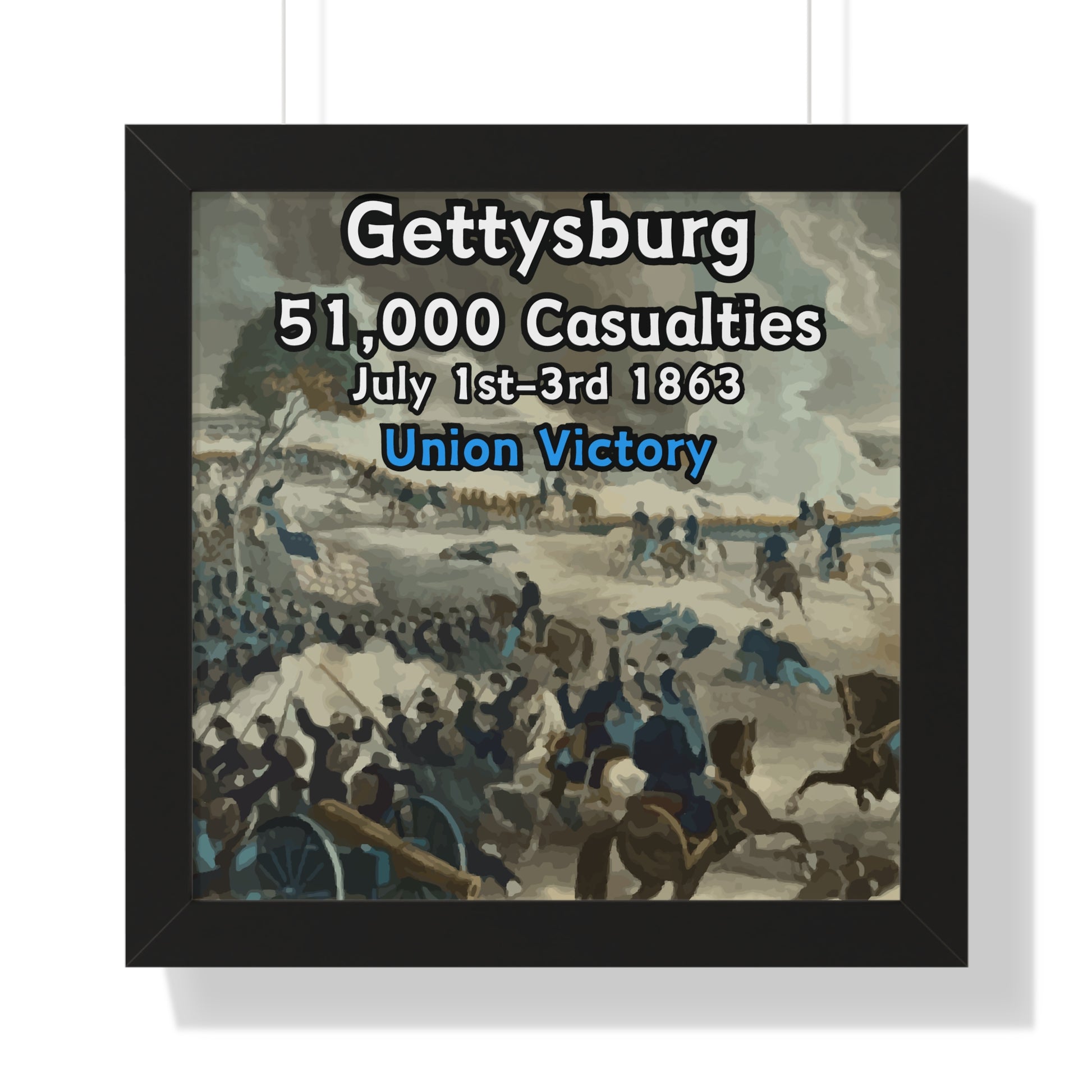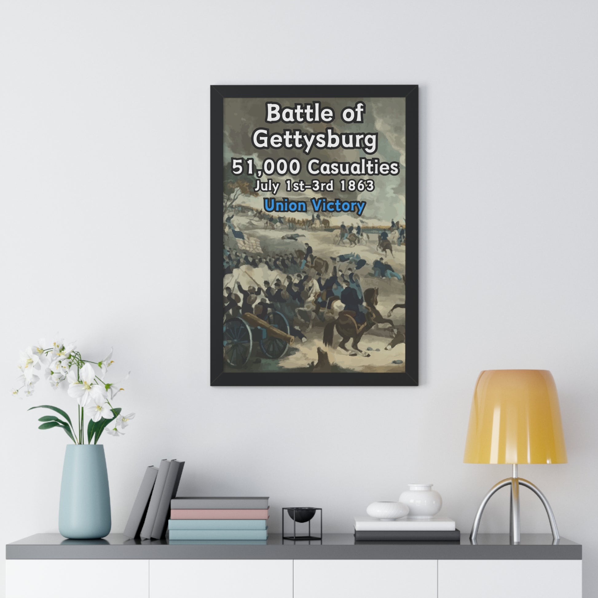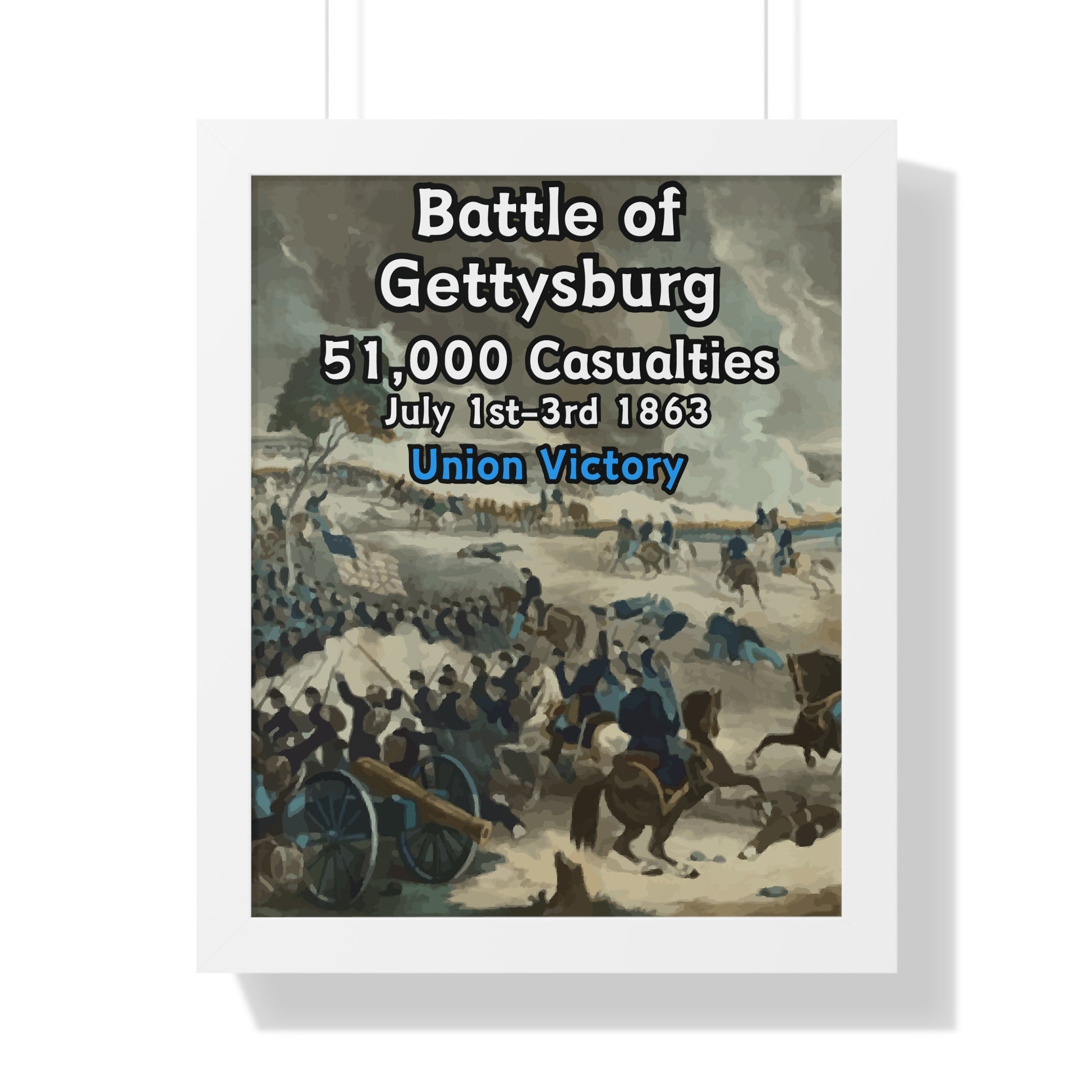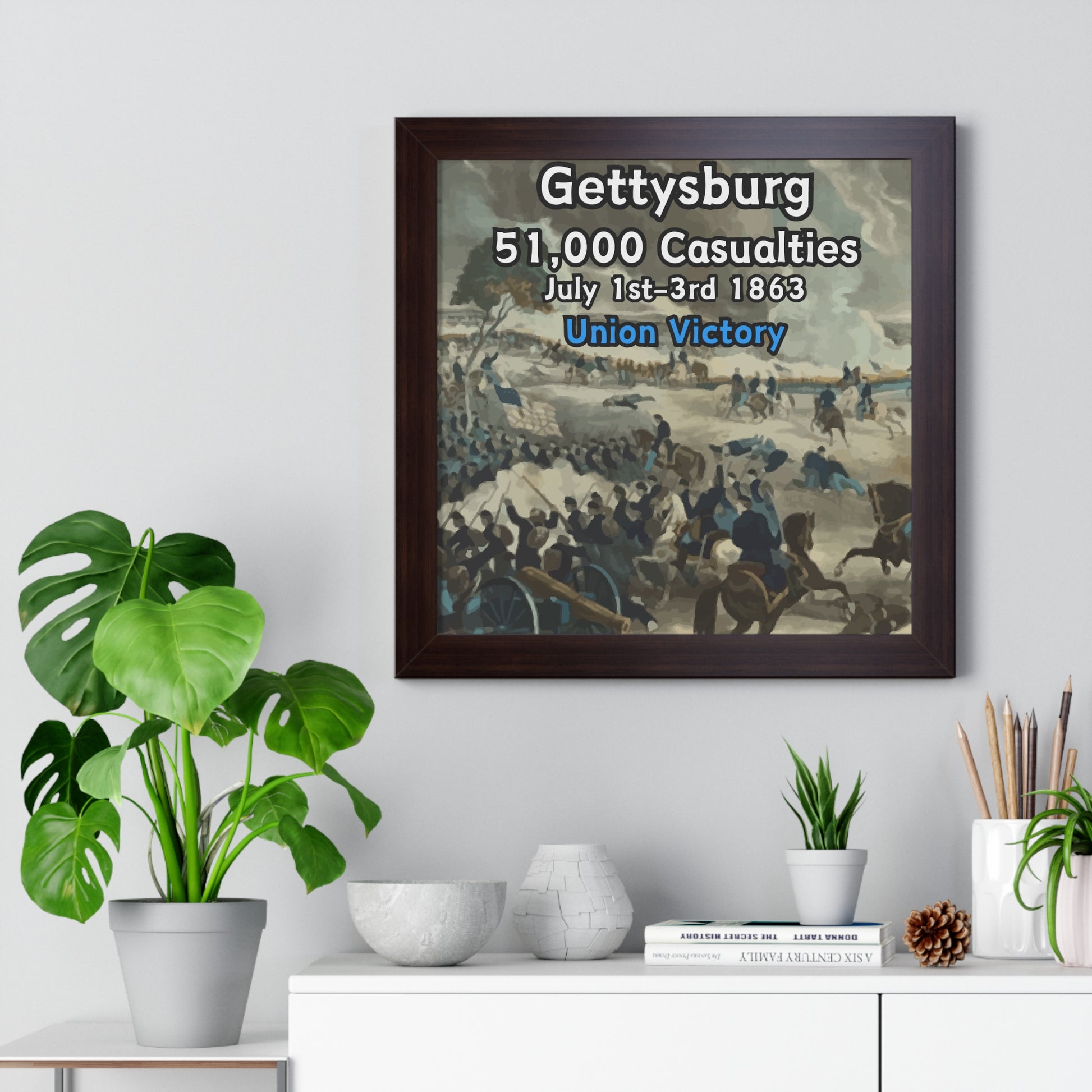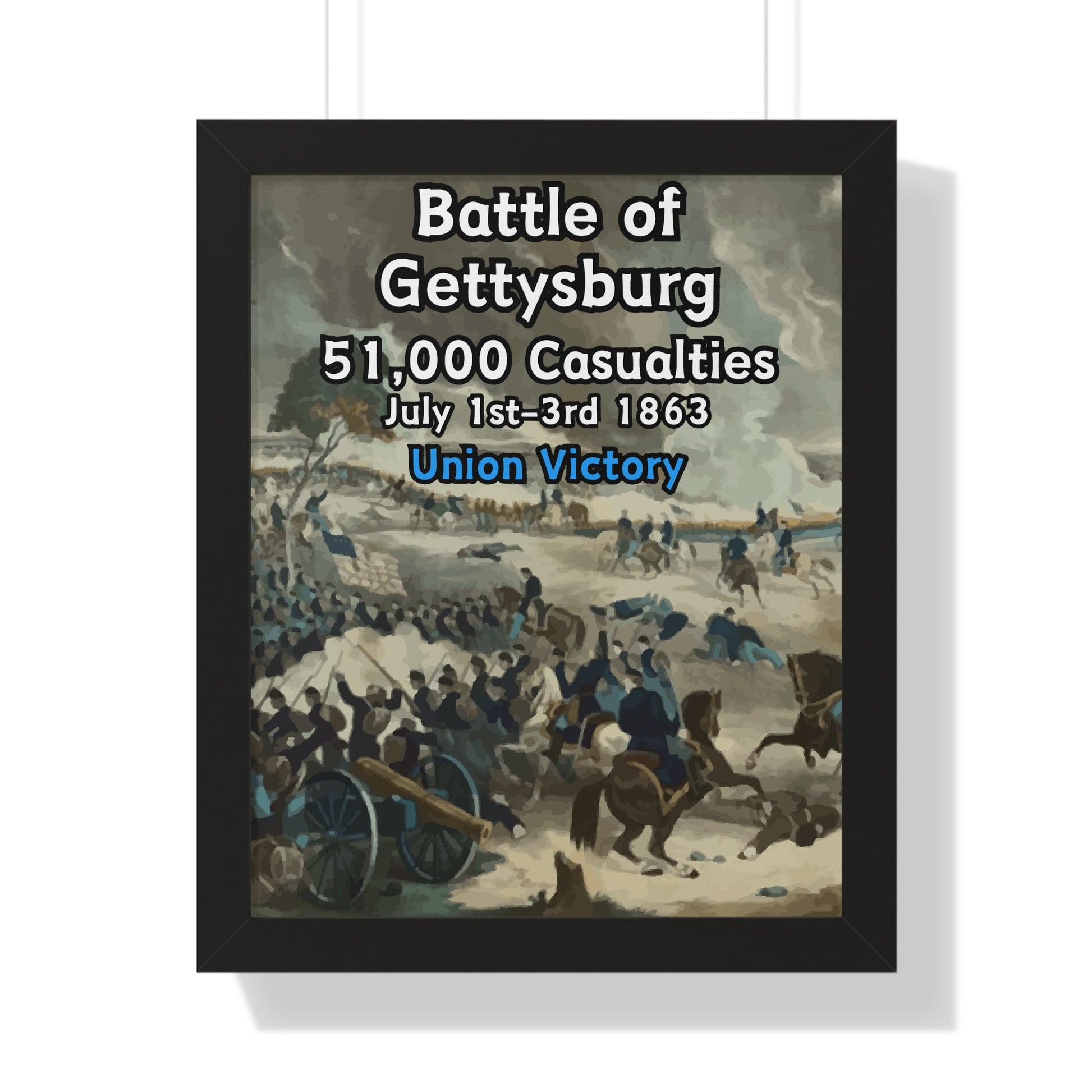 Elevate your wall decor with our Premium Framed Historical Poster of the American Civil War Battle of Gettysburg, available in three sophisticated colors: black, white, and walnut.