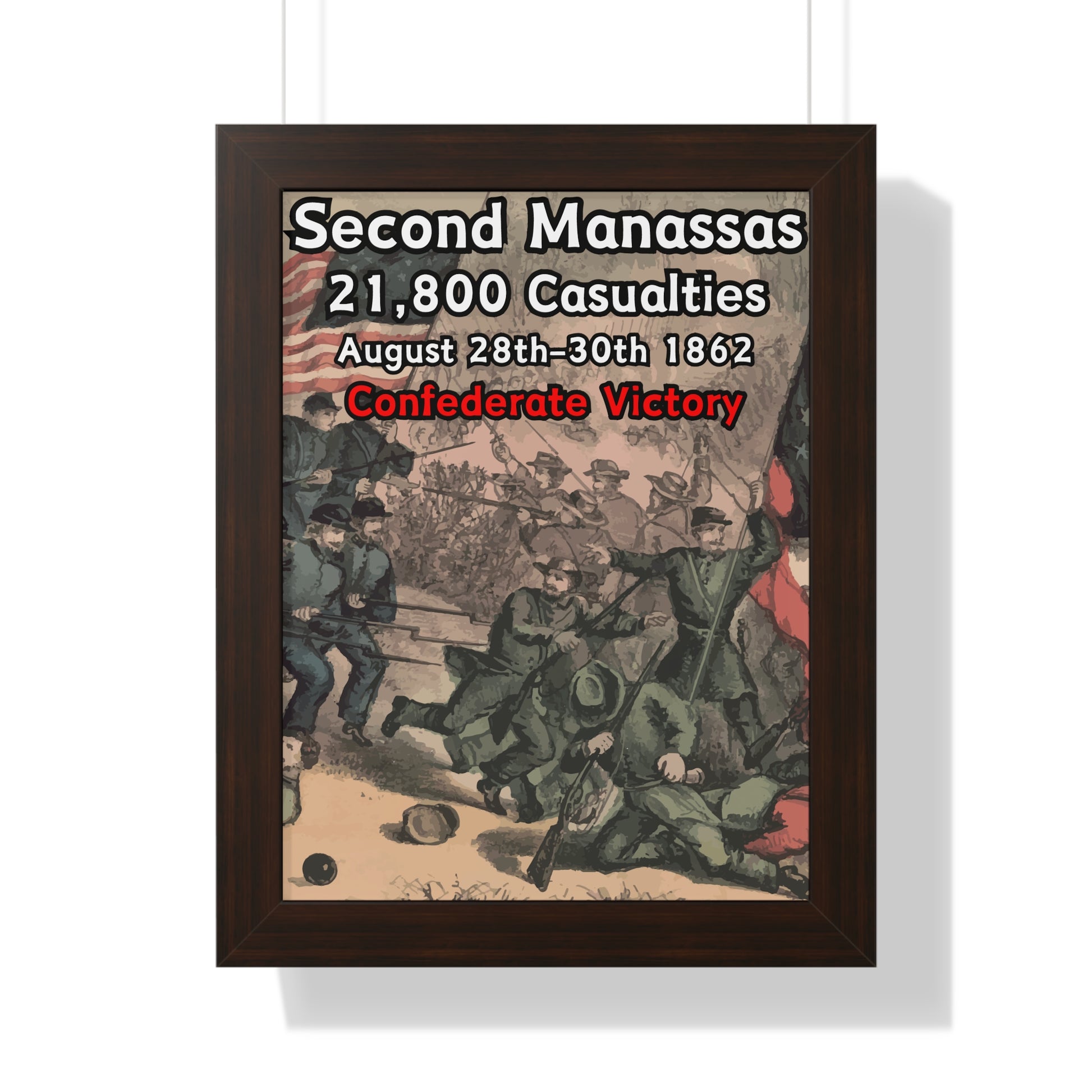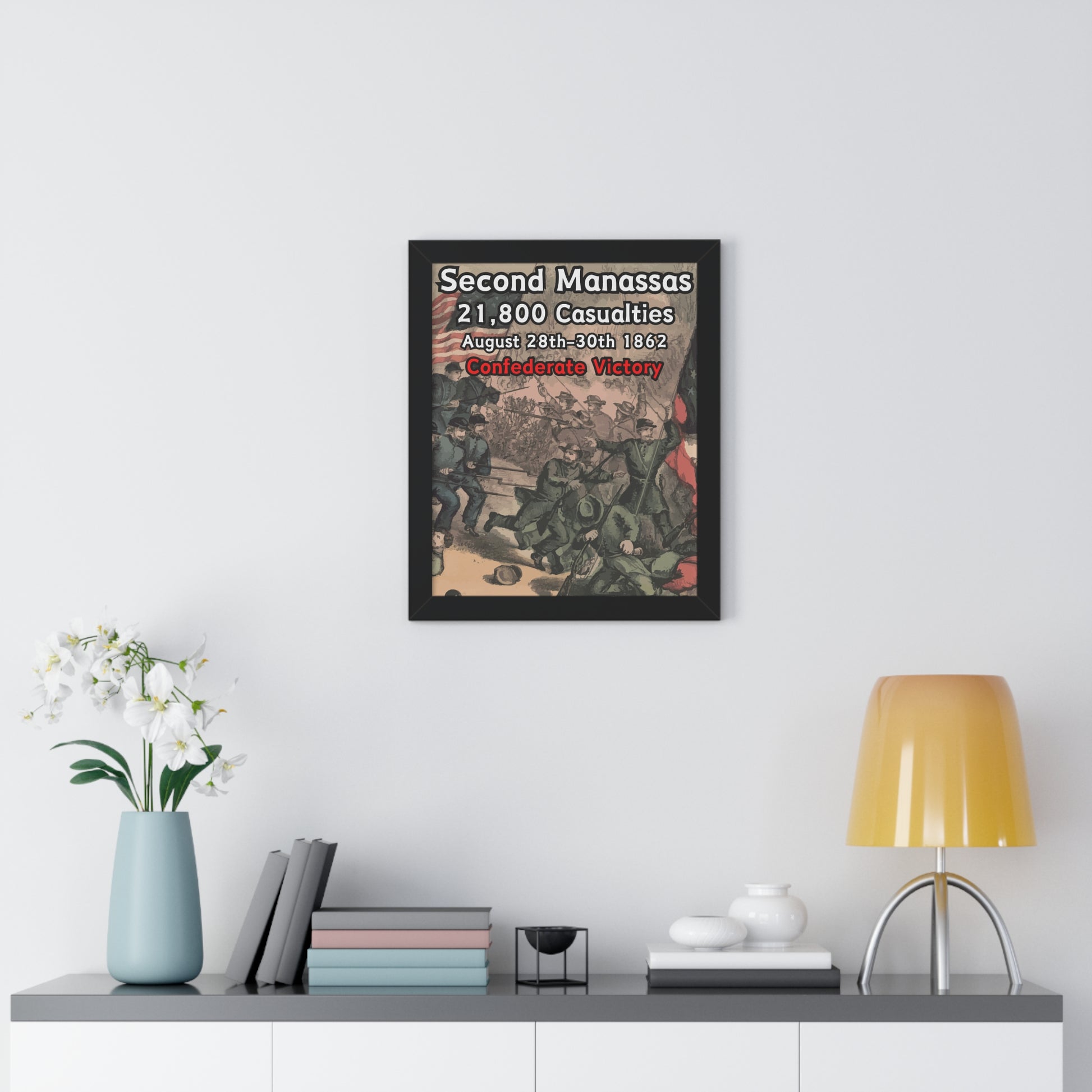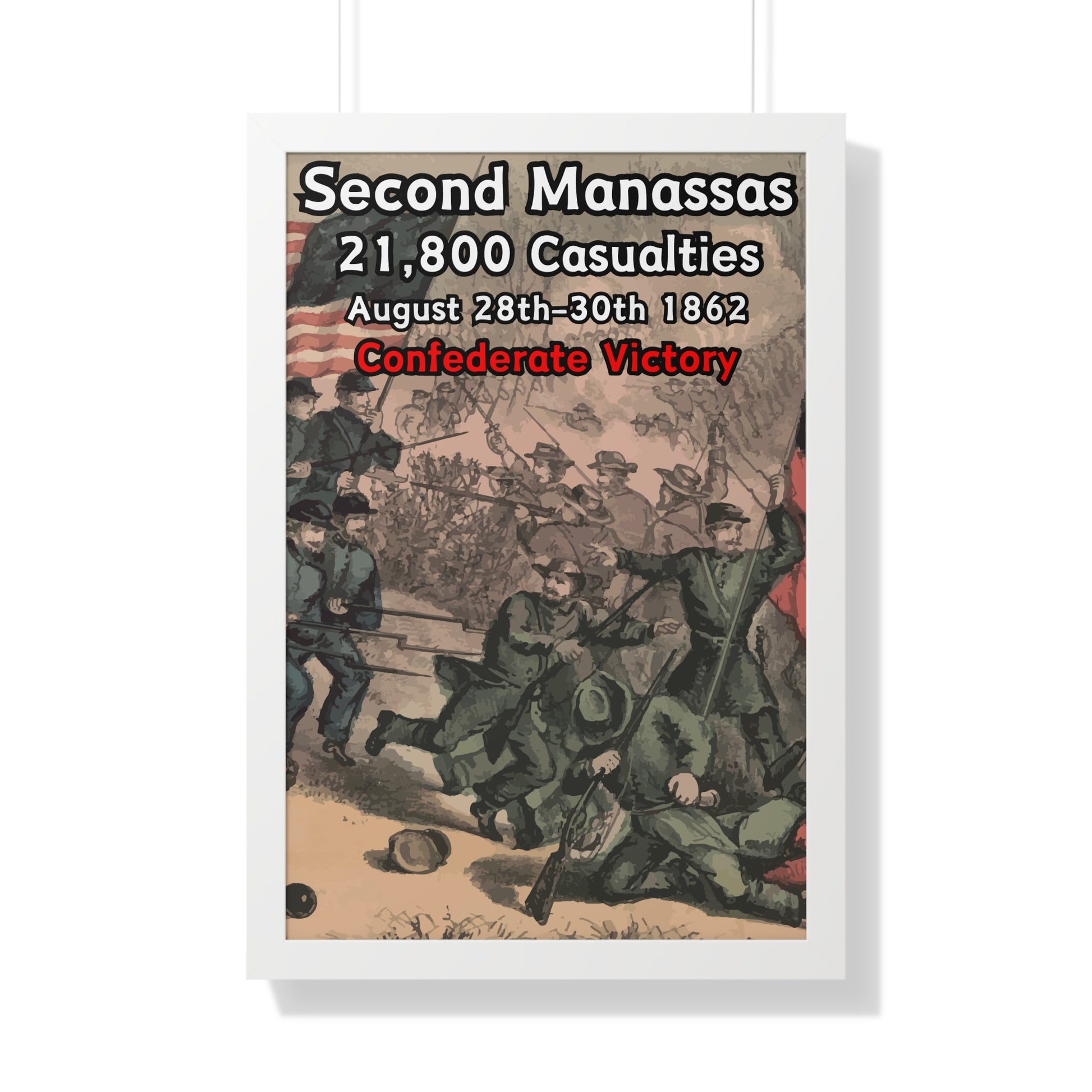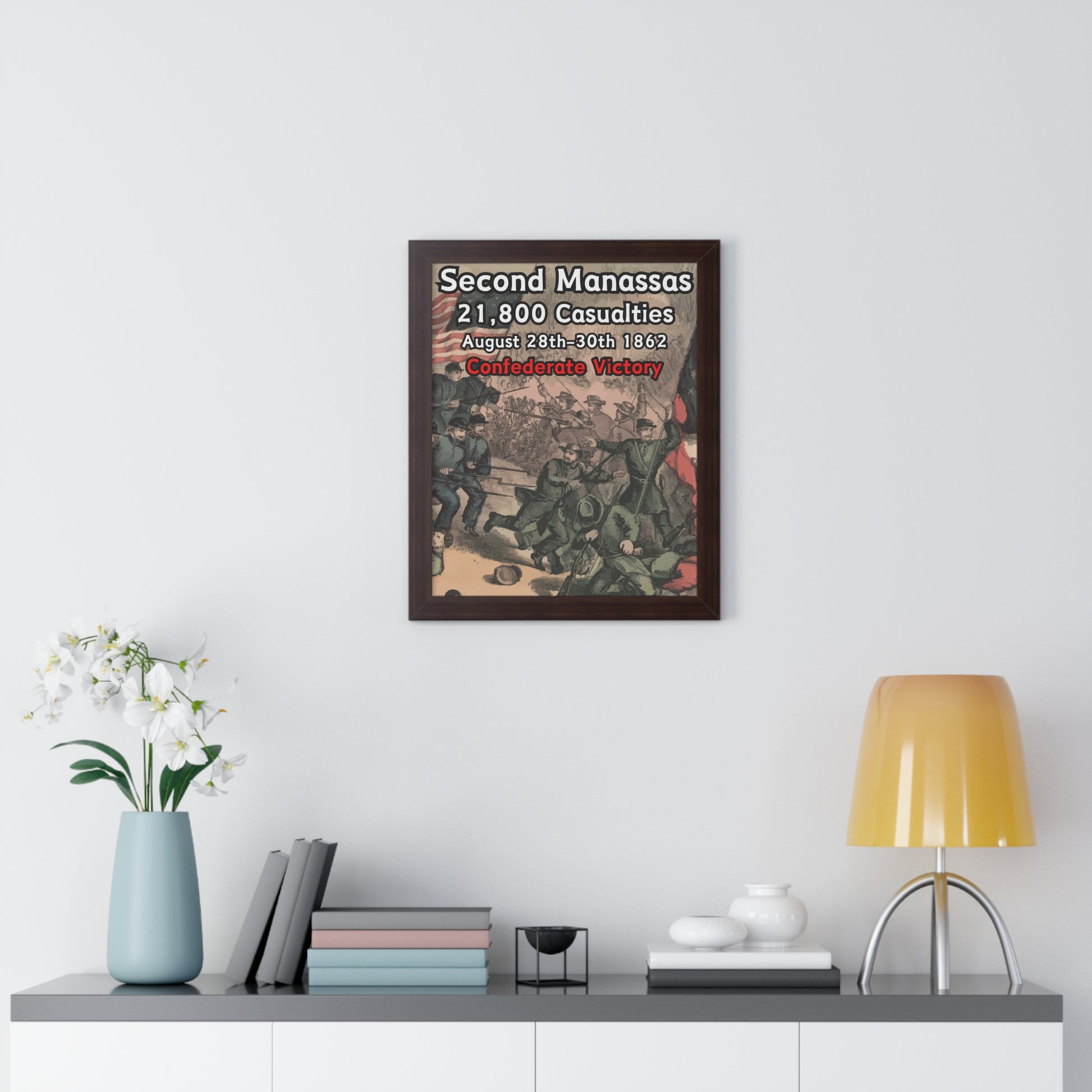 Elevate your wall decor with our Premium Framed Historical Poster of the American Civil War Battle of Second Manassas, available in three sophisticated colors: black, white, and walnut.