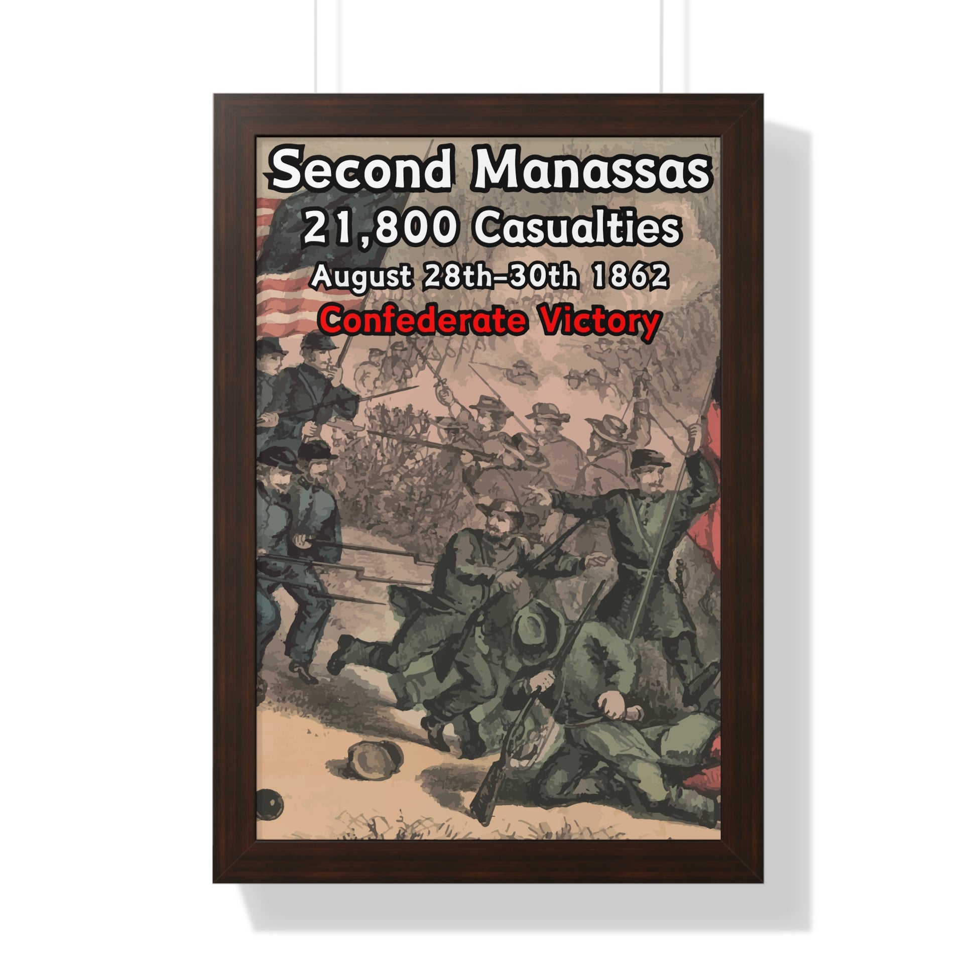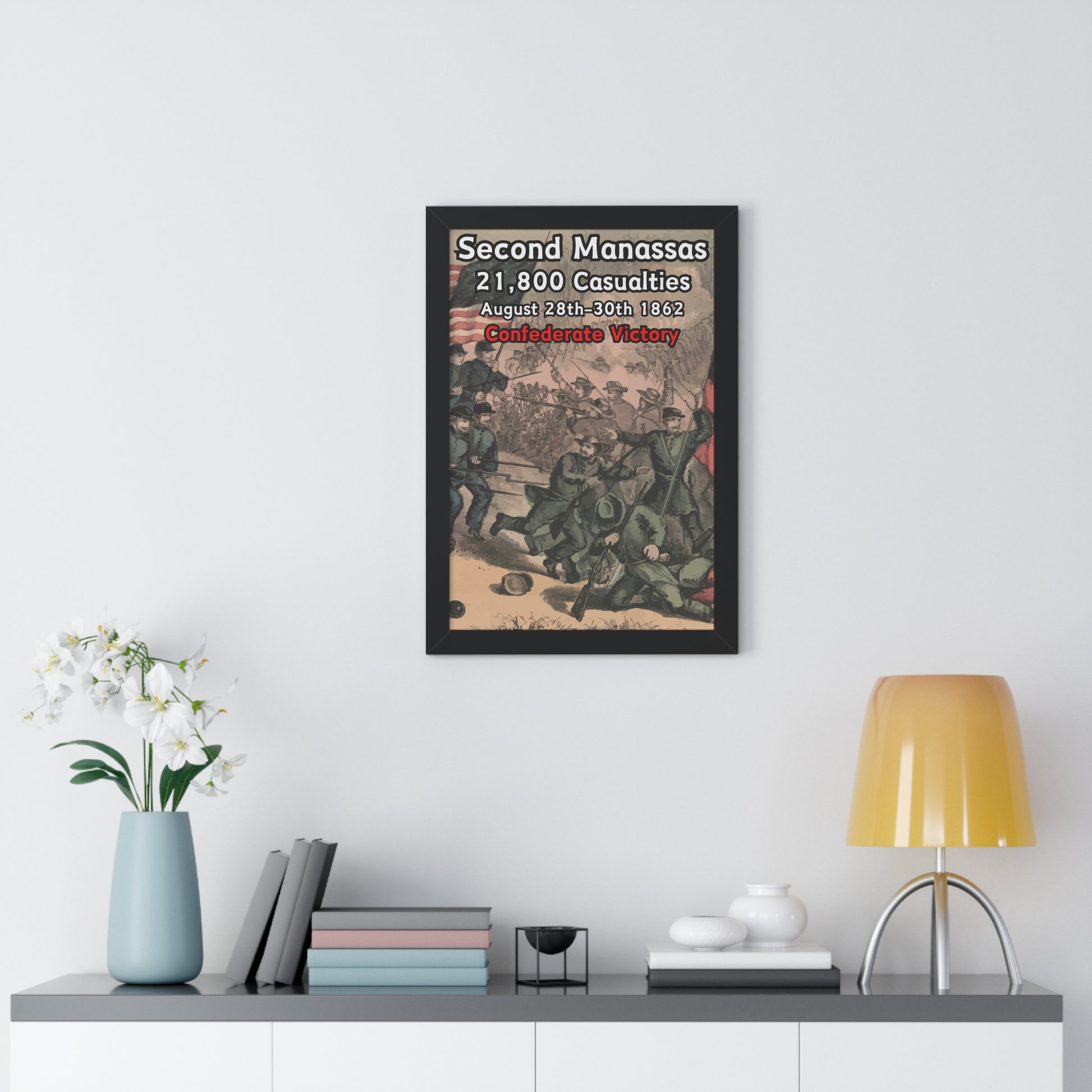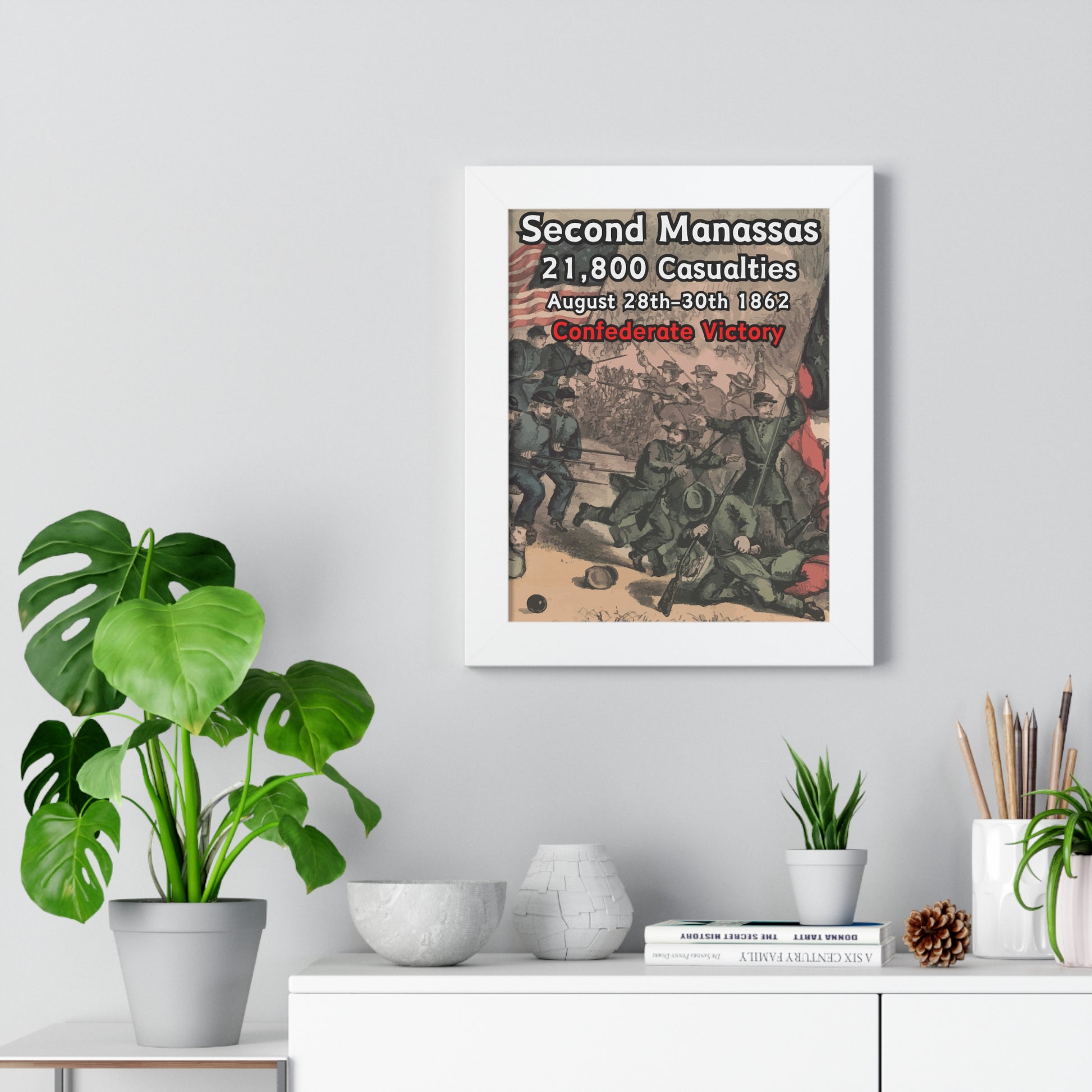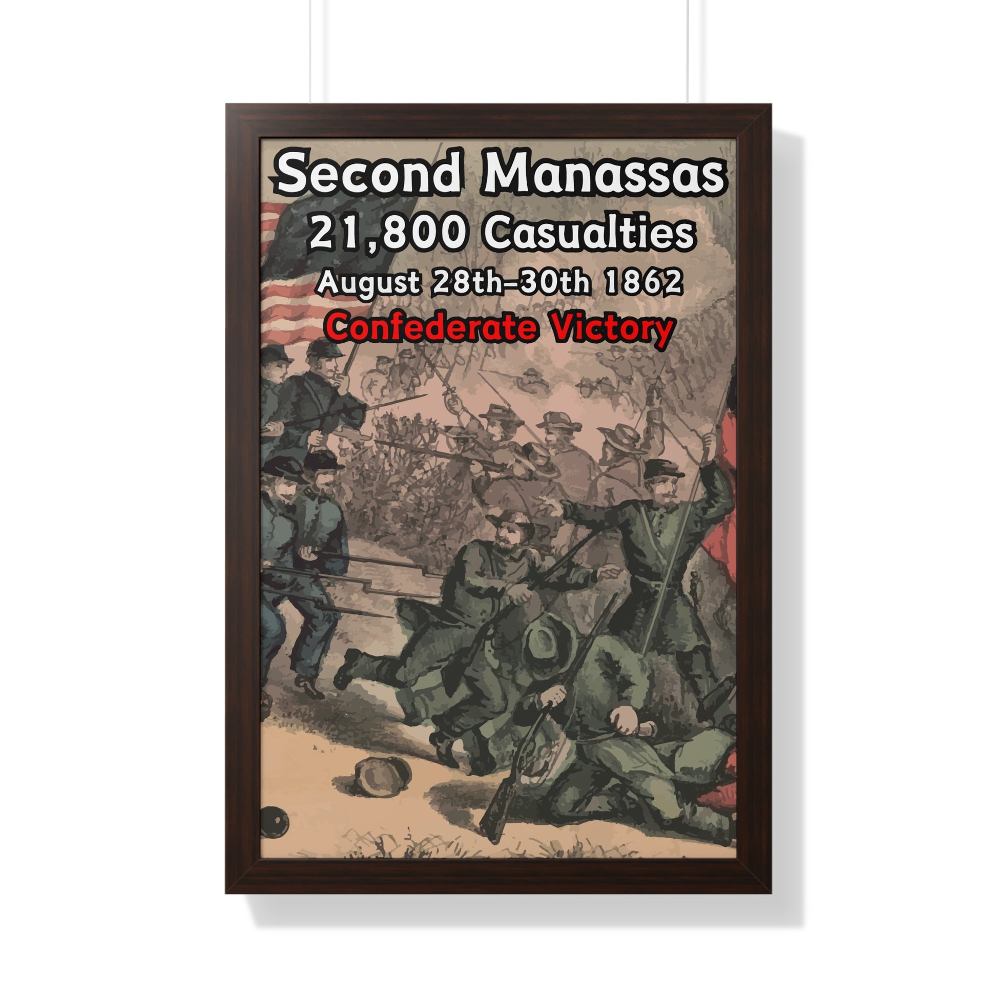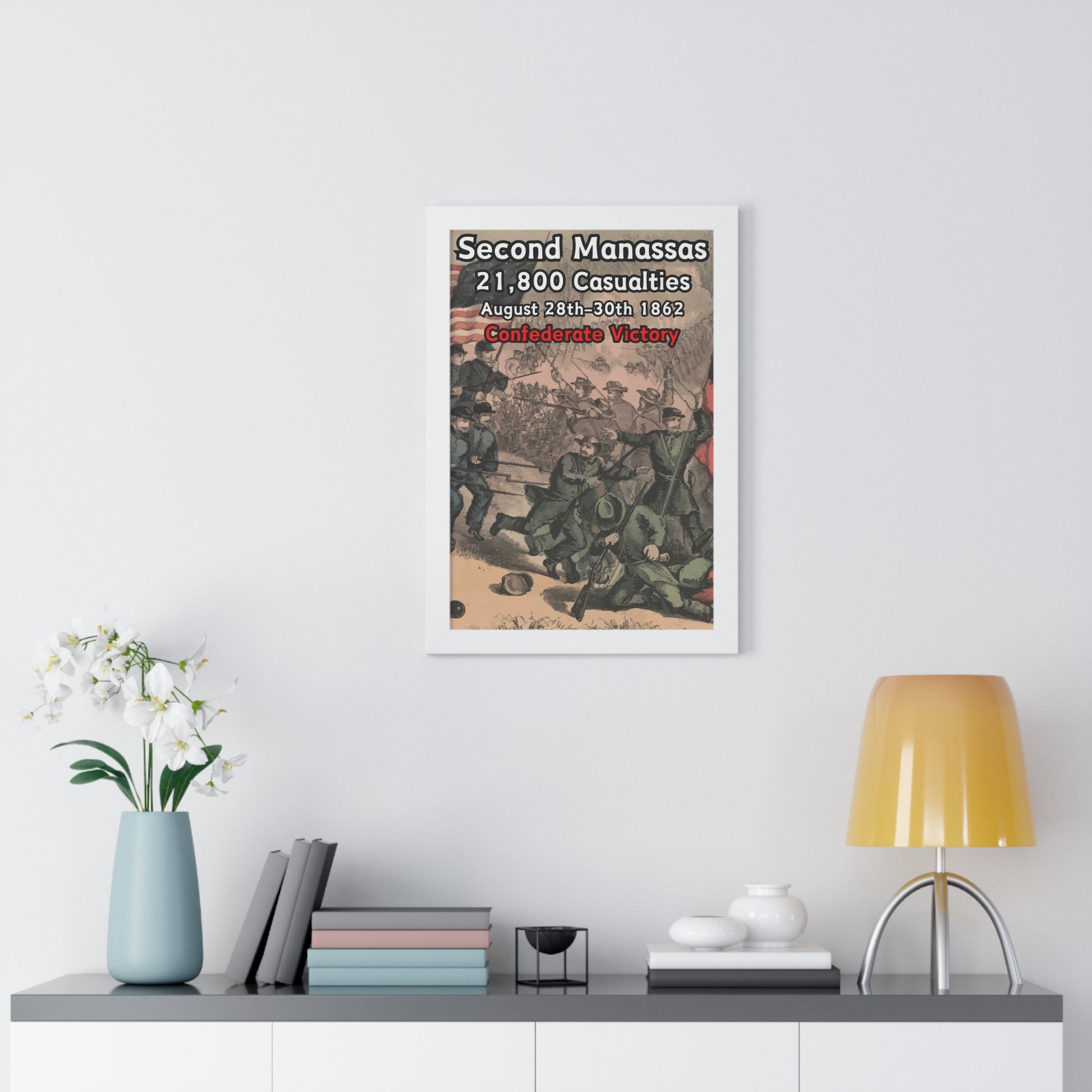 Elevate your wall decor with our Premium Framed Historical Poster of the American Civil War Battle of Second Manassas, available in three sophisticated colors: black, white, and walnut.