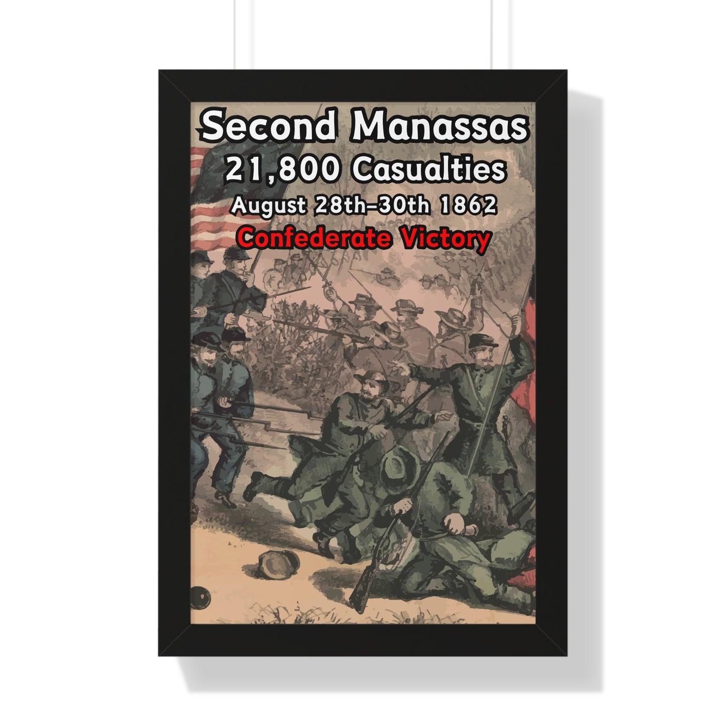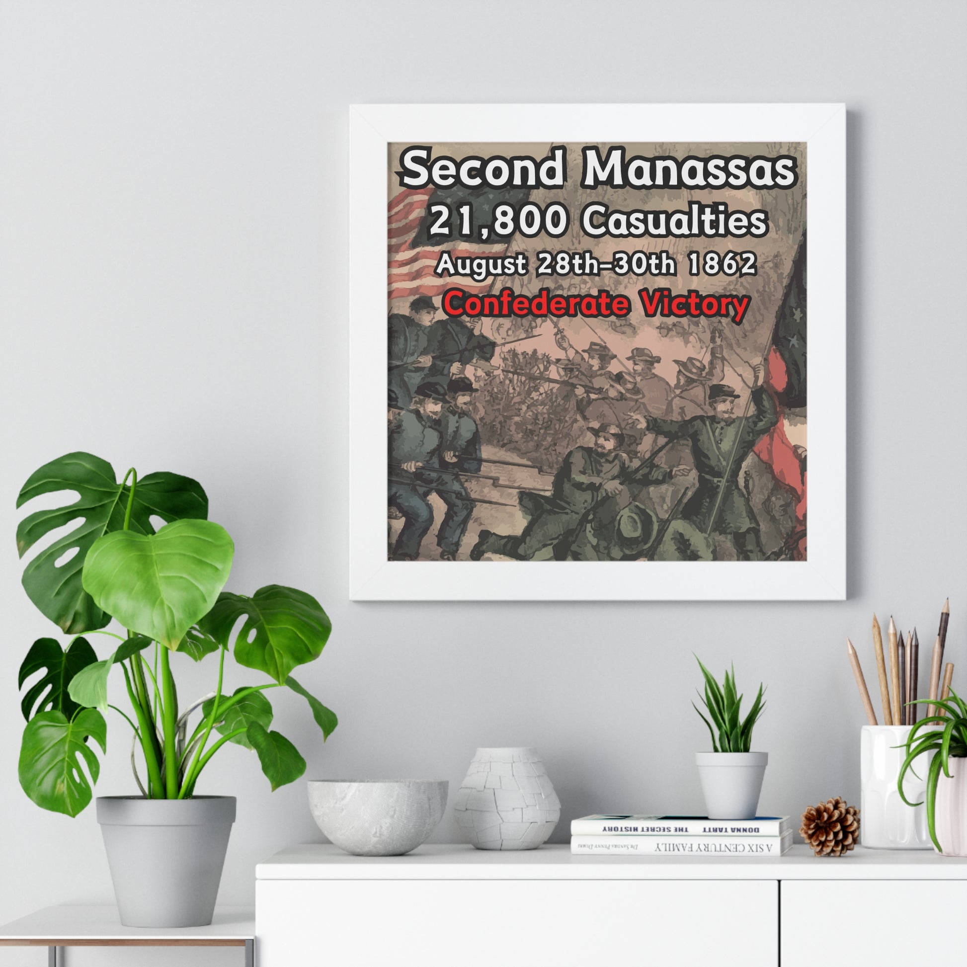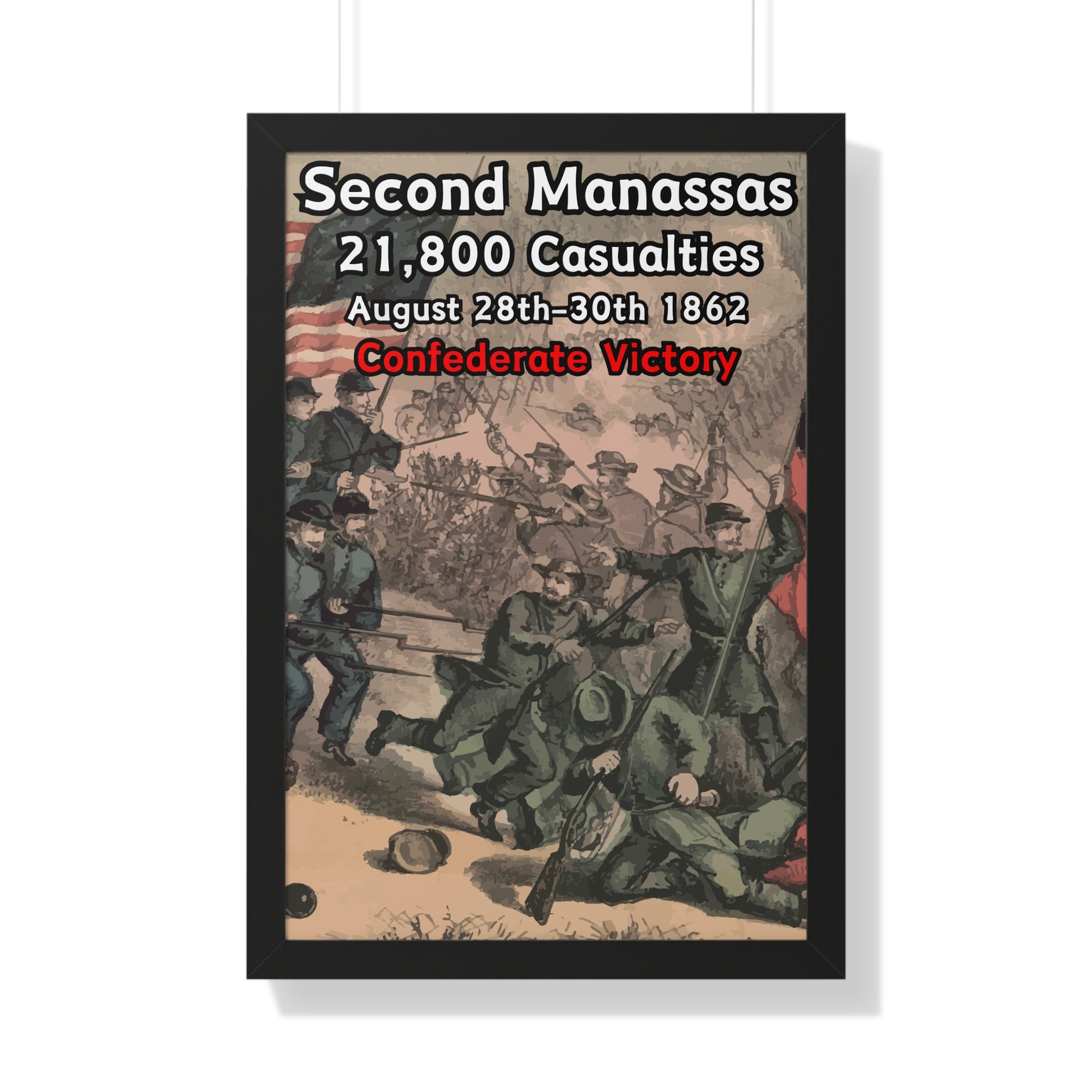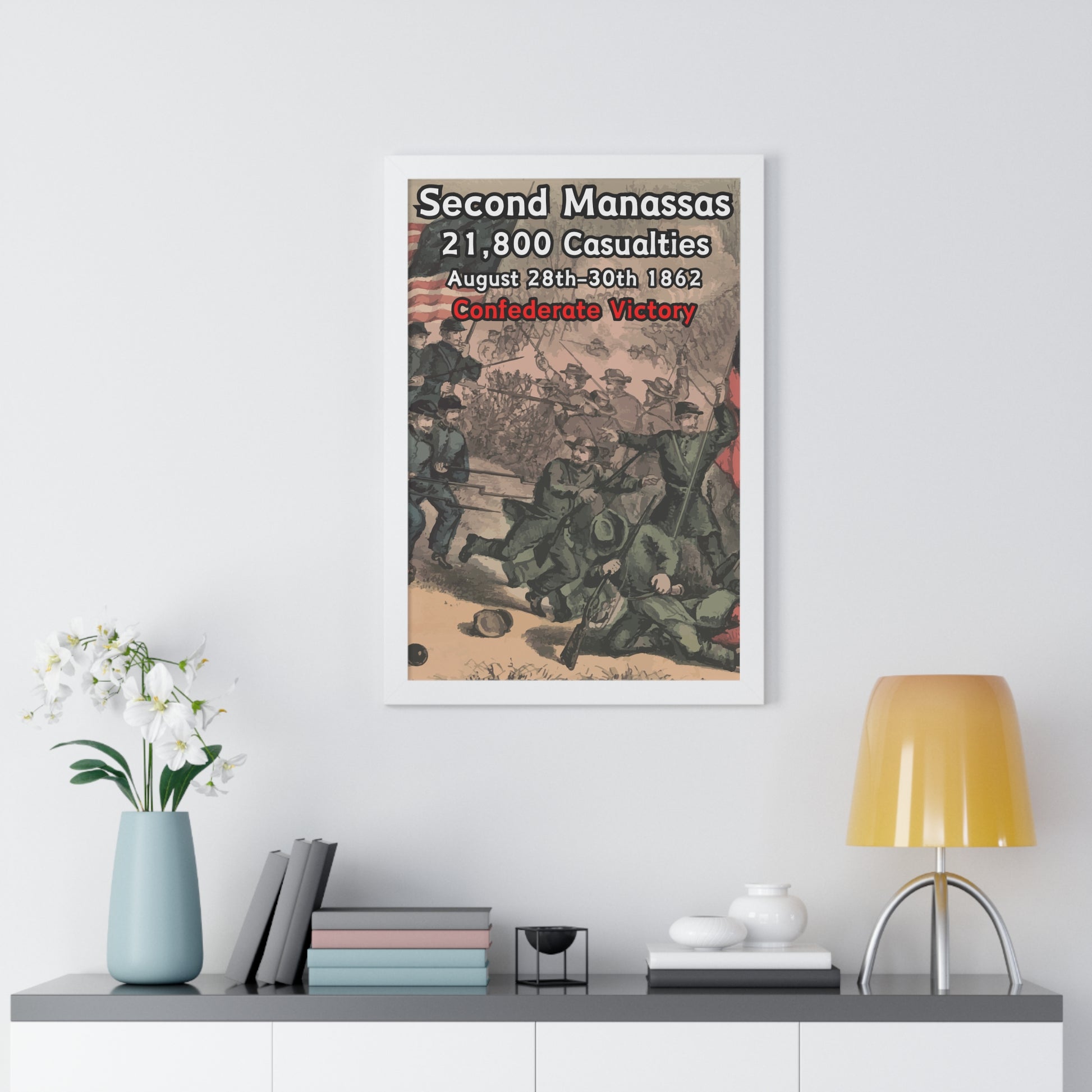 Elevate your wall decor with our Premium Framed Historical Poster of the American Civil War Battle of Second Manassas, available in three sophisticated colors: black, white, and walnut.
