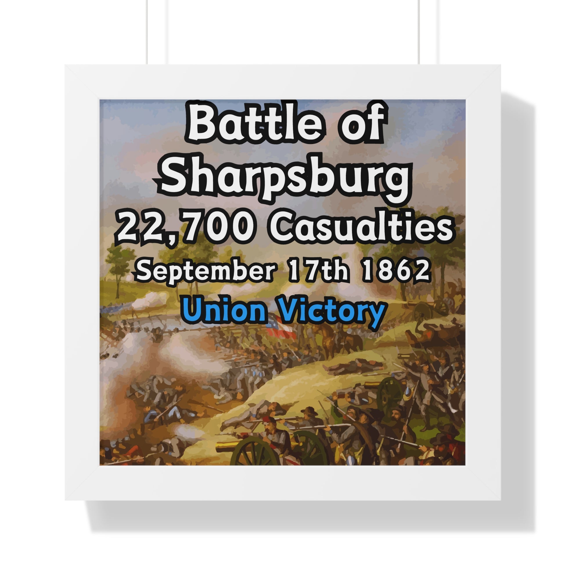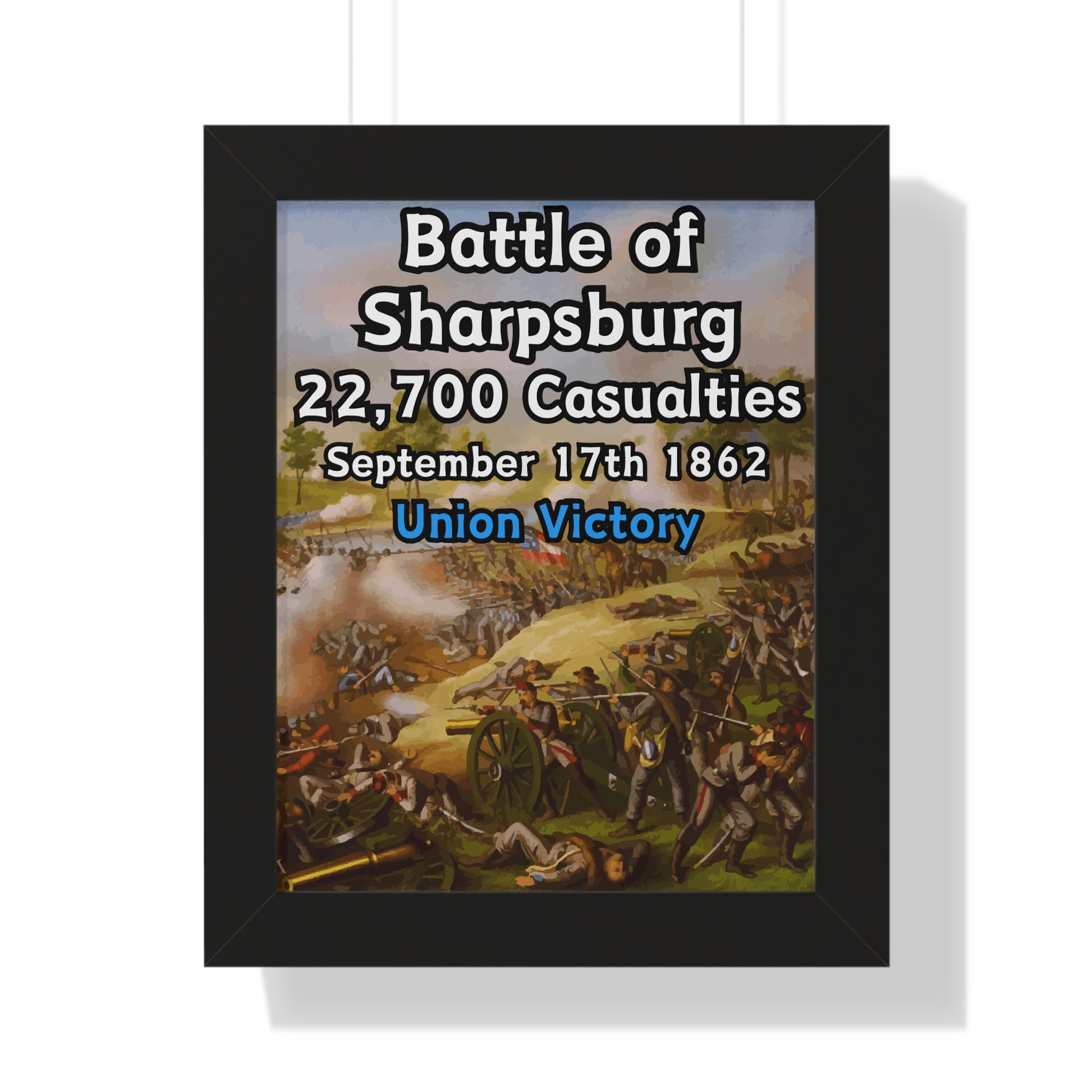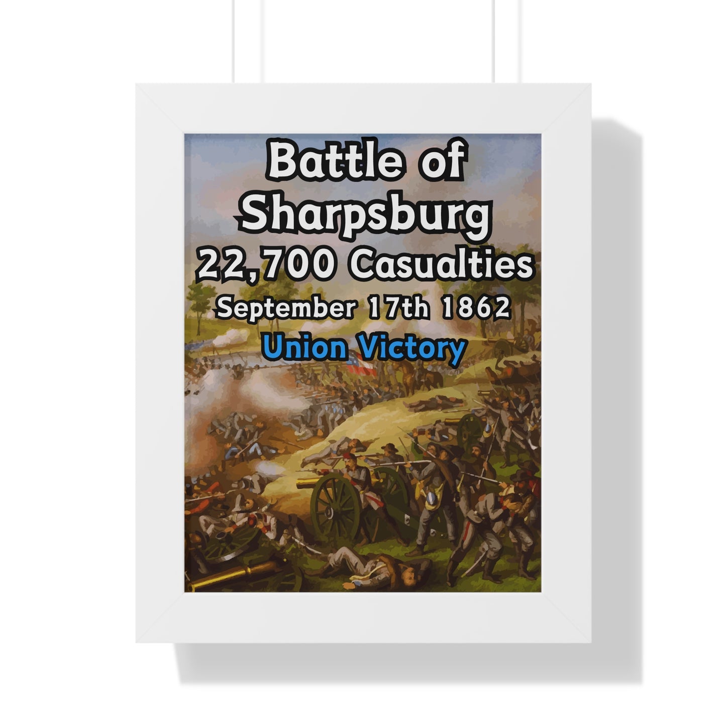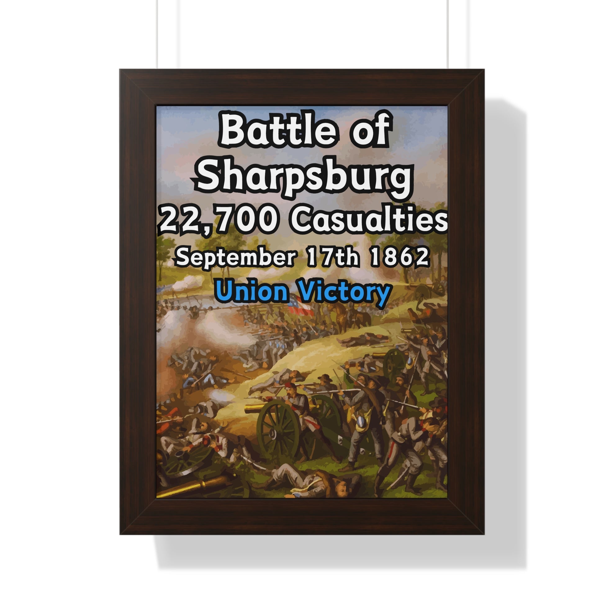 Elevate your wall decor with our Premium Framed Historical Poster of the American Civil War Battle of Sharpsburg, available in three sophisticated colors: black, white, and walnut.
