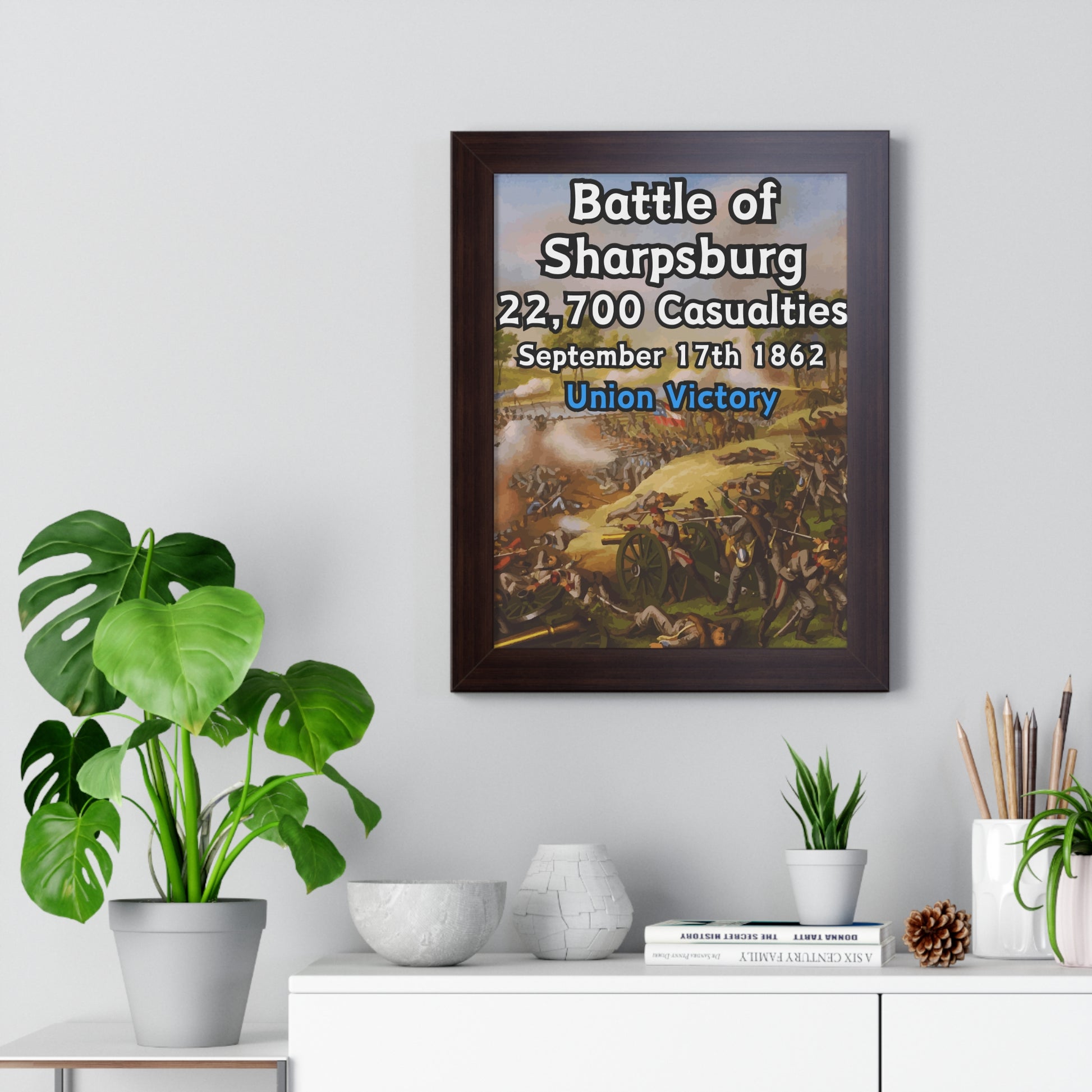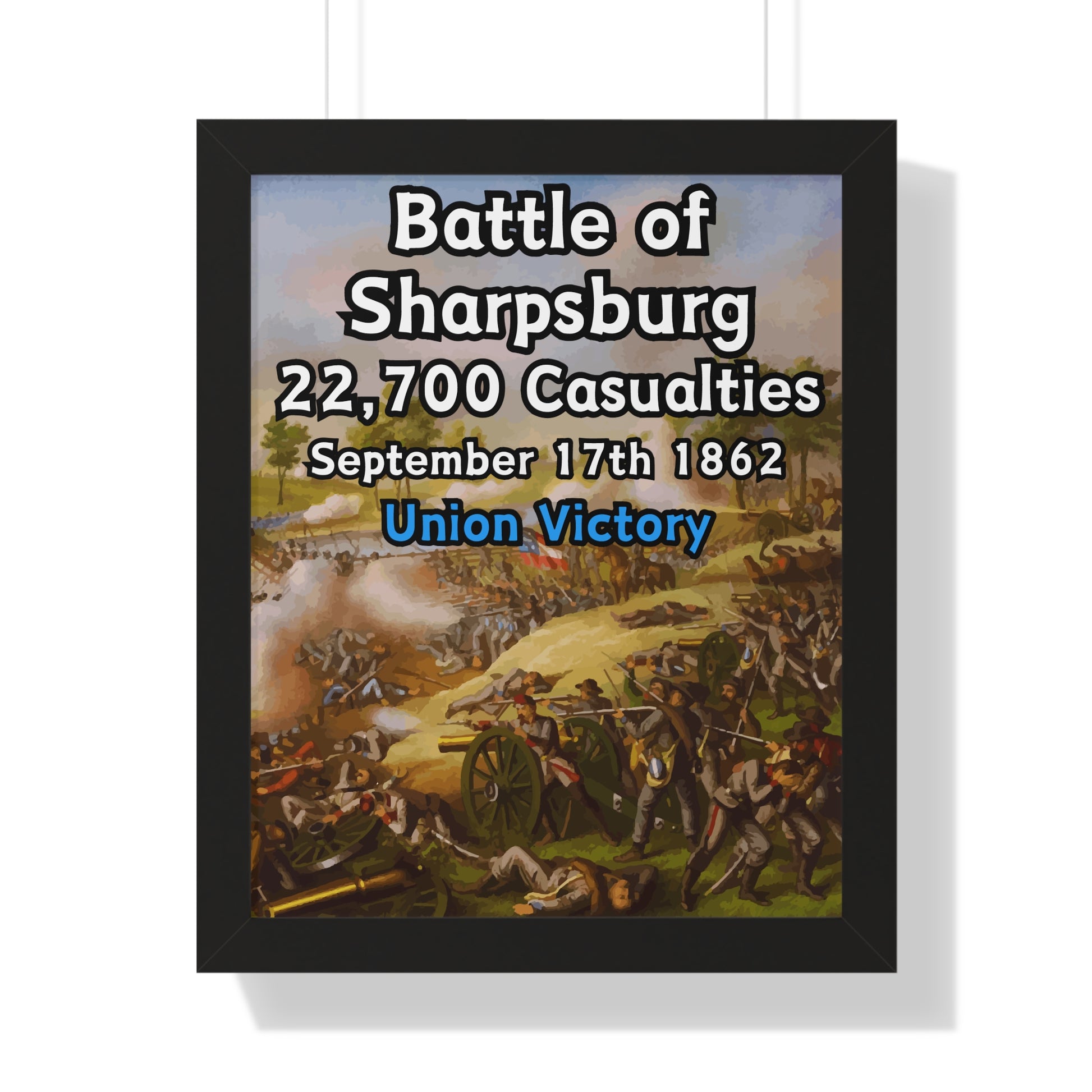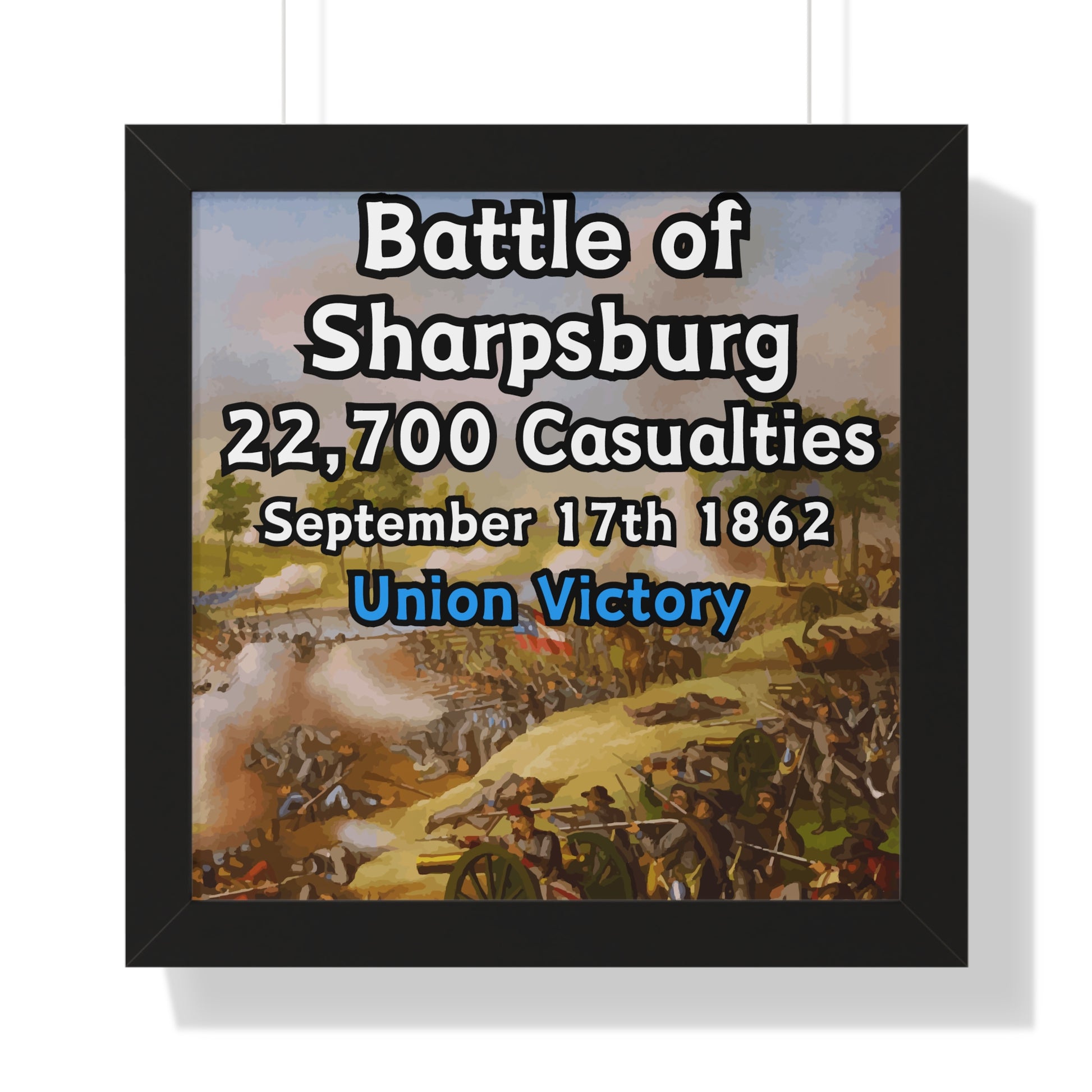 Elevate your wall decor with our Premium Framed Historical Poster of the American Civil War Battle of Sharpsburg, available in three sophisticated colors: black, white, and walnut.