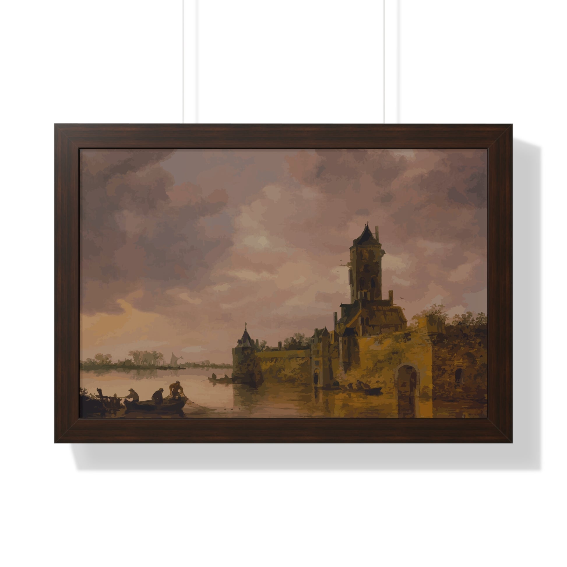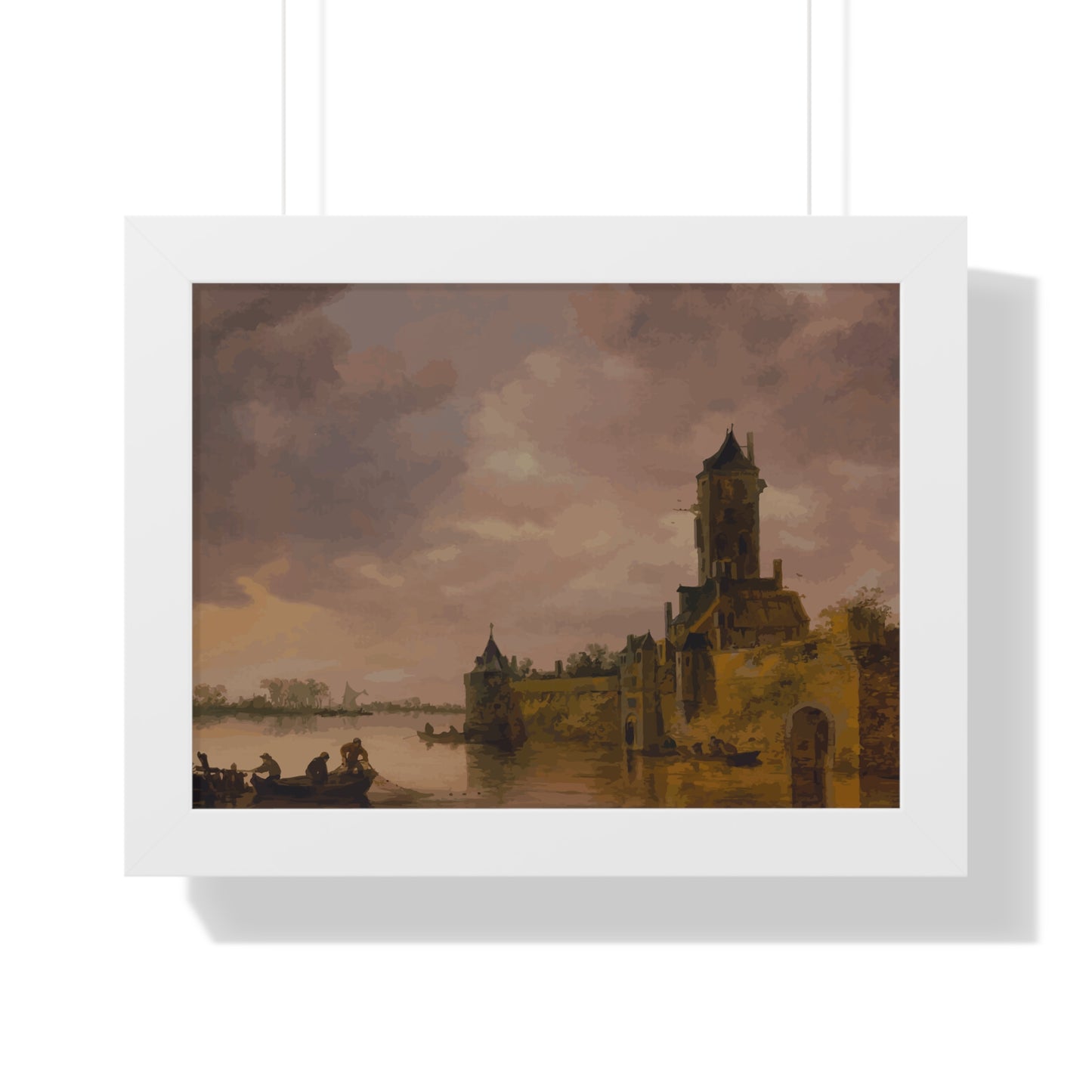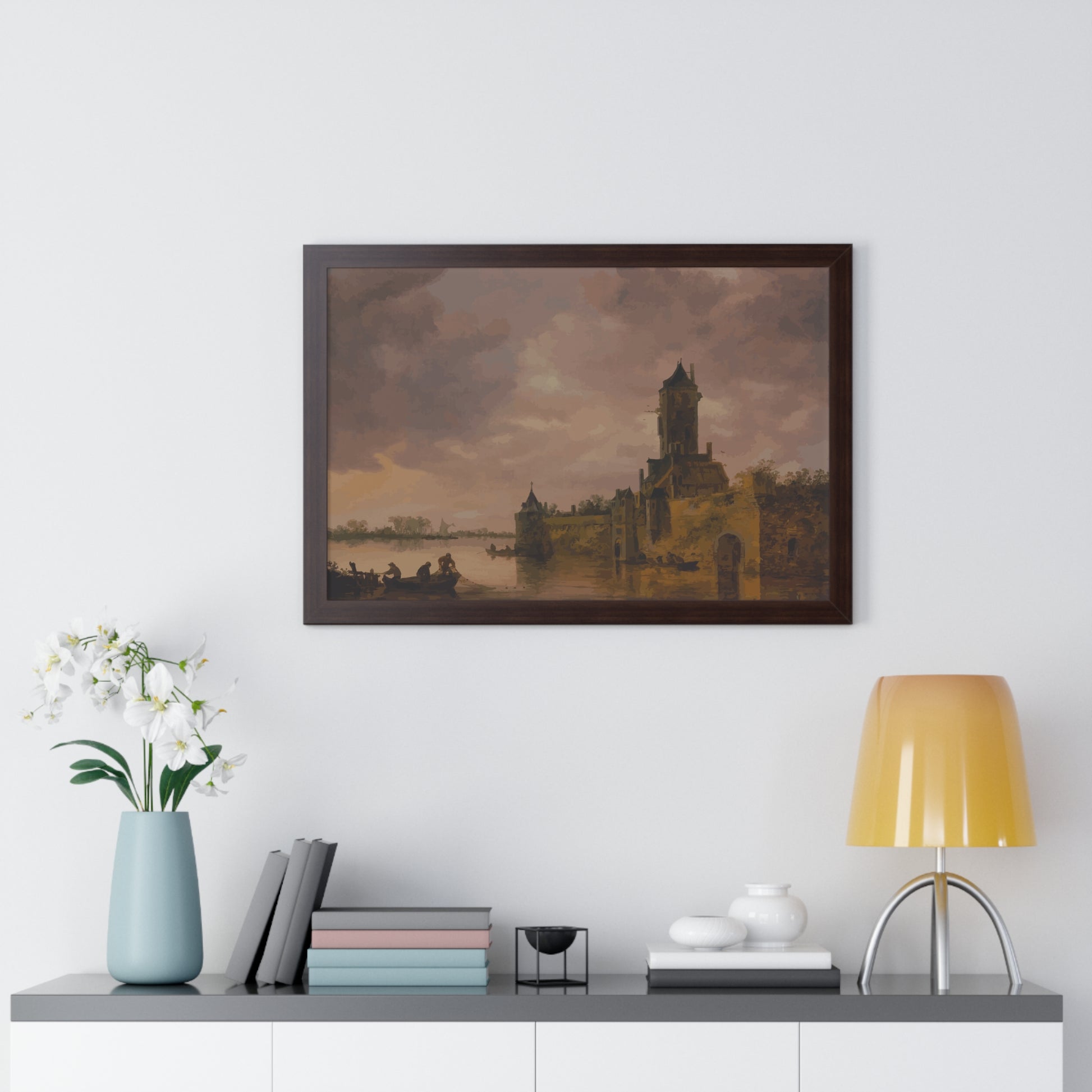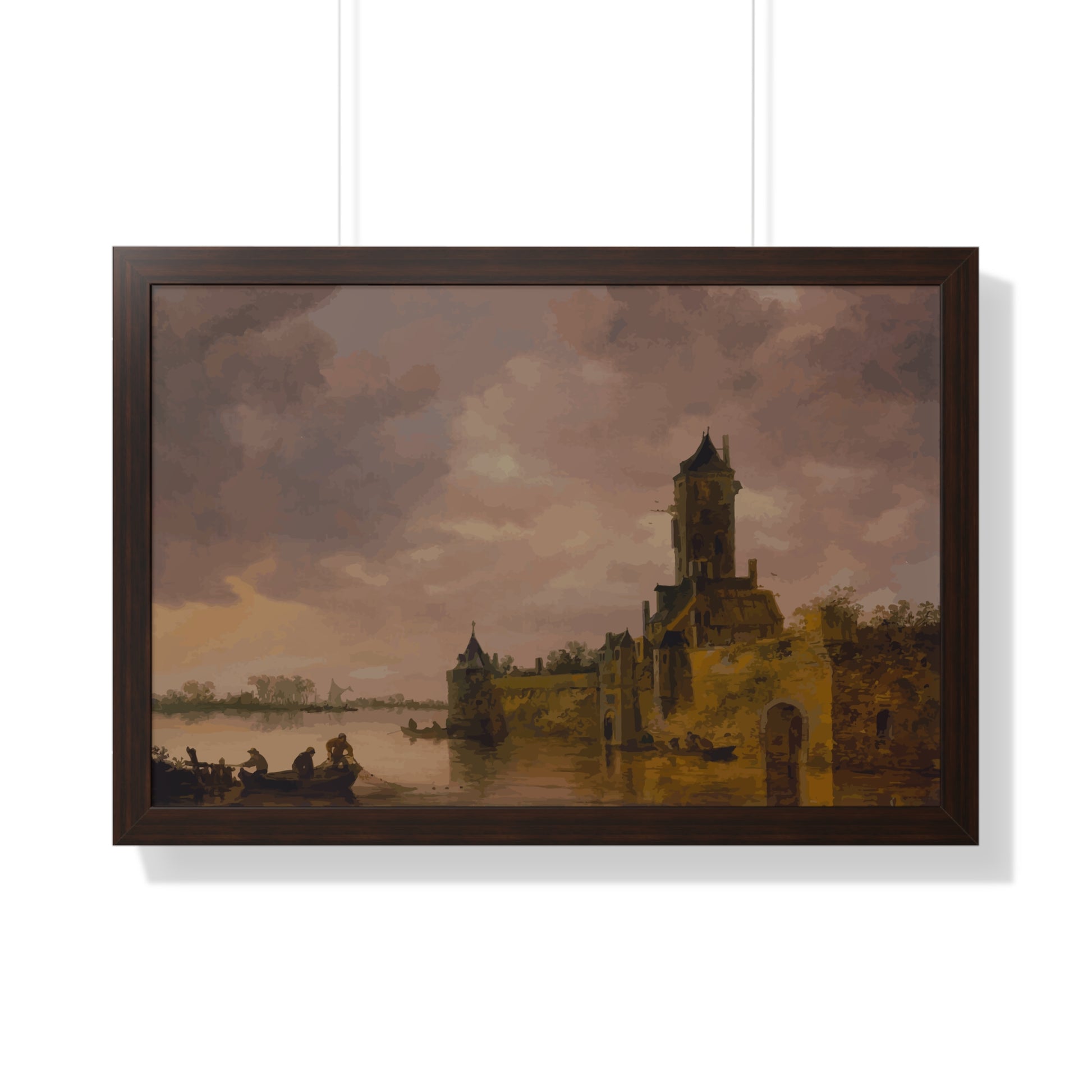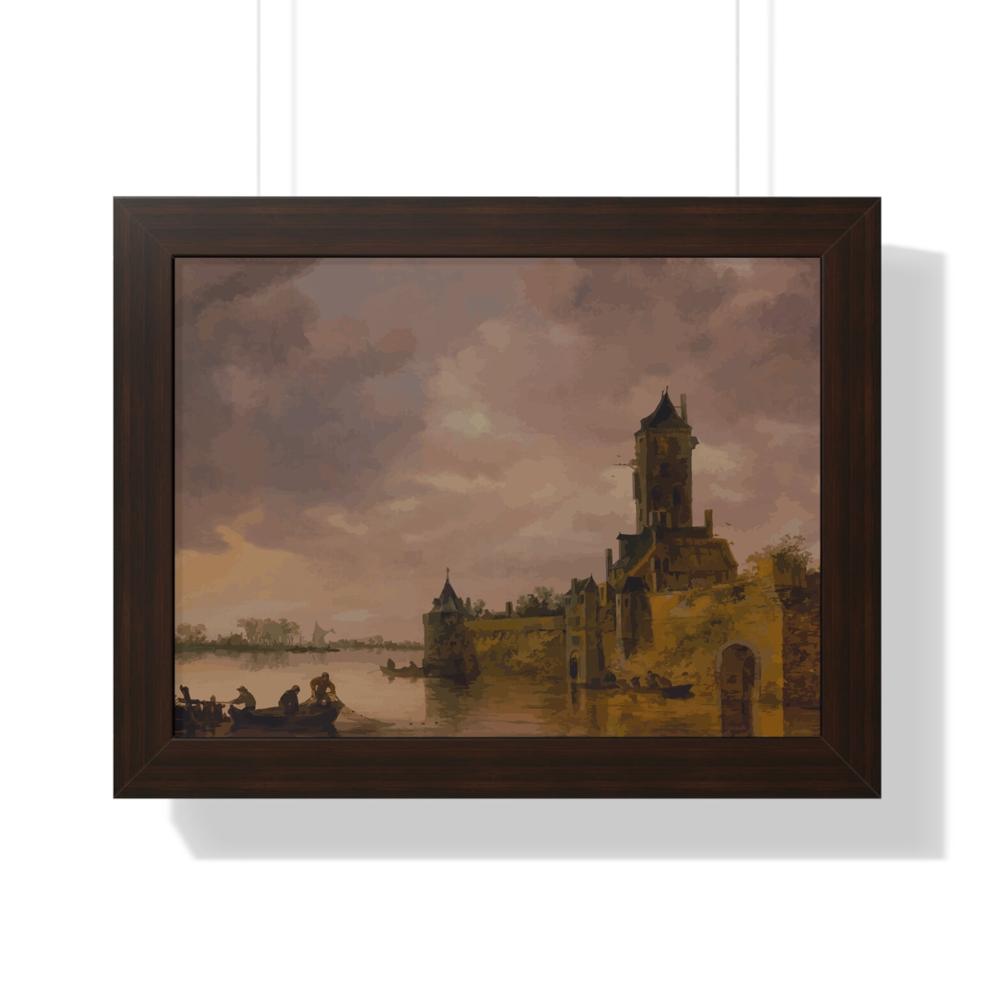 Elevate your wall decor with our Premium Framed Historical Painting of a Castle by the Lake, available in three sophisticated colors: black, white, and walnut.